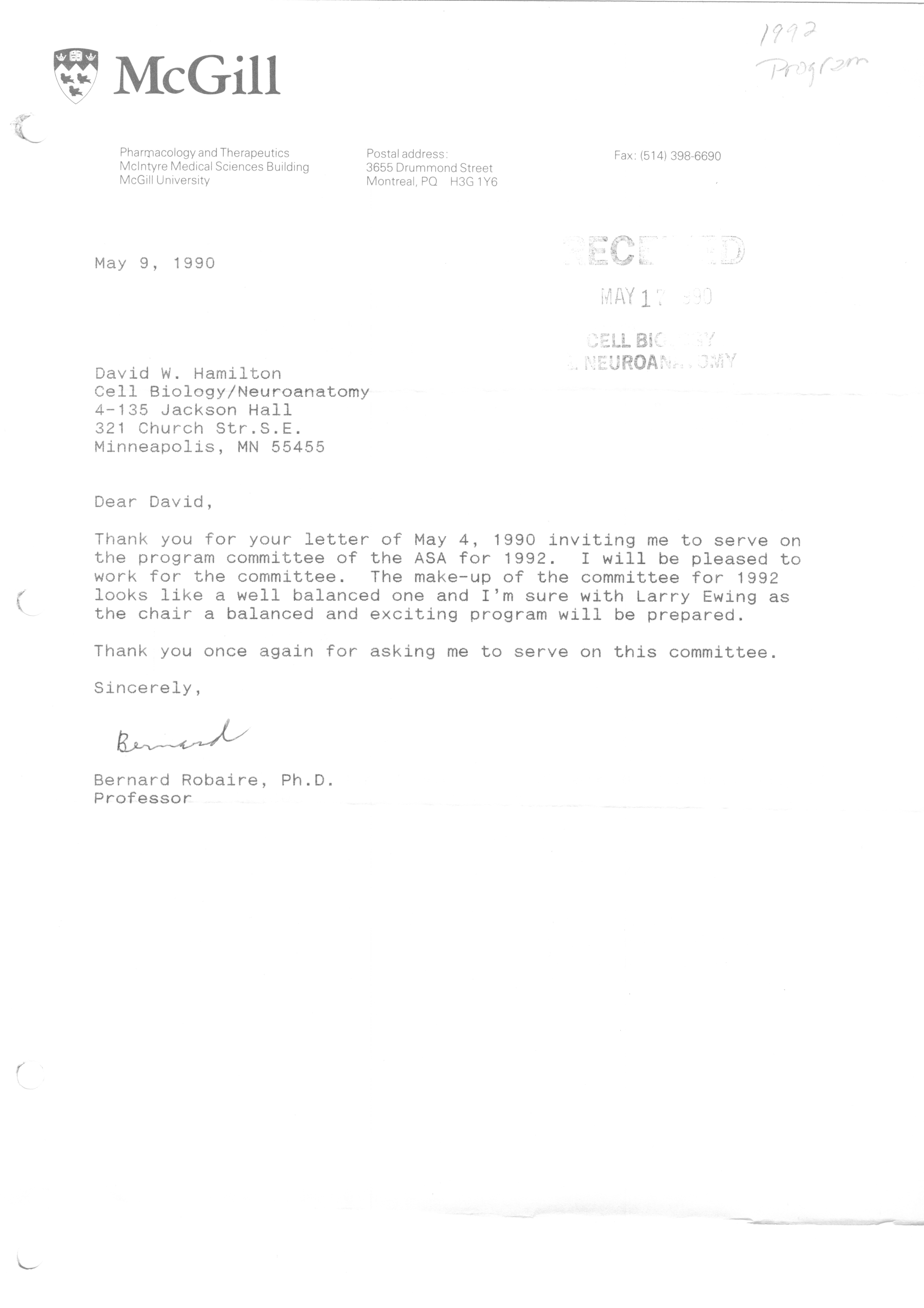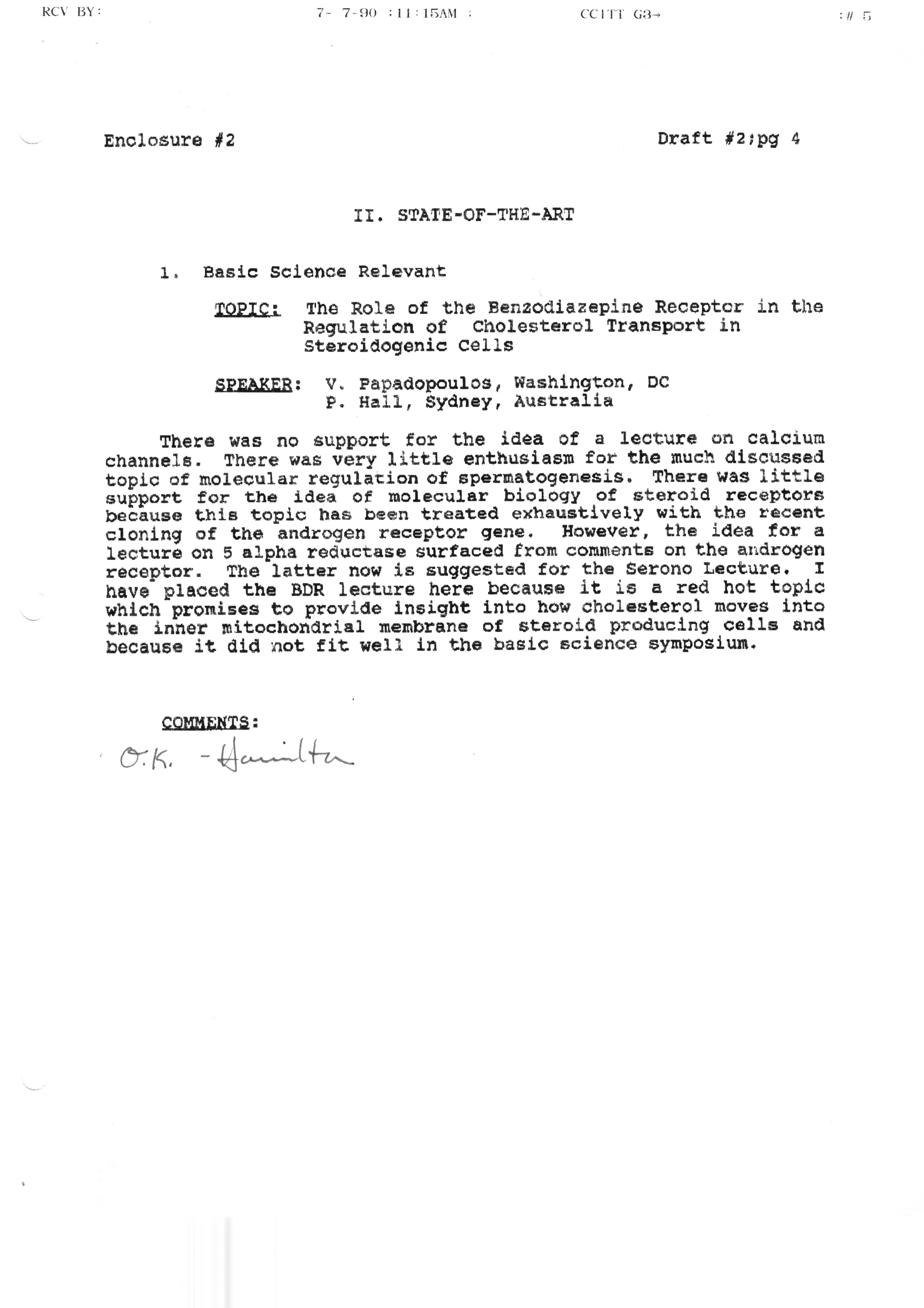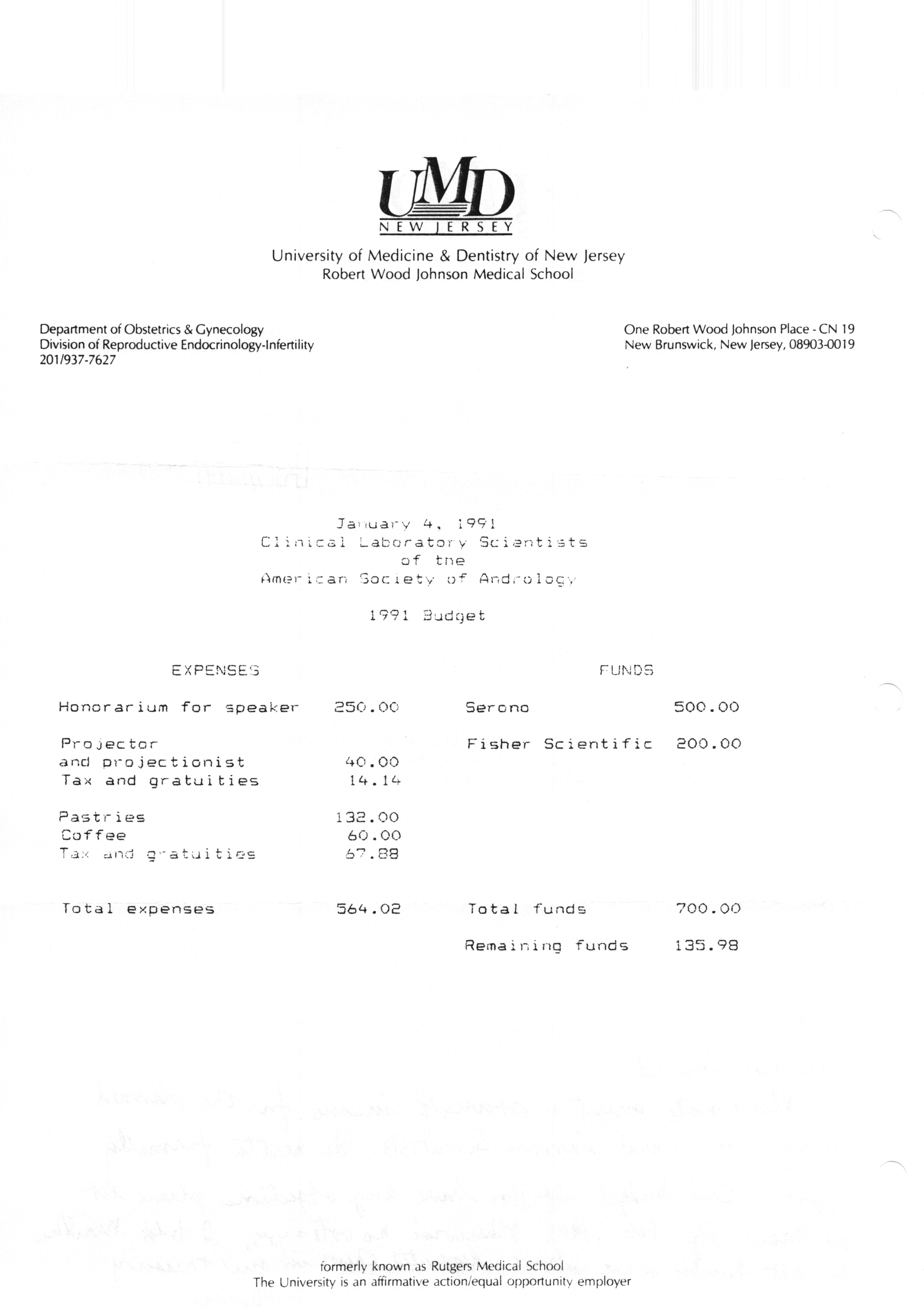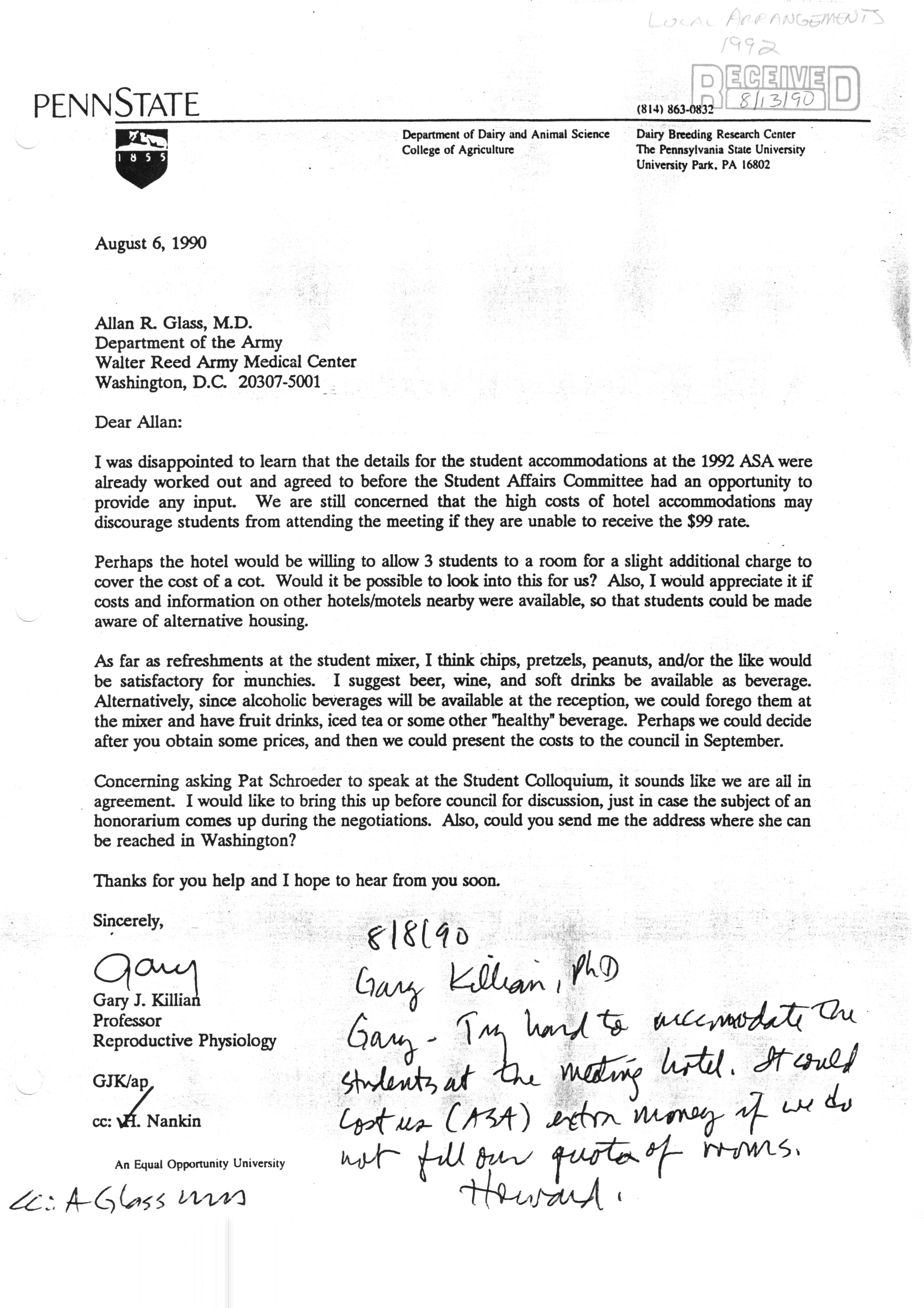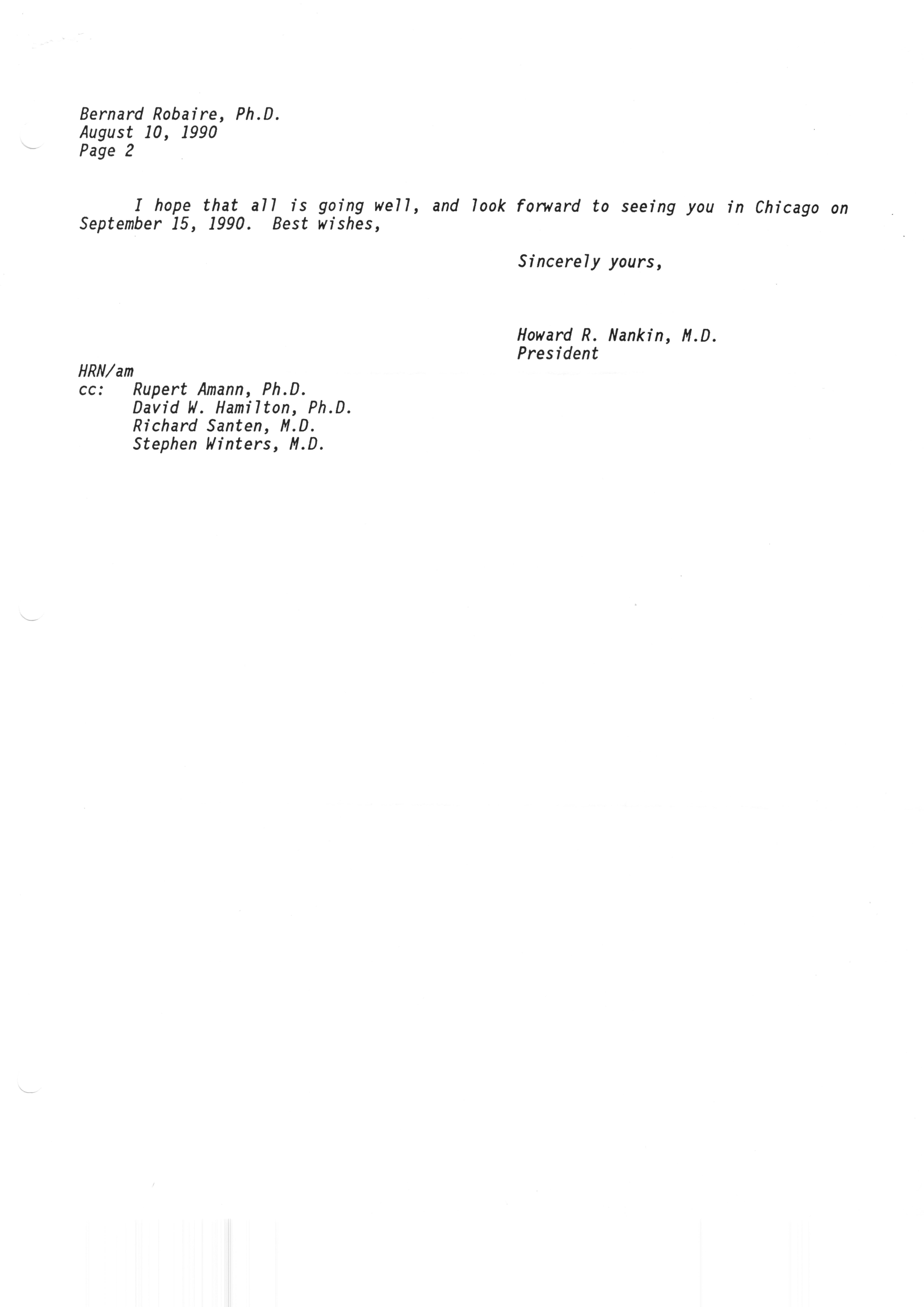 Executive Council Meetings correspondence of the American Society of Andrology, 1990