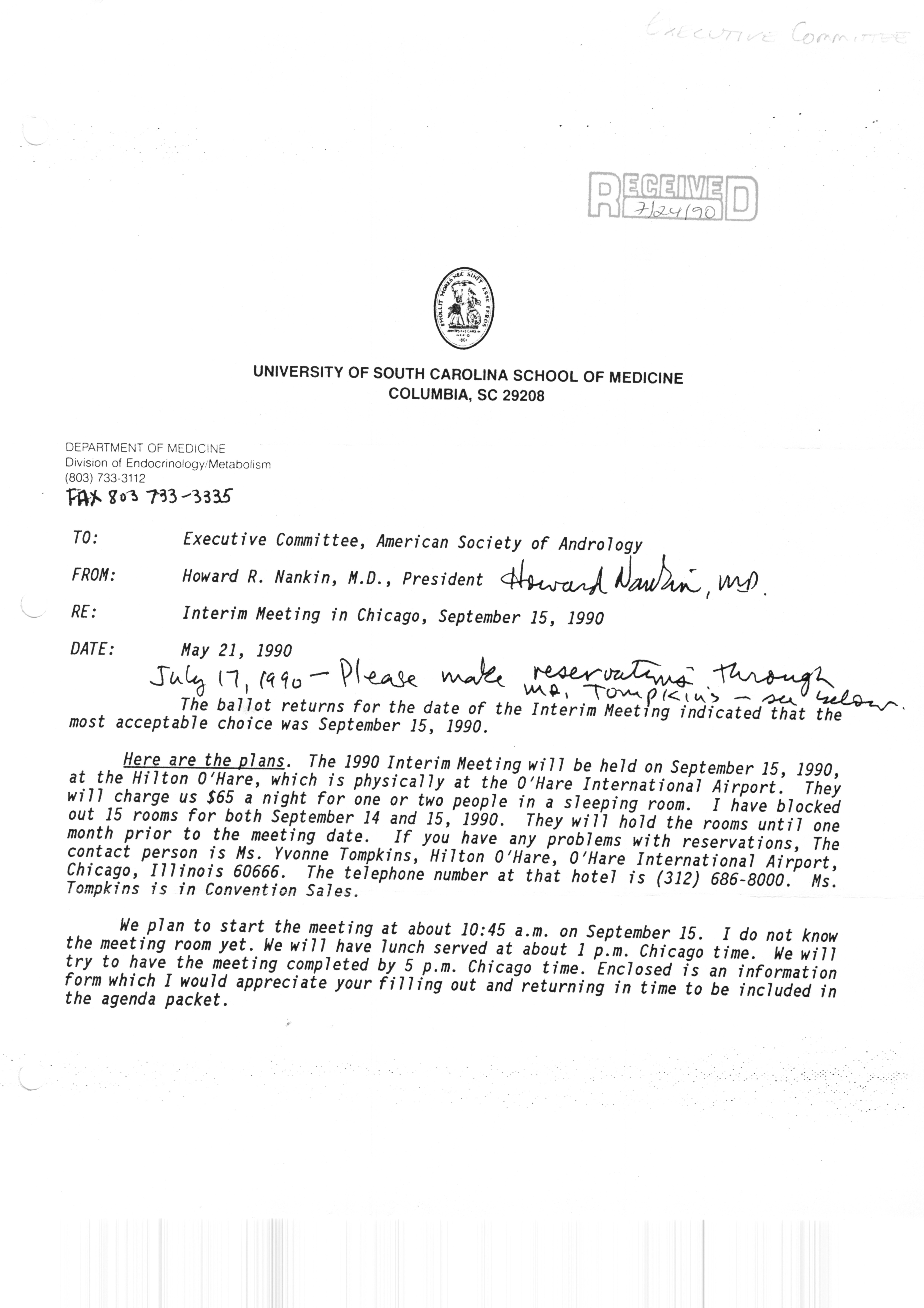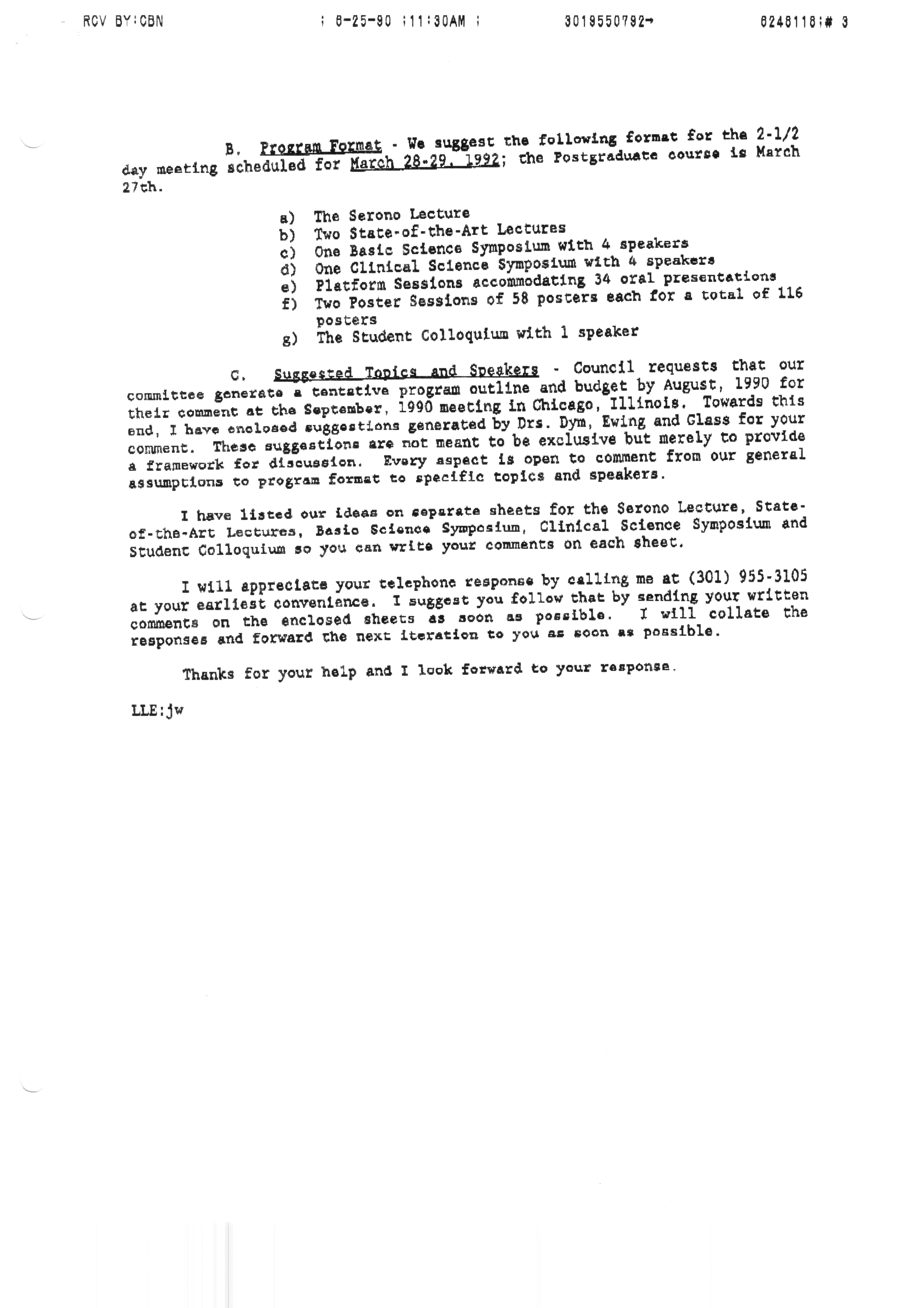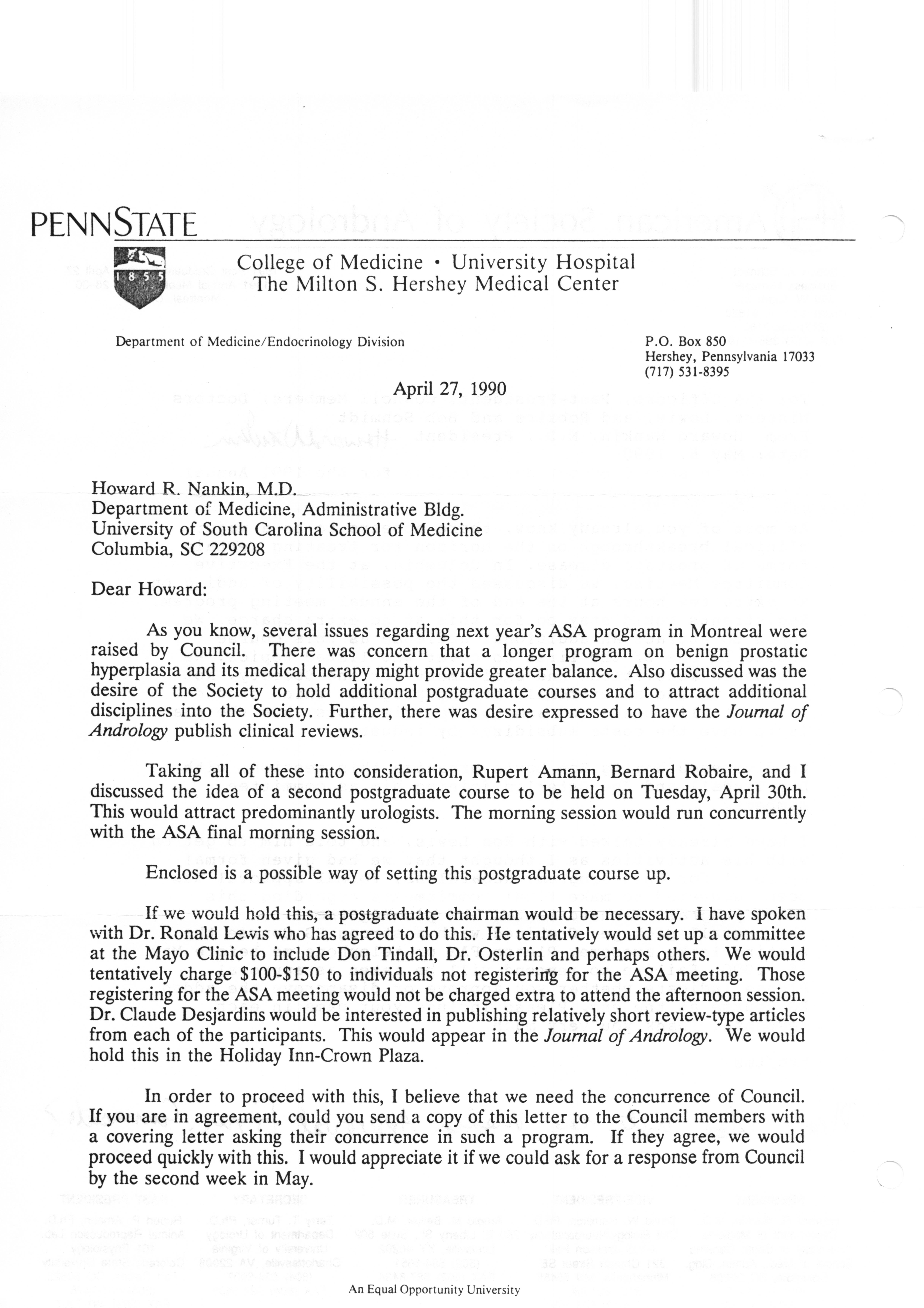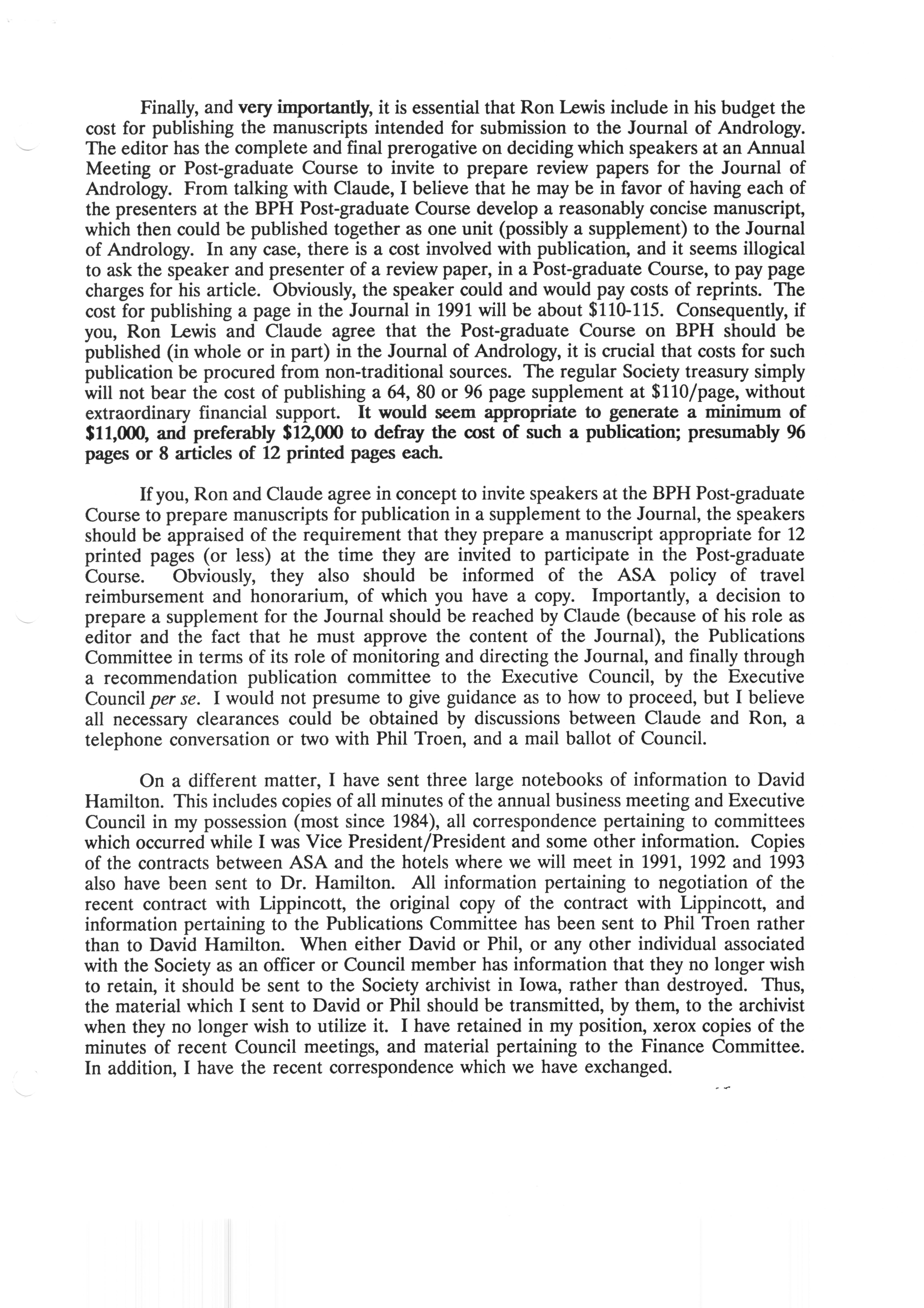 Executive Council Meetings correspondence of the American Society of Andrology, 1990 Item Info