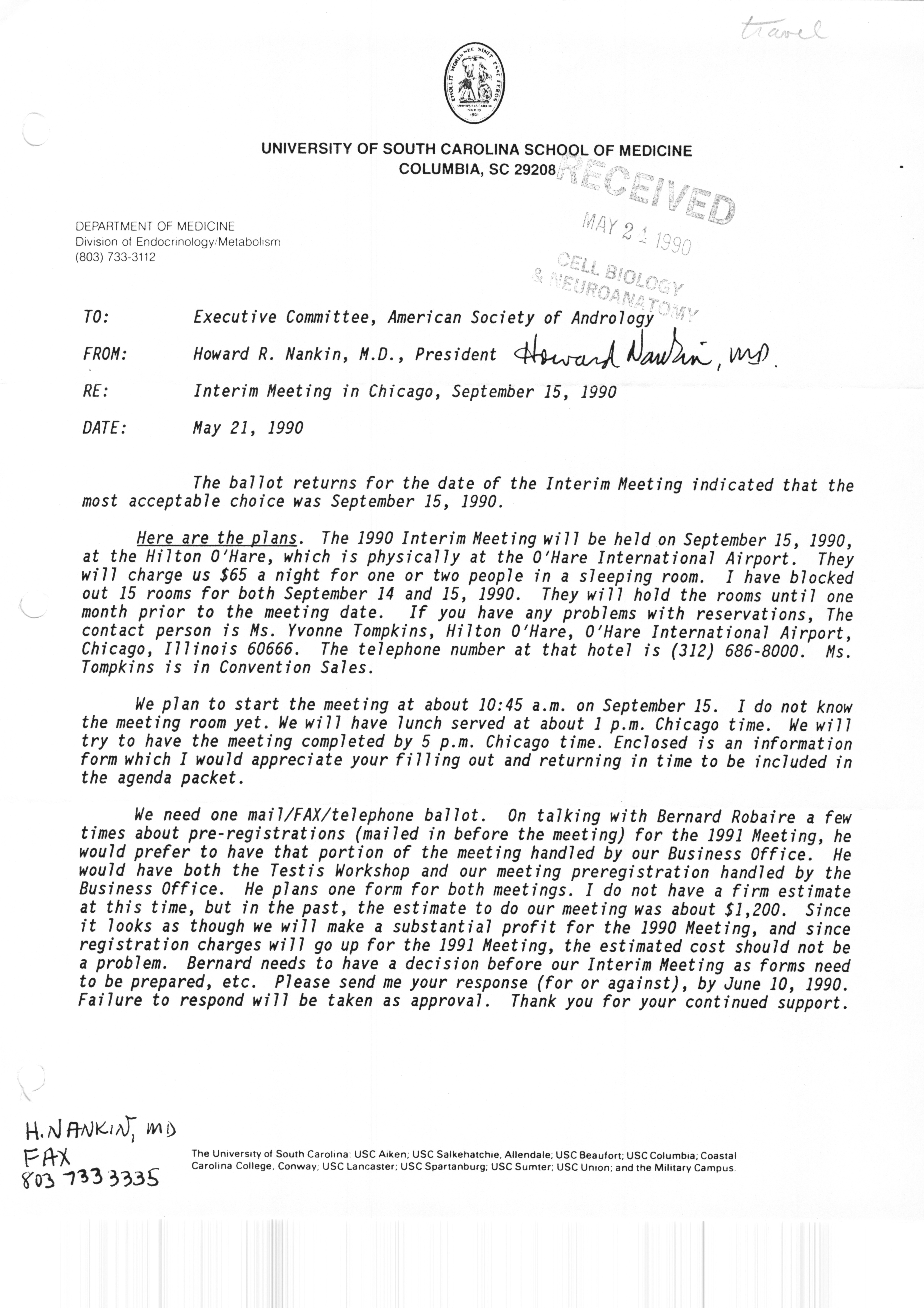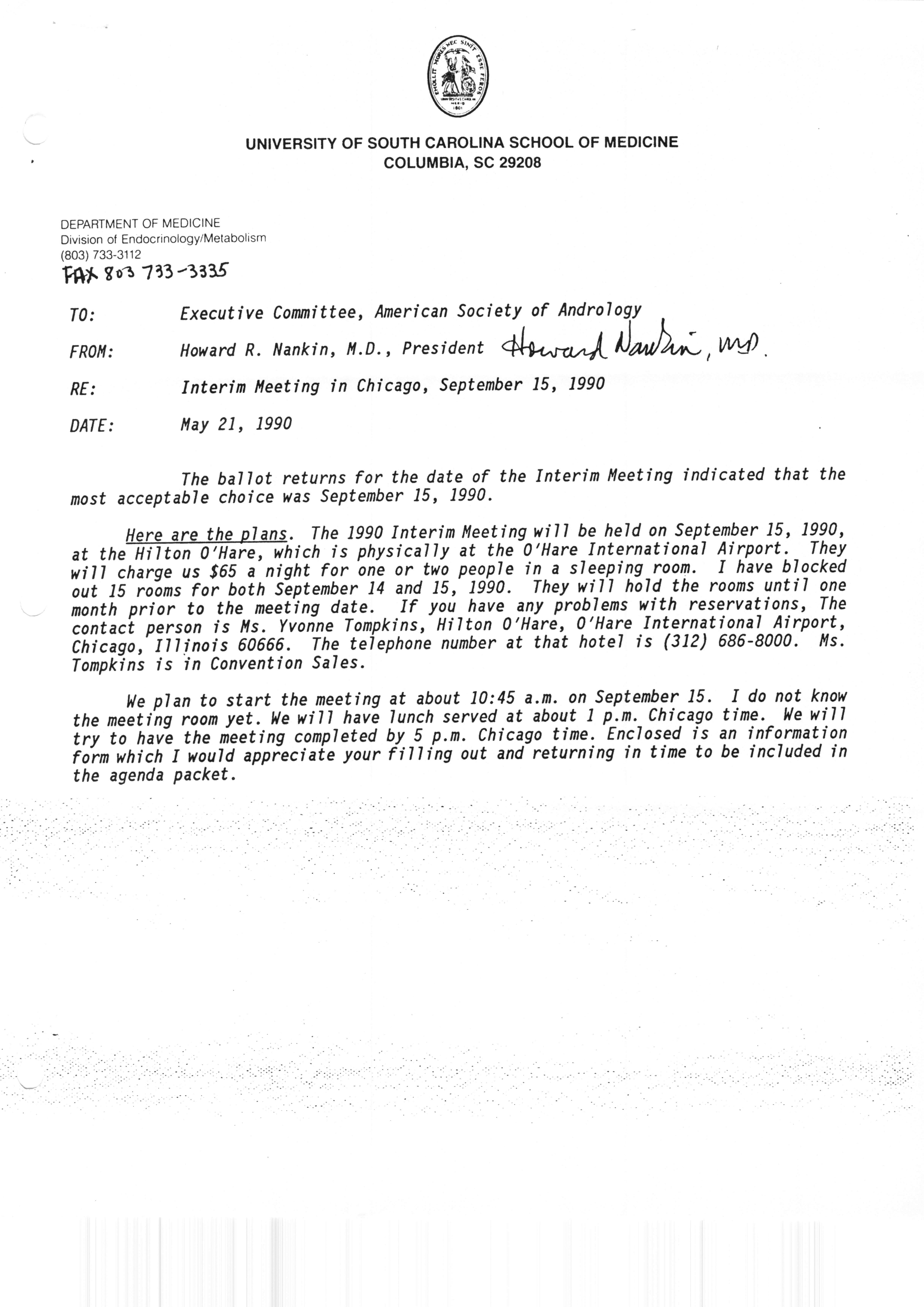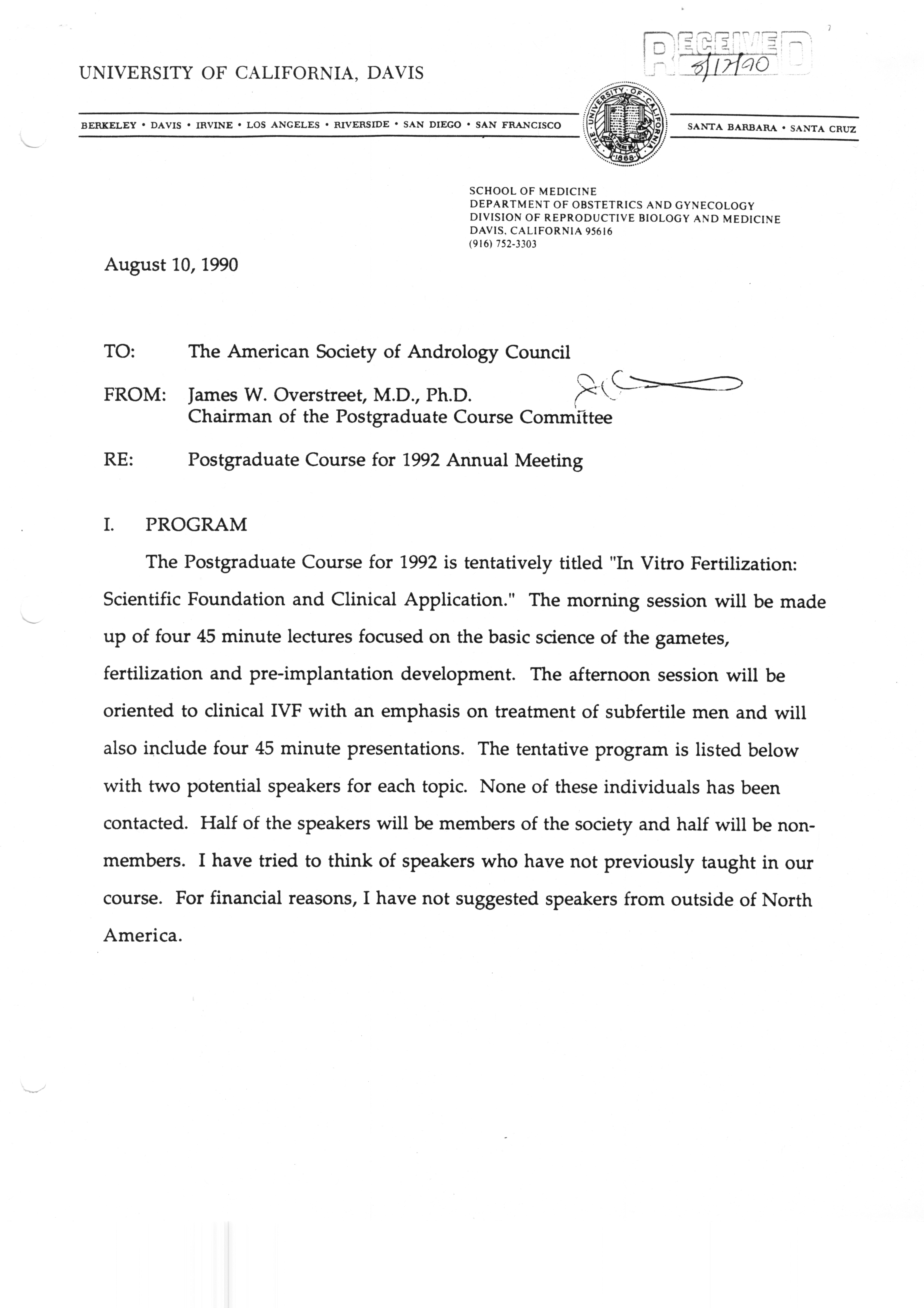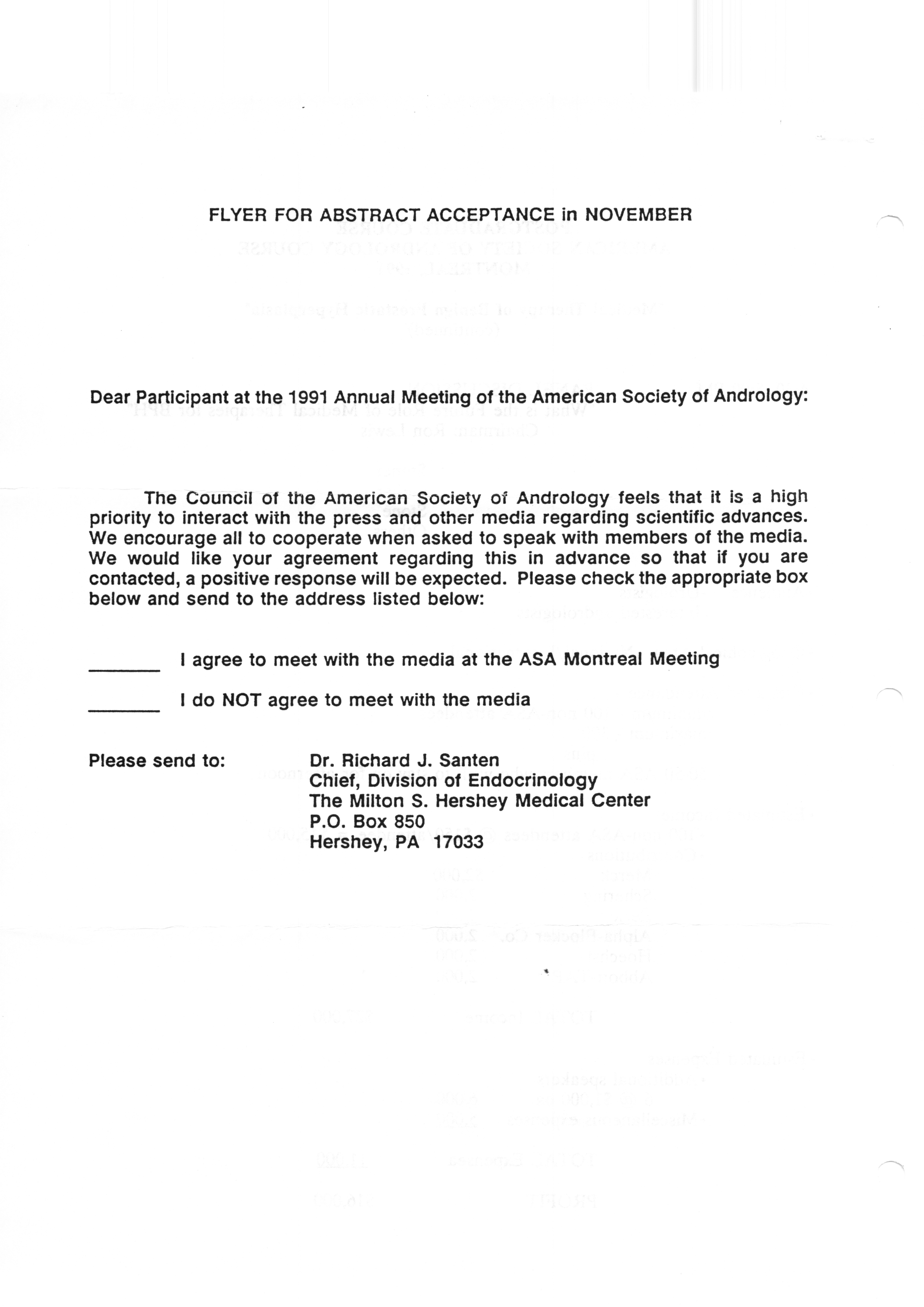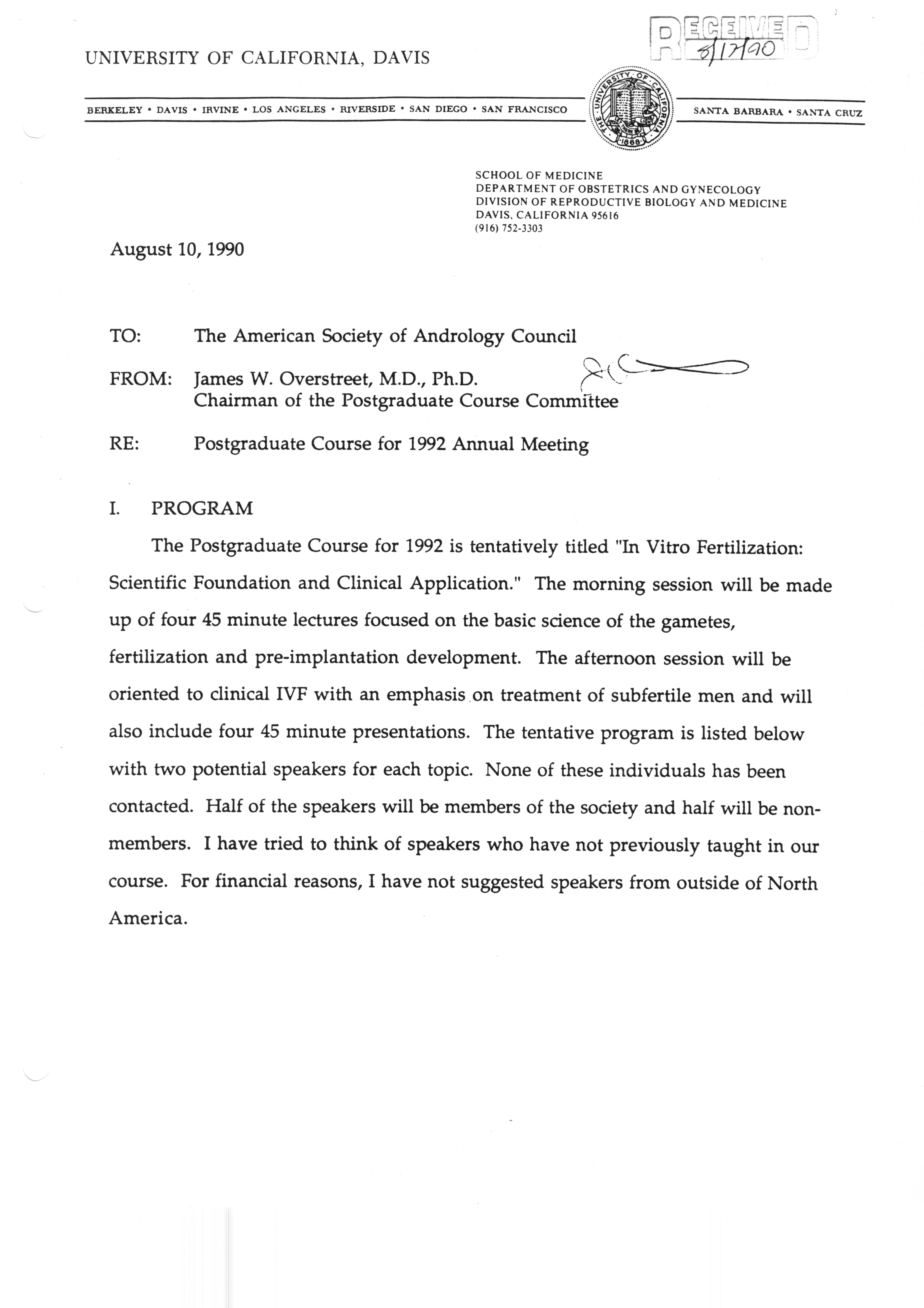 Executive Council Meetings correspondence of the American Society of Andrology, 1990 Item Info
