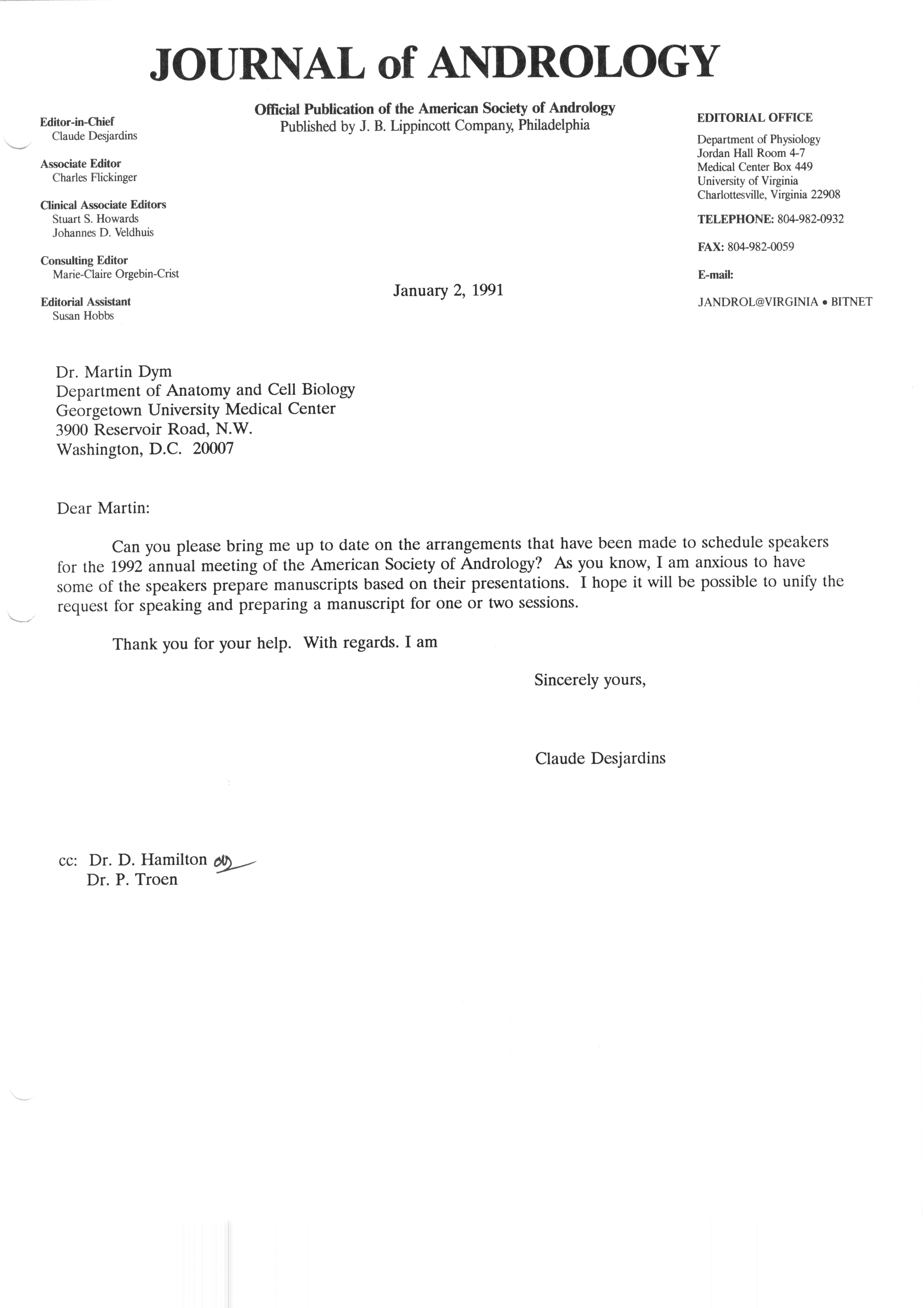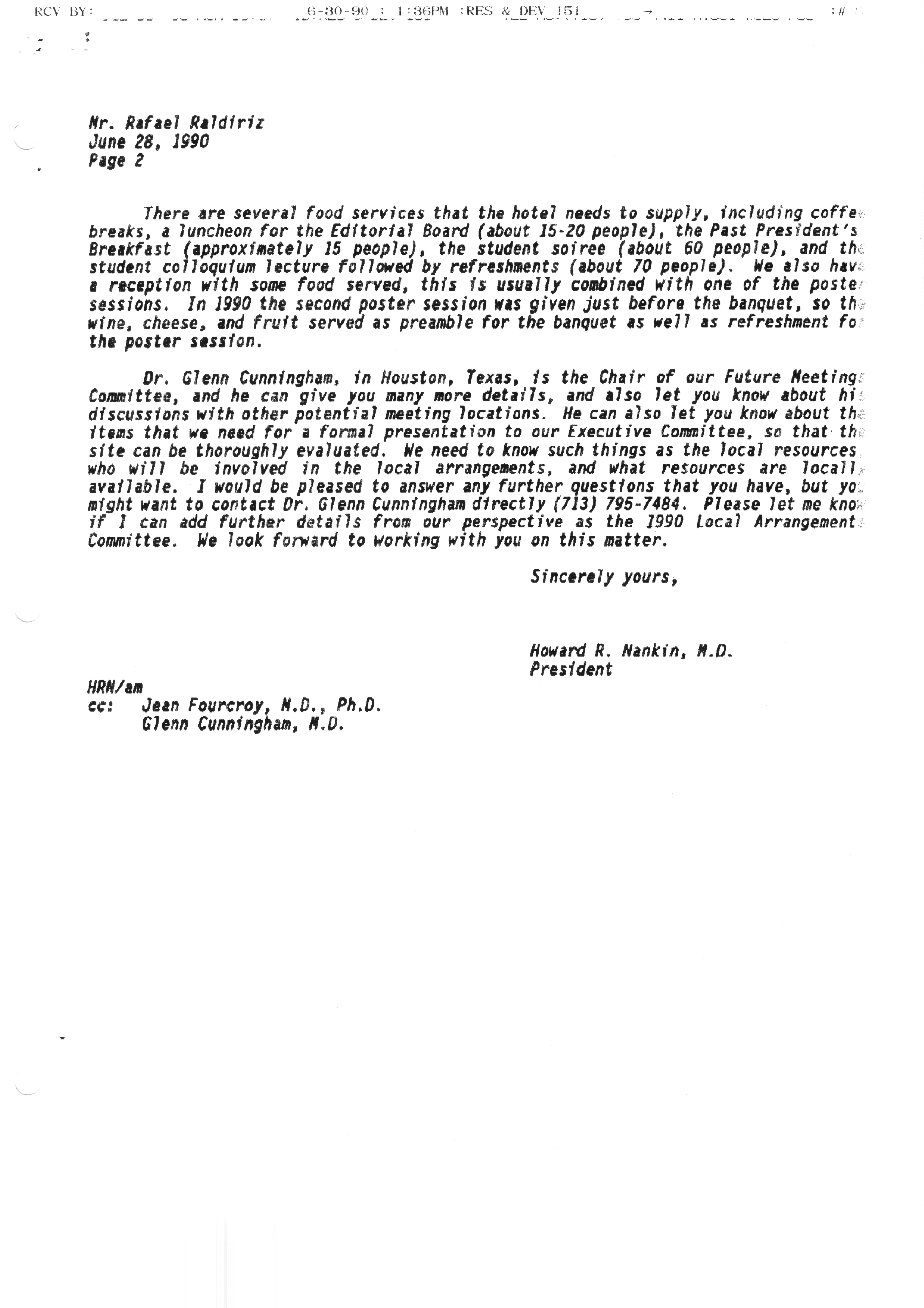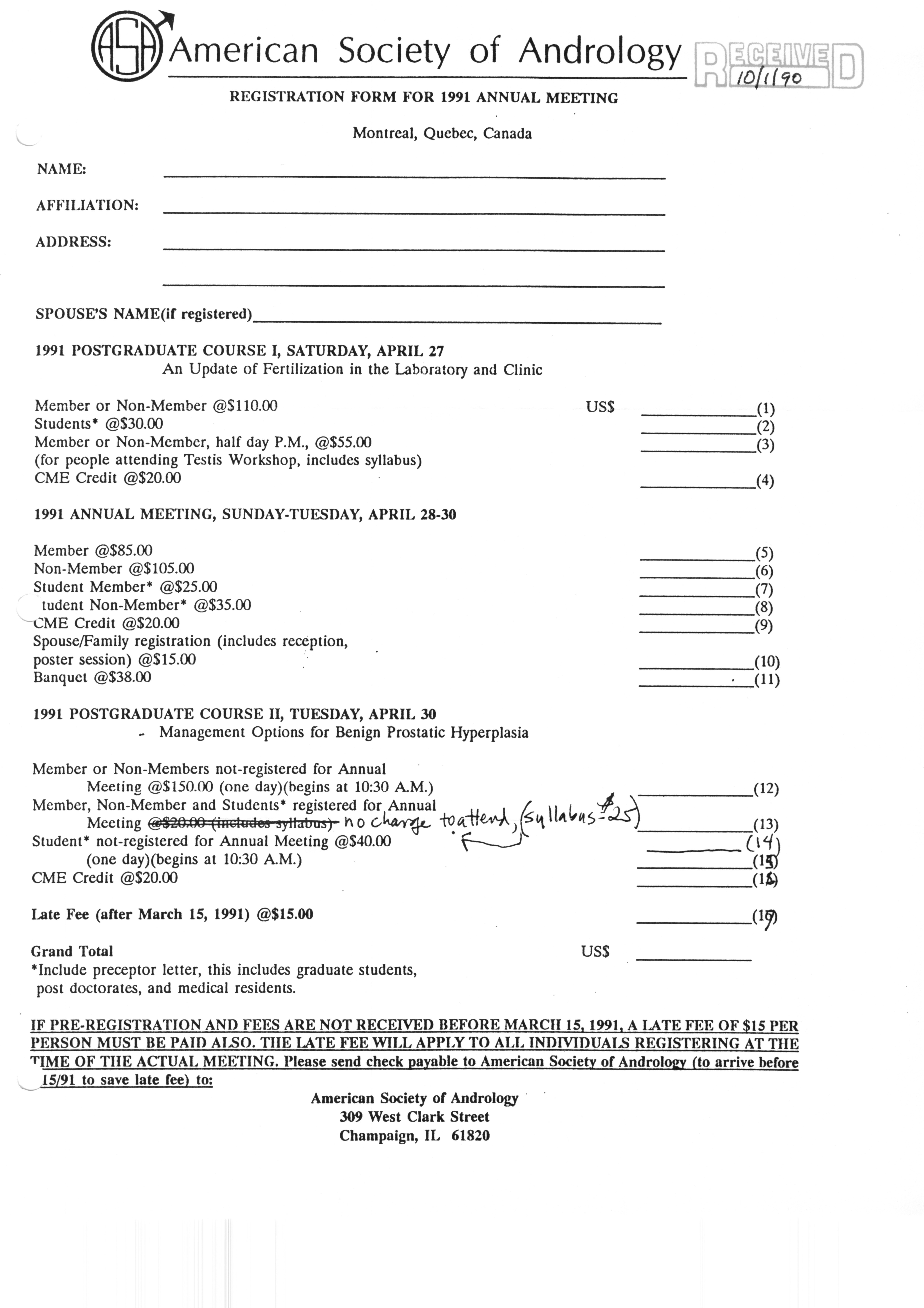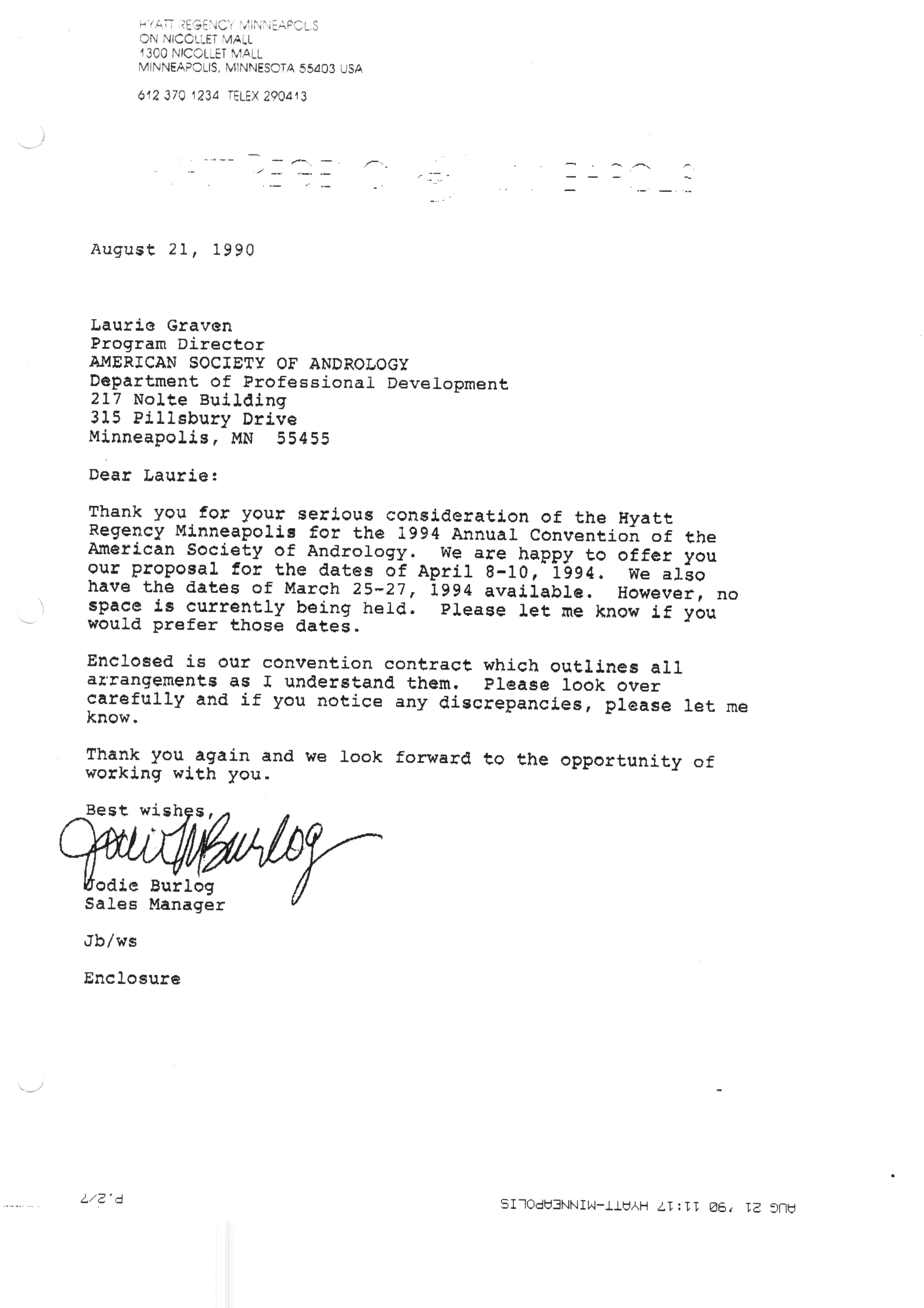Executive Council Meetings correspondence of the American Society of Andrology, 1990 Item Info