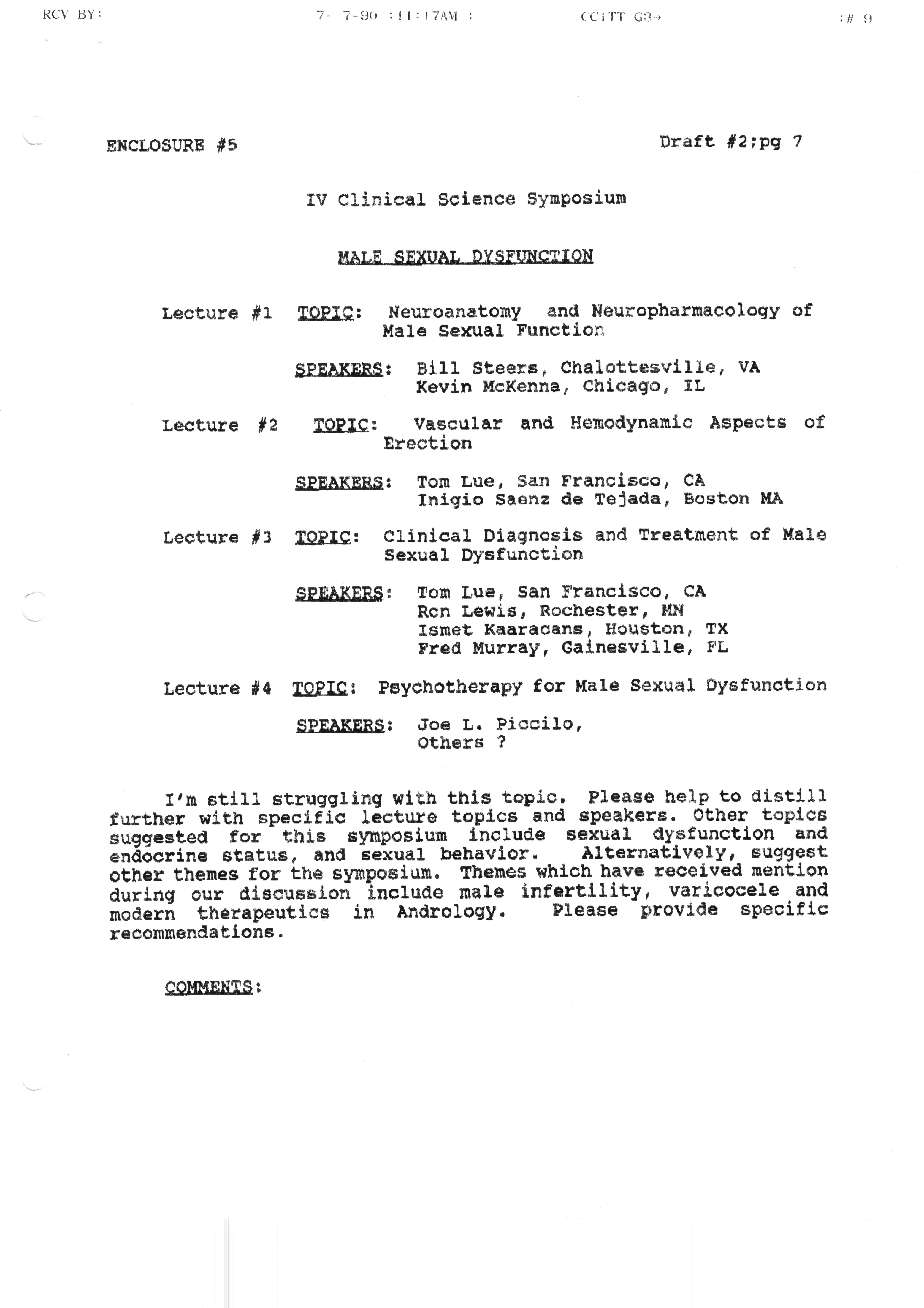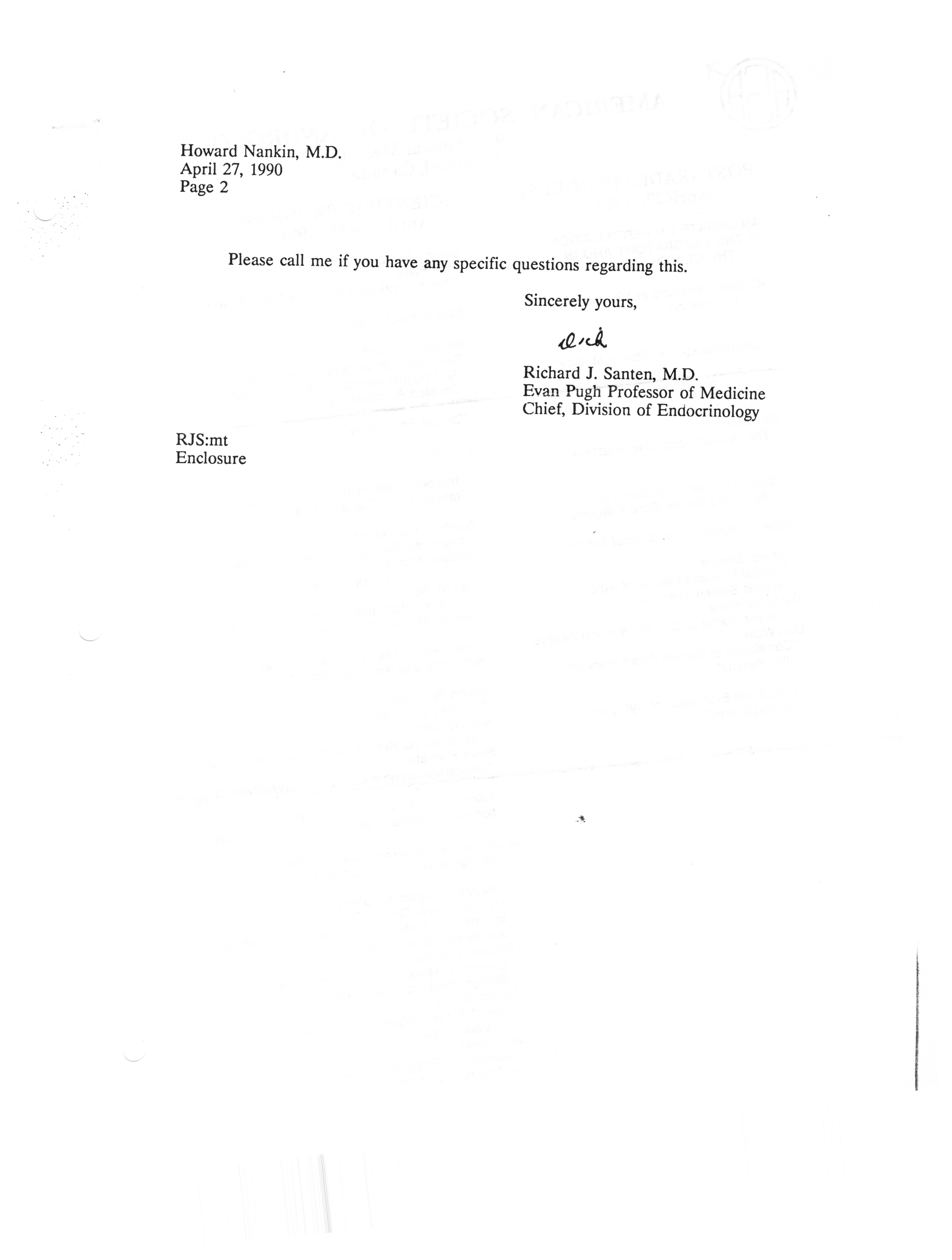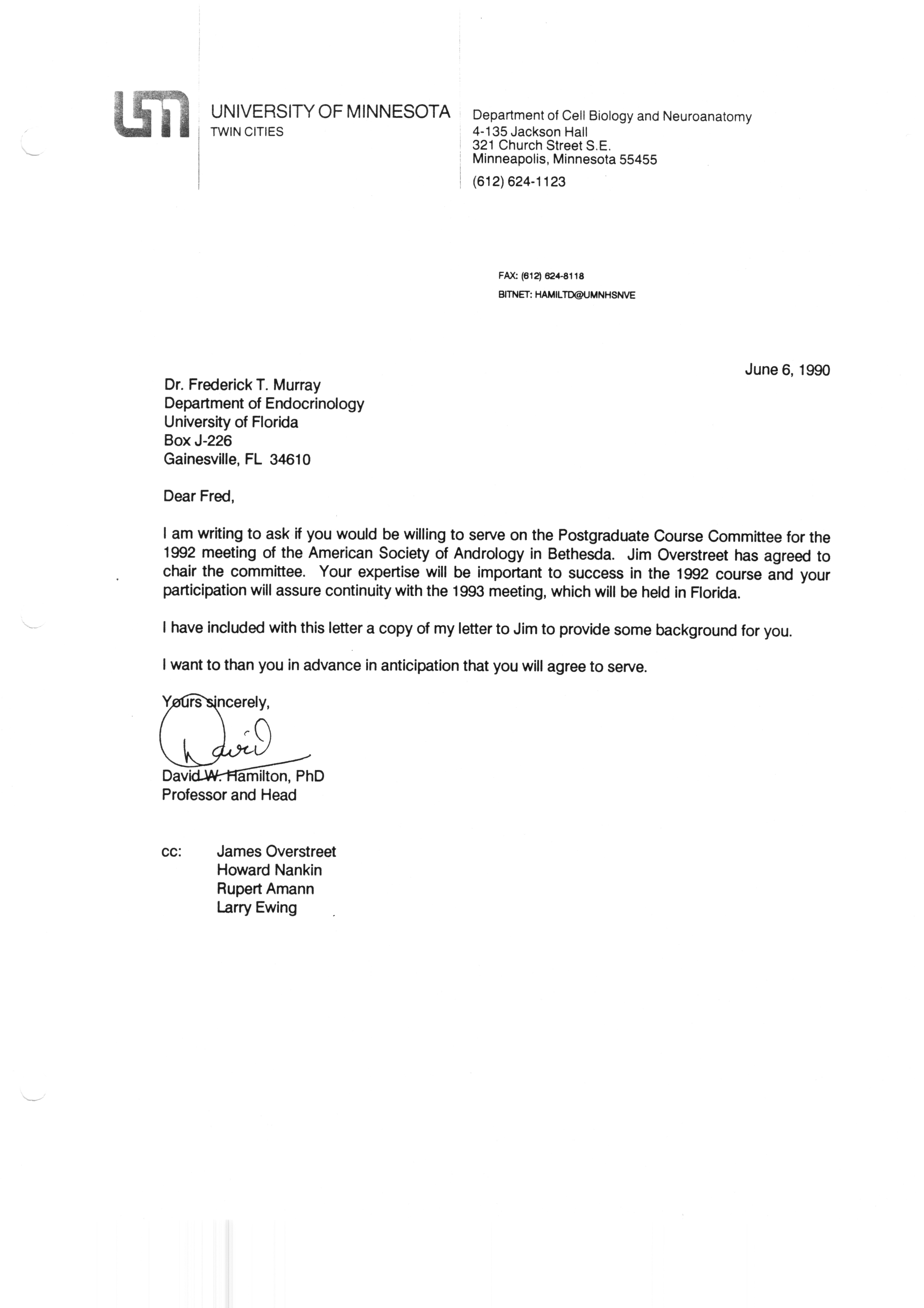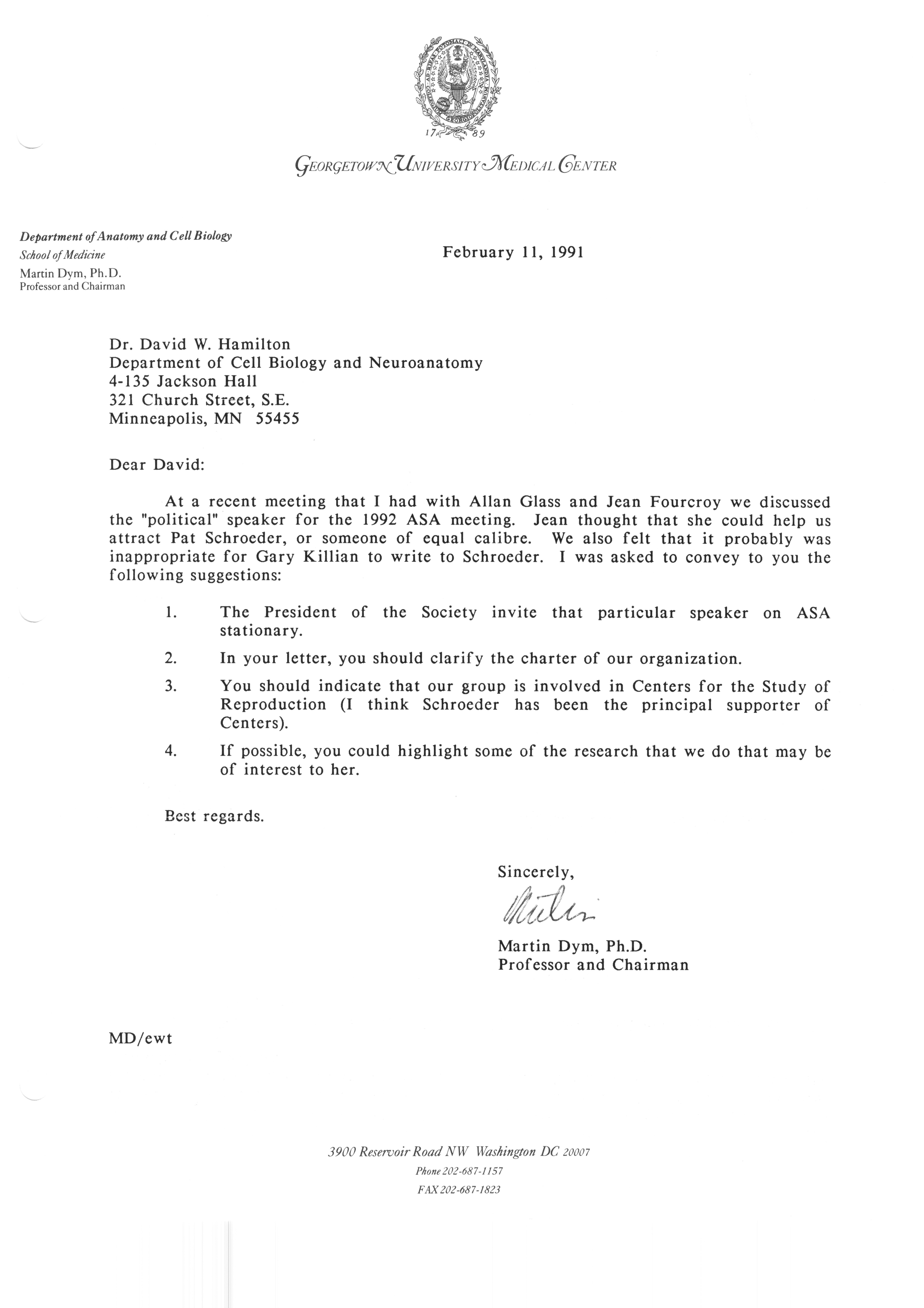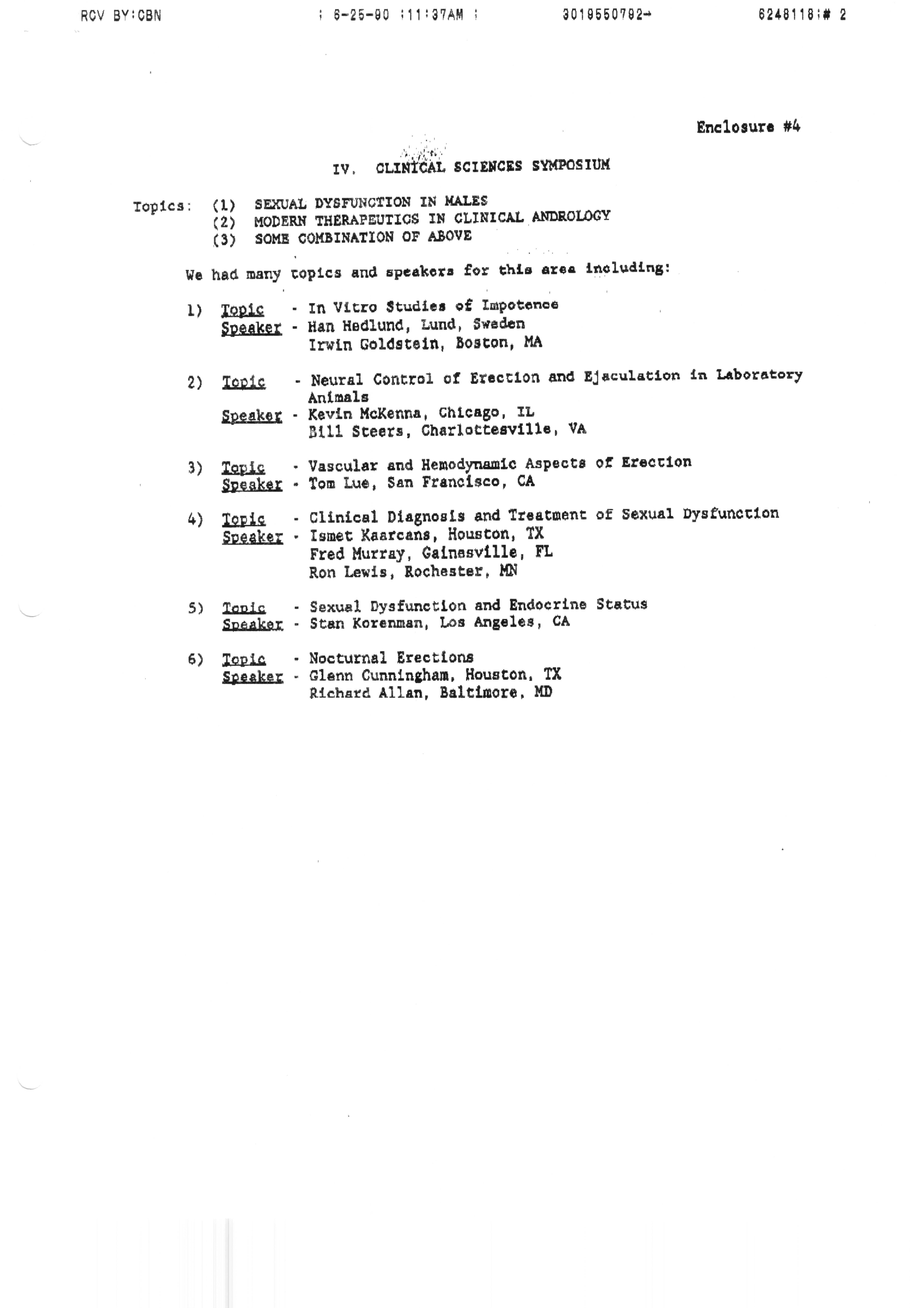 Executive Council Meetings correspondence of the American Society of Andrology, 1990 Item Info