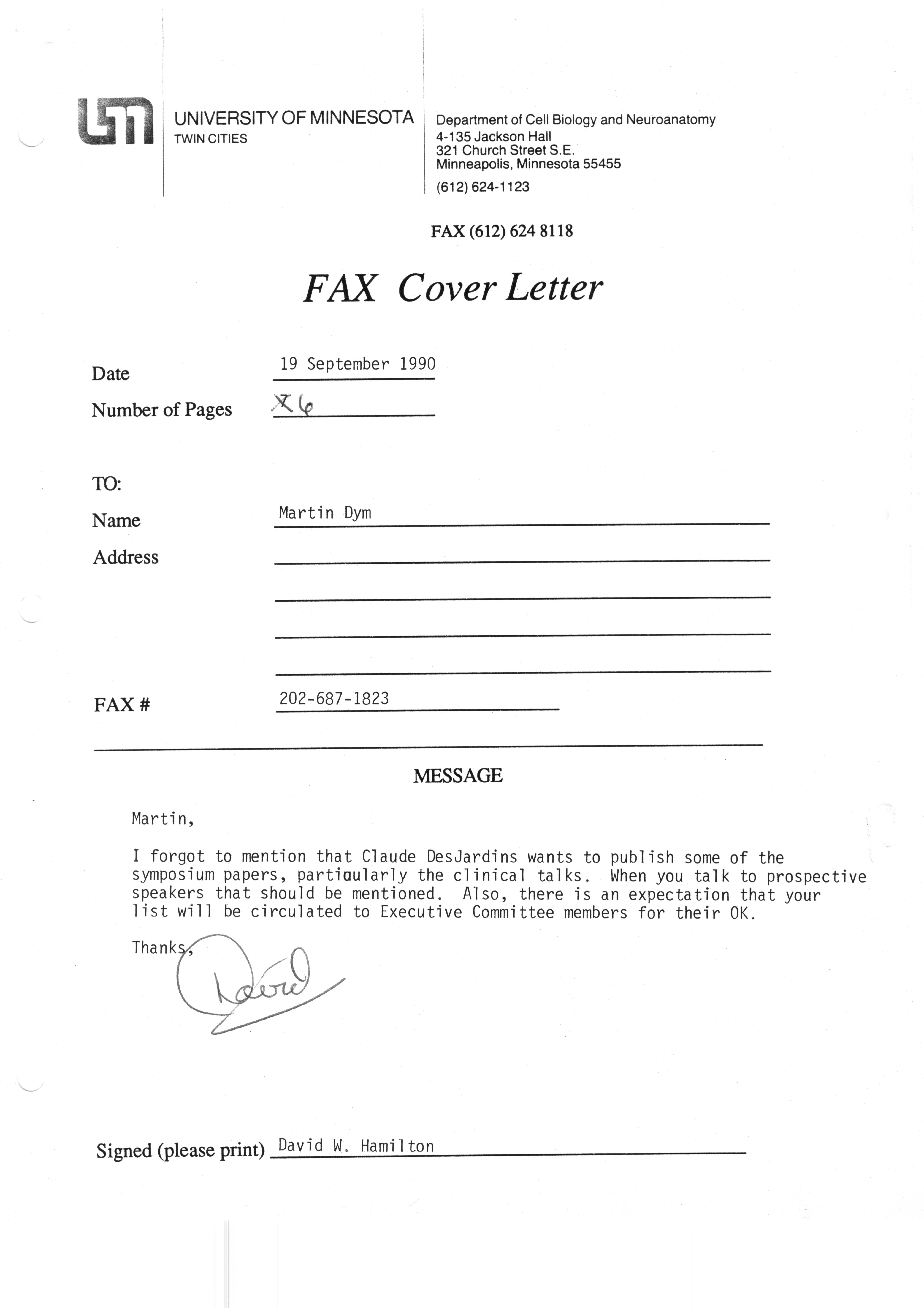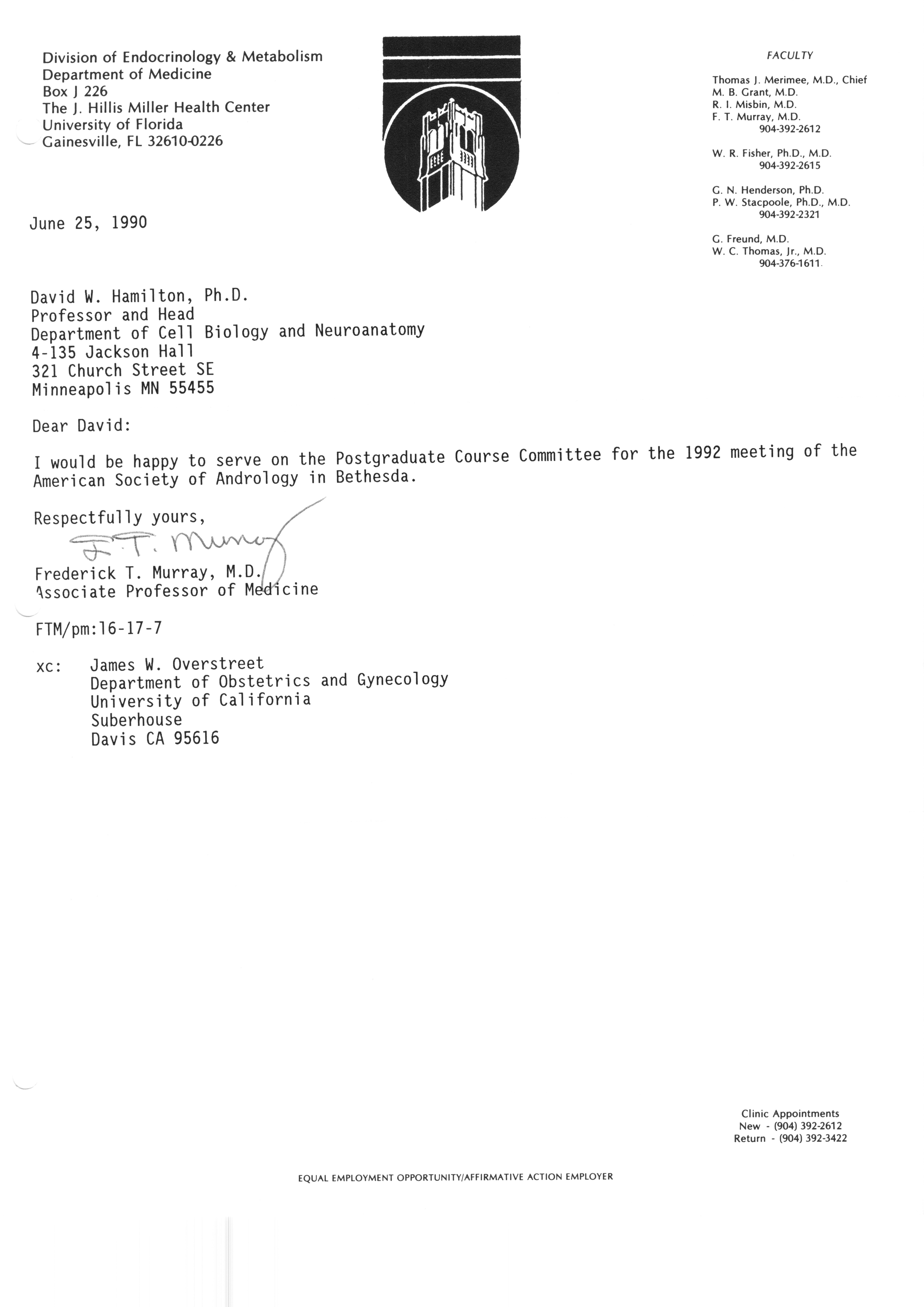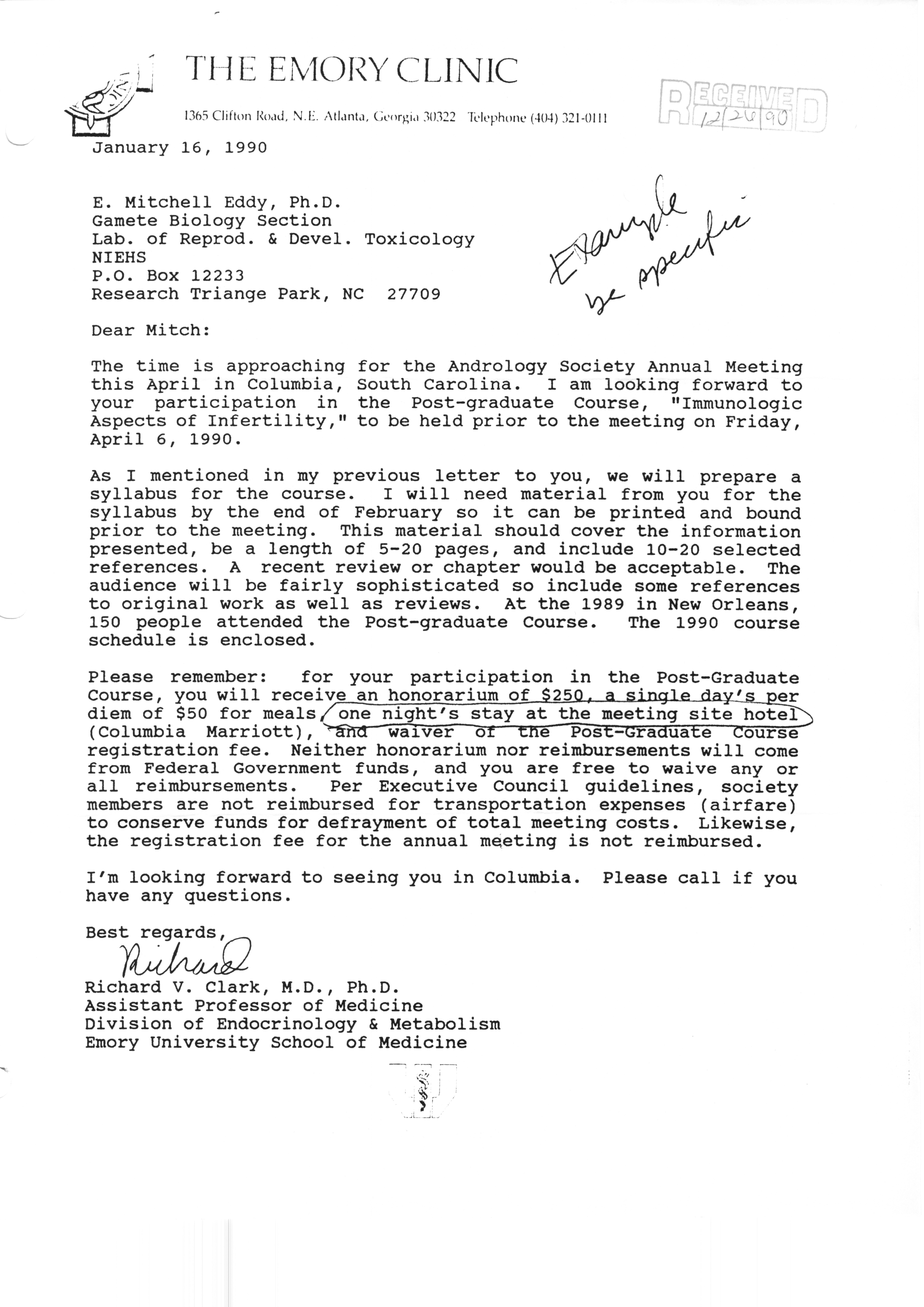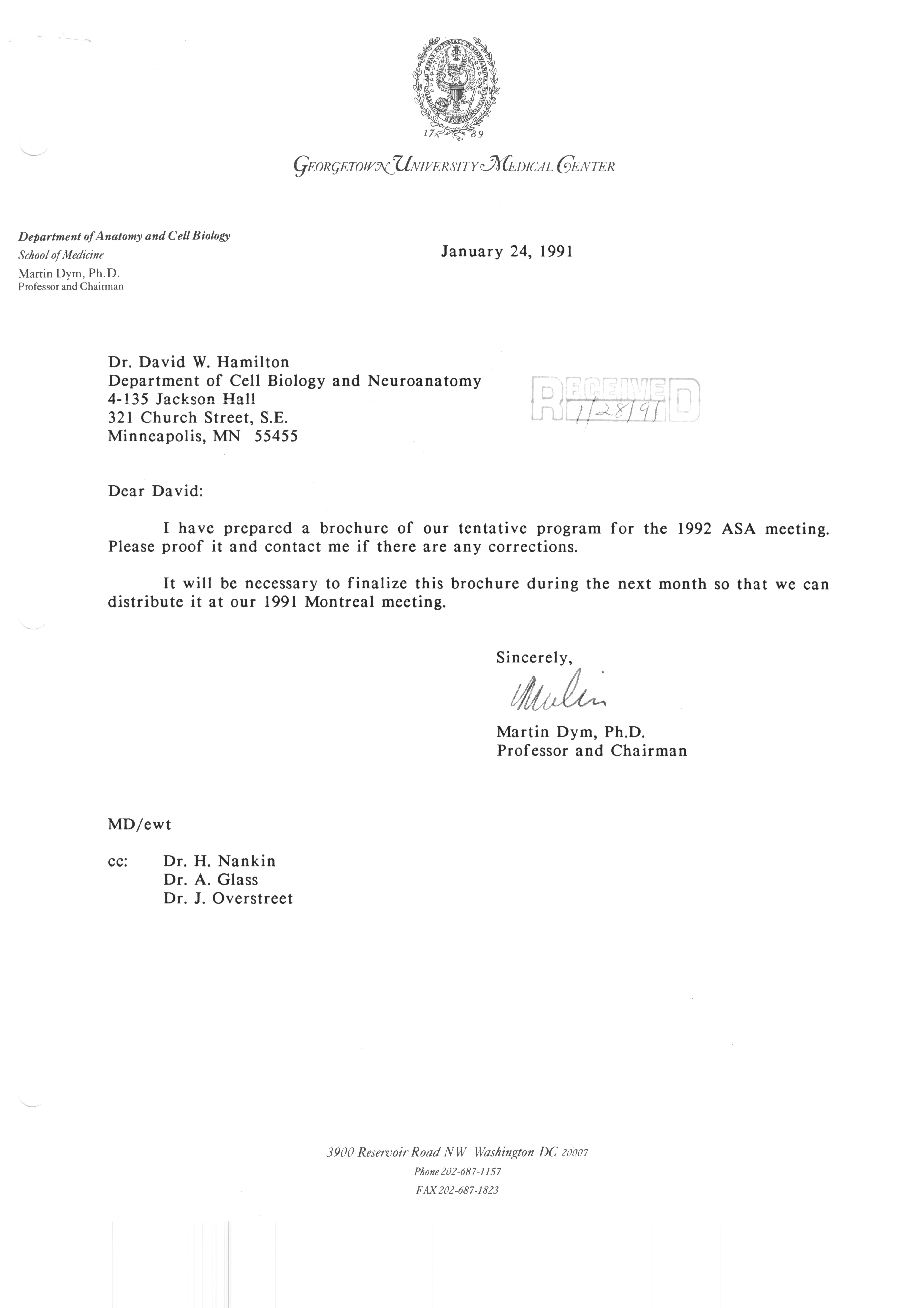 Executive Council Meetings correspondence of the American Society of Andrology, 1990 Item Info