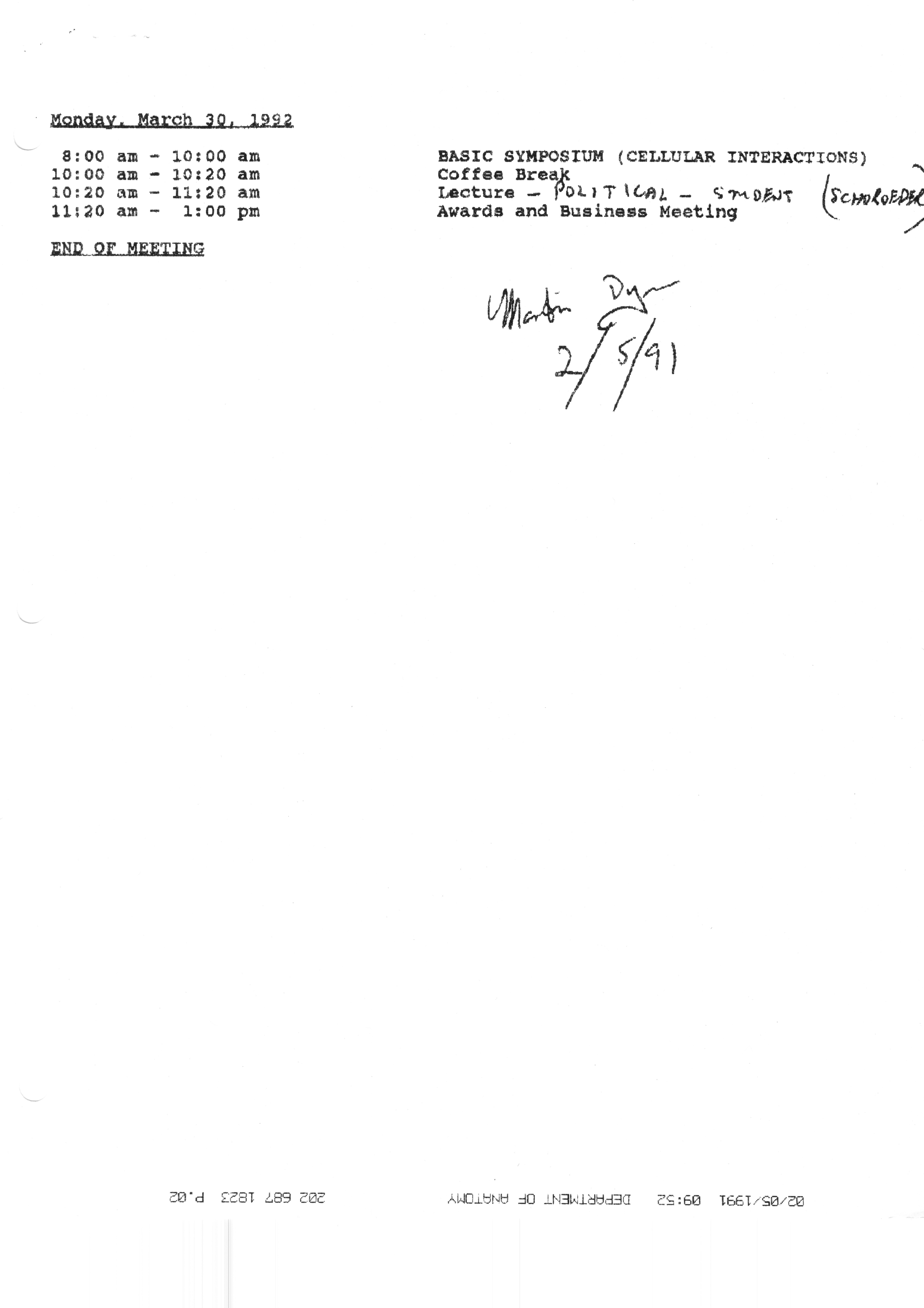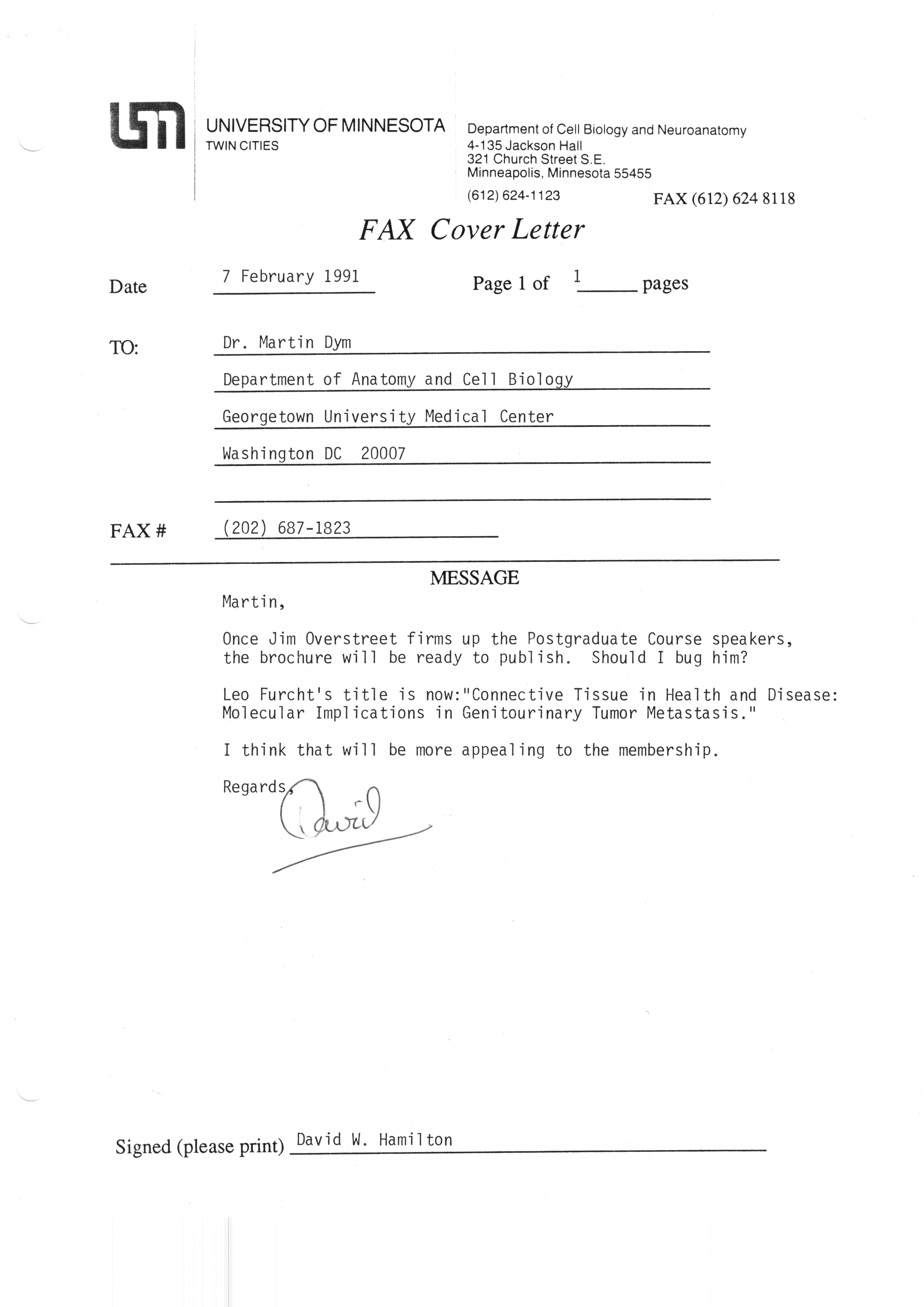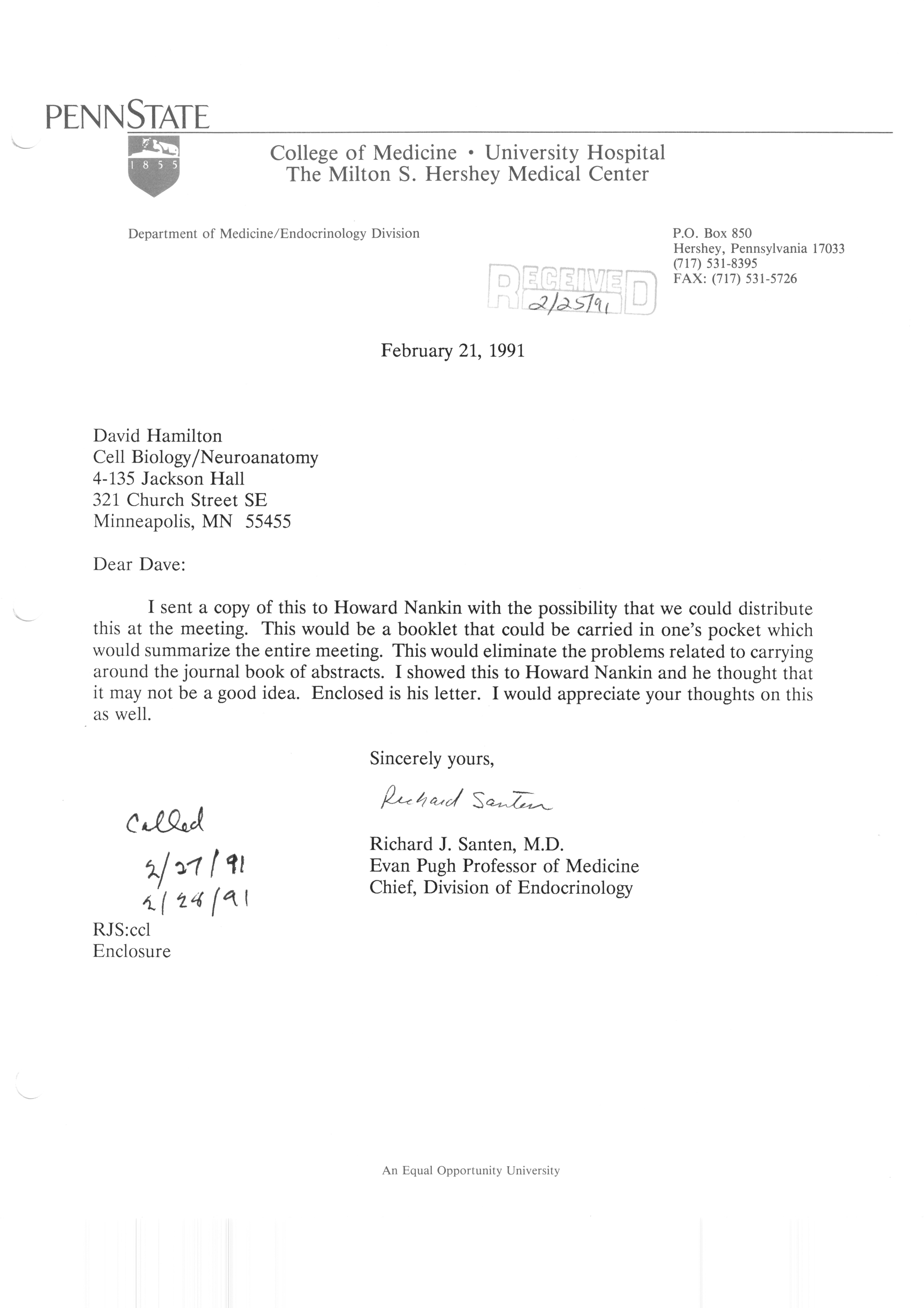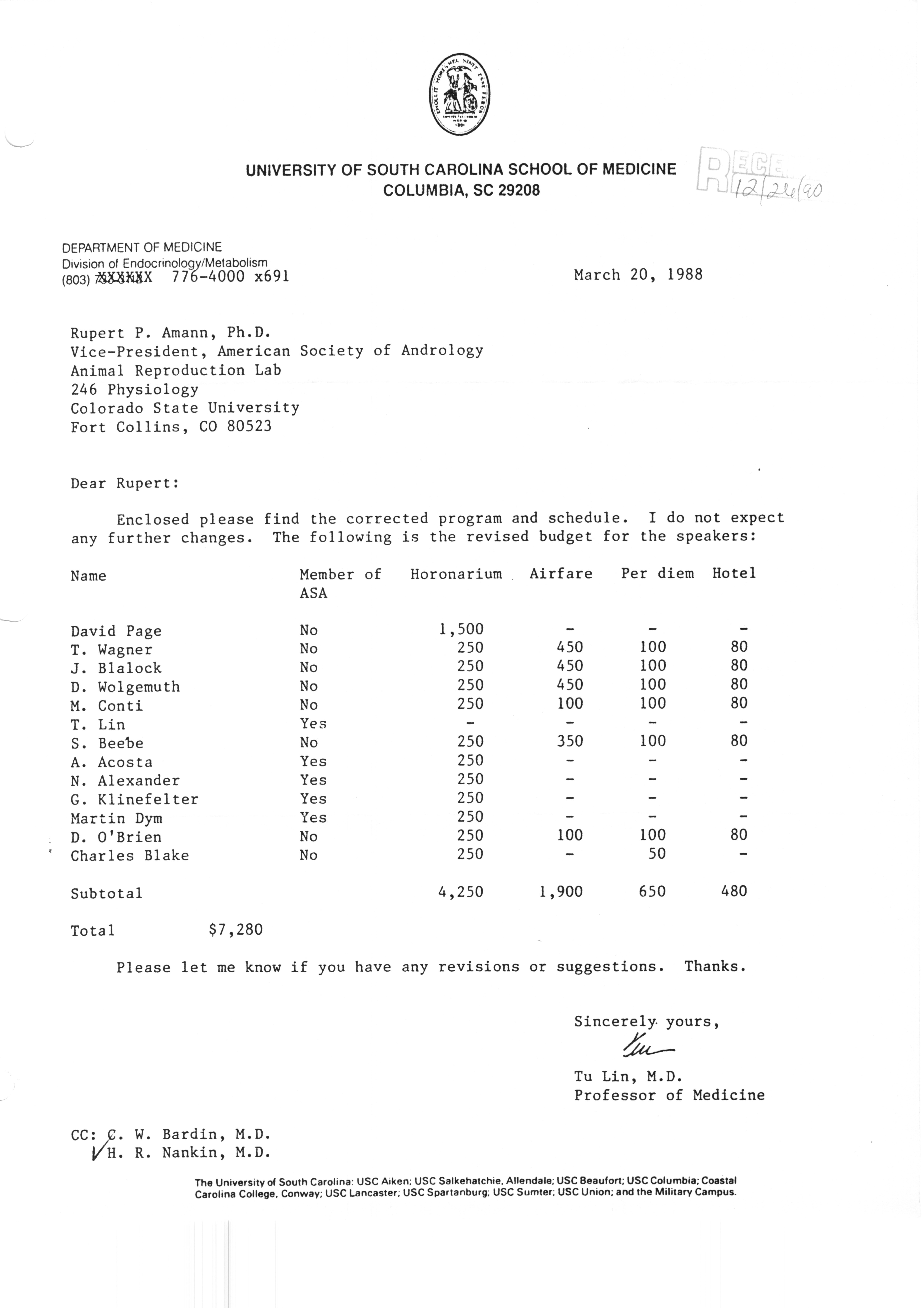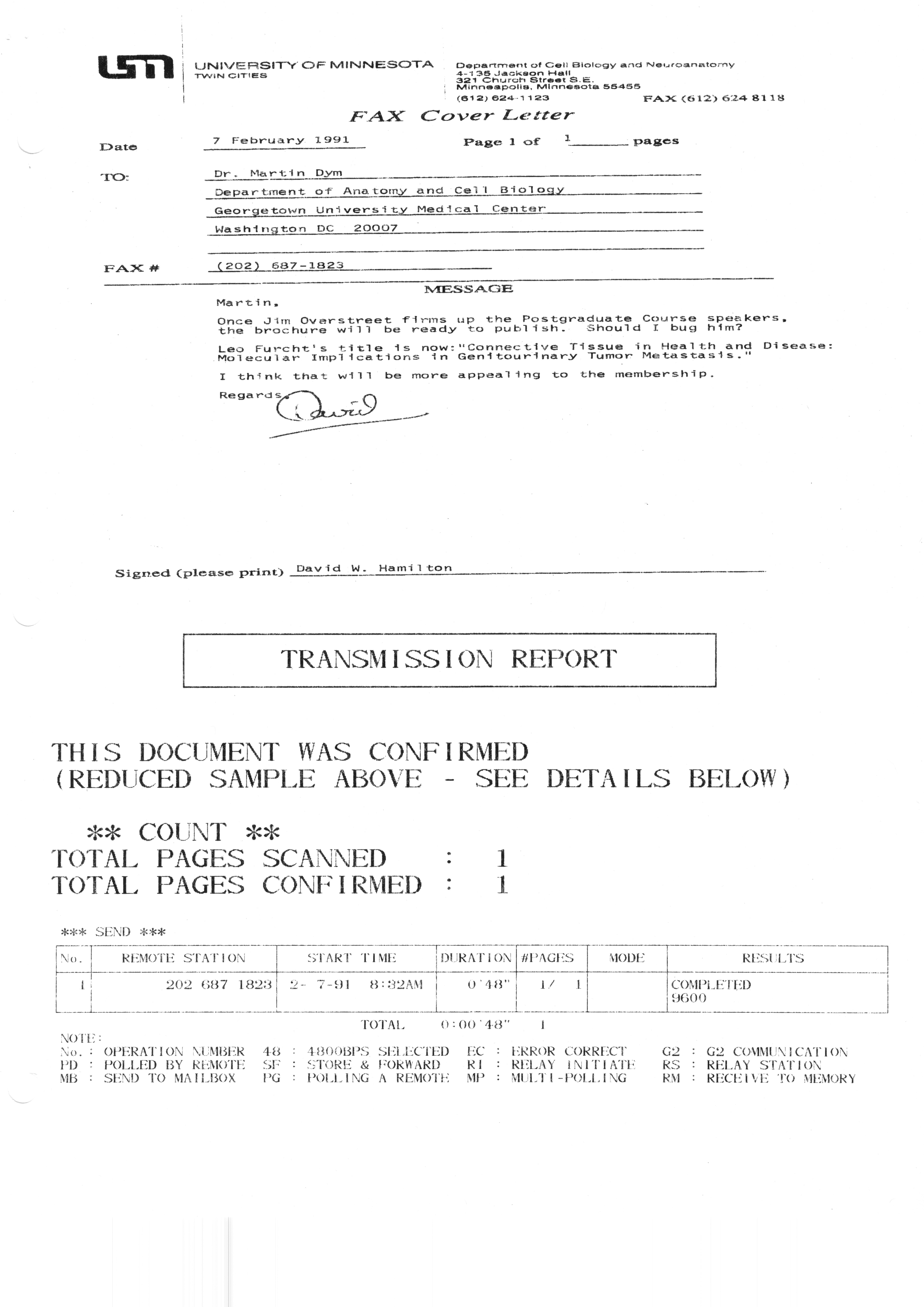 Executive Council Meetings correspondence of the American Society of Andrology, 1990 Item Info