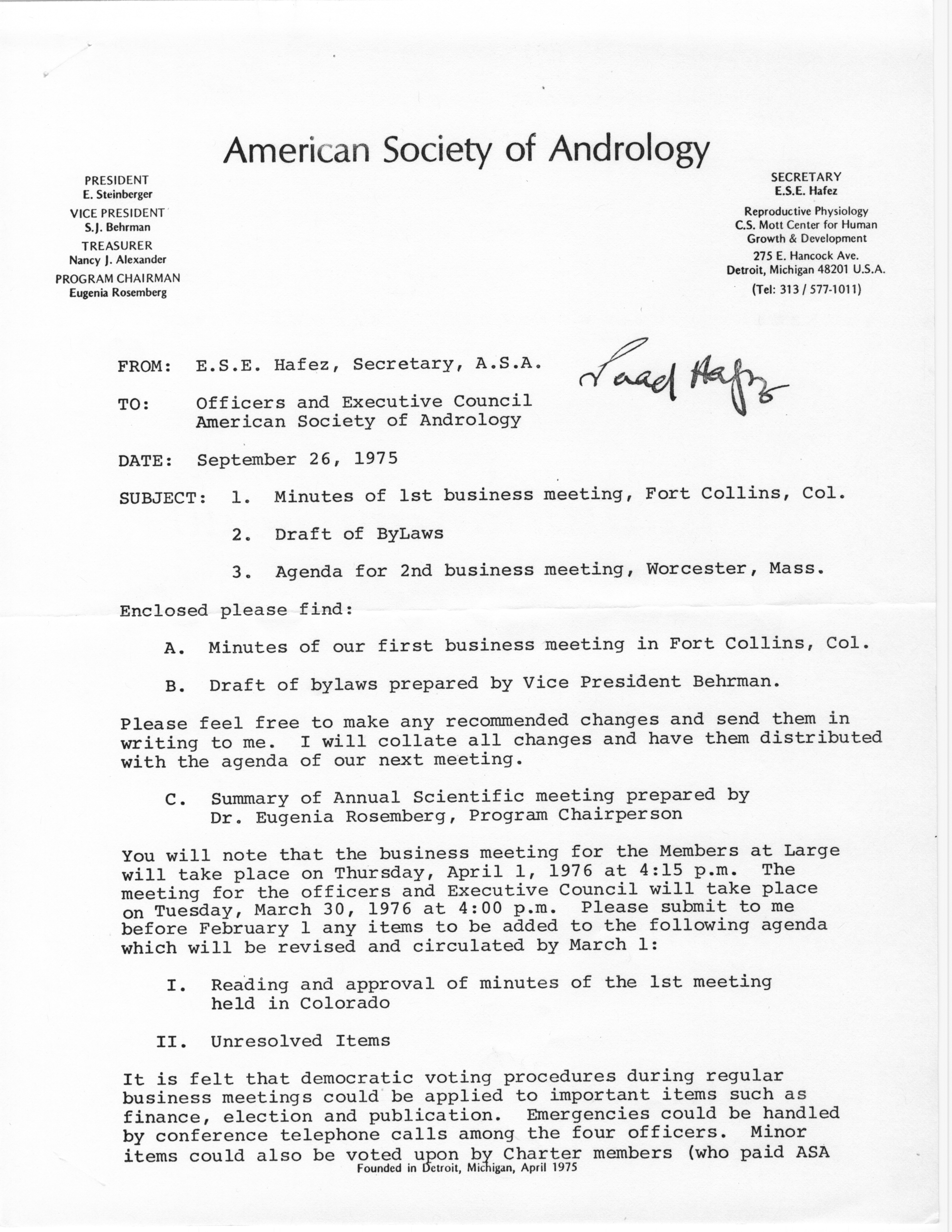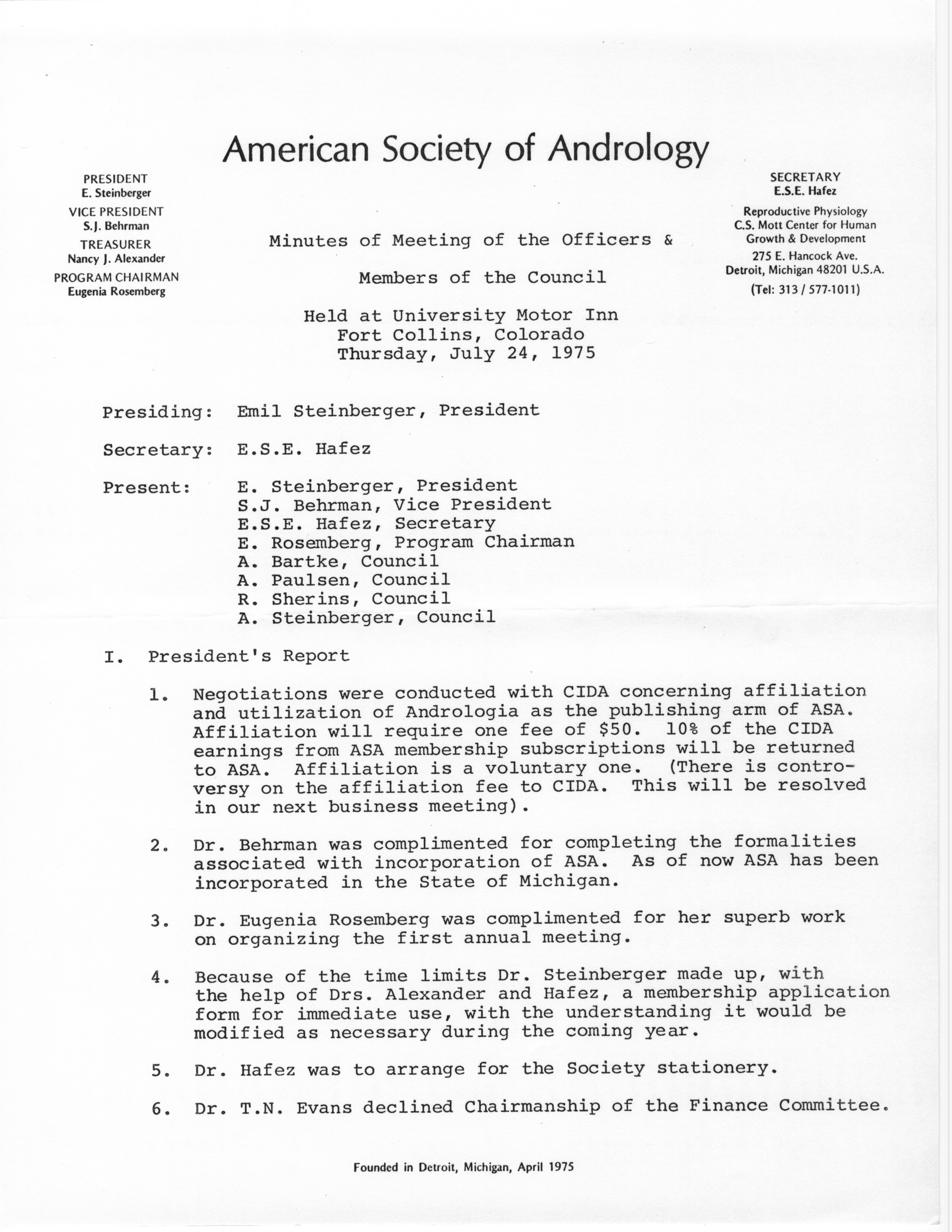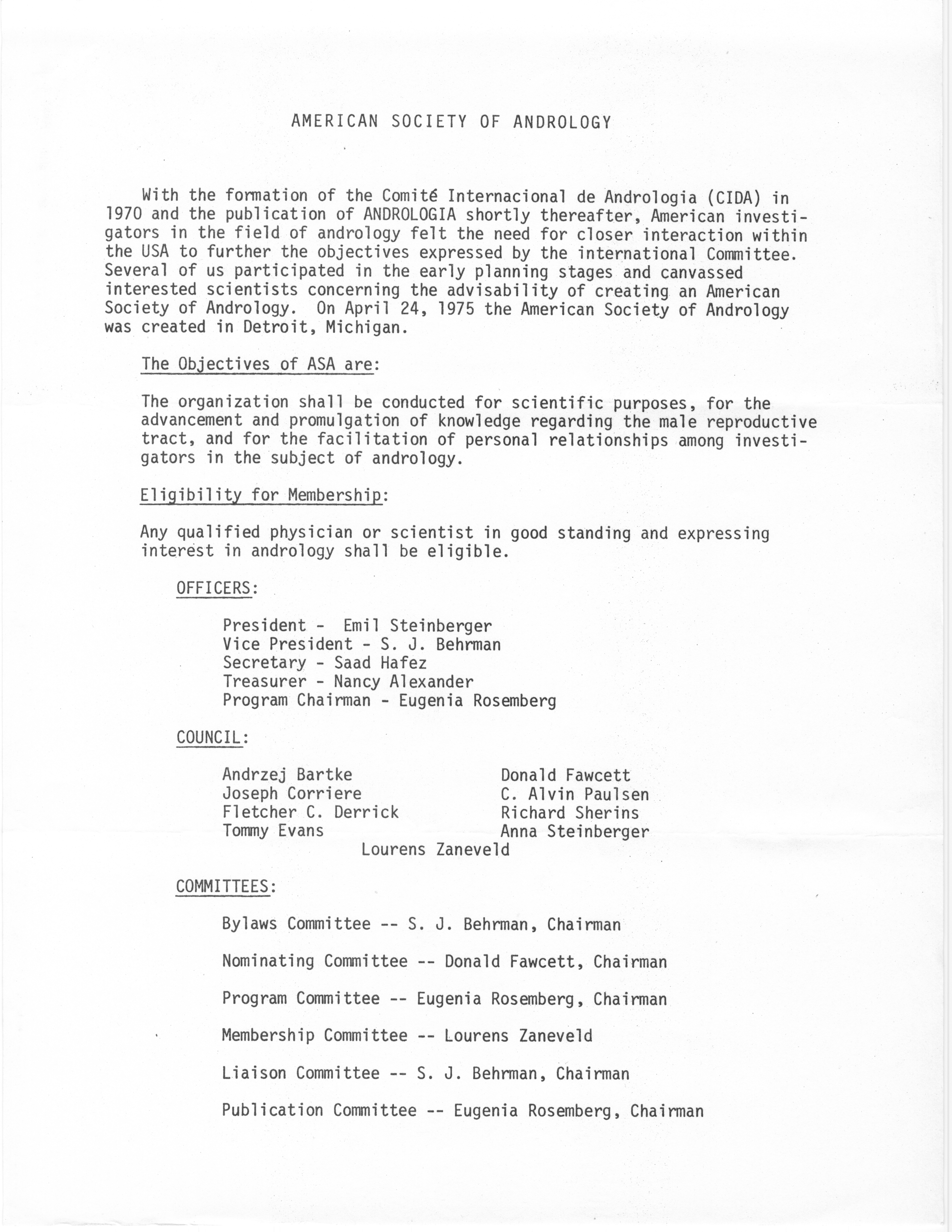 - "Annual Meeting of the American Society of Andrology, 1975", American Society of Andrology Collection, Iowa State University Library Digital Collections