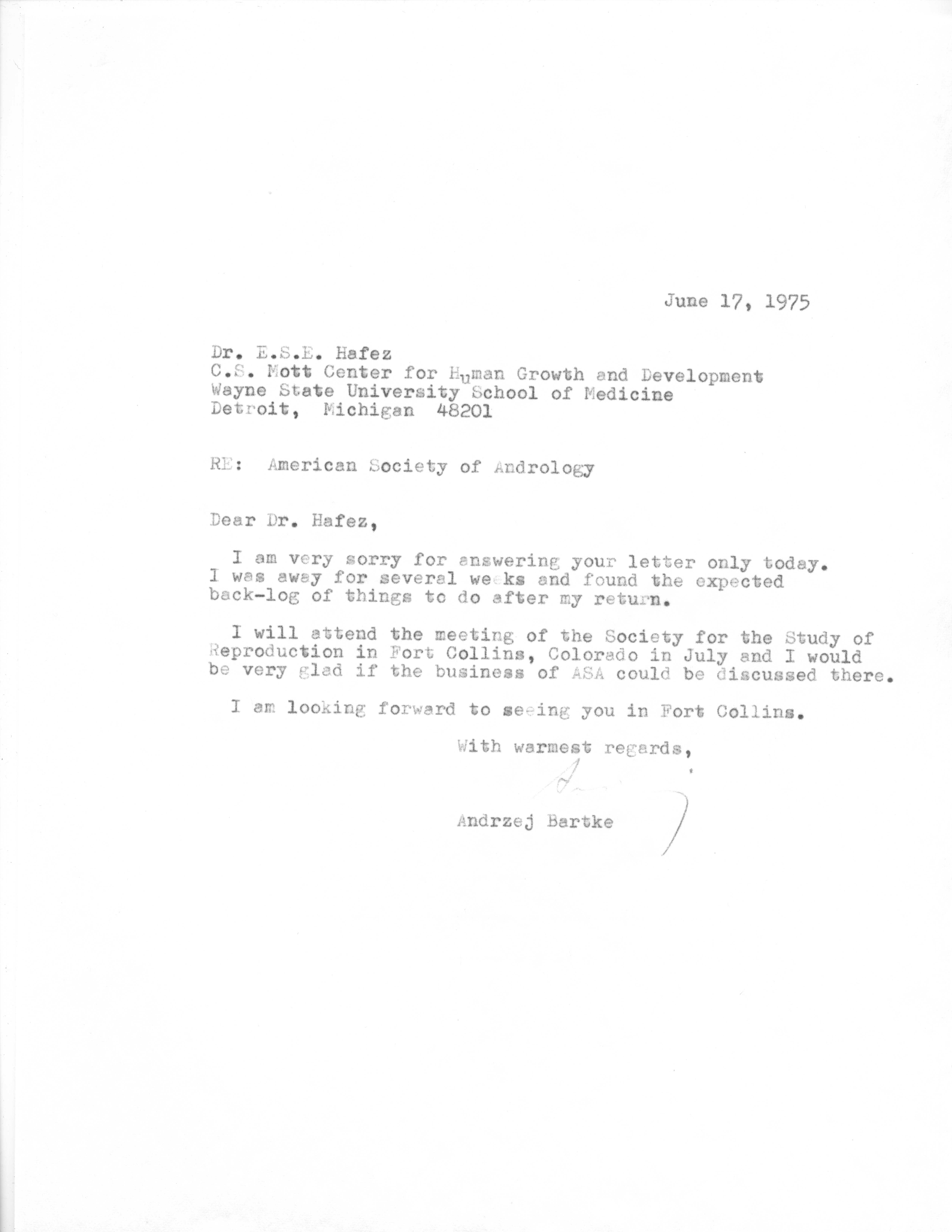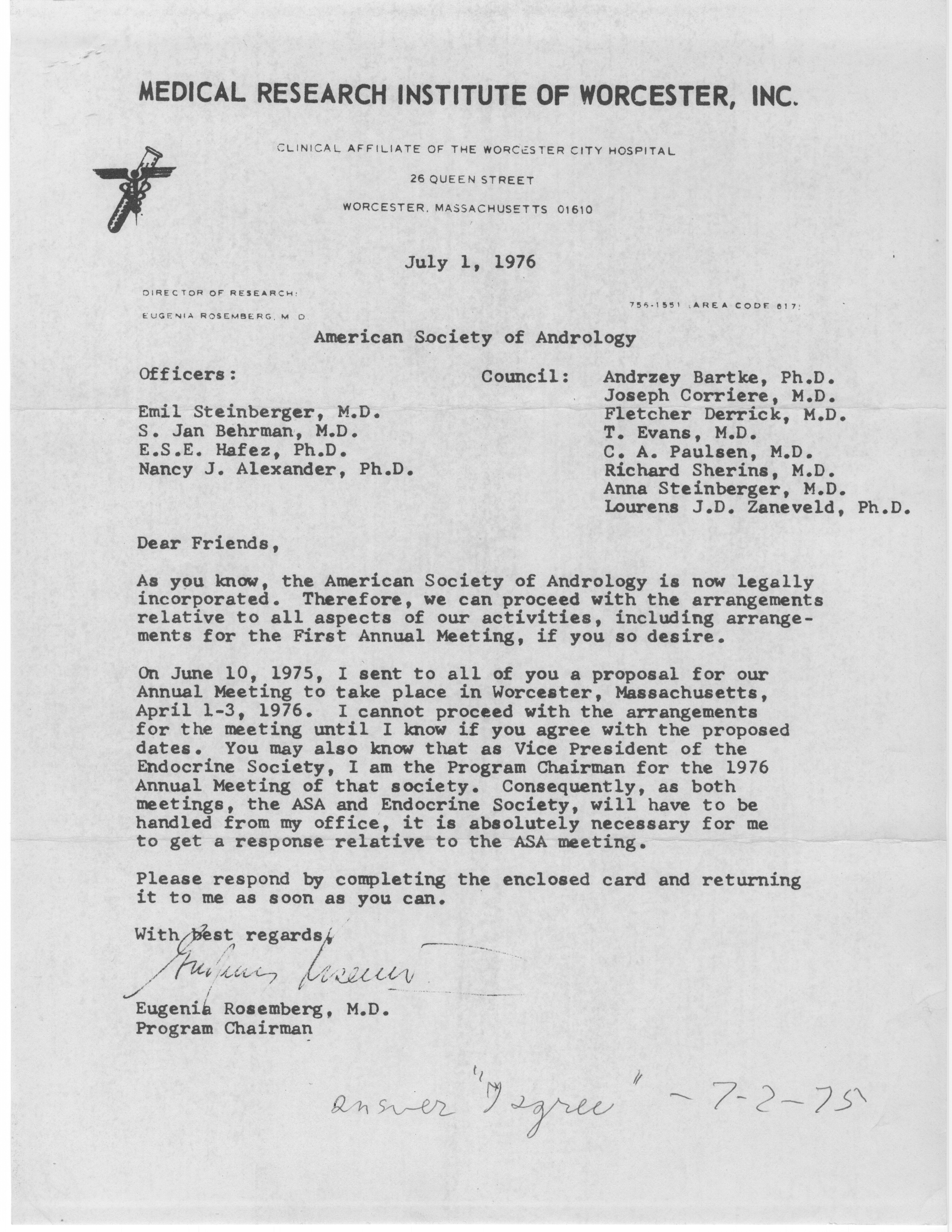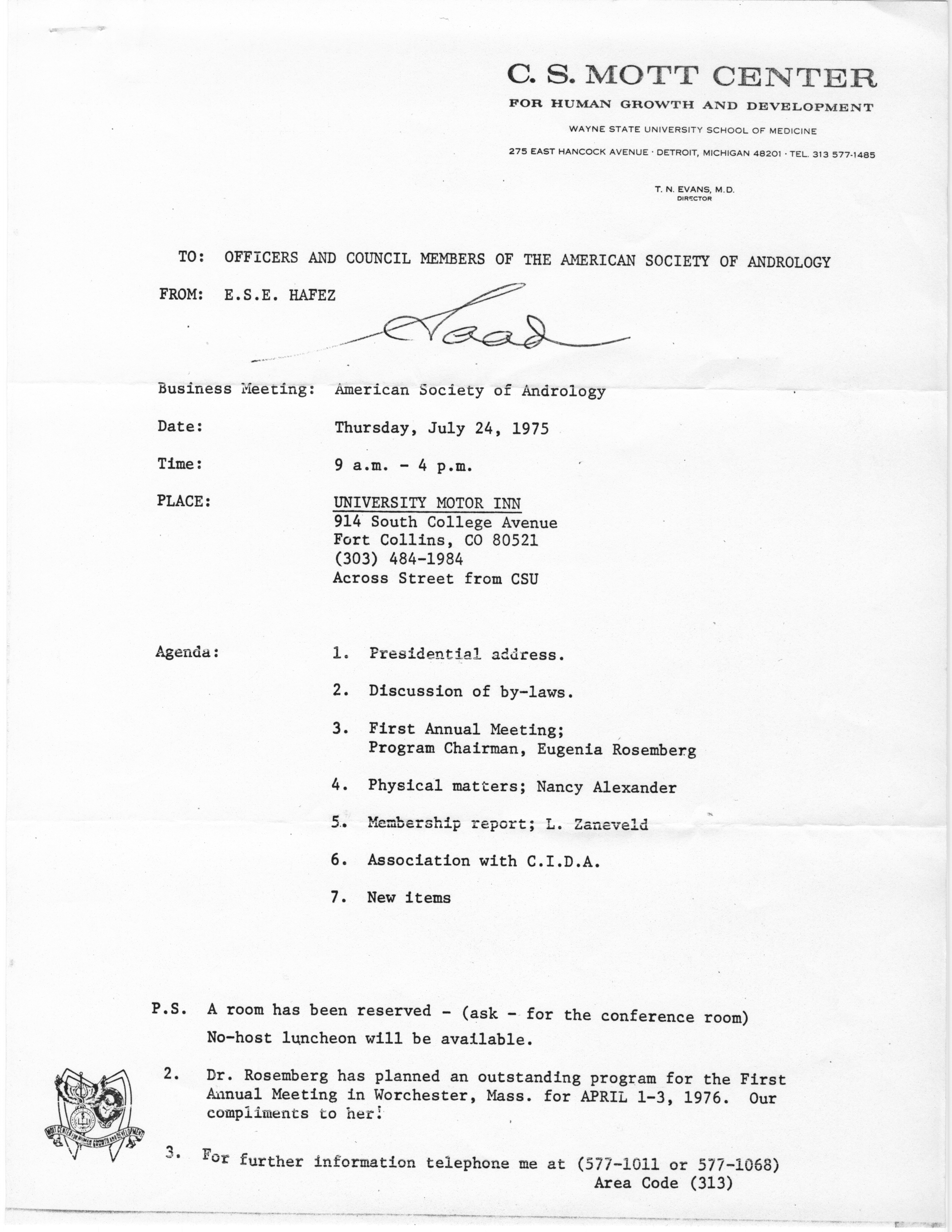 - "Annual Meeting of the American Society of Andrology, 1975", American Society of Andrology Collection, Iowa State University Library Digital Collections