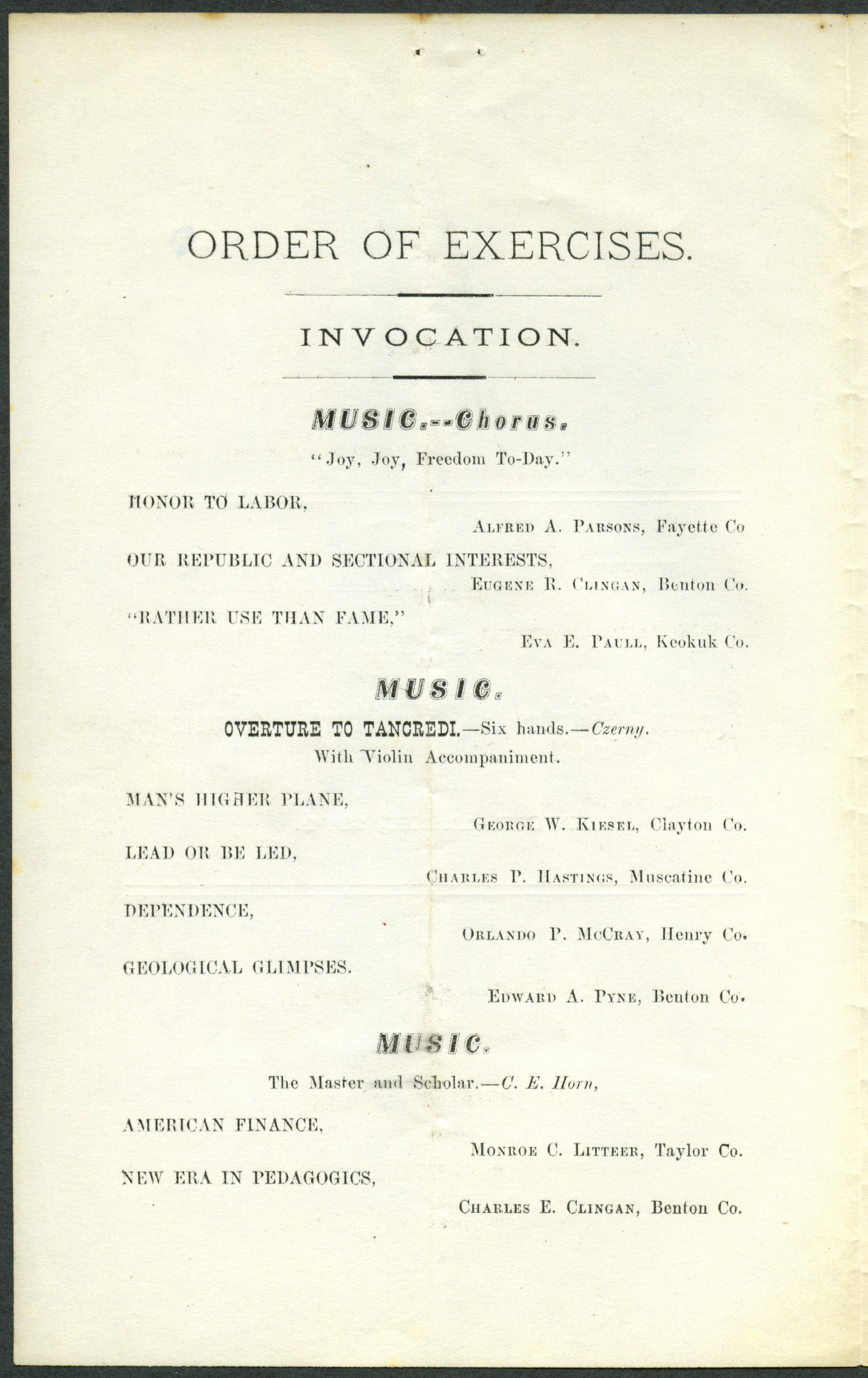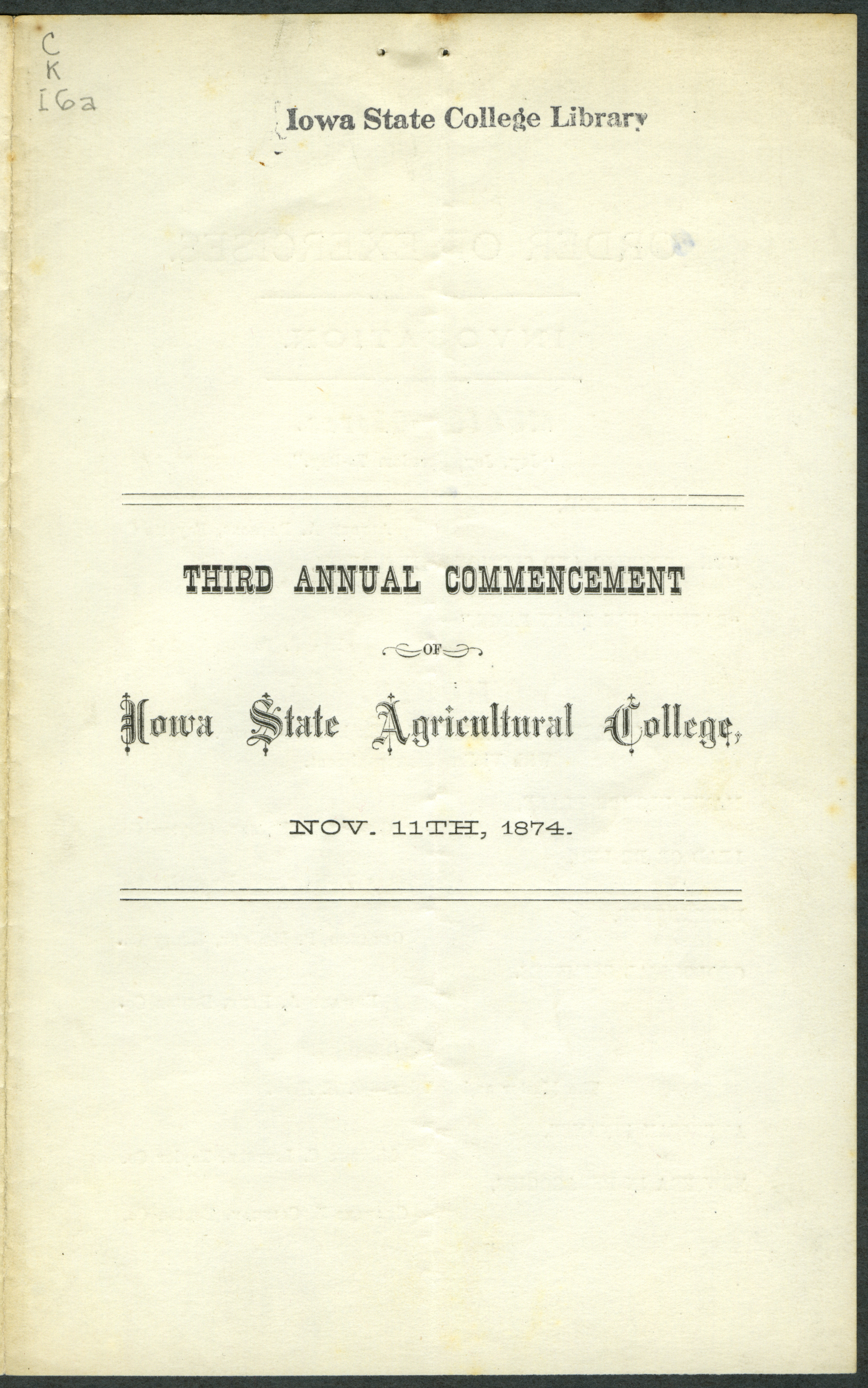 - Third annual commencement of Iowa State Agricultural College, 1874