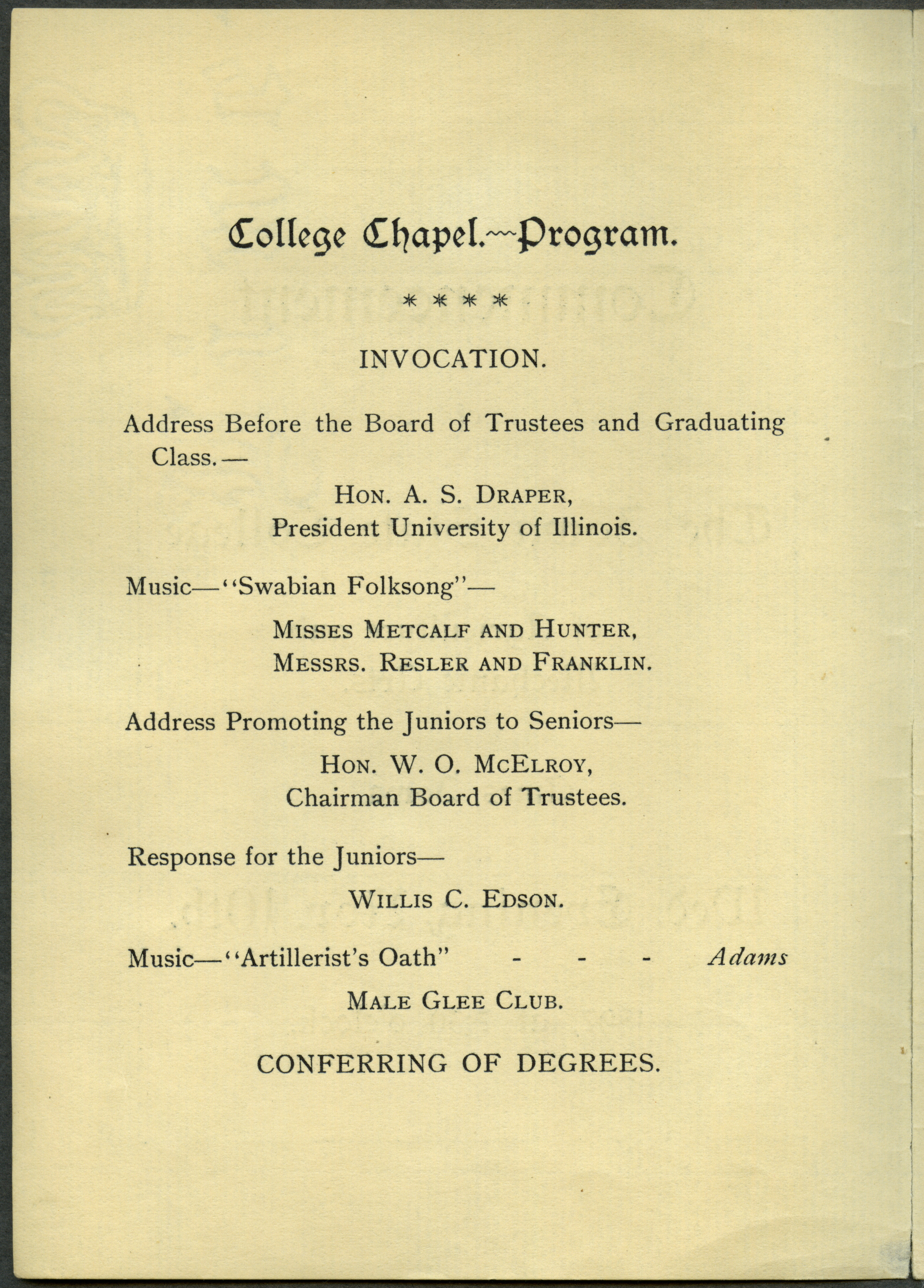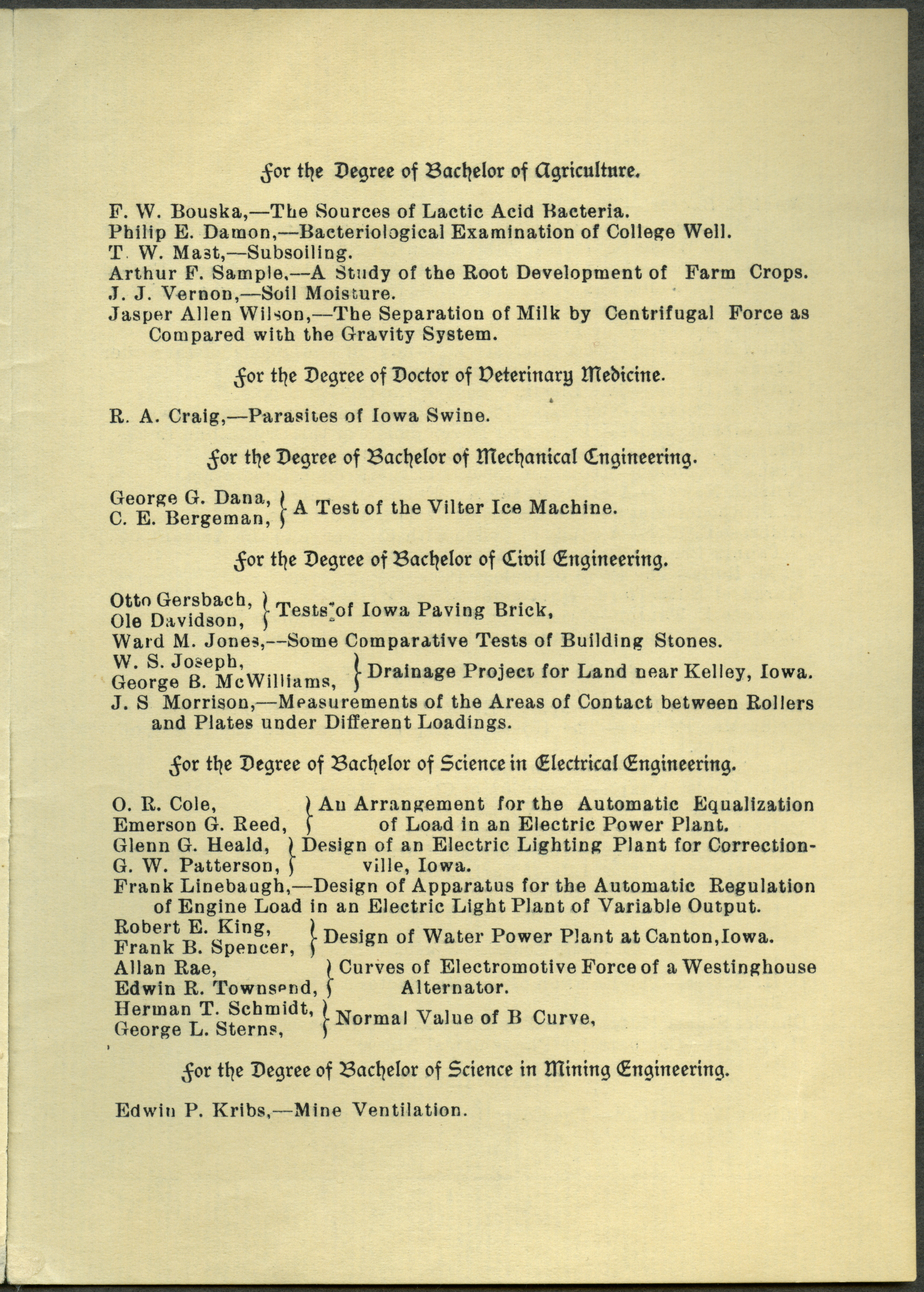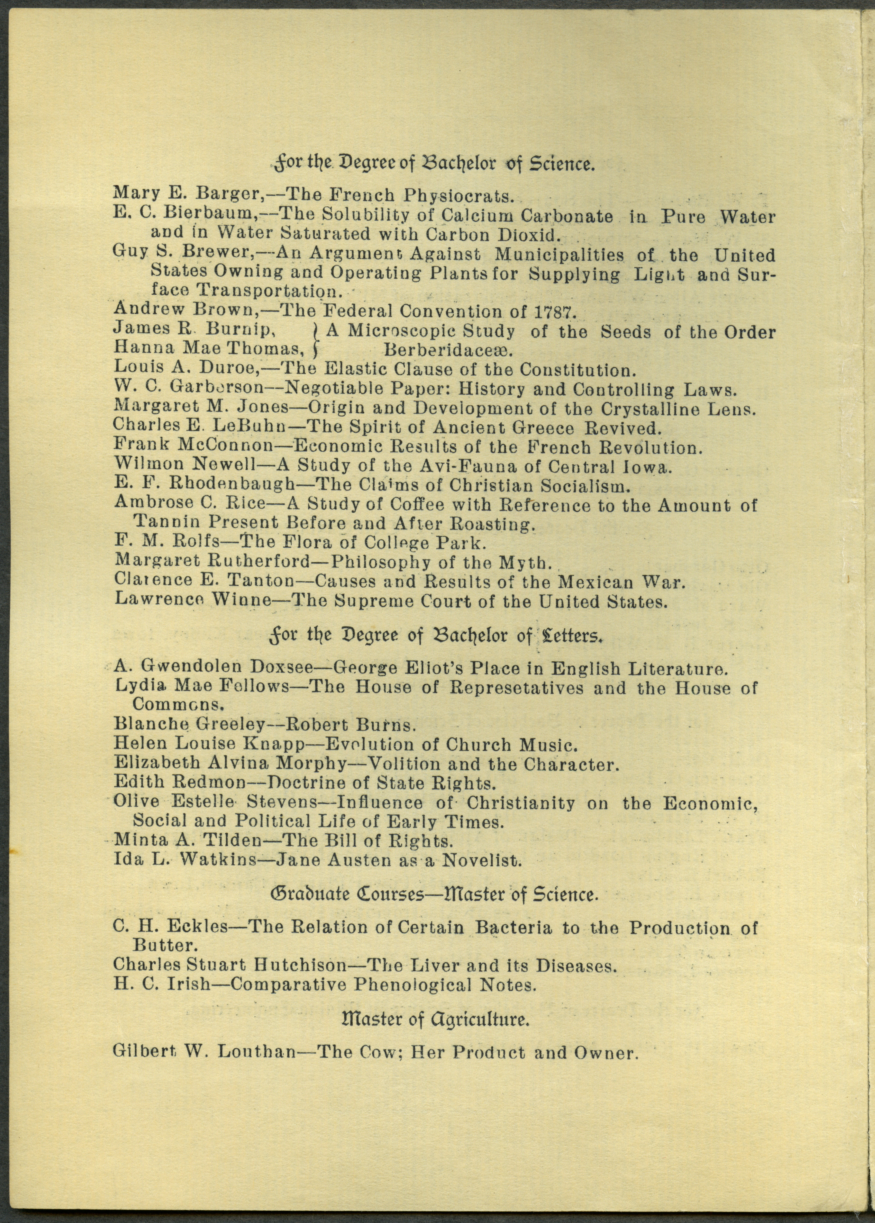 - "Commencement of the Iowa State College of Agriculture and Mechanic Arts, 1897", Iowa State University Commencement Programs, Iowa State University Library Digital Collections