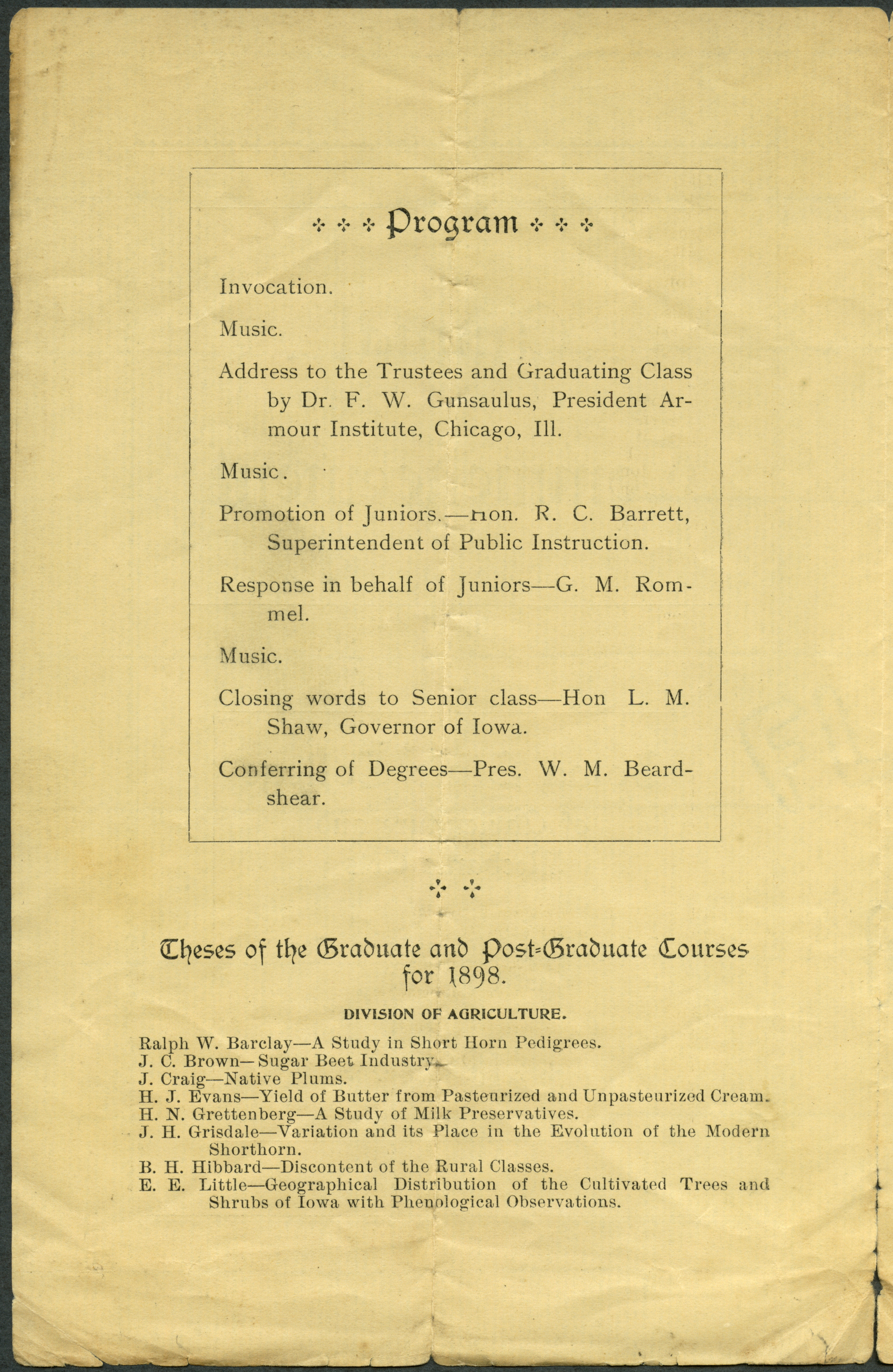- Annual commencement, Iowa State College of Agriculture and Mechanic Arts, 1898