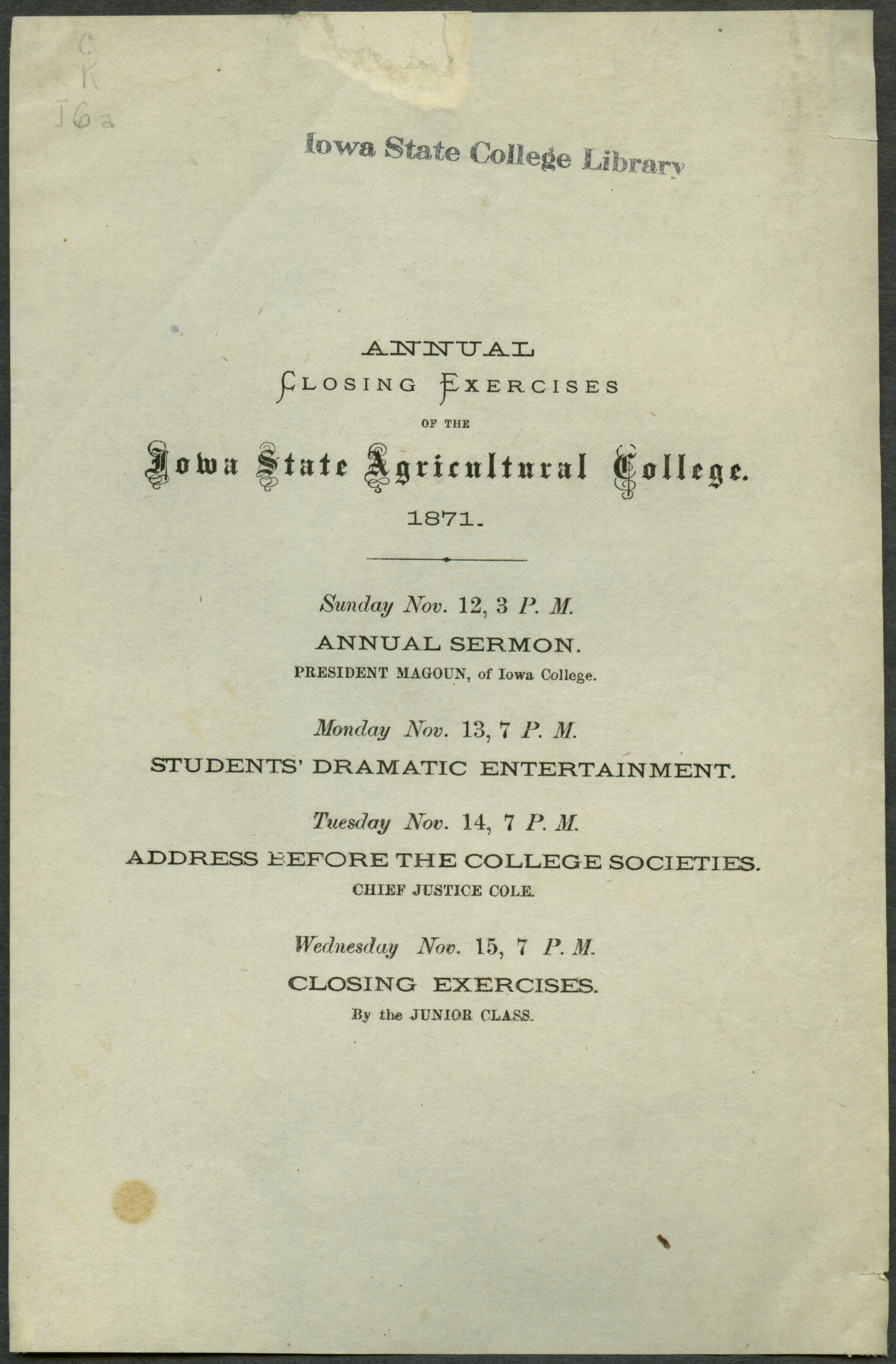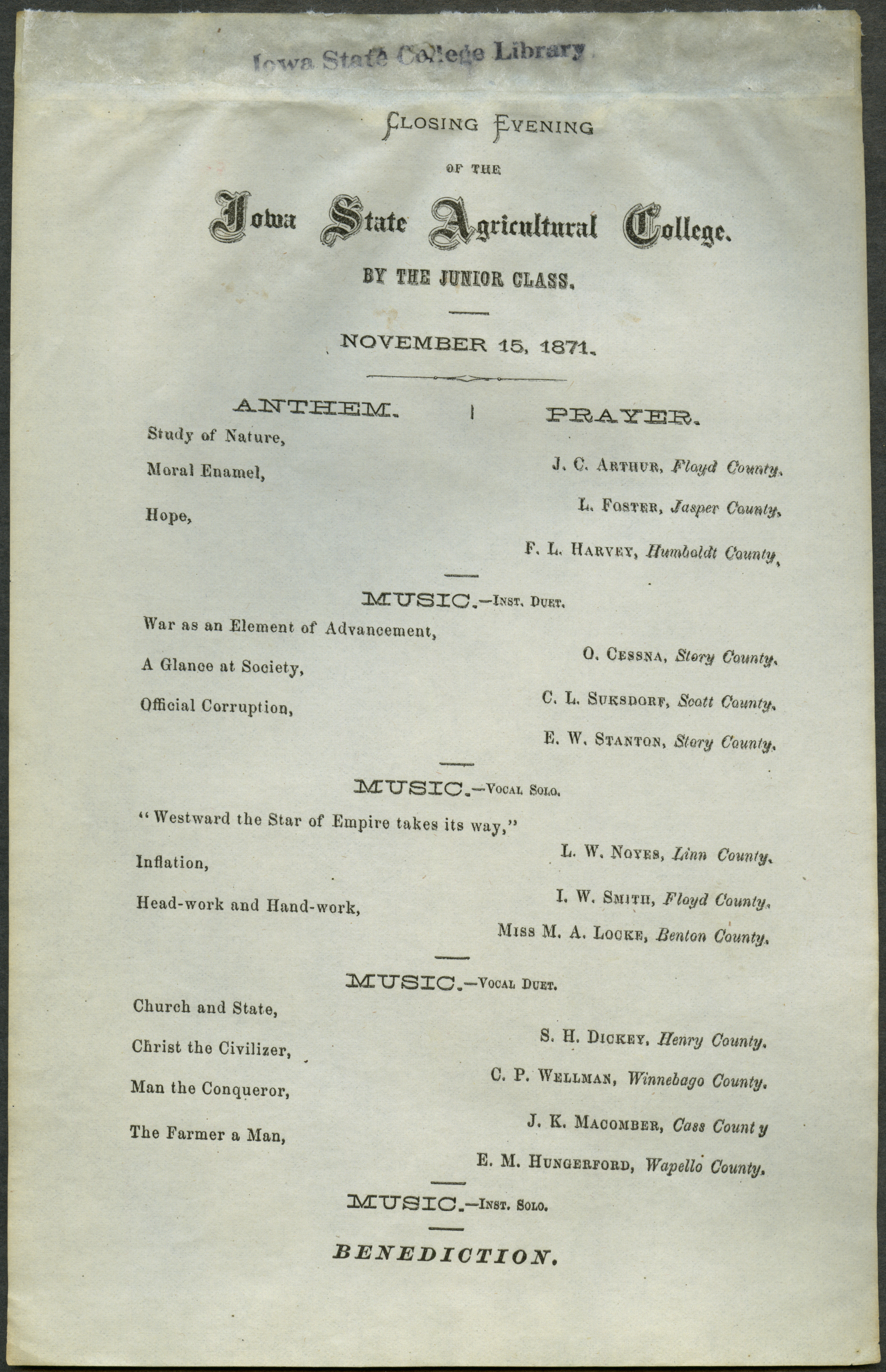 - Annual closing exercises of the Iowa State Agricultural College, 1871