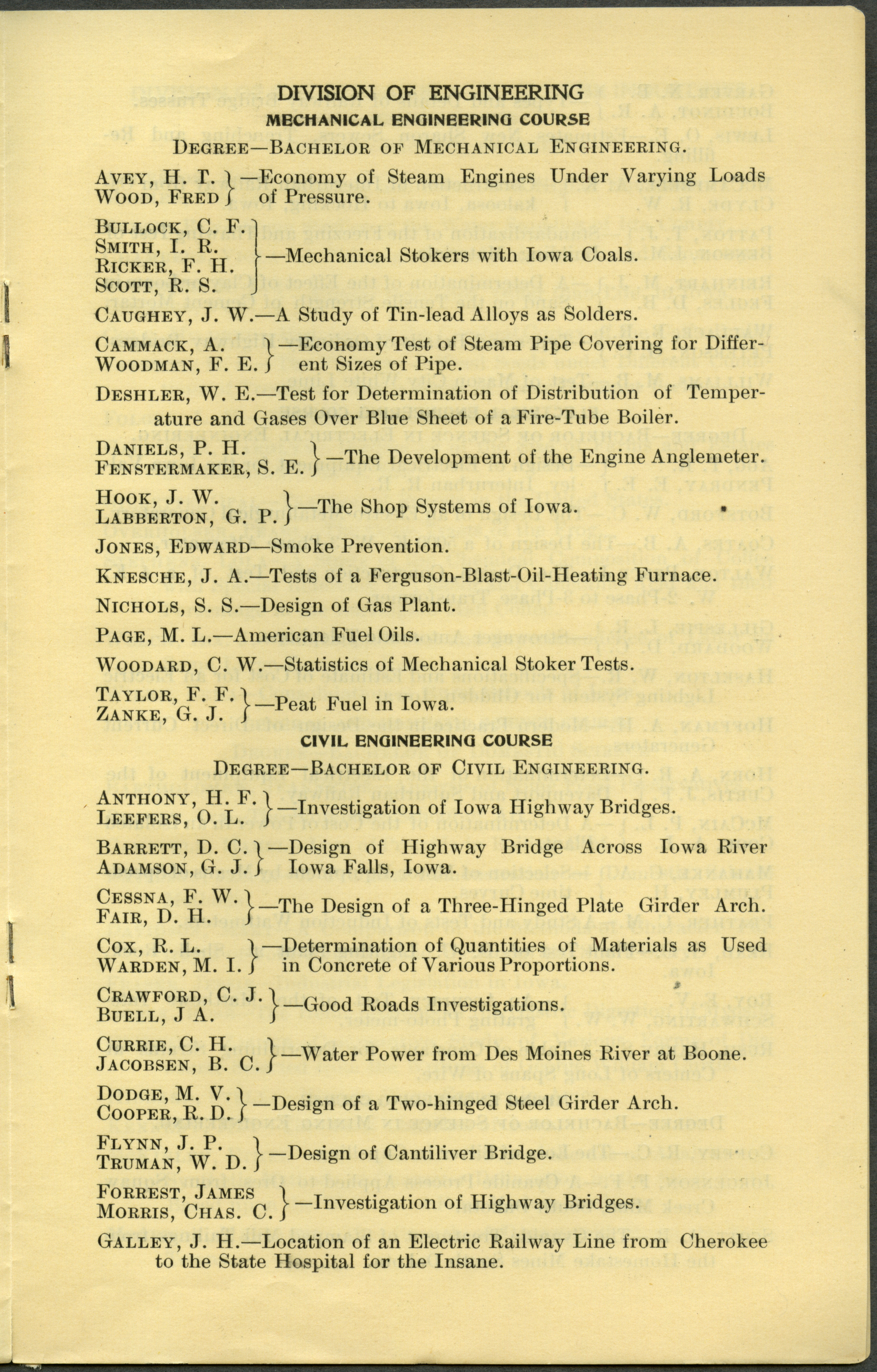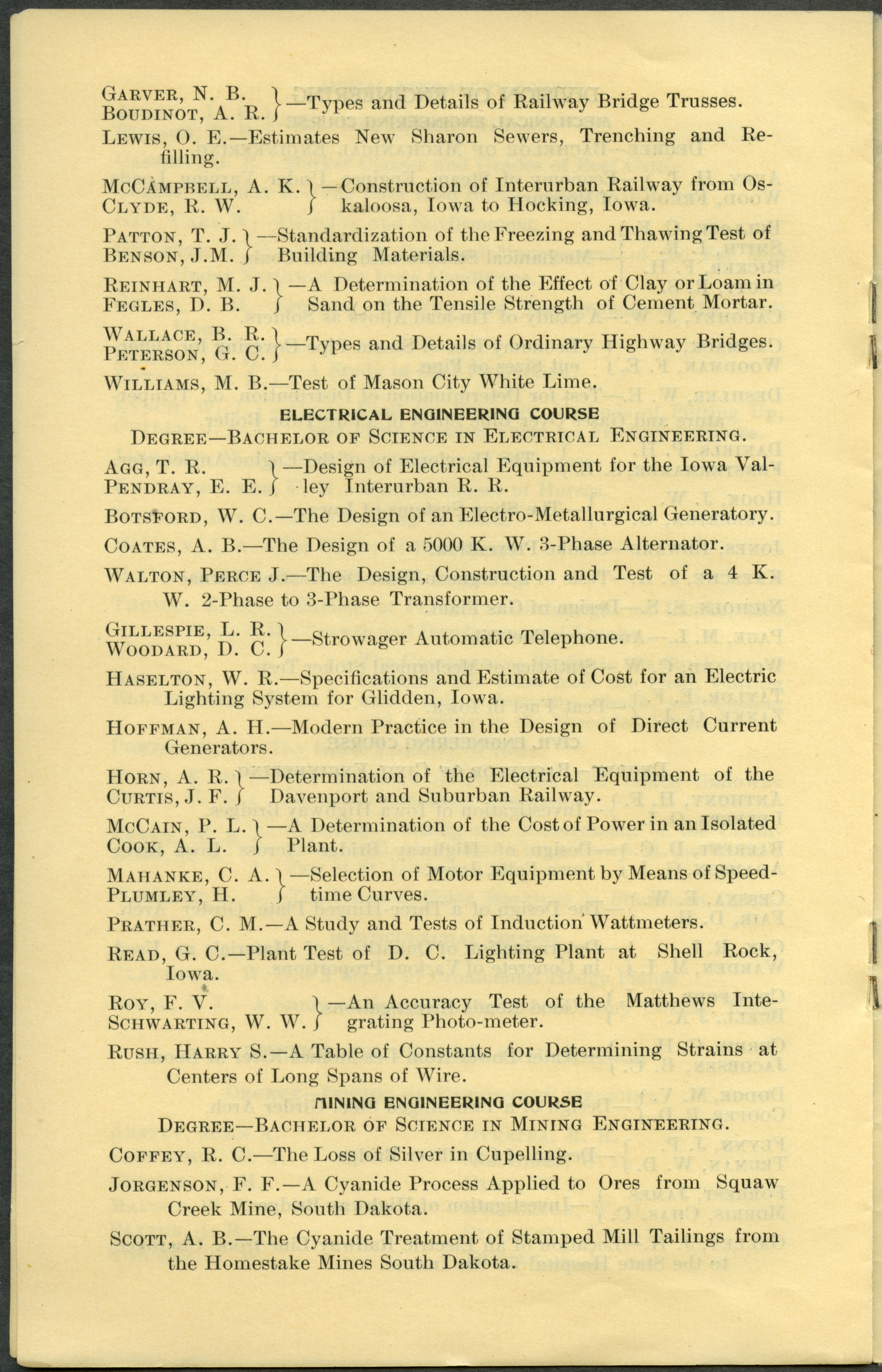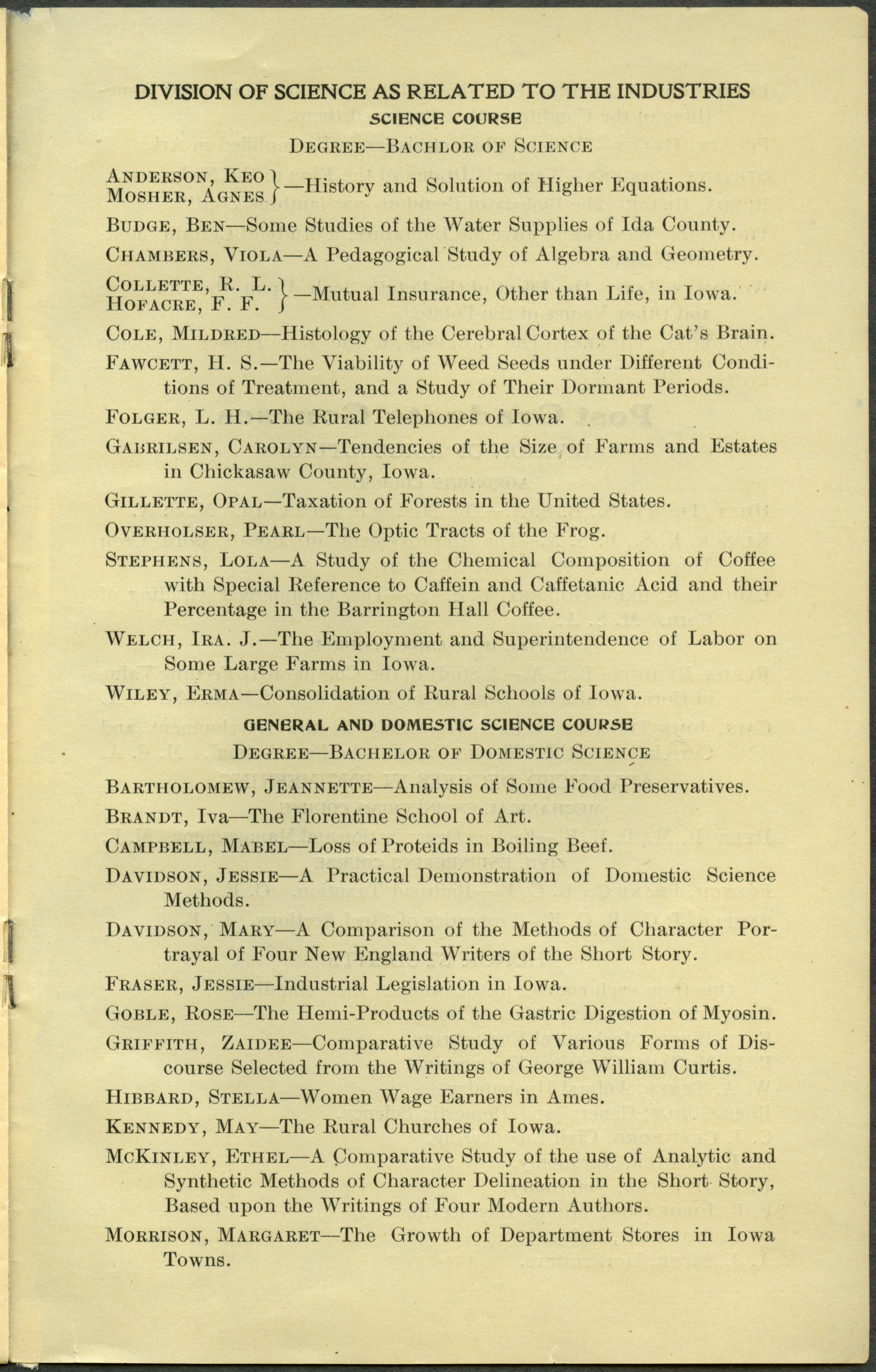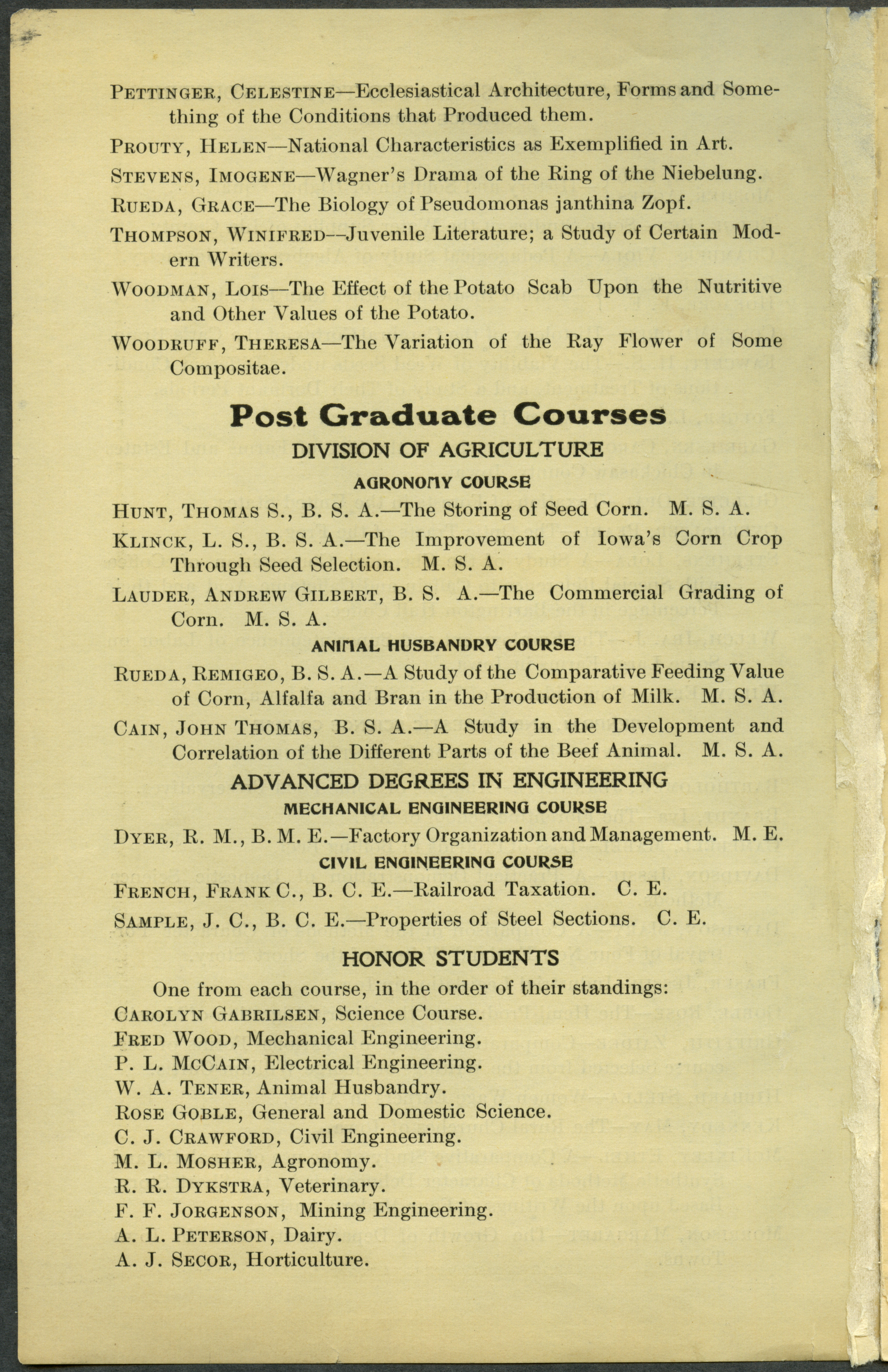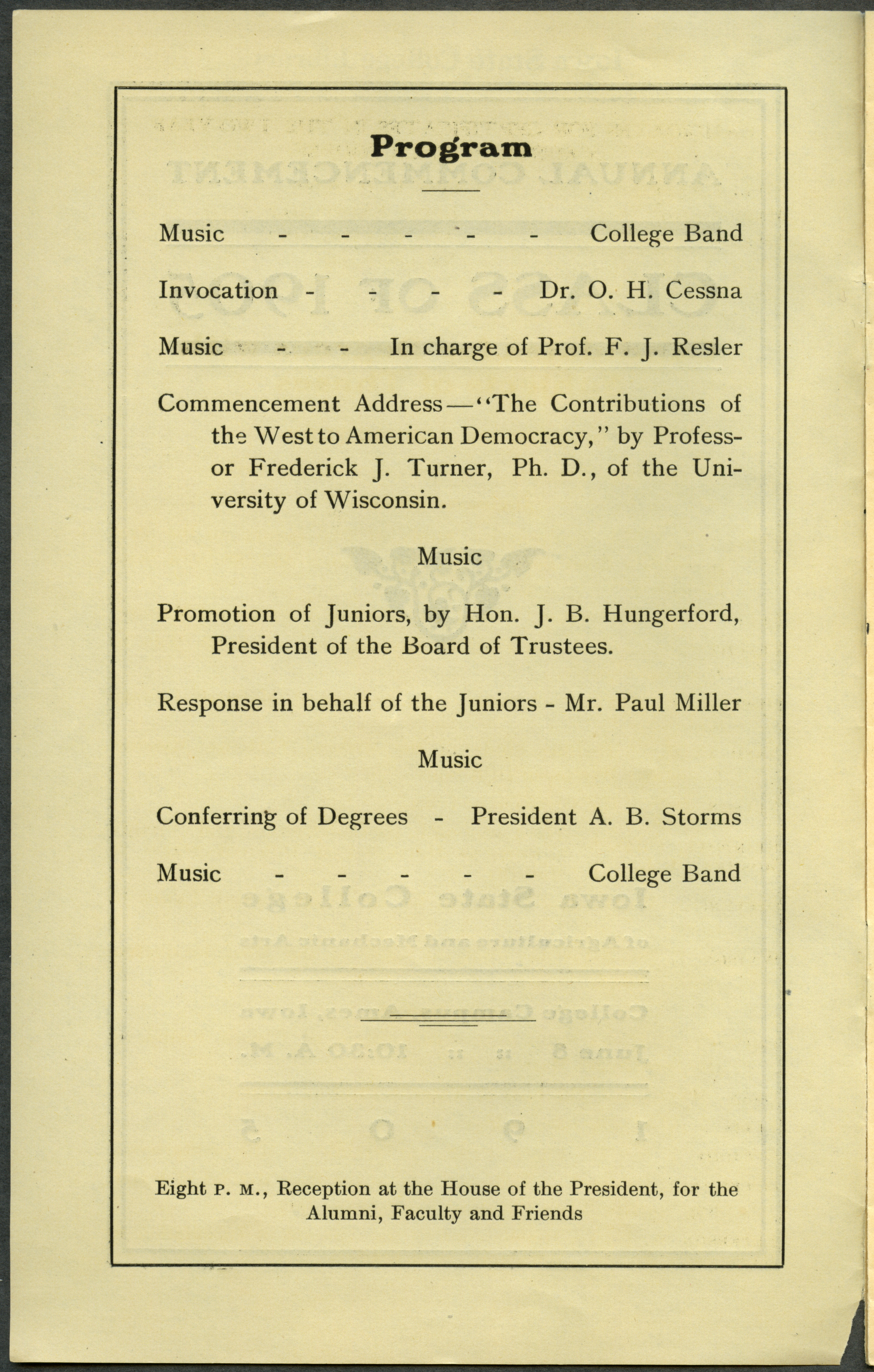 - "Annual commencement, class of 1905, Iowa State College of Agriculture and Mechanic Arts, 1905", Iowa State University Commencement Programs, Iowa State University Library Digital Collections