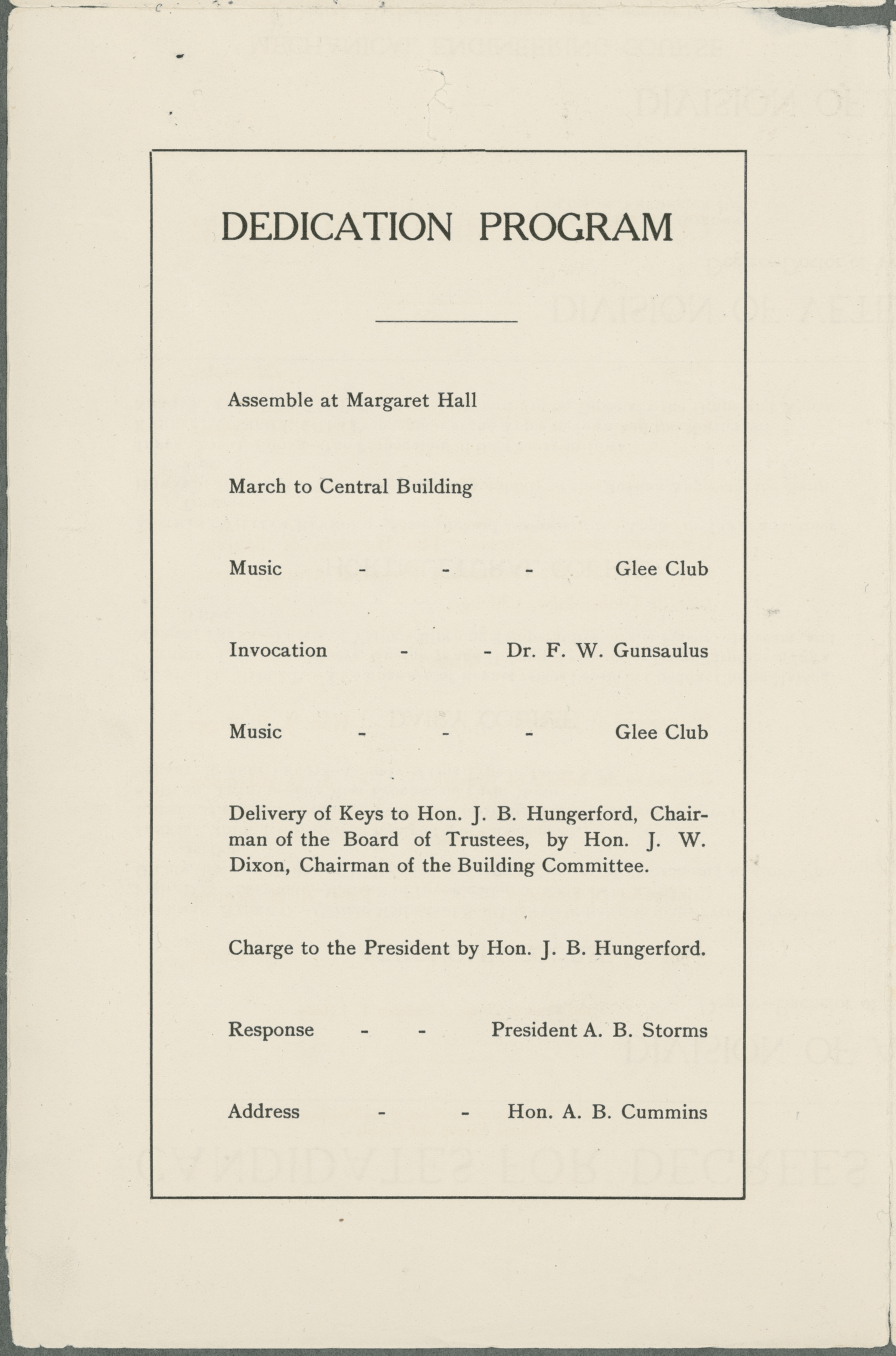 - Annual commencement of the class of 1906 and dedication of the Central Building, Iowa State College of Agriculture and Mechanic Arts, 1906