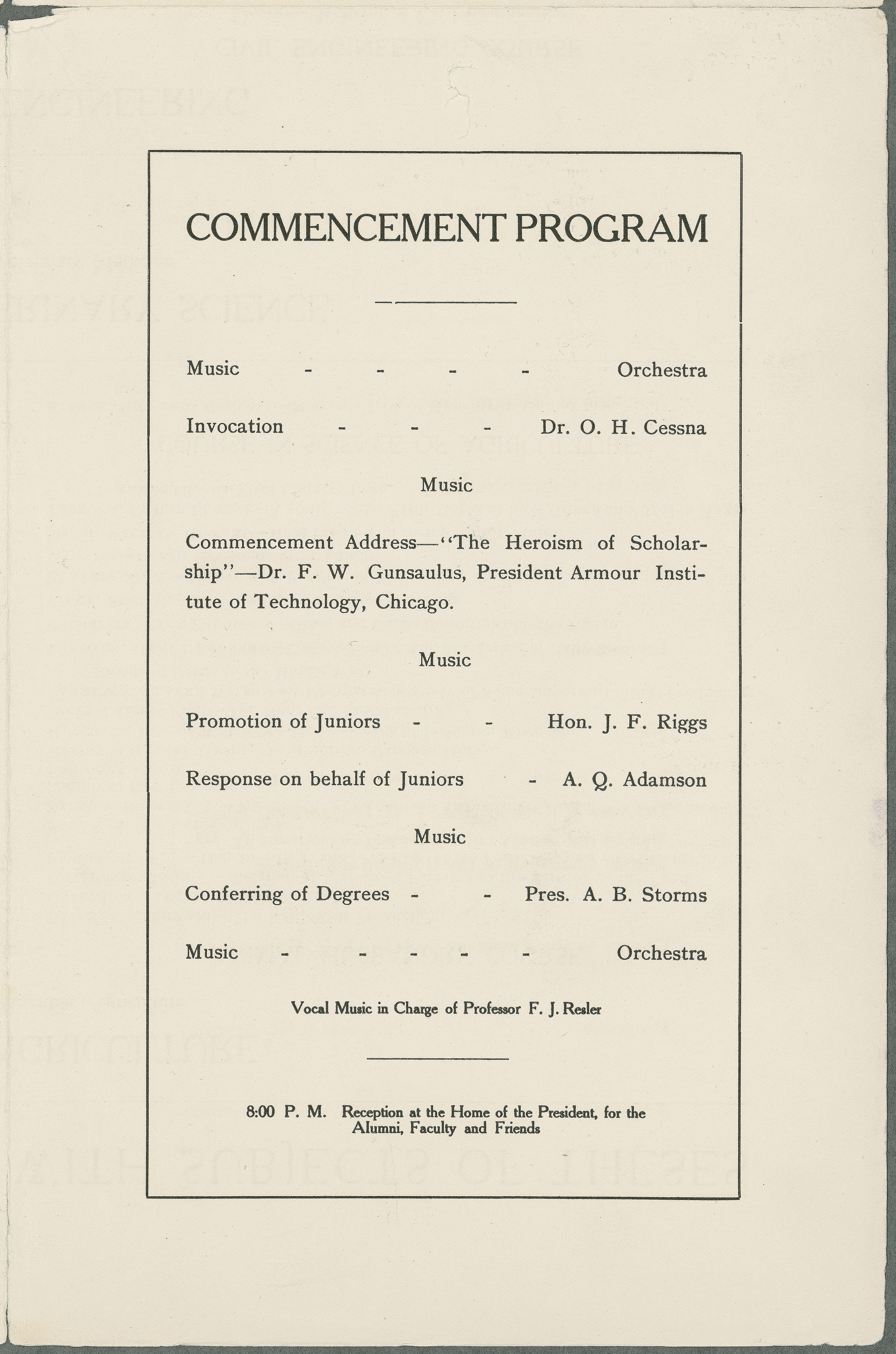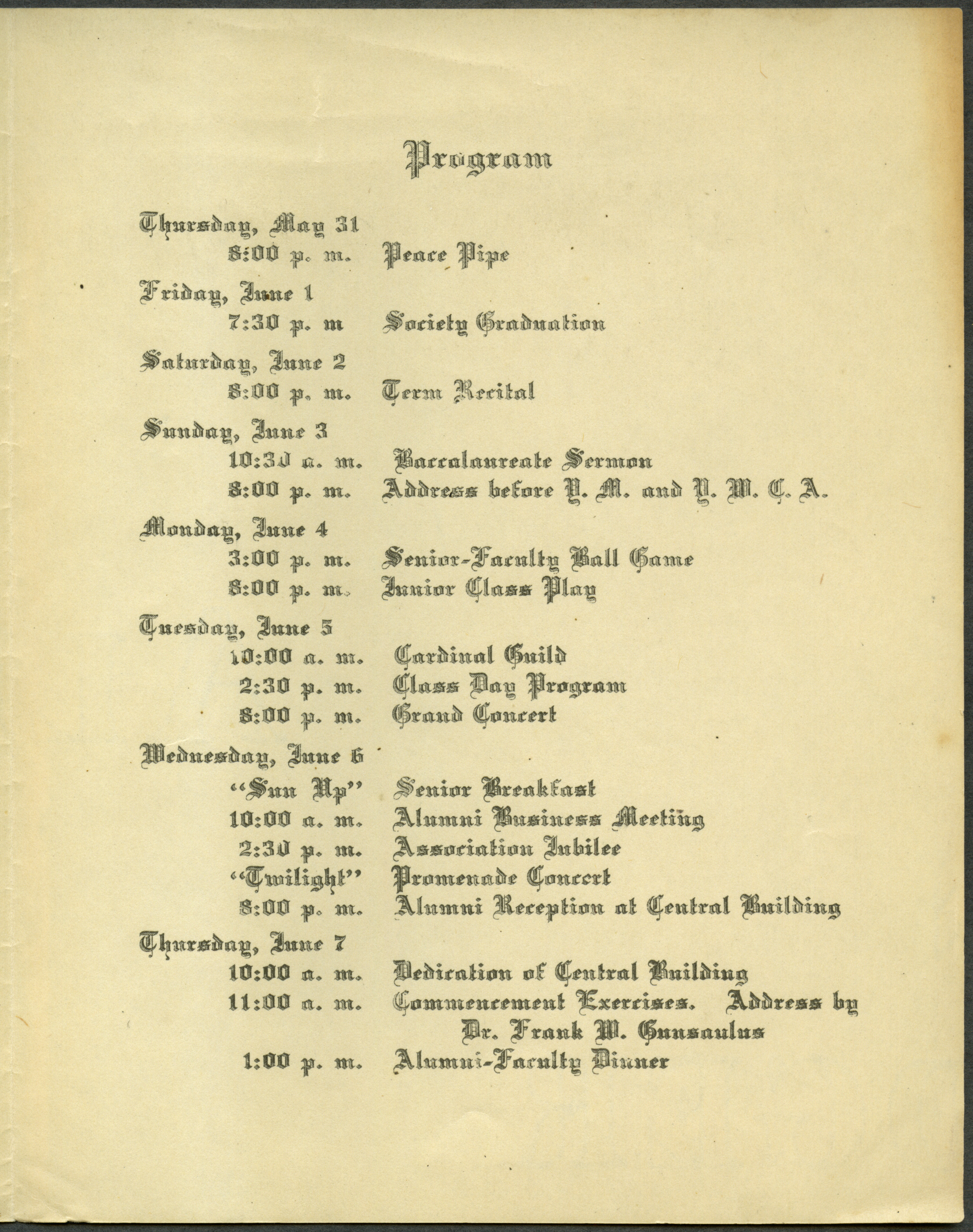 - Includes commencement program, invitation and list of commencement week activities, held May 31st -June 7th, 1906. One sheet folded into fourths and one invitation card.