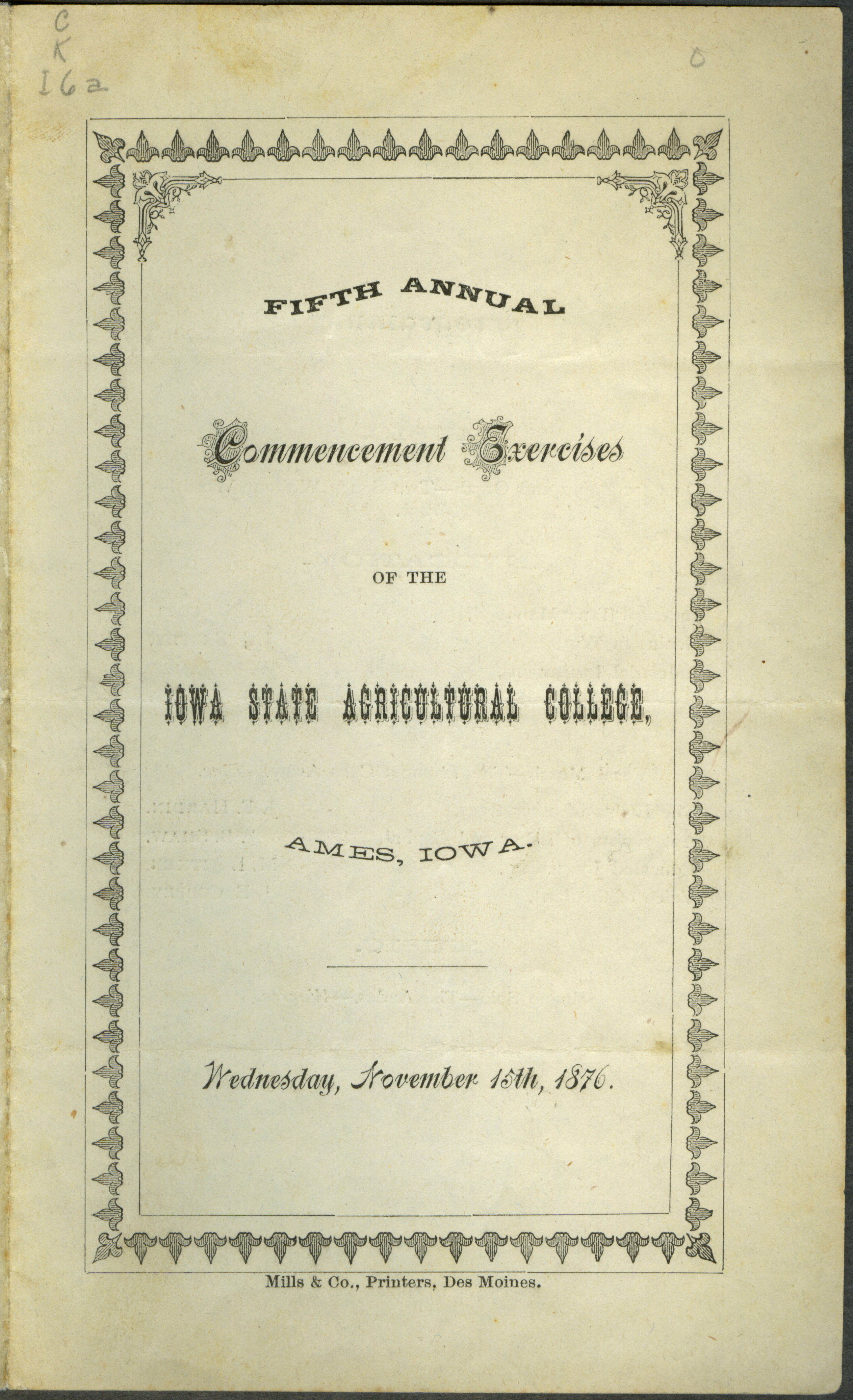 - Fifth annual commencement exercises of the Iowa State Agricultural College, 1876