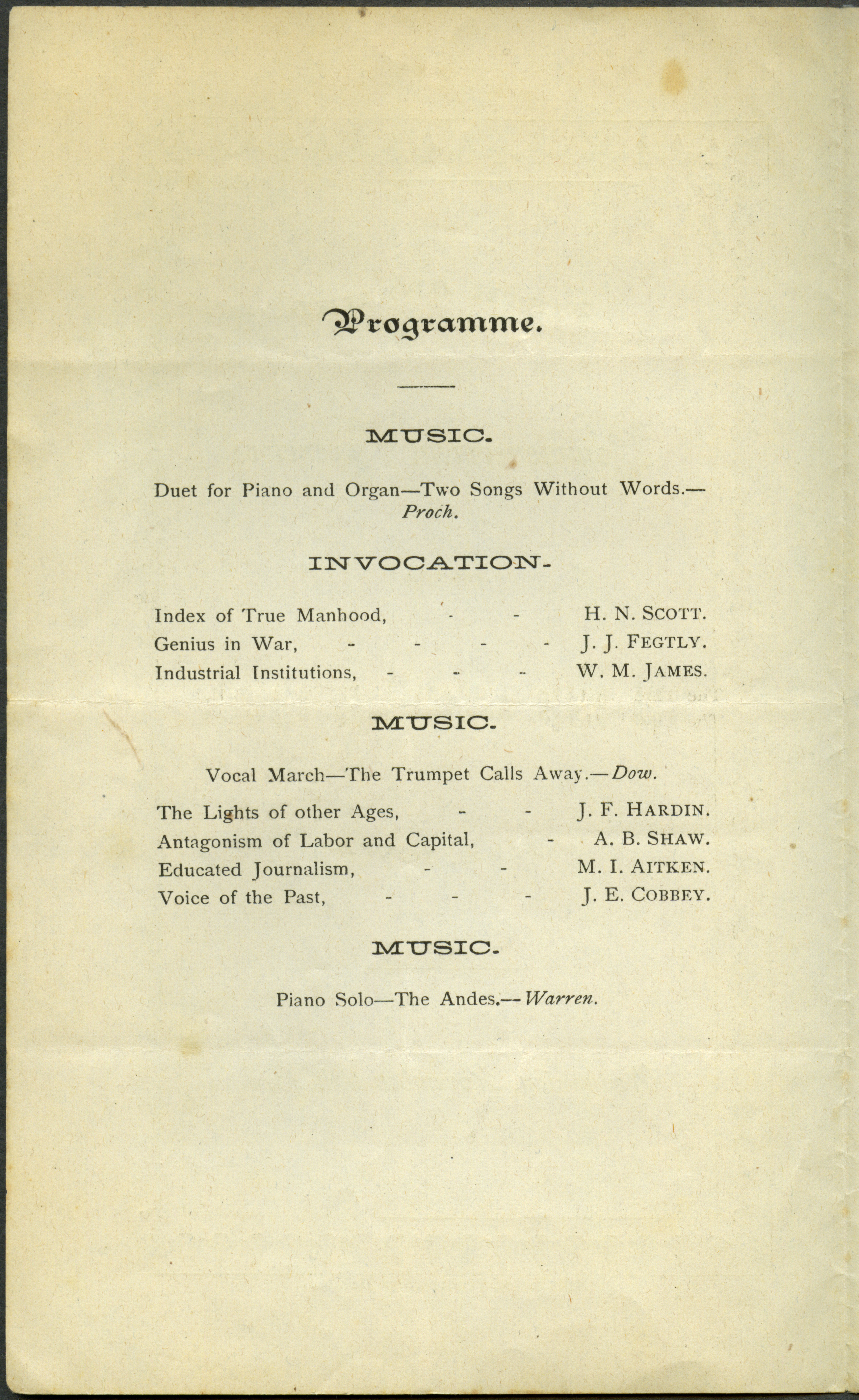 - Includes commencement program, held November 15th, 1876.