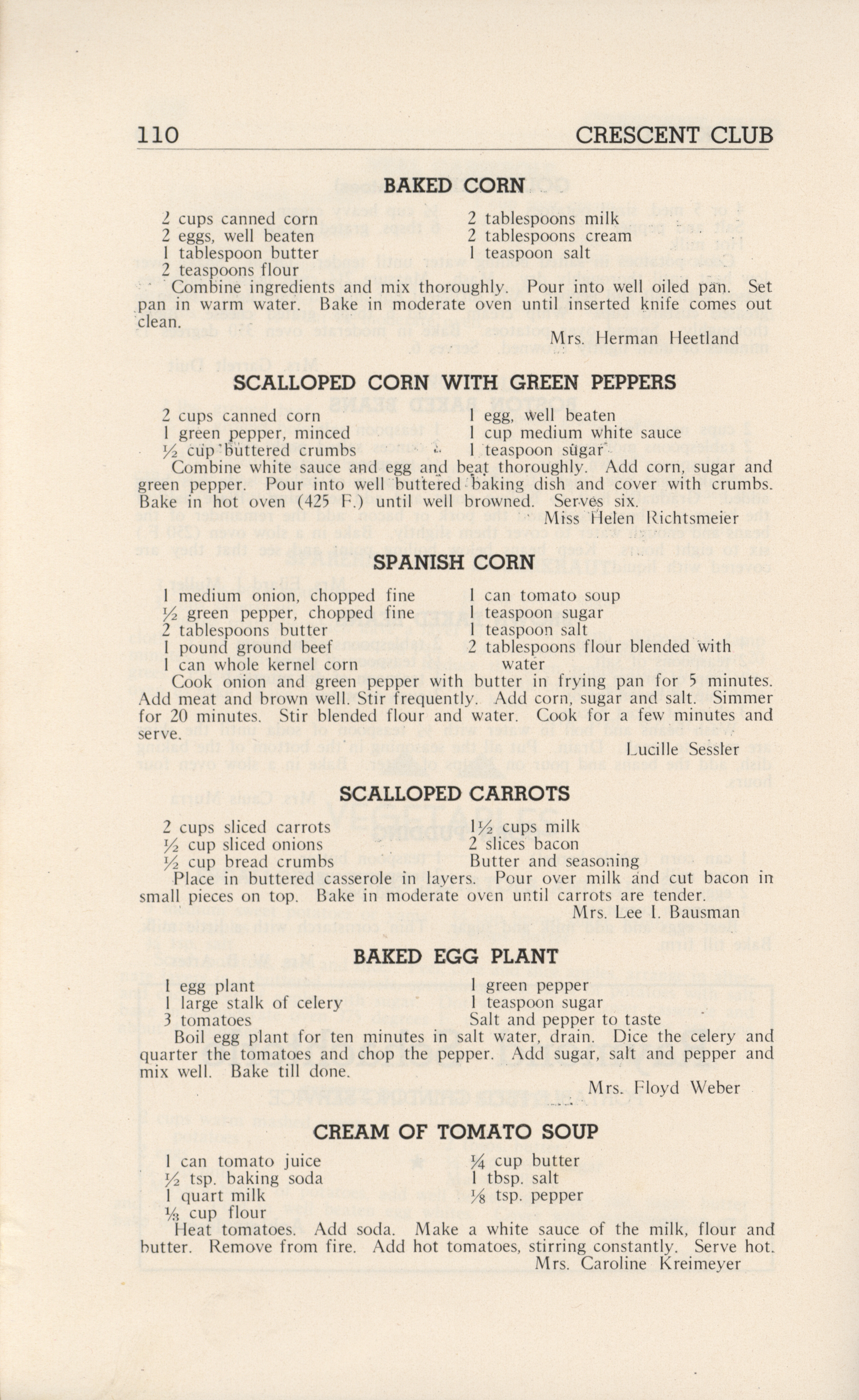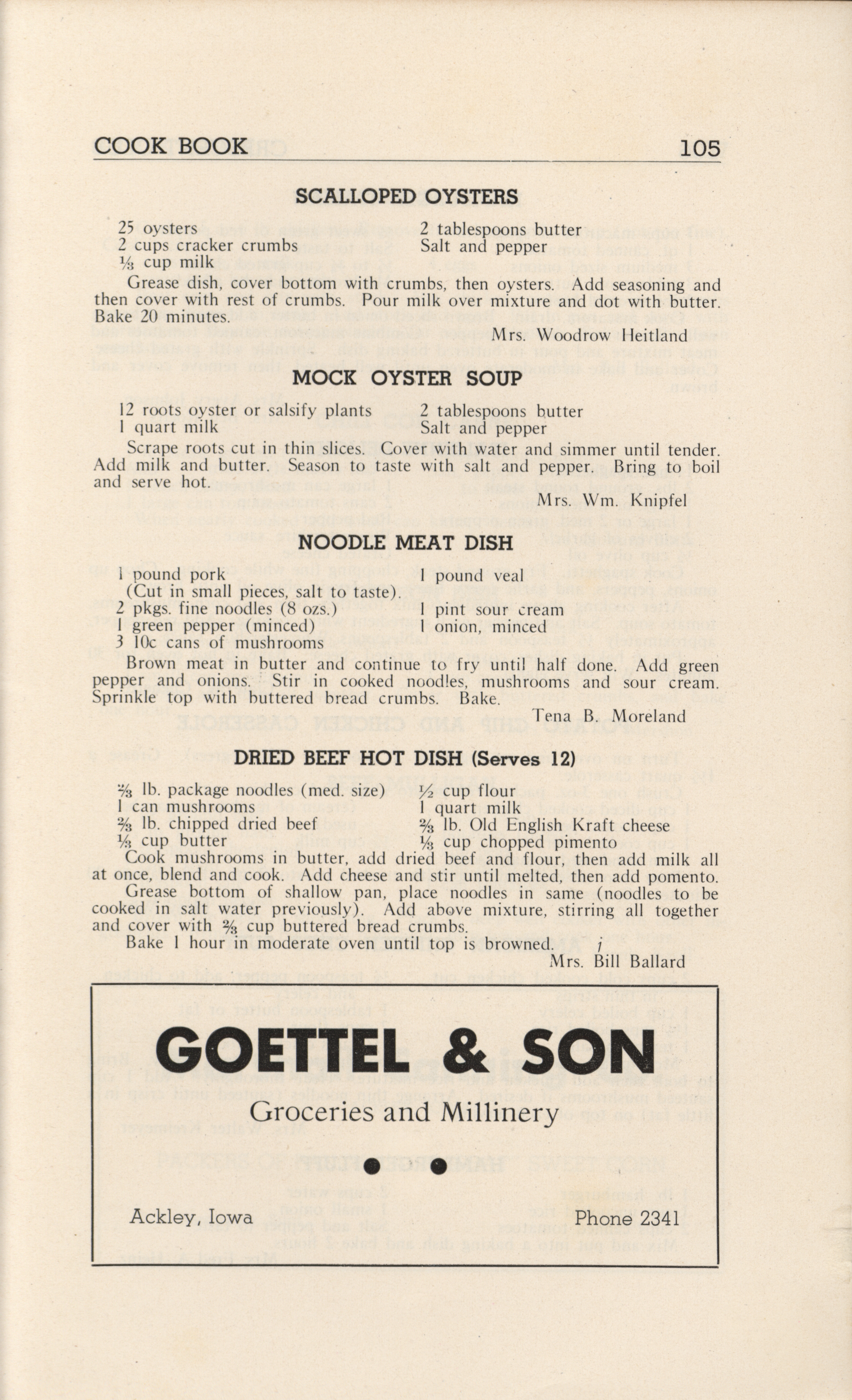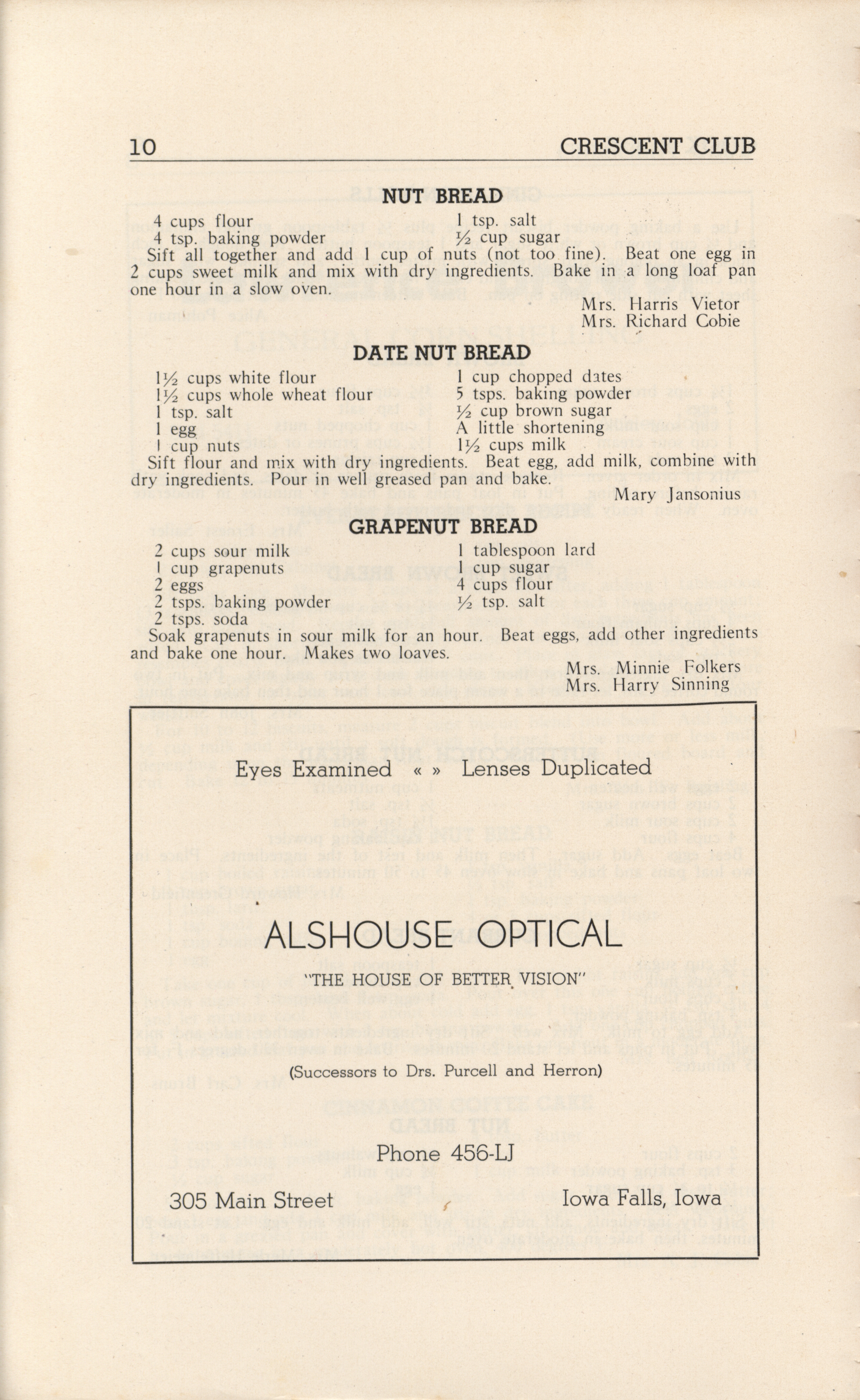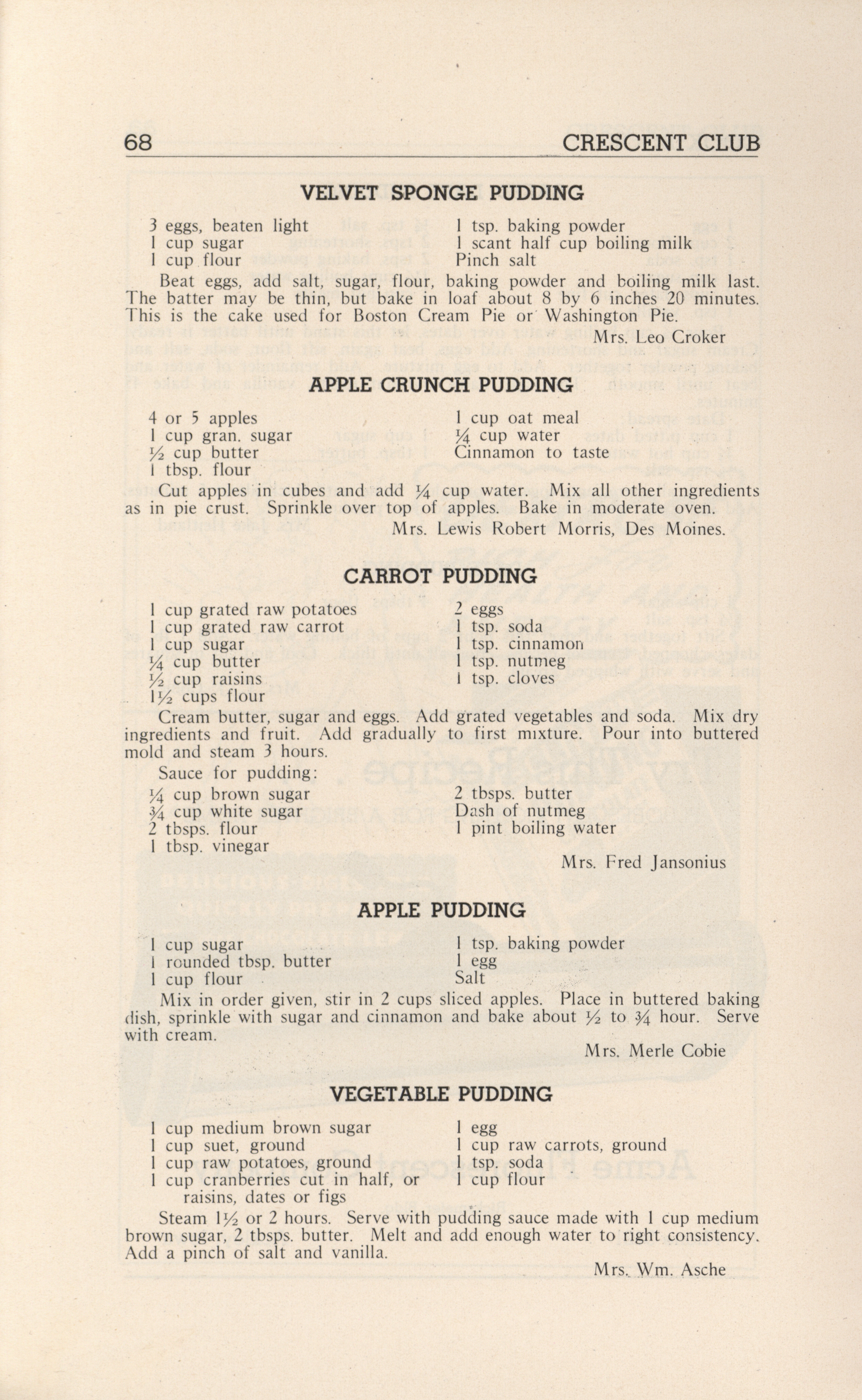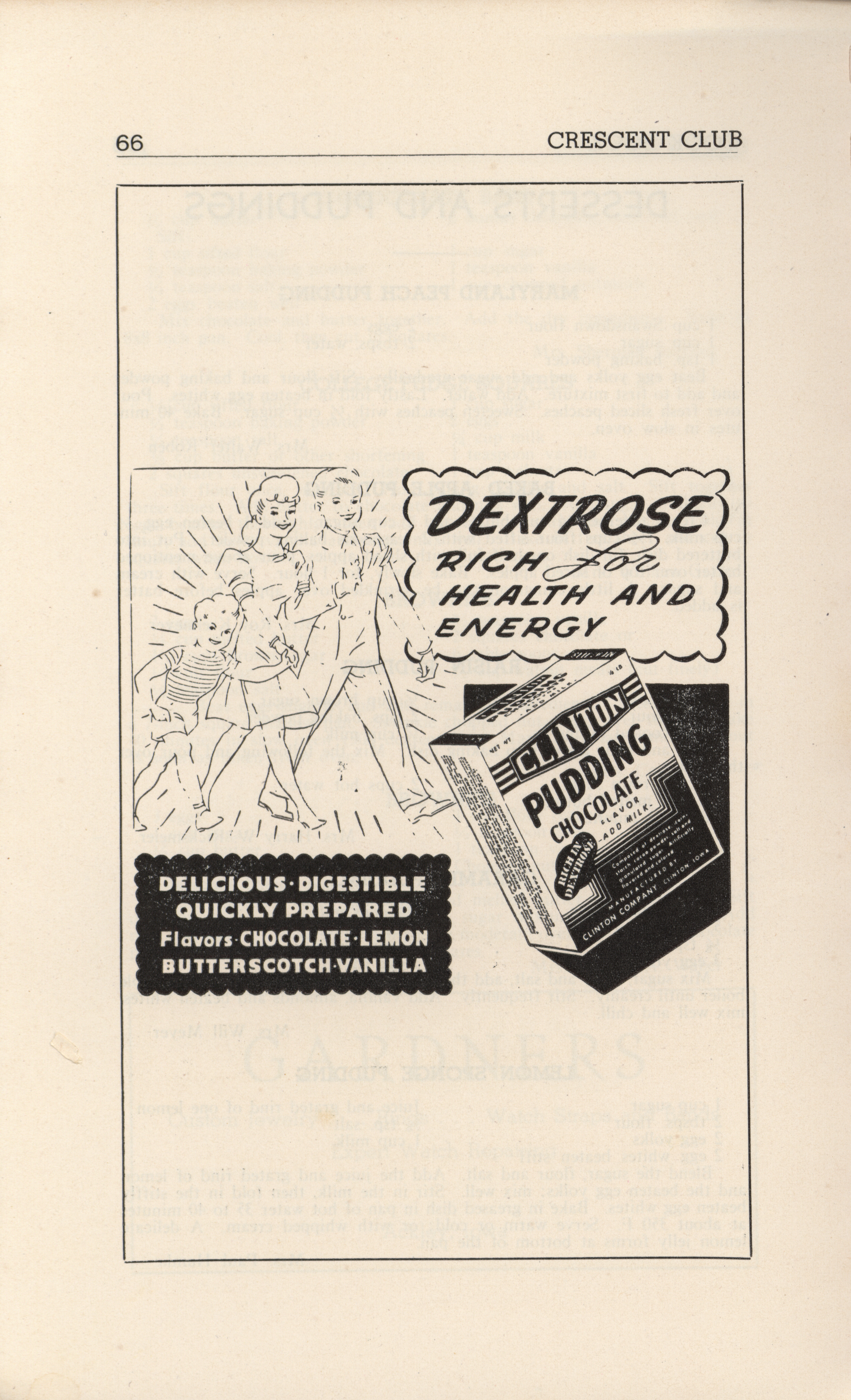 - A community cookbook compiled in 1946 by the Crescent Club of St. John’s Evangelical and Reformed Church in Ackley, Iowa. The book includes recipes contributed by club members and advertisements from local businesses.