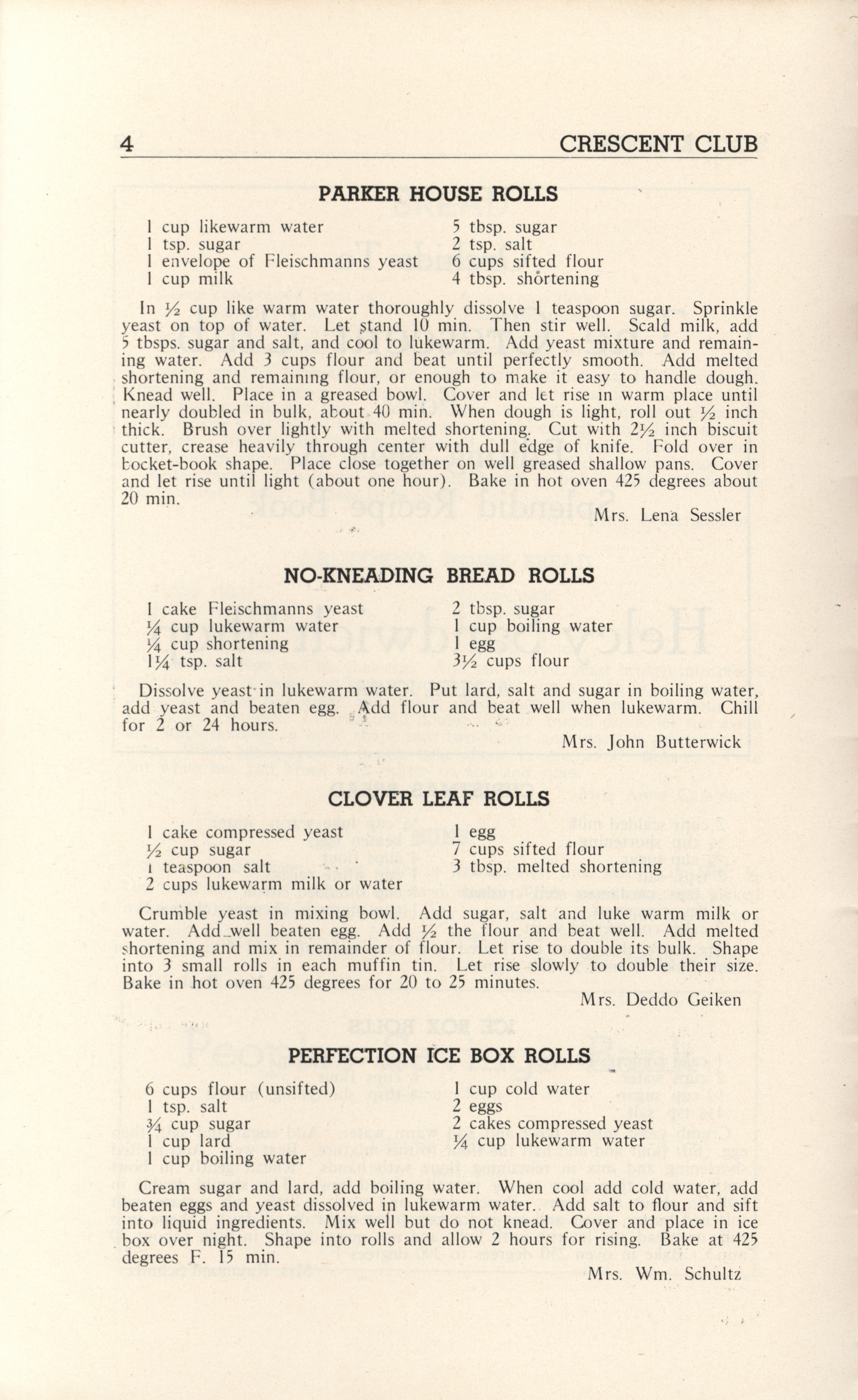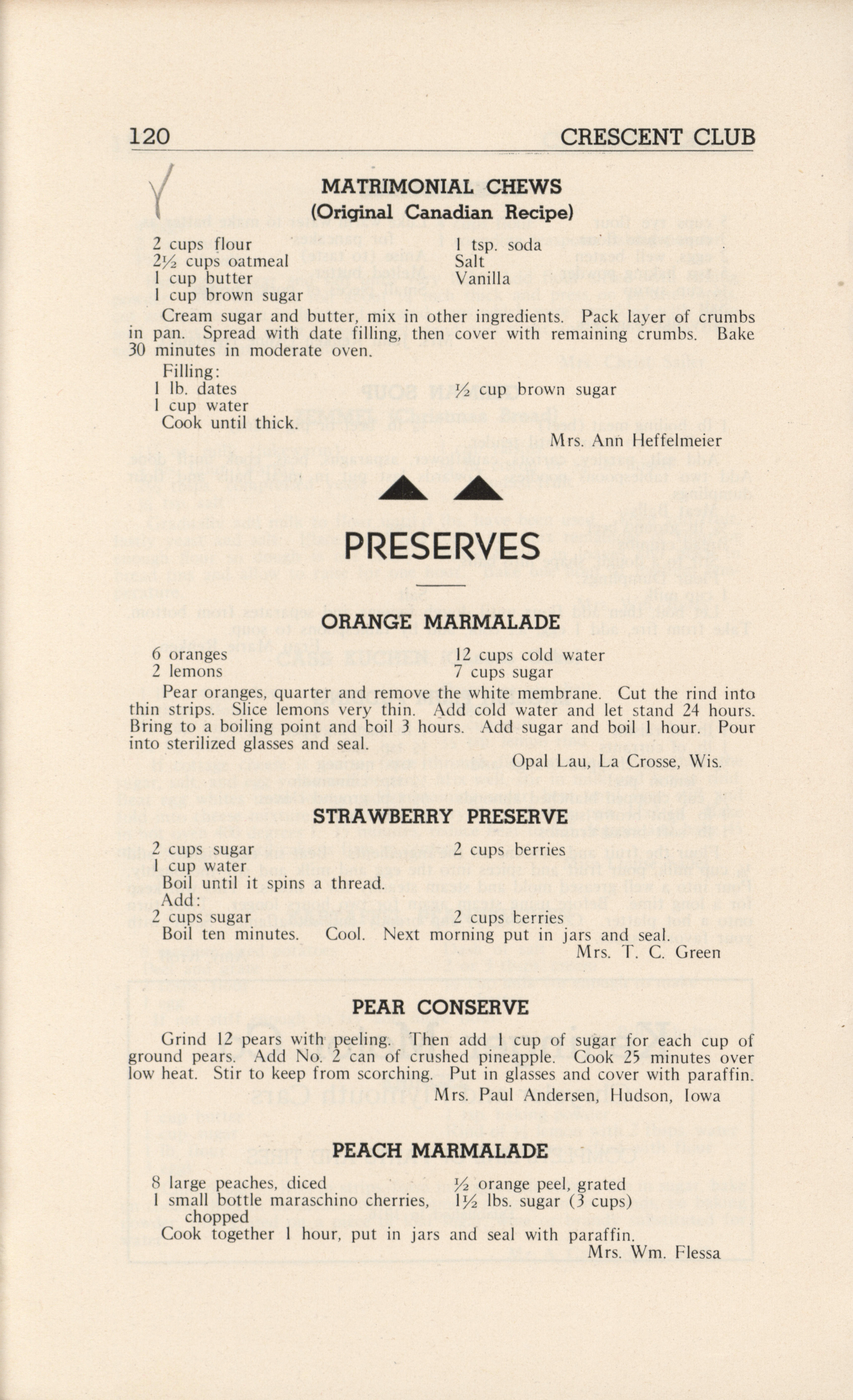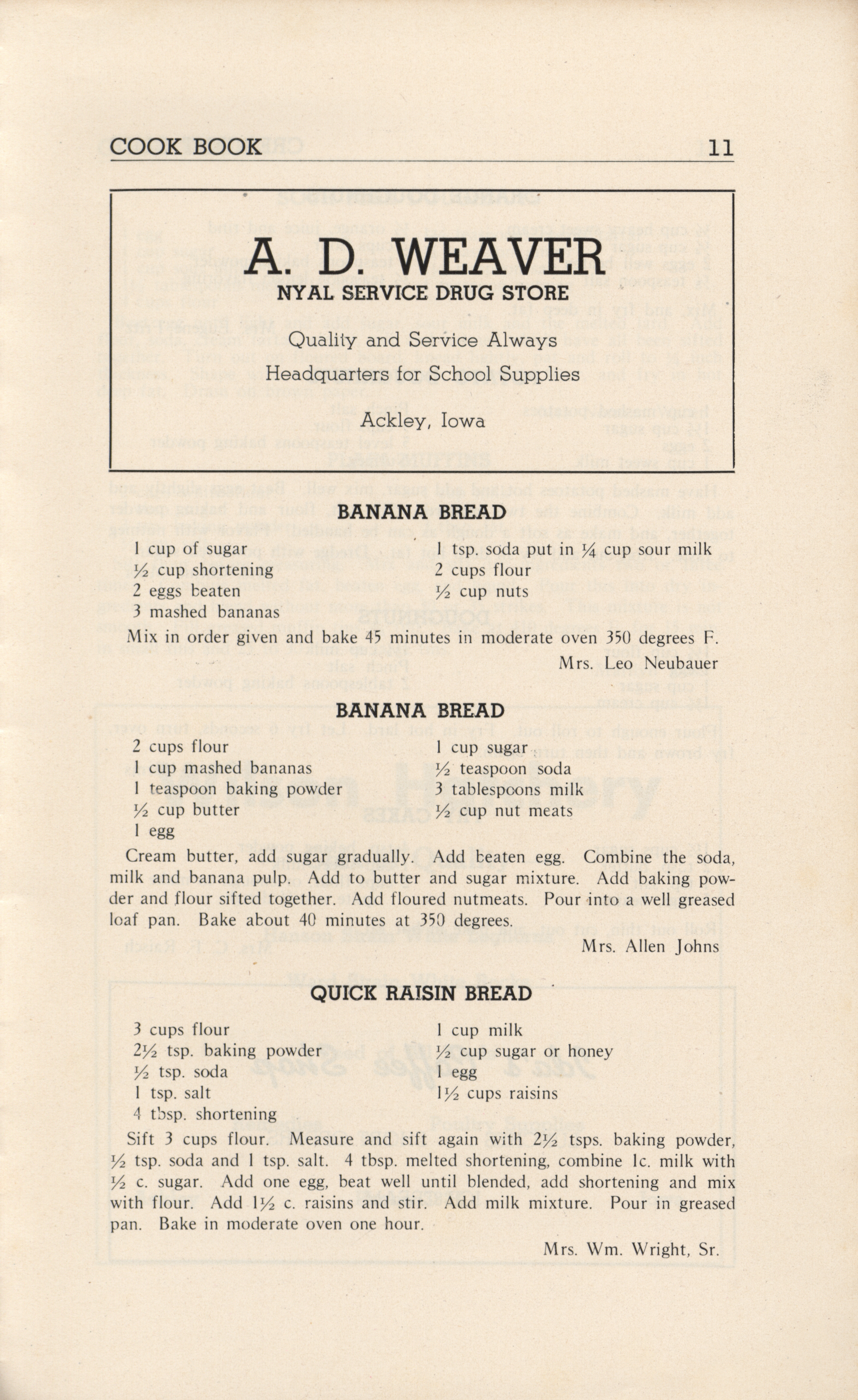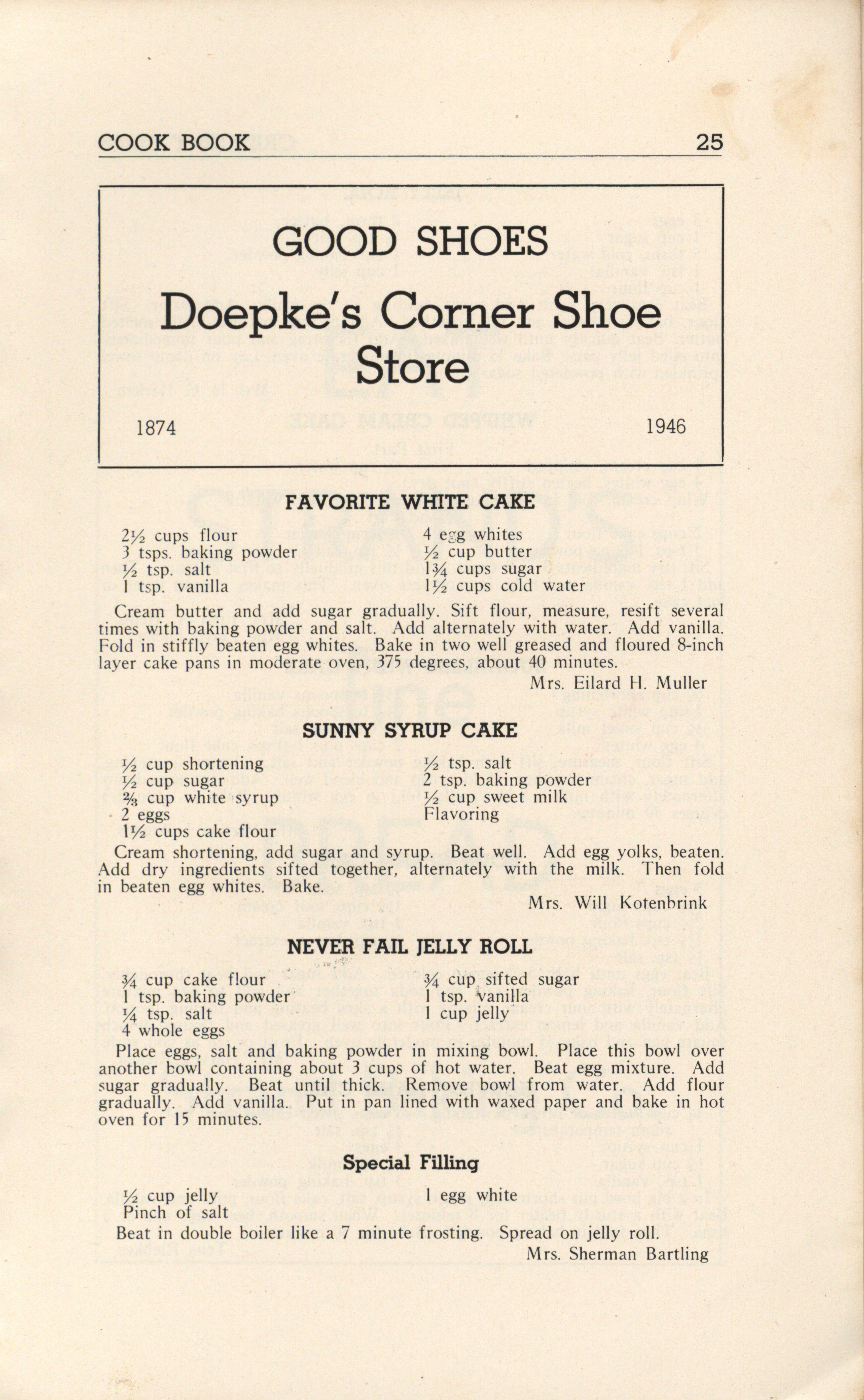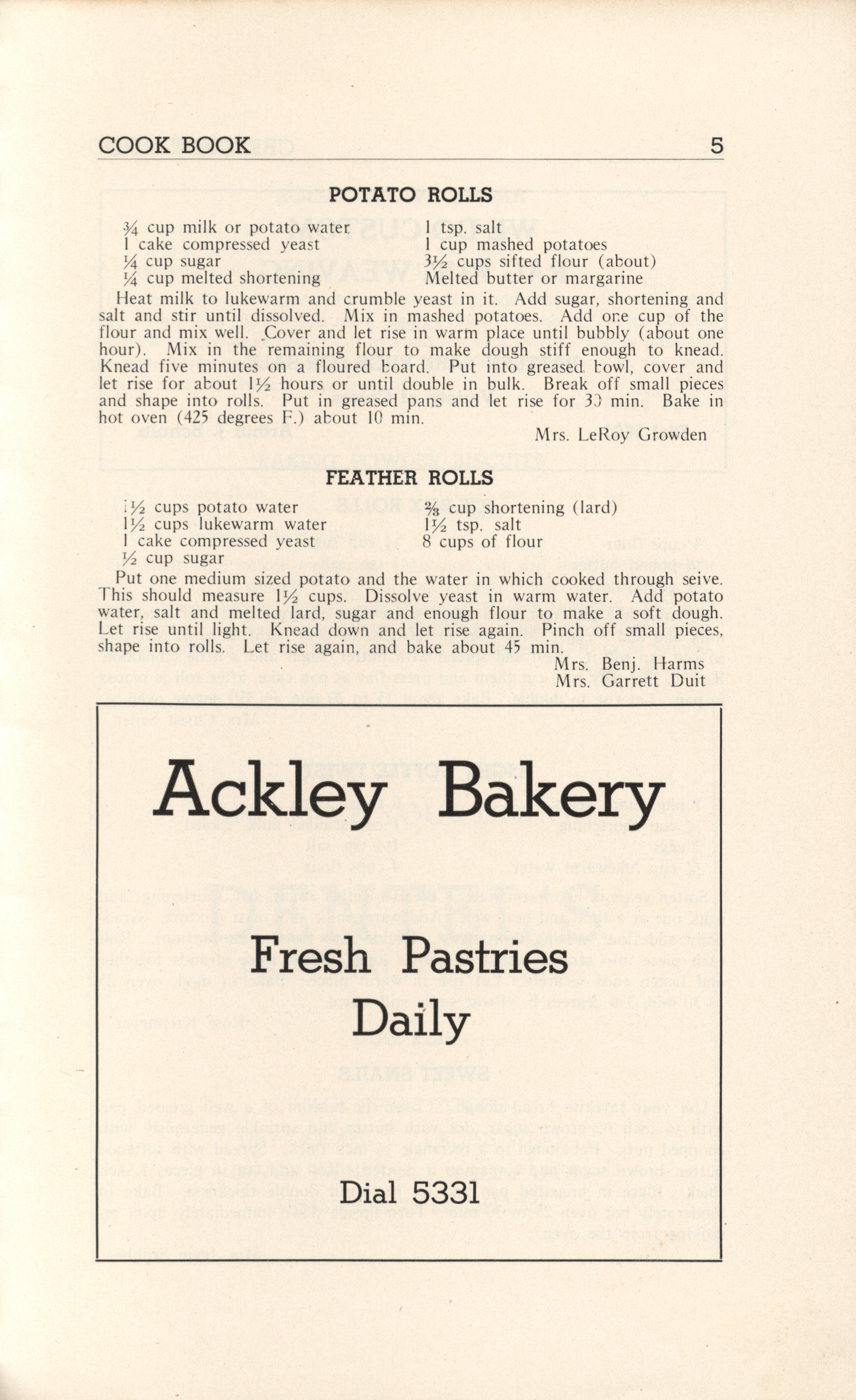 - A community cookbook compiled in 1946 by the Crescent Club of St. John’s Evangelical and Reformed Church in Ackley, Iowa. The book includes recipes contributed by club members and advertisements from local businesses.