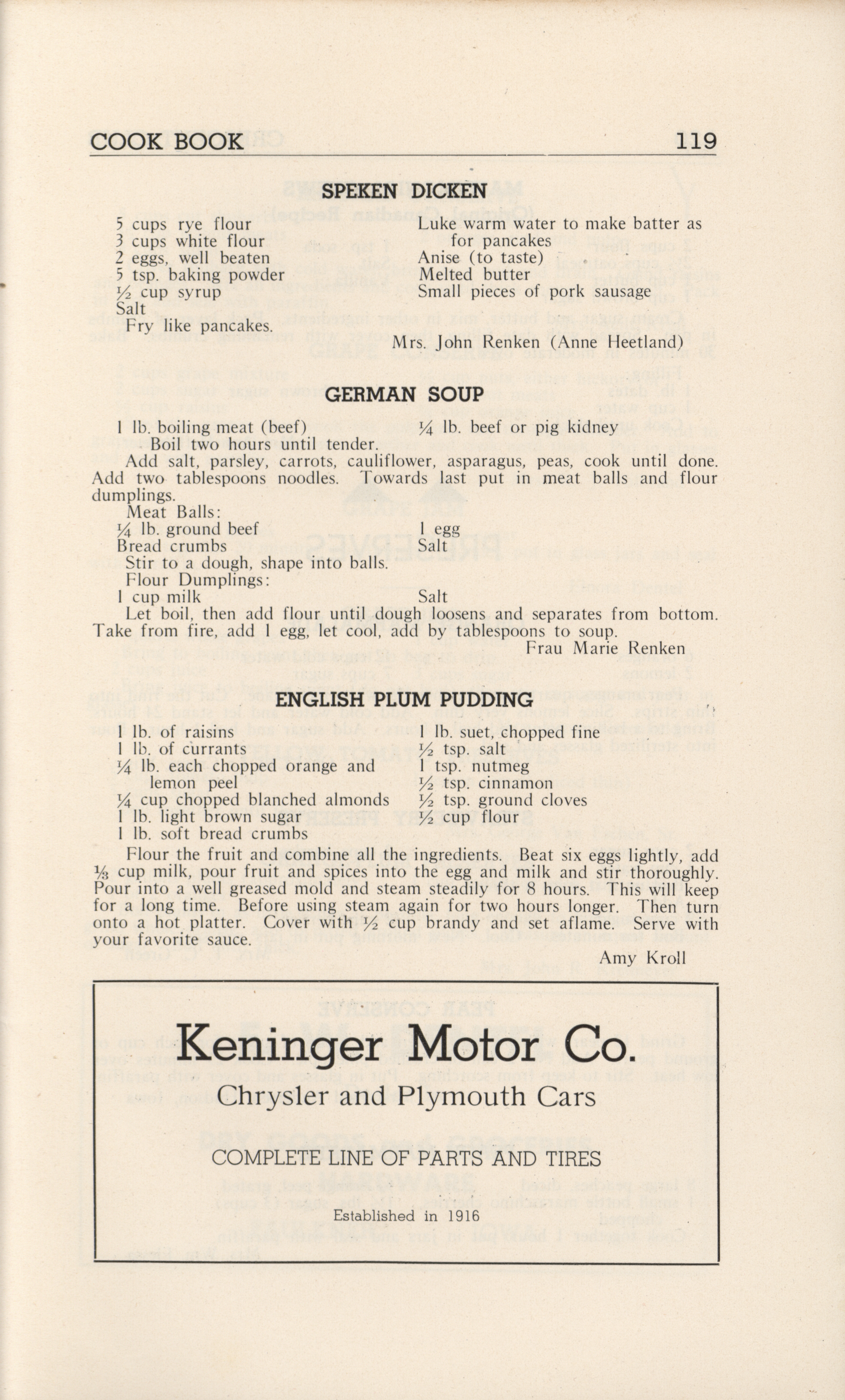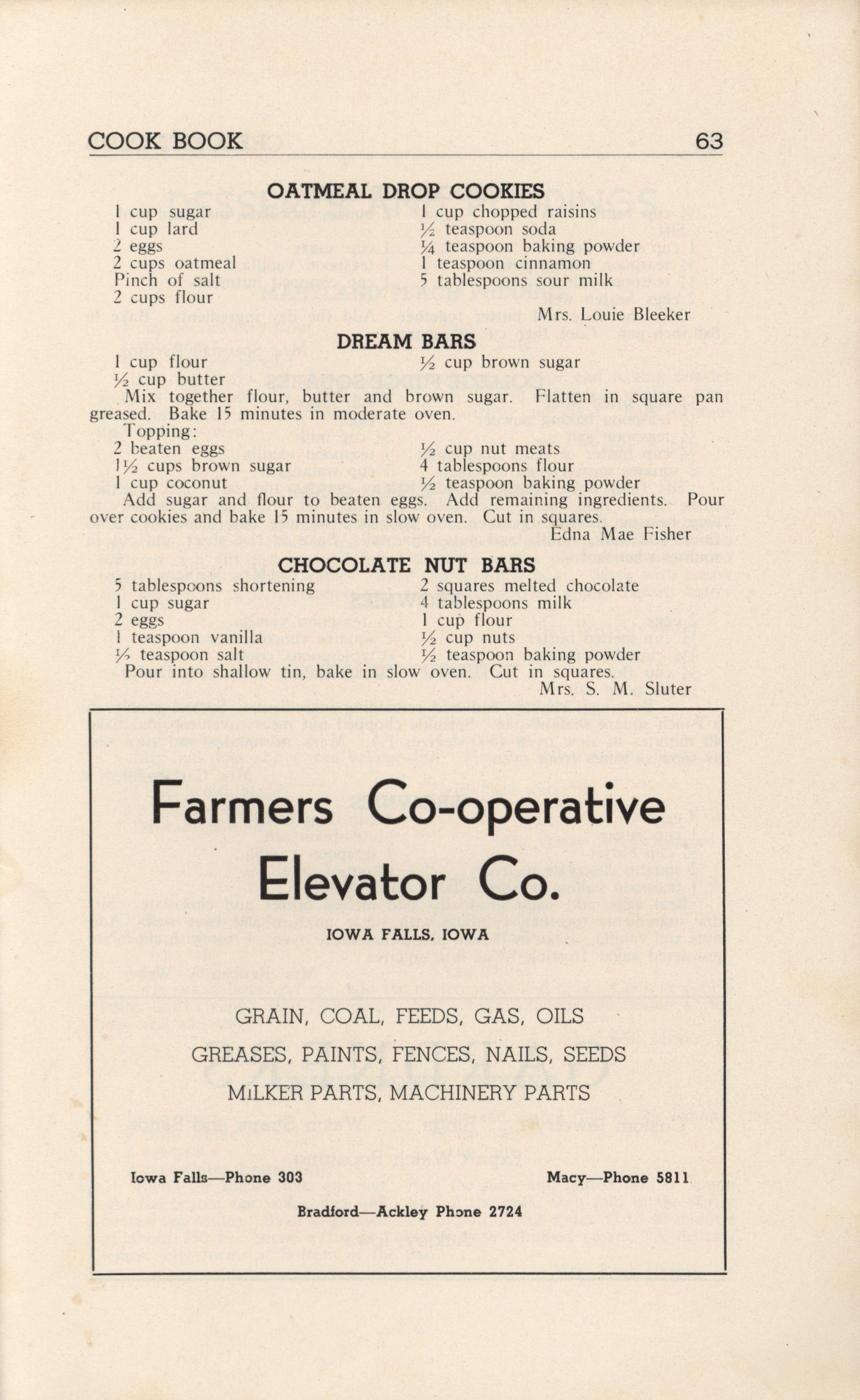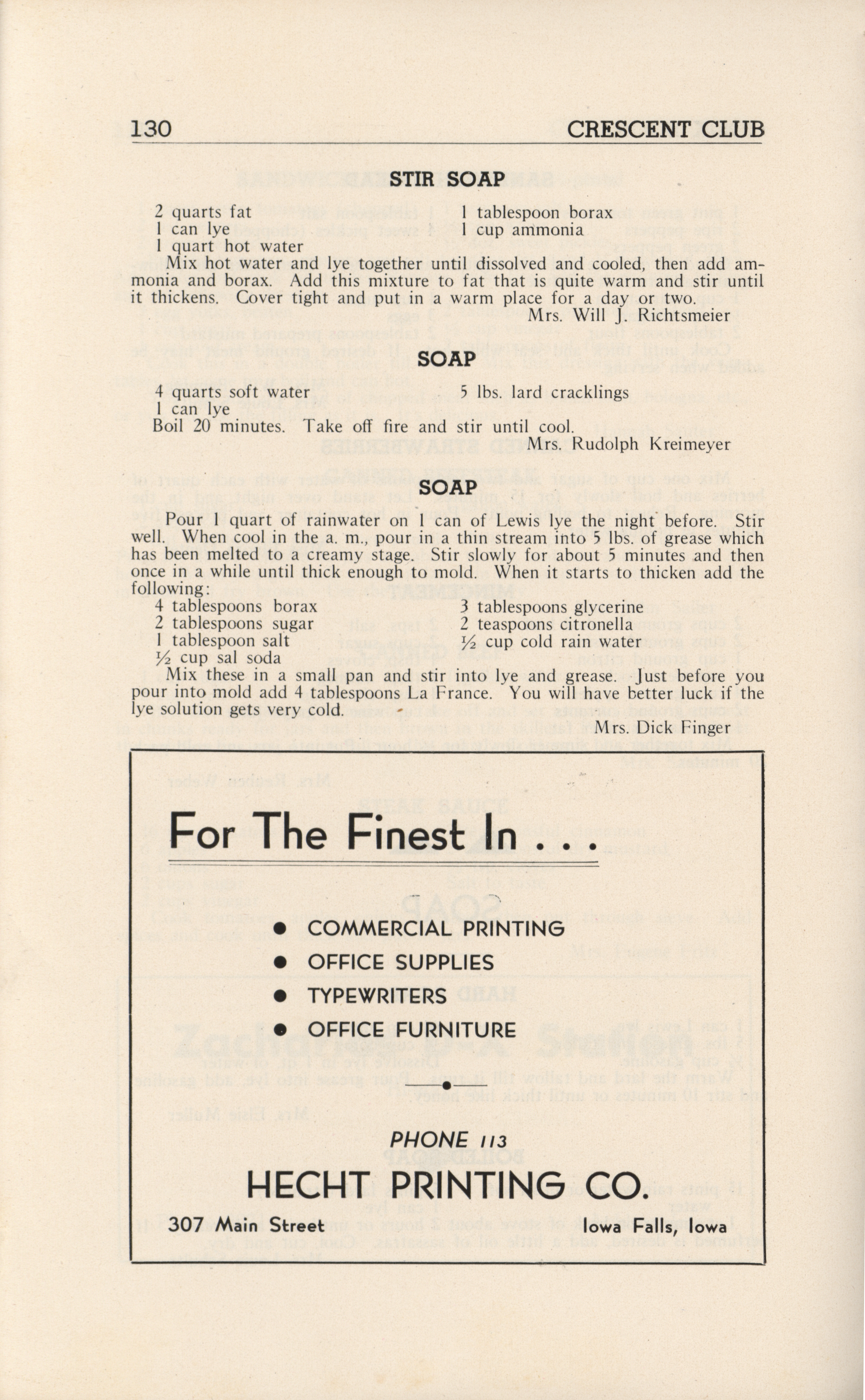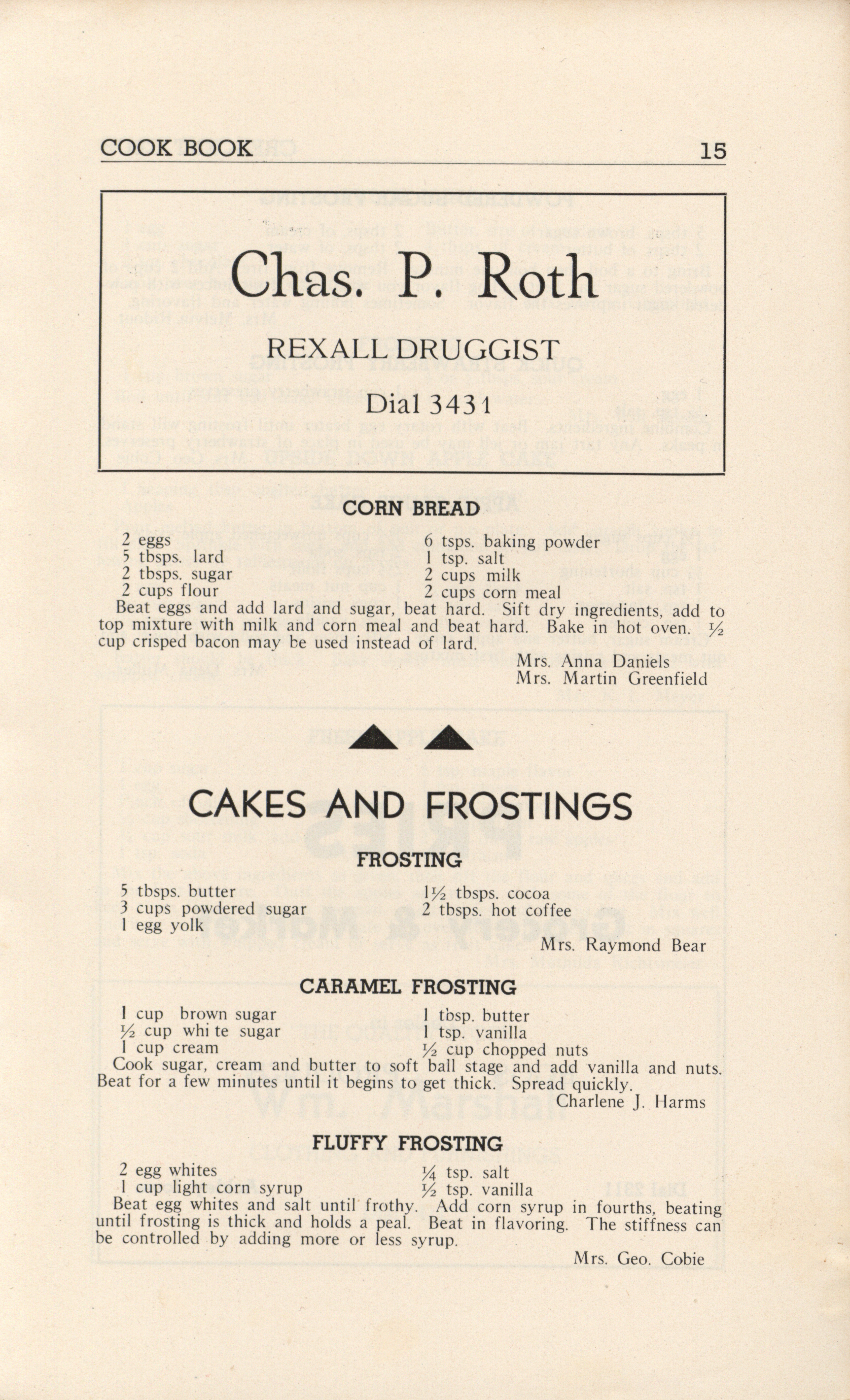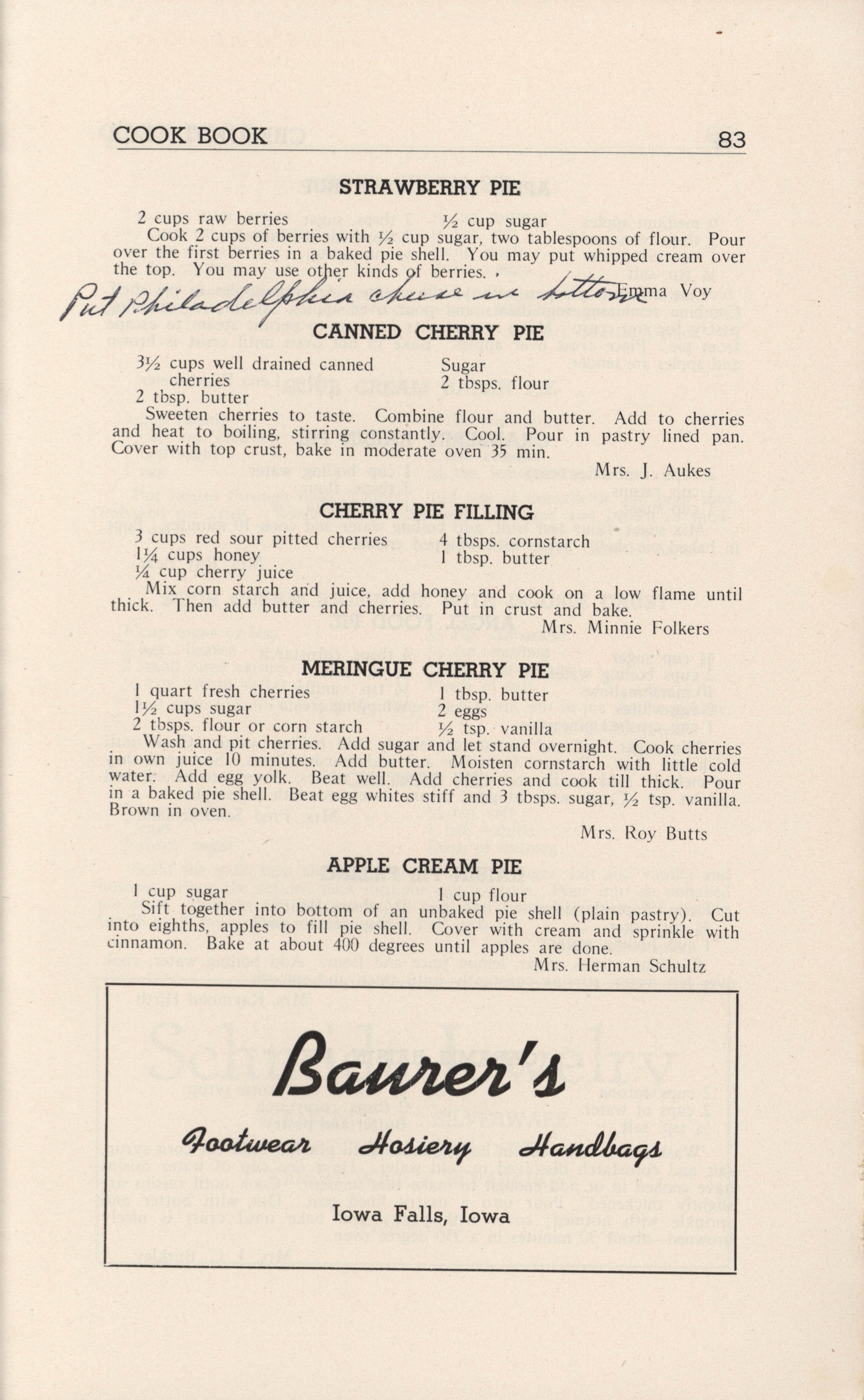 - A community cookbook compiled in 1946 by the Crescent Club of St. John’s Evangelical and Reformed Church in Ackley, Iowa. The book includes recipes contributed by club members and advertisements from local businesses.
