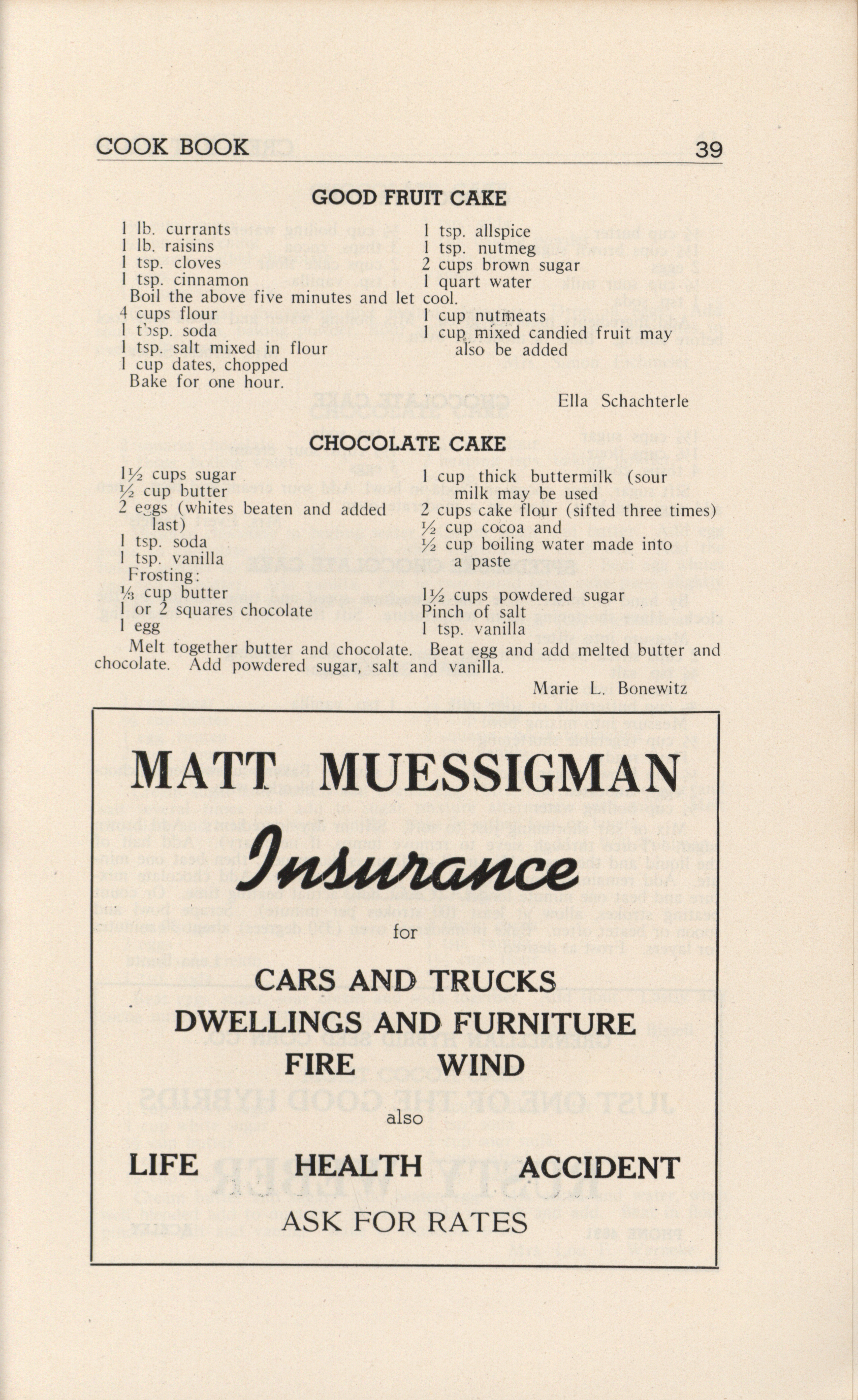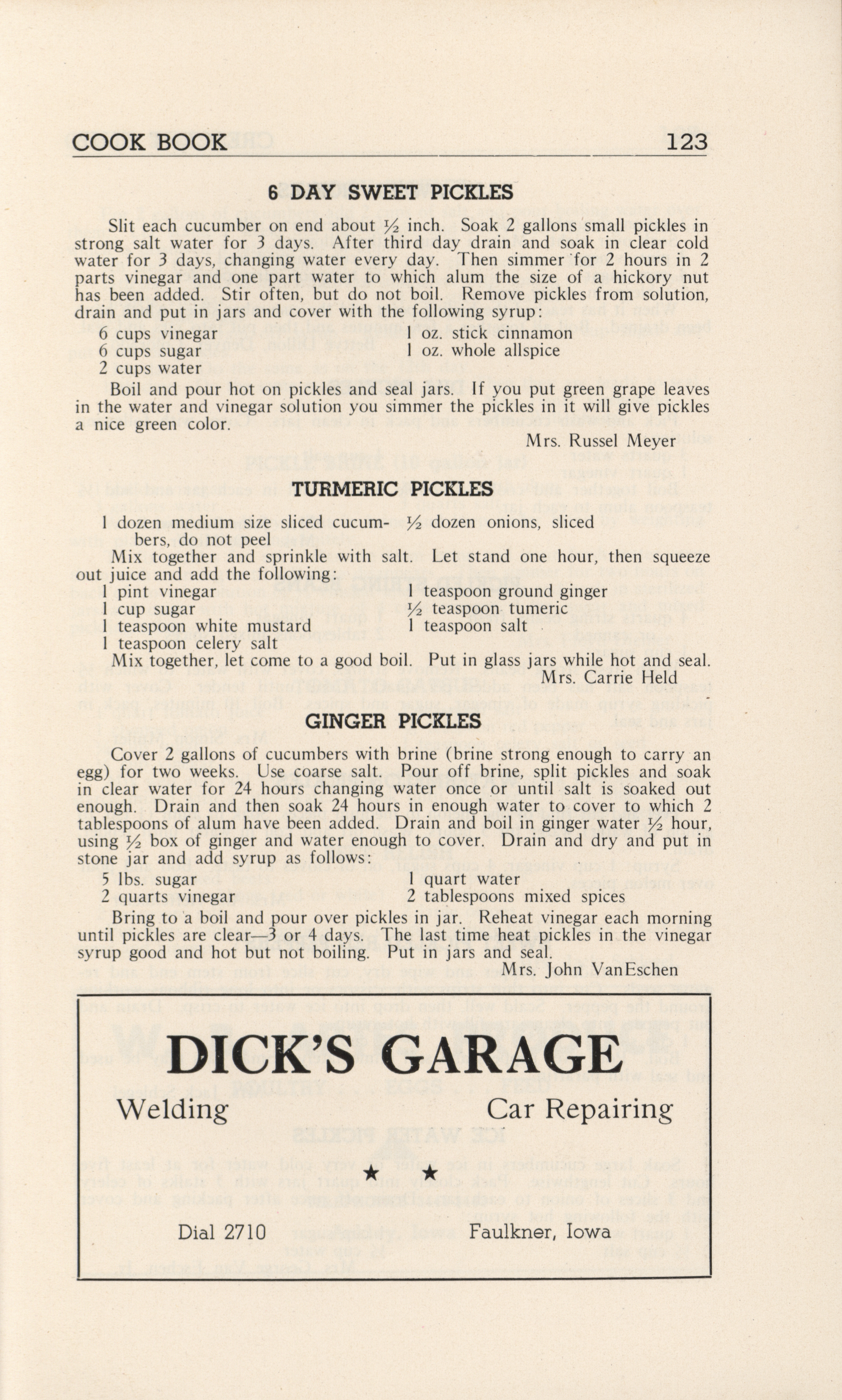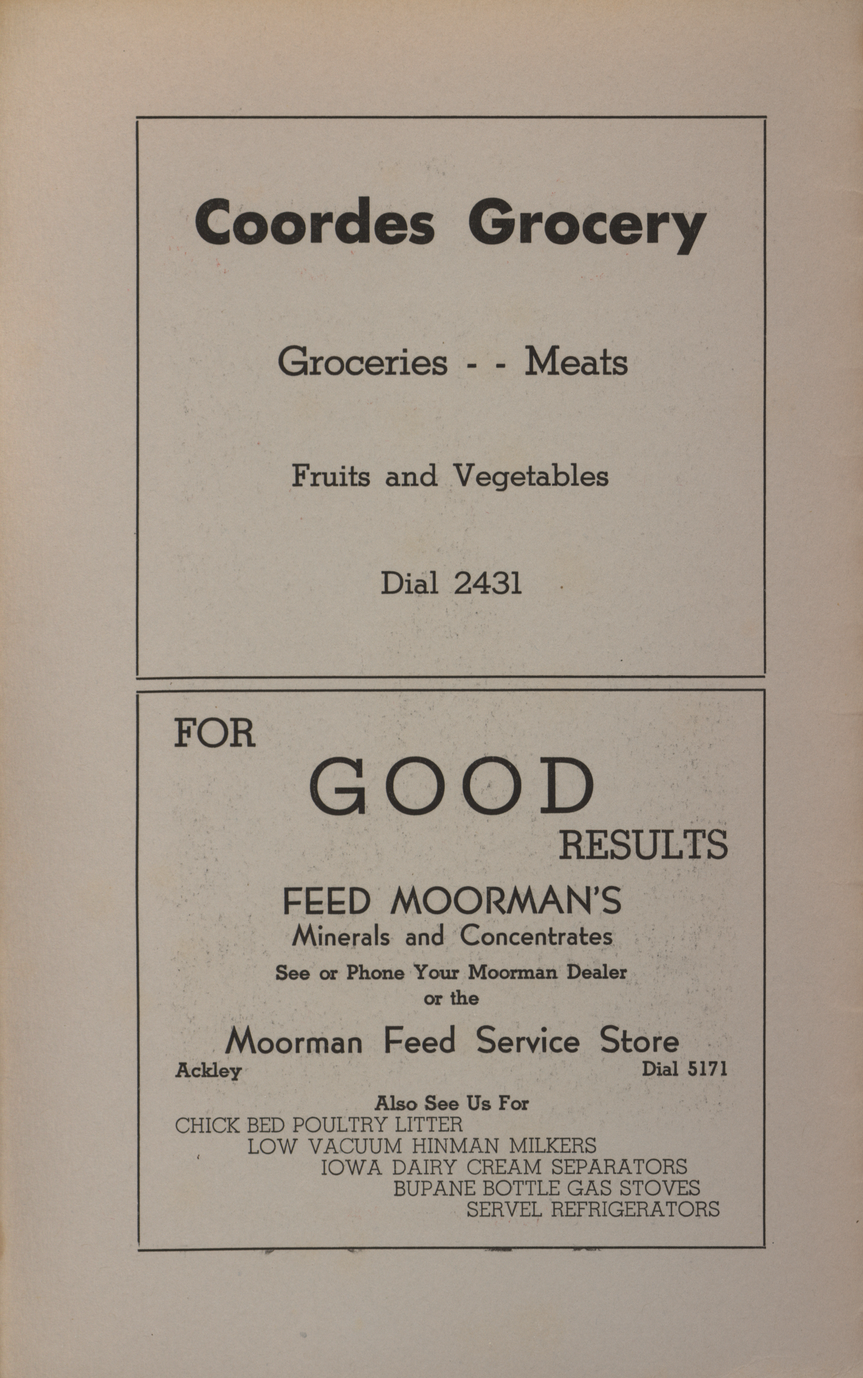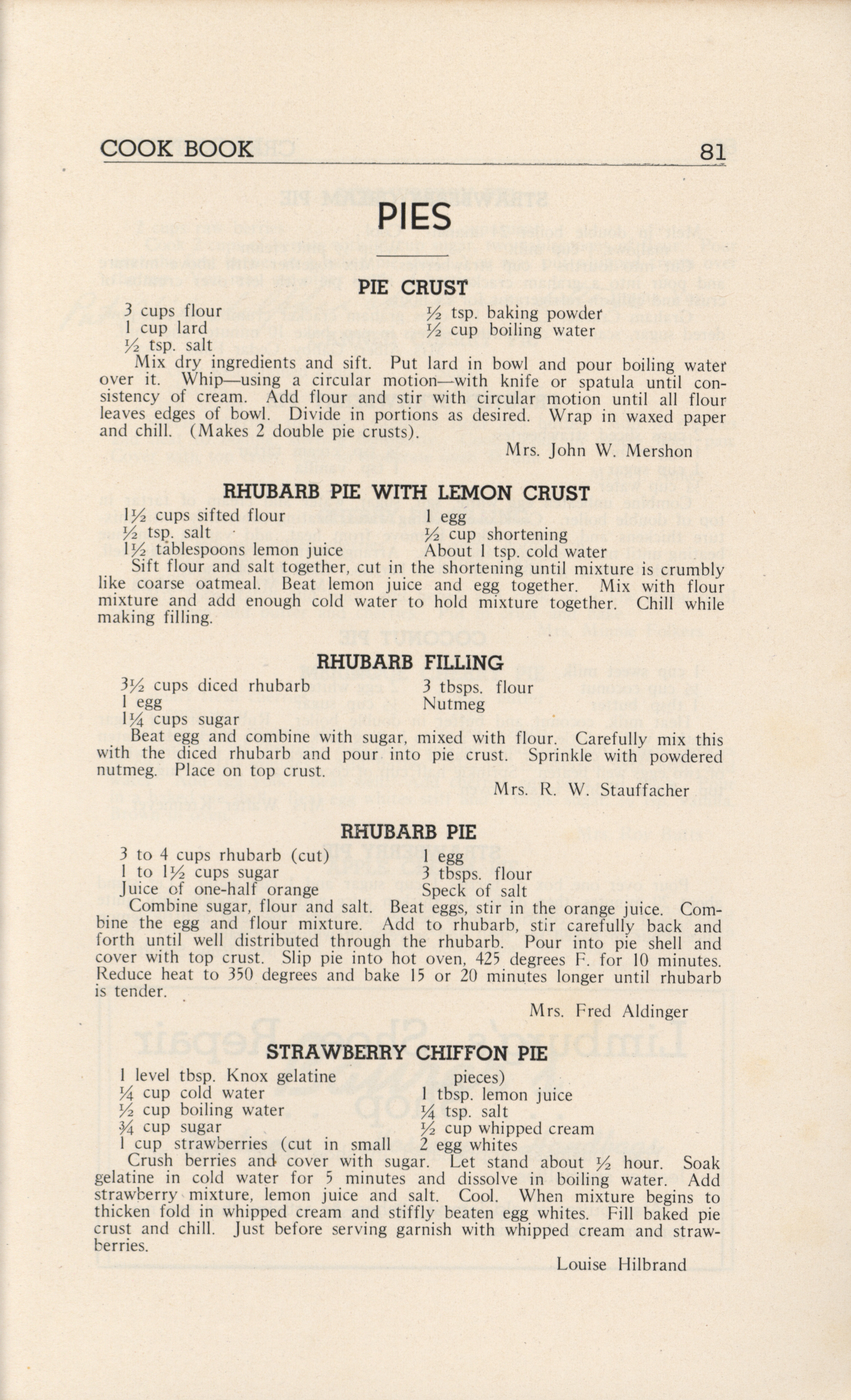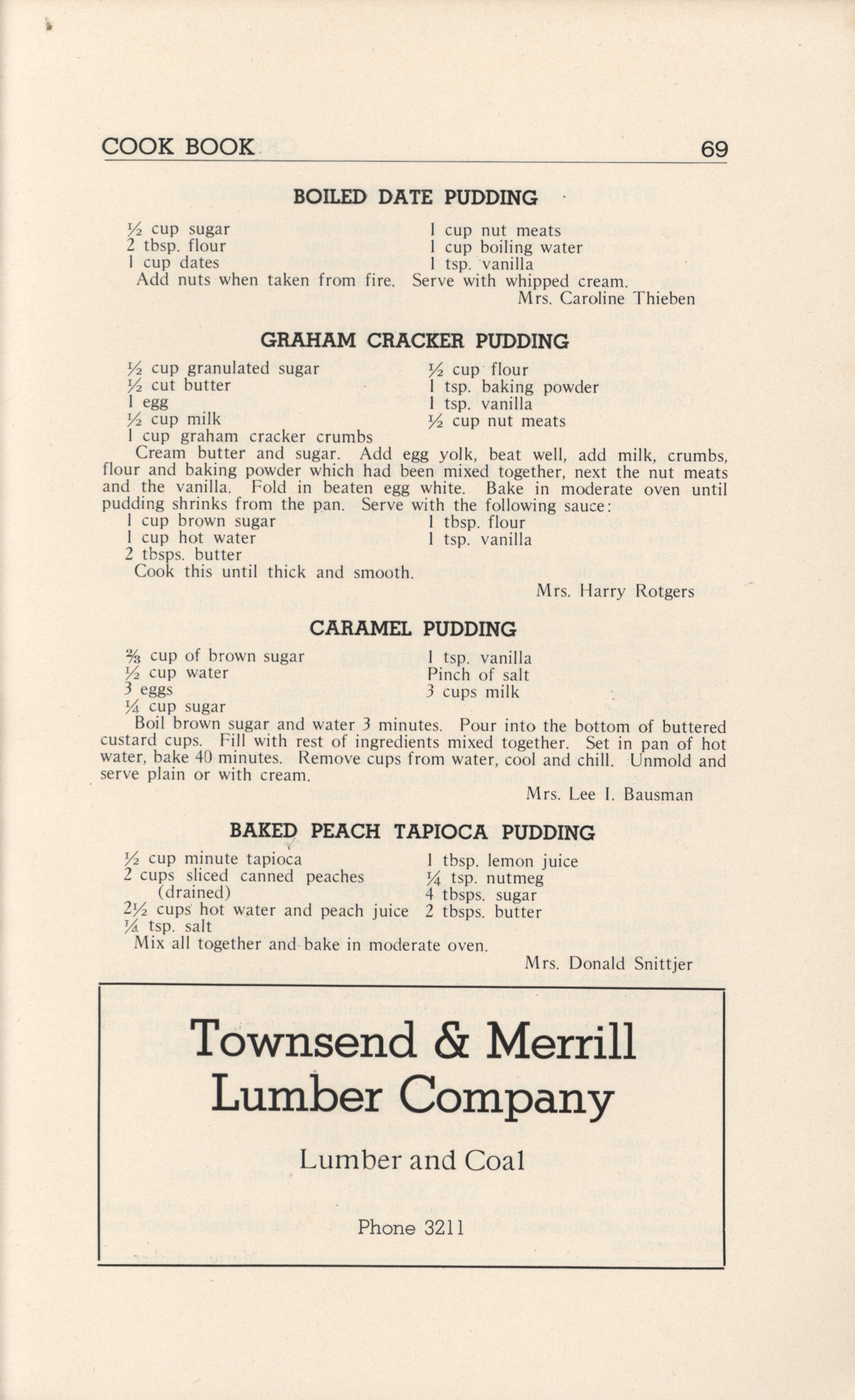 - A community cookbook compiled in 1946 by the Crescent Club of St. John’s Evangelical and Reformed Church in Ackley, Iowa. The book includes recipes contributed by club members and advertisements from local businesses.