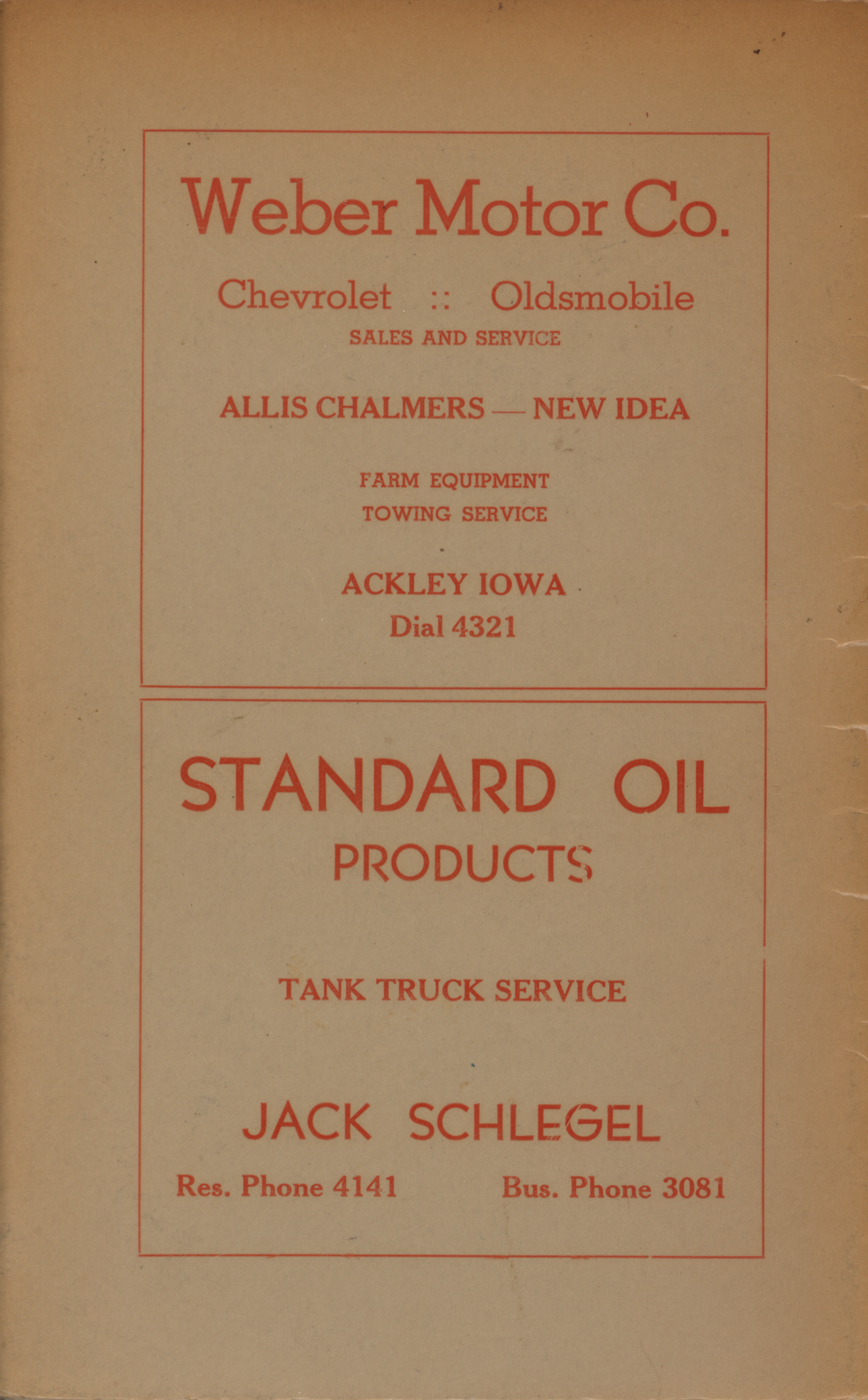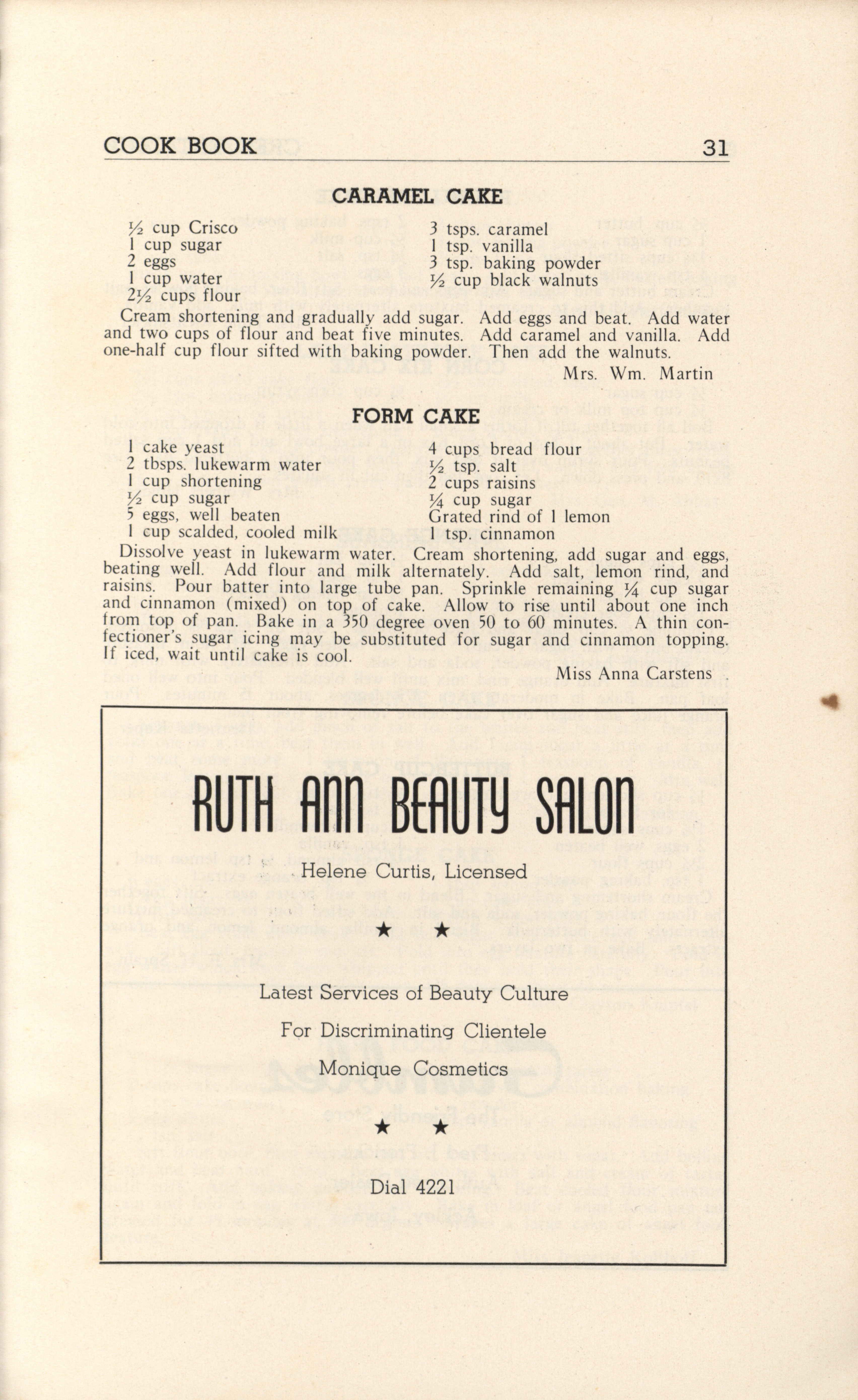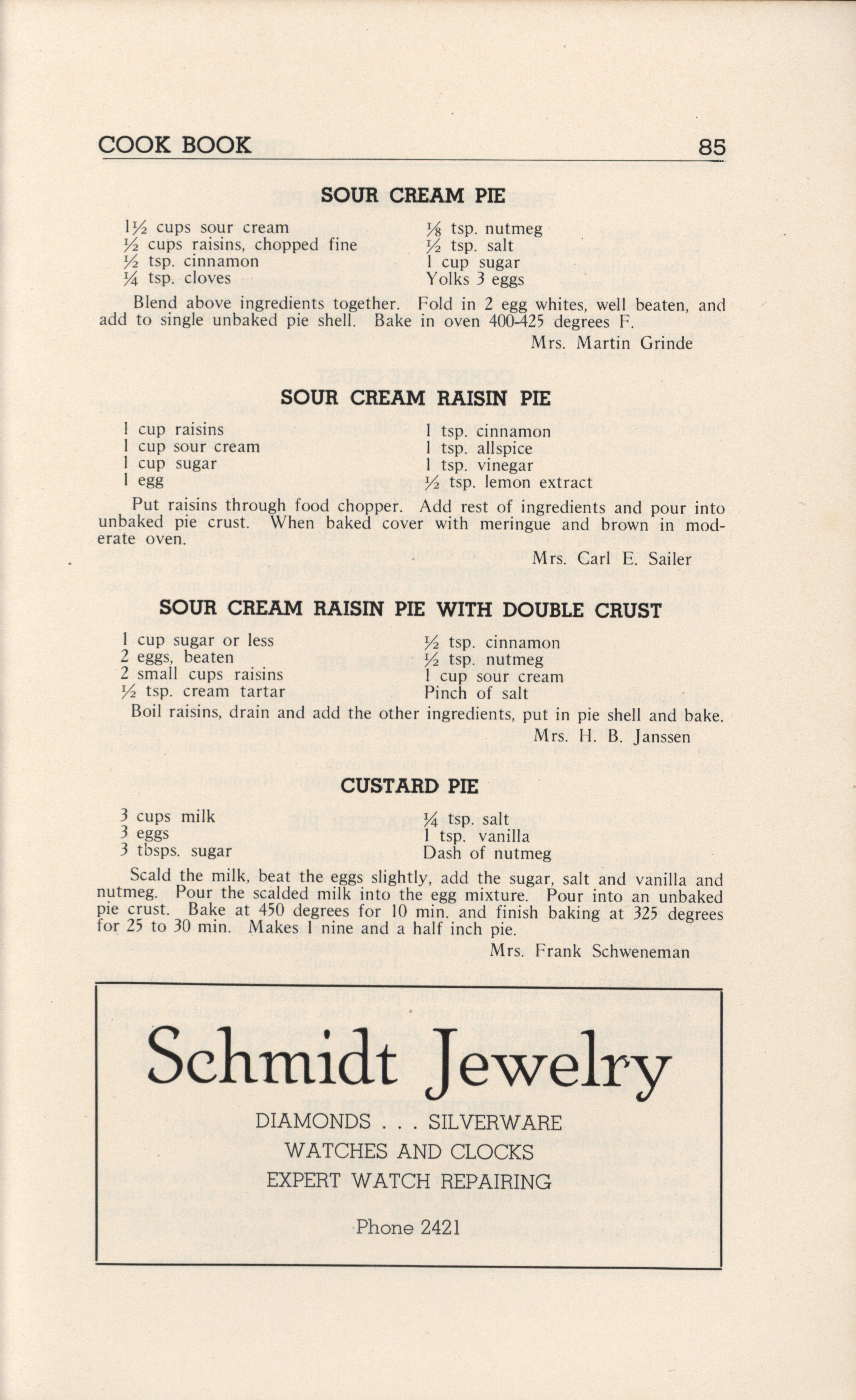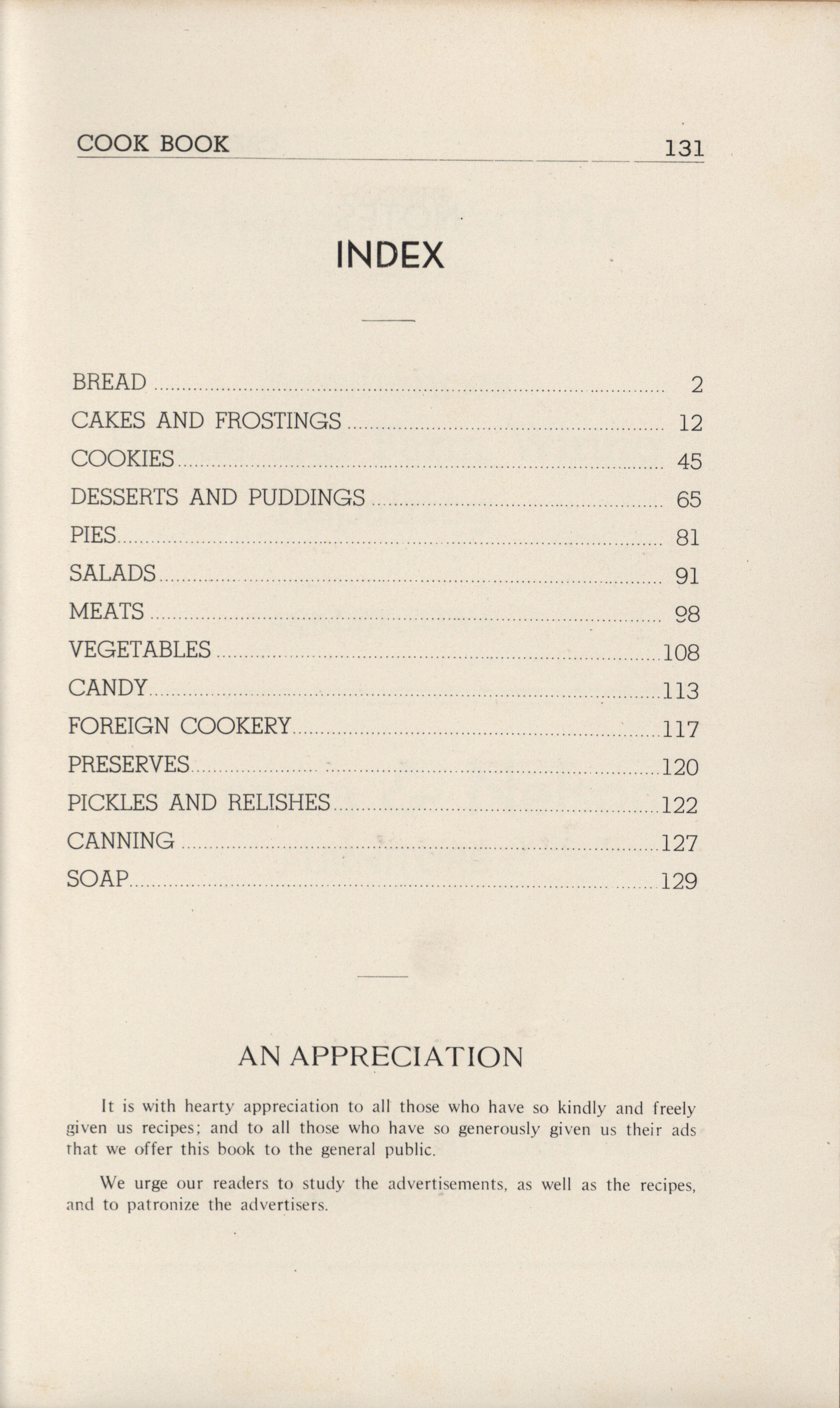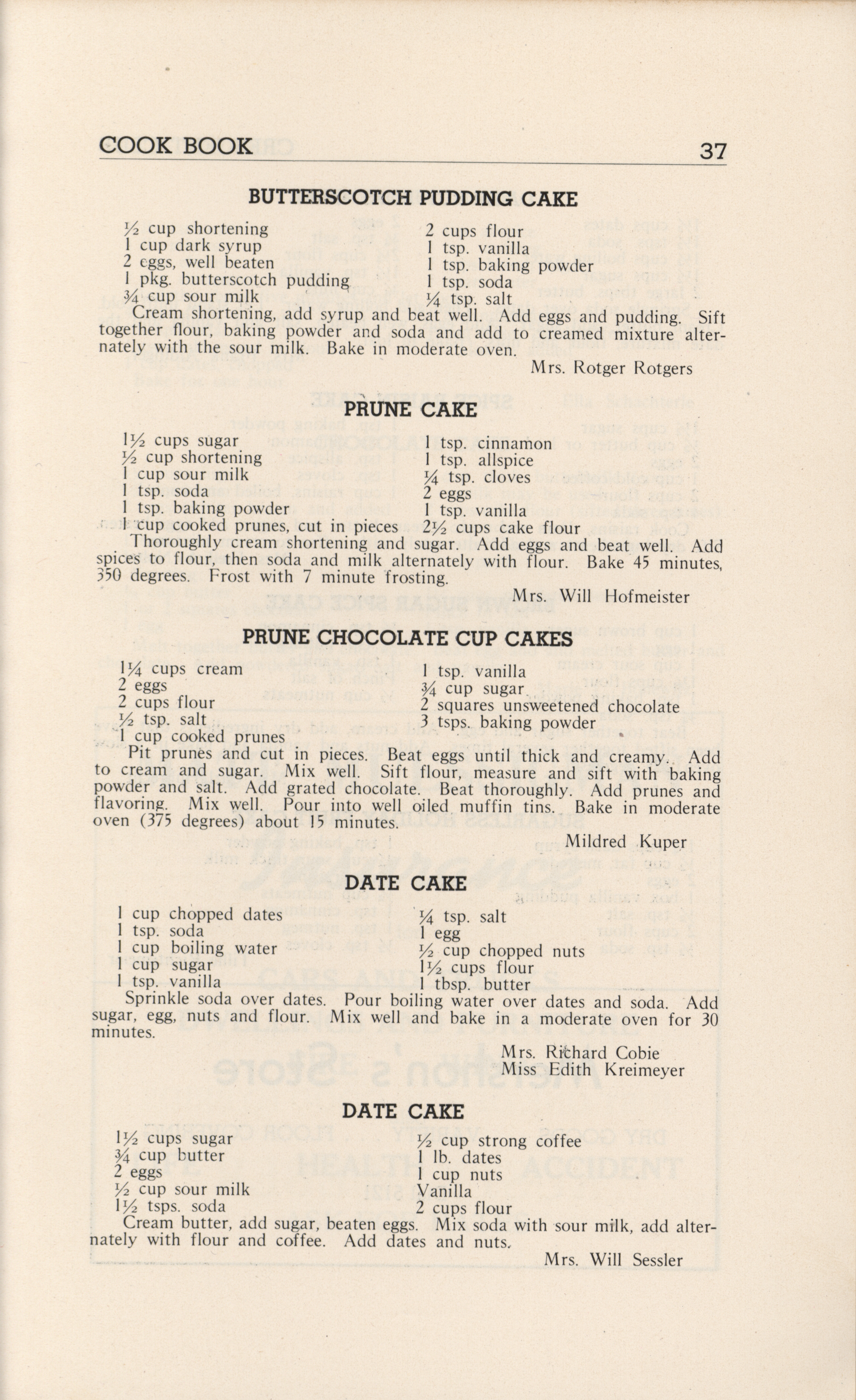 - A community cookbook compiled in 1946 by the Crescent Club of St. John’s Evangelical and Reformed Church in Ackley, Iowa. The book includes recipes contributed by club members and advertisements from local businesses.