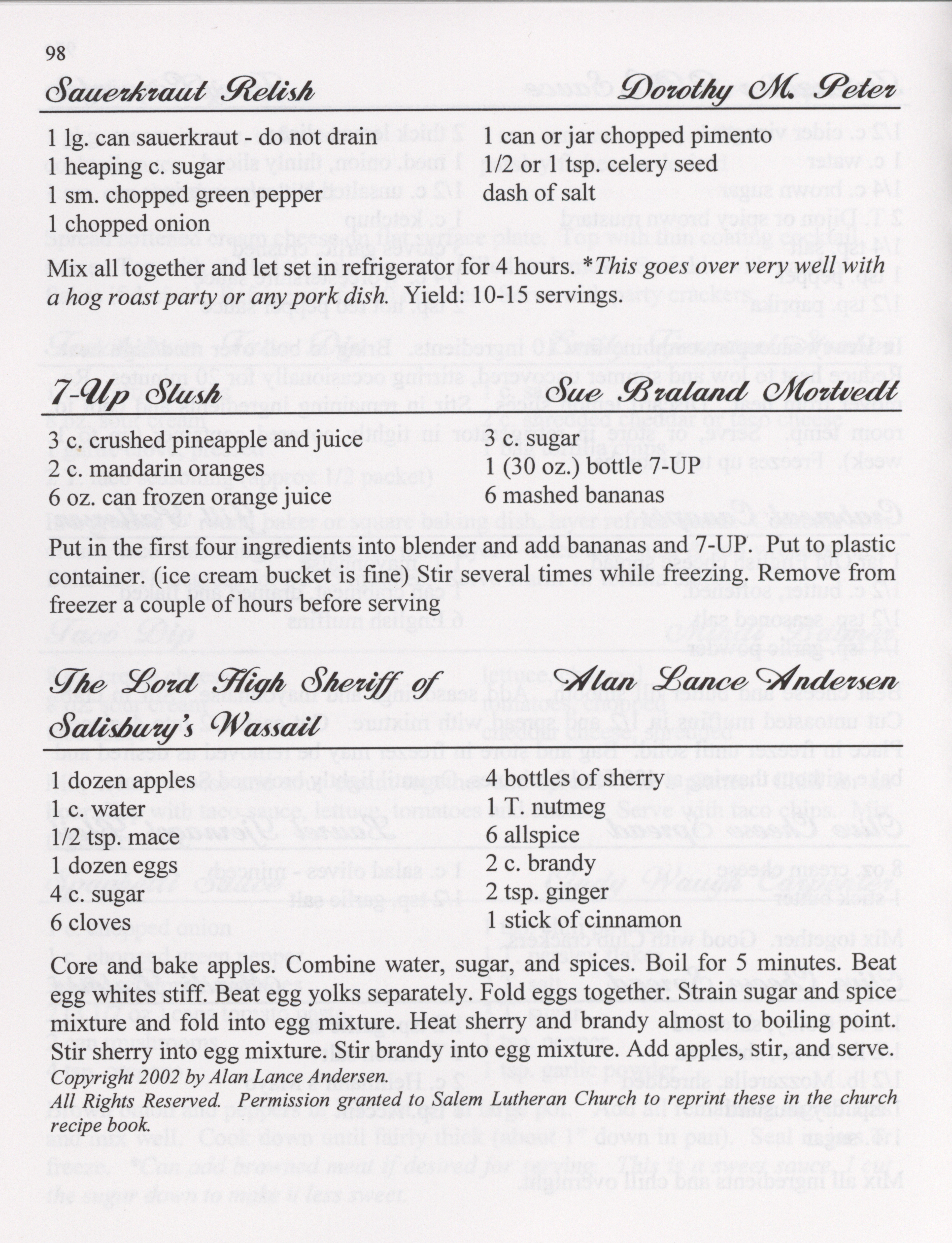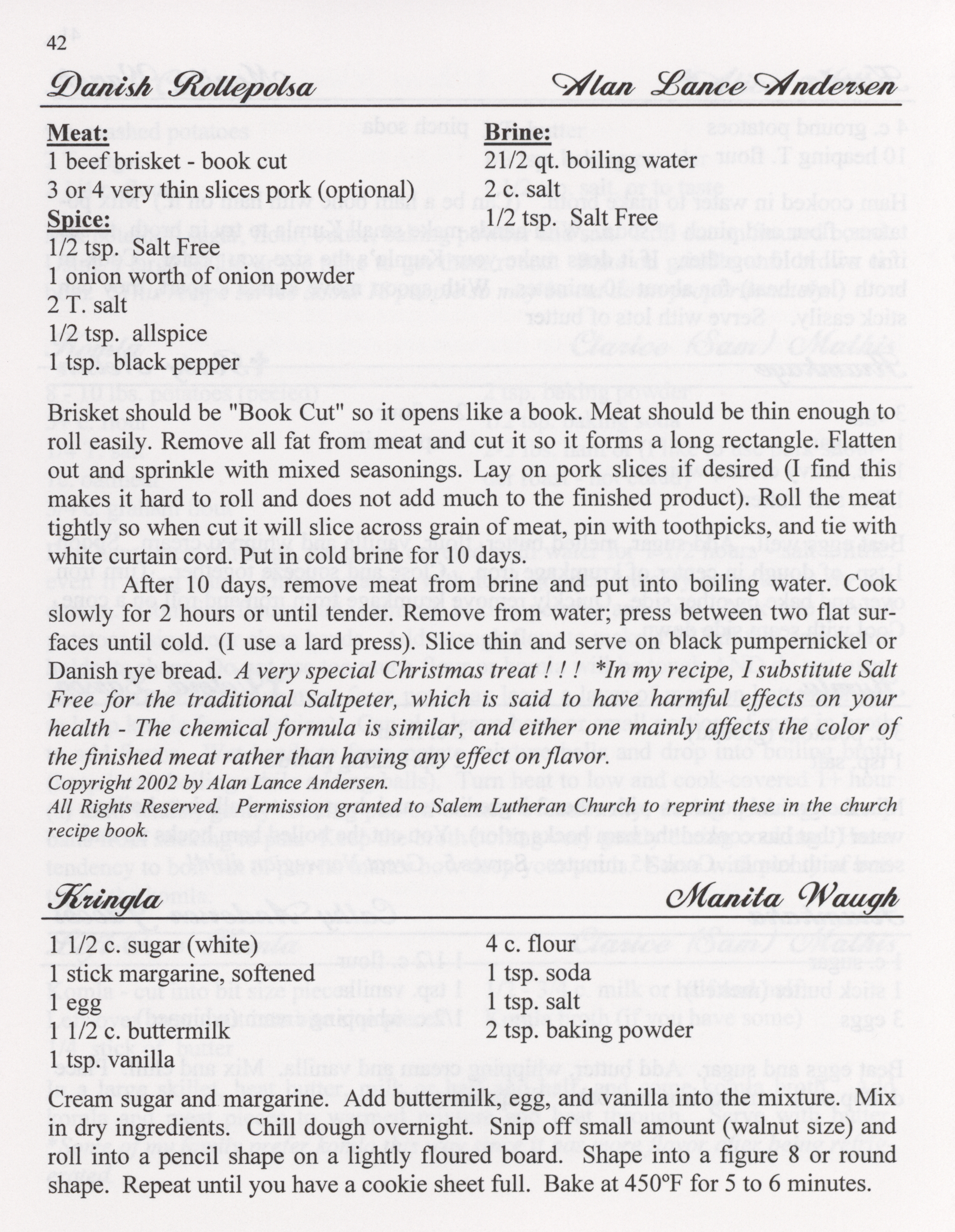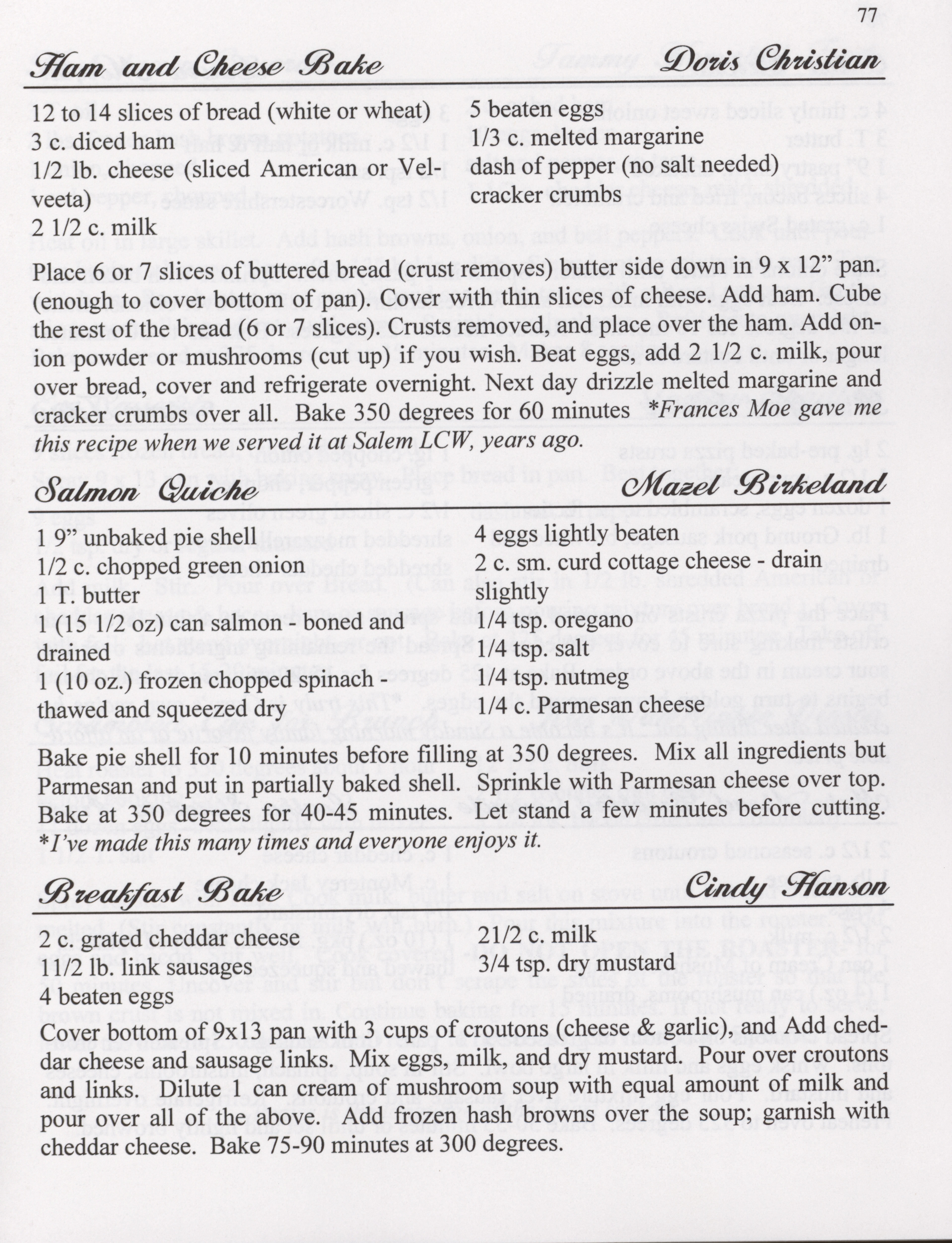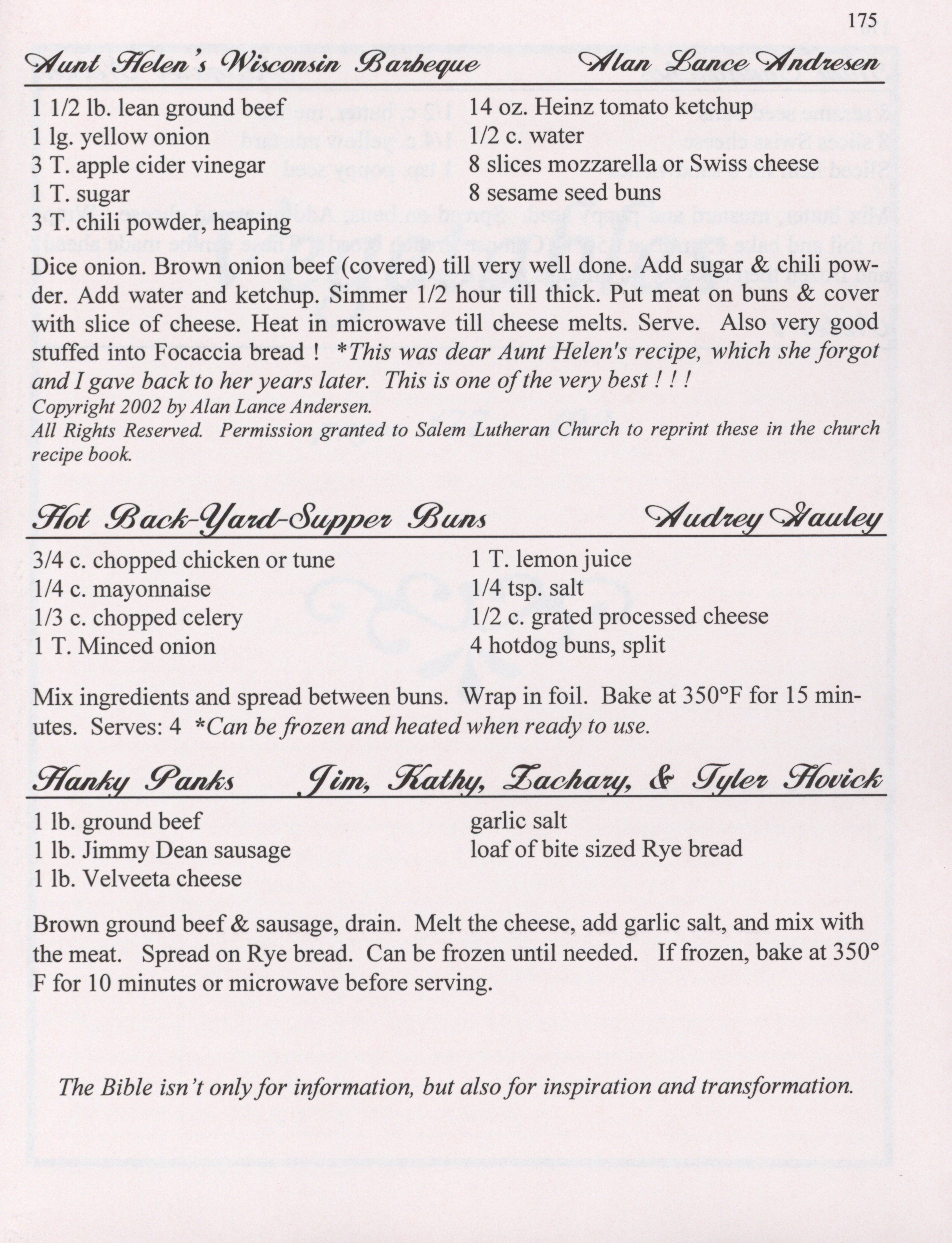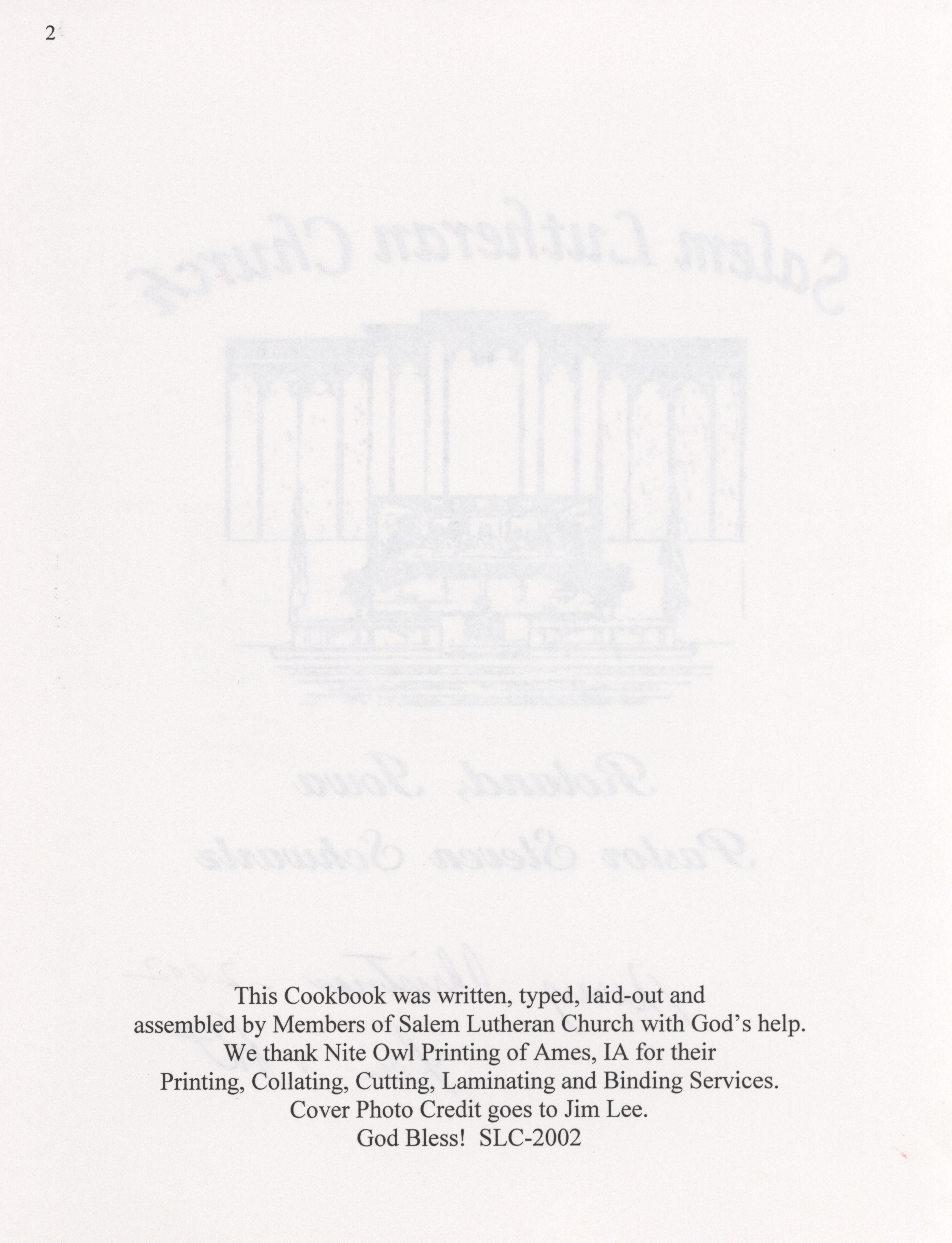 - This cookbook compiled by the Salem Lutheran Church includes a church history, photographs, quips, and household tips.