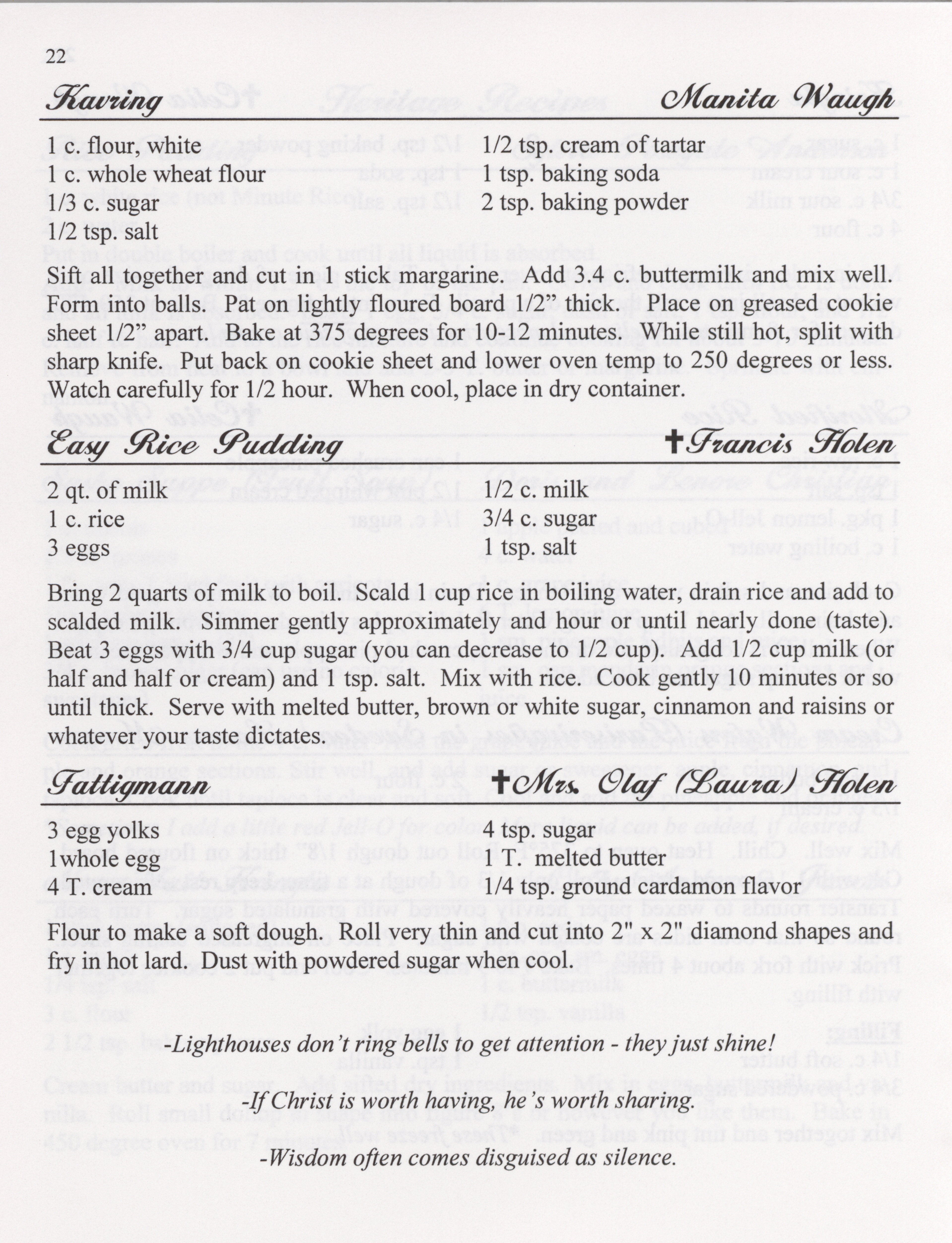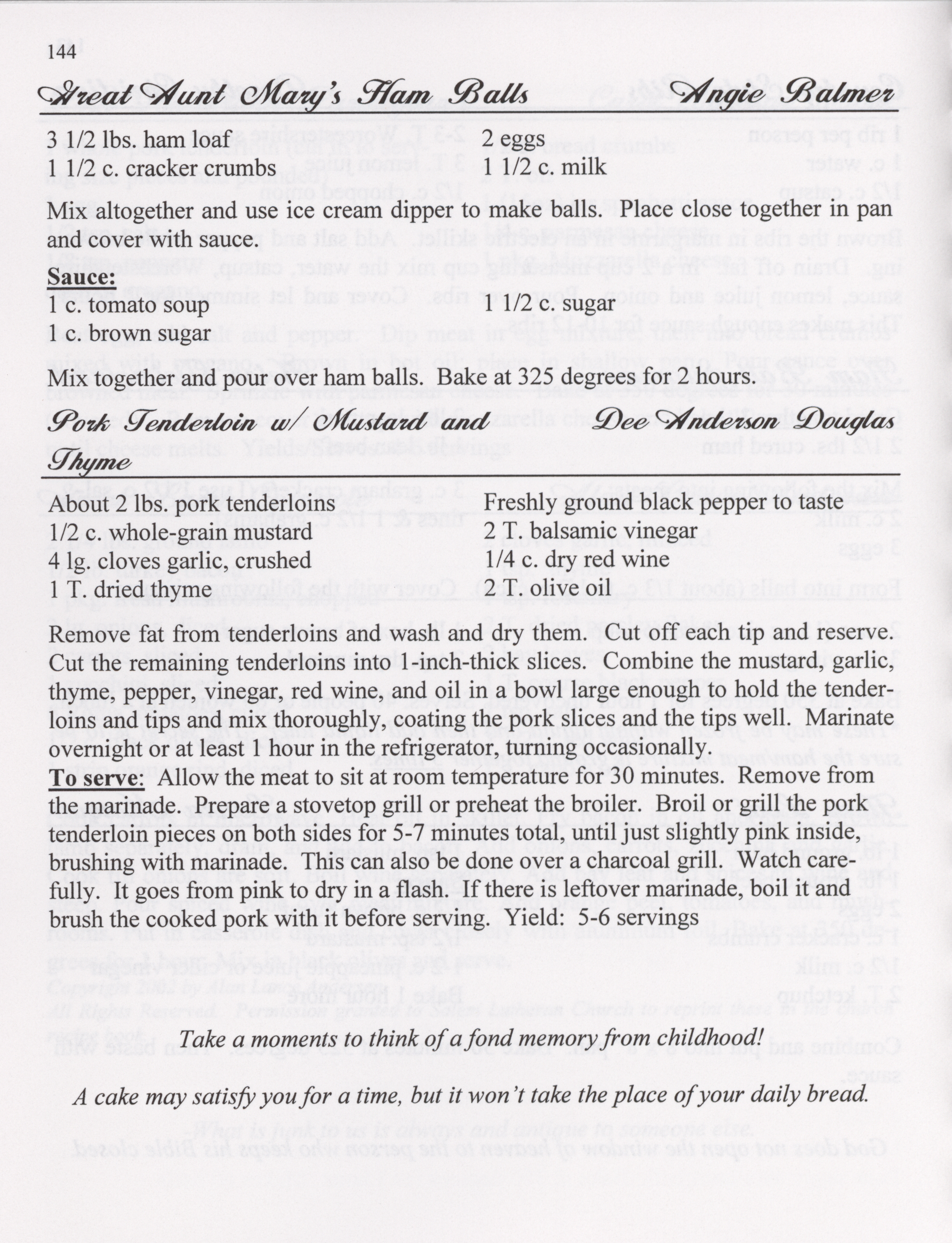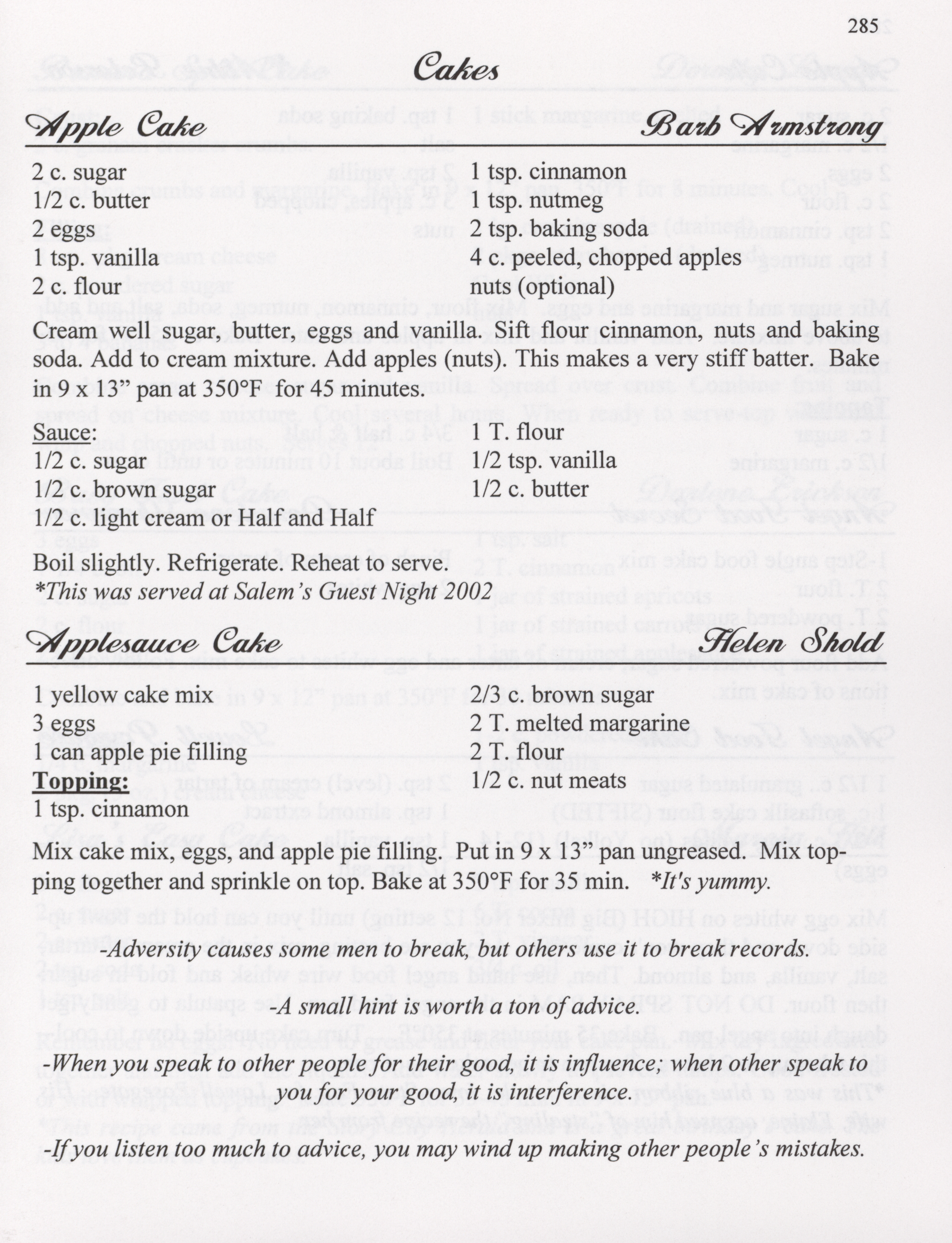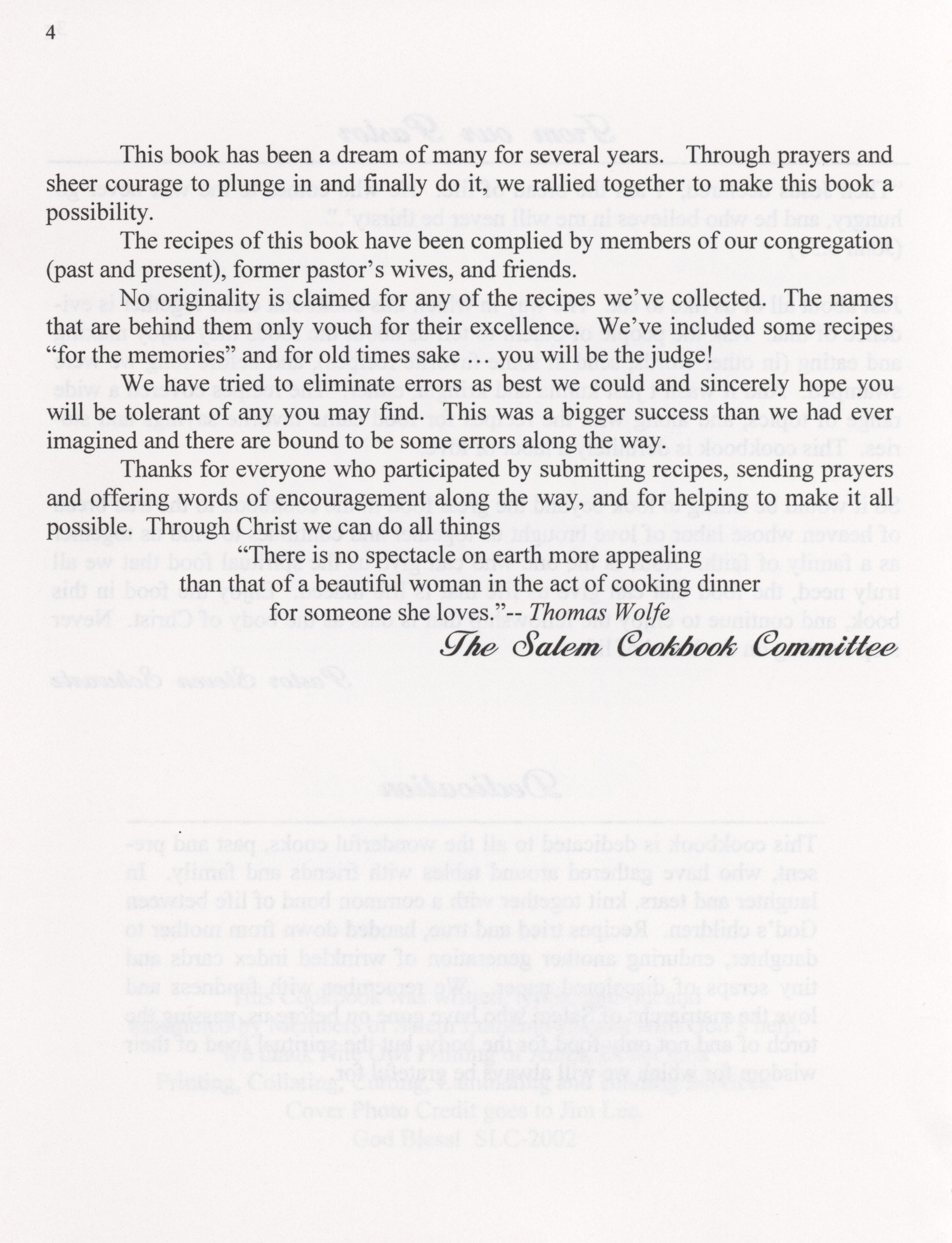 - This cookbook compiled by the Salem Lutheran Church includes a church history, photographs, quips, and household tips.