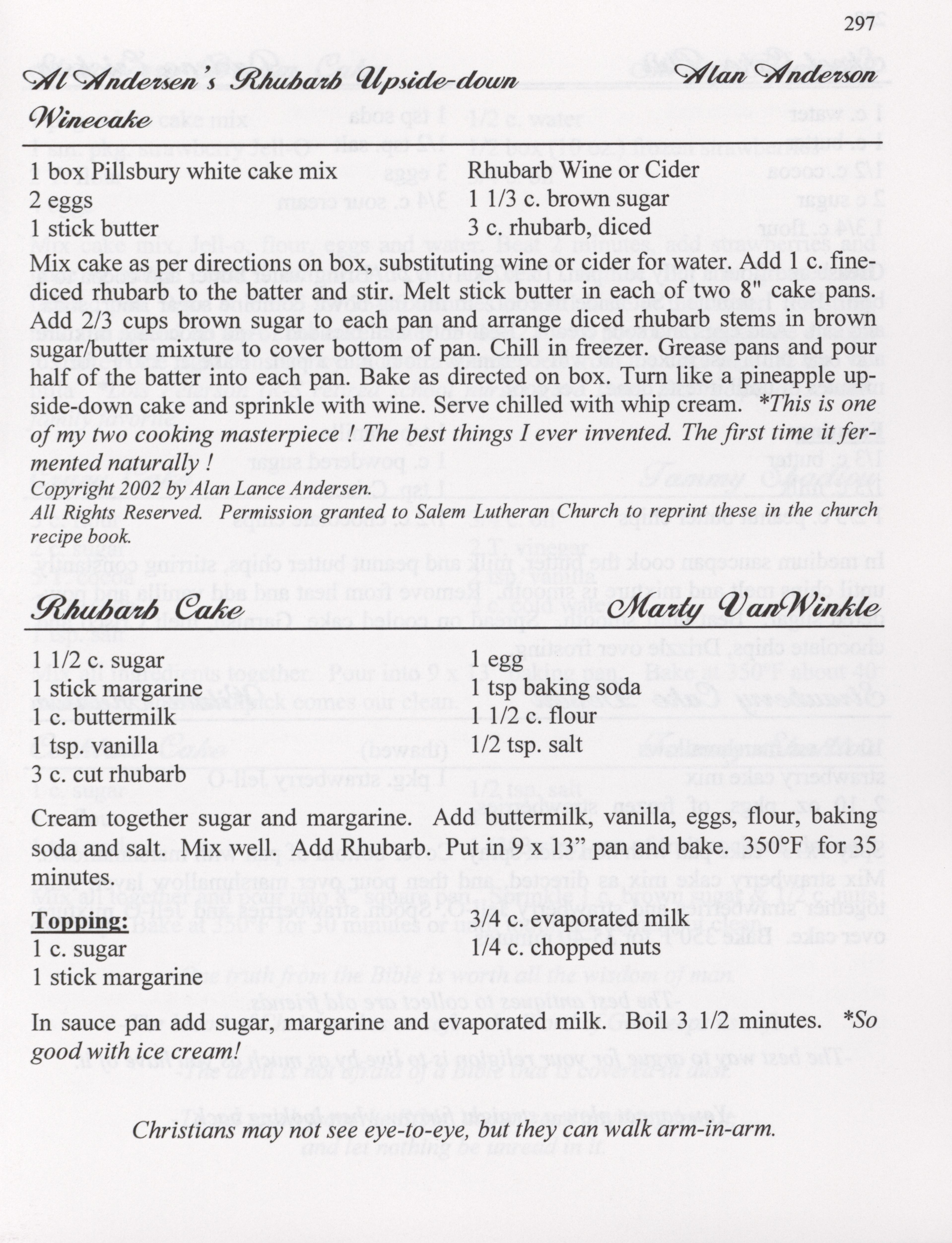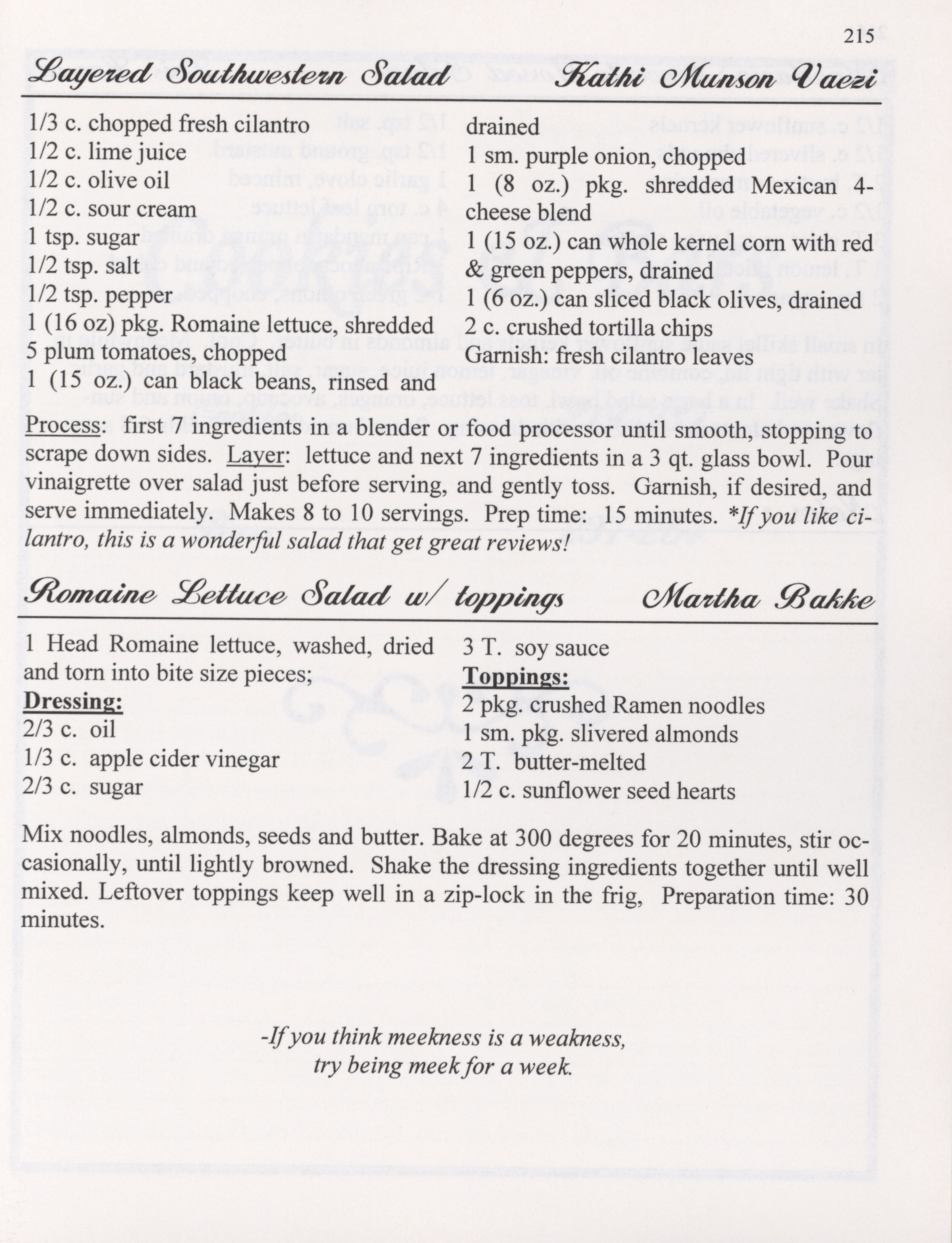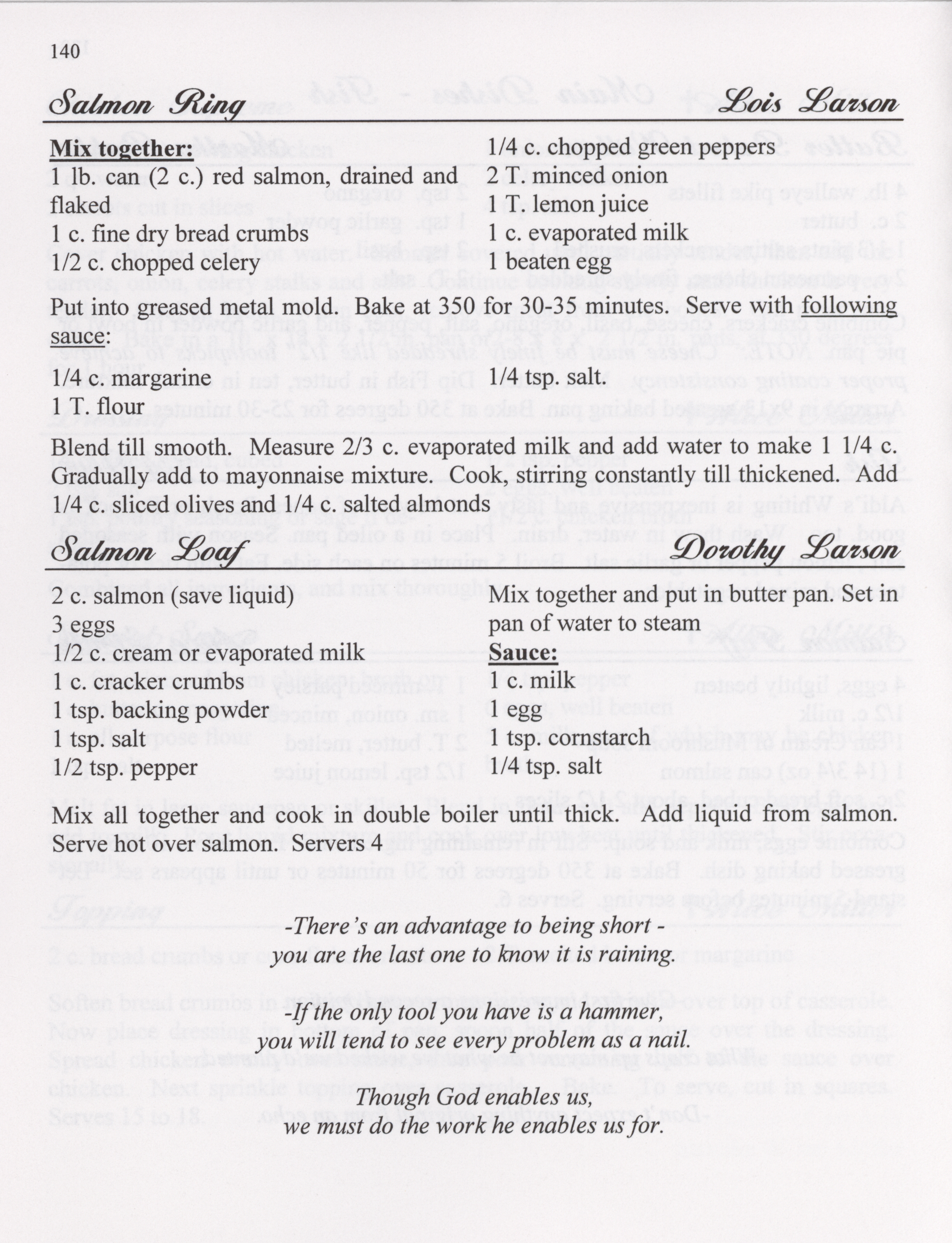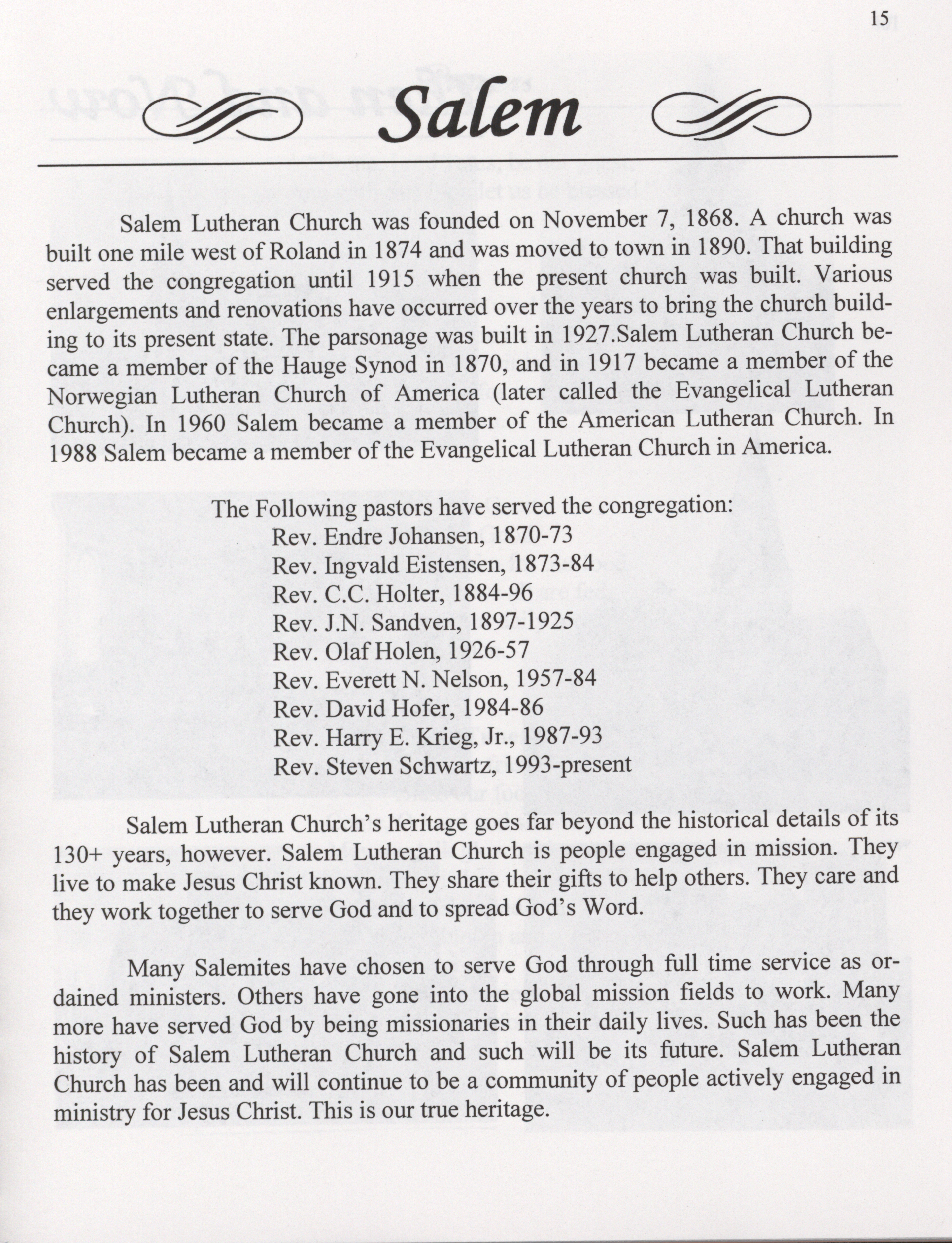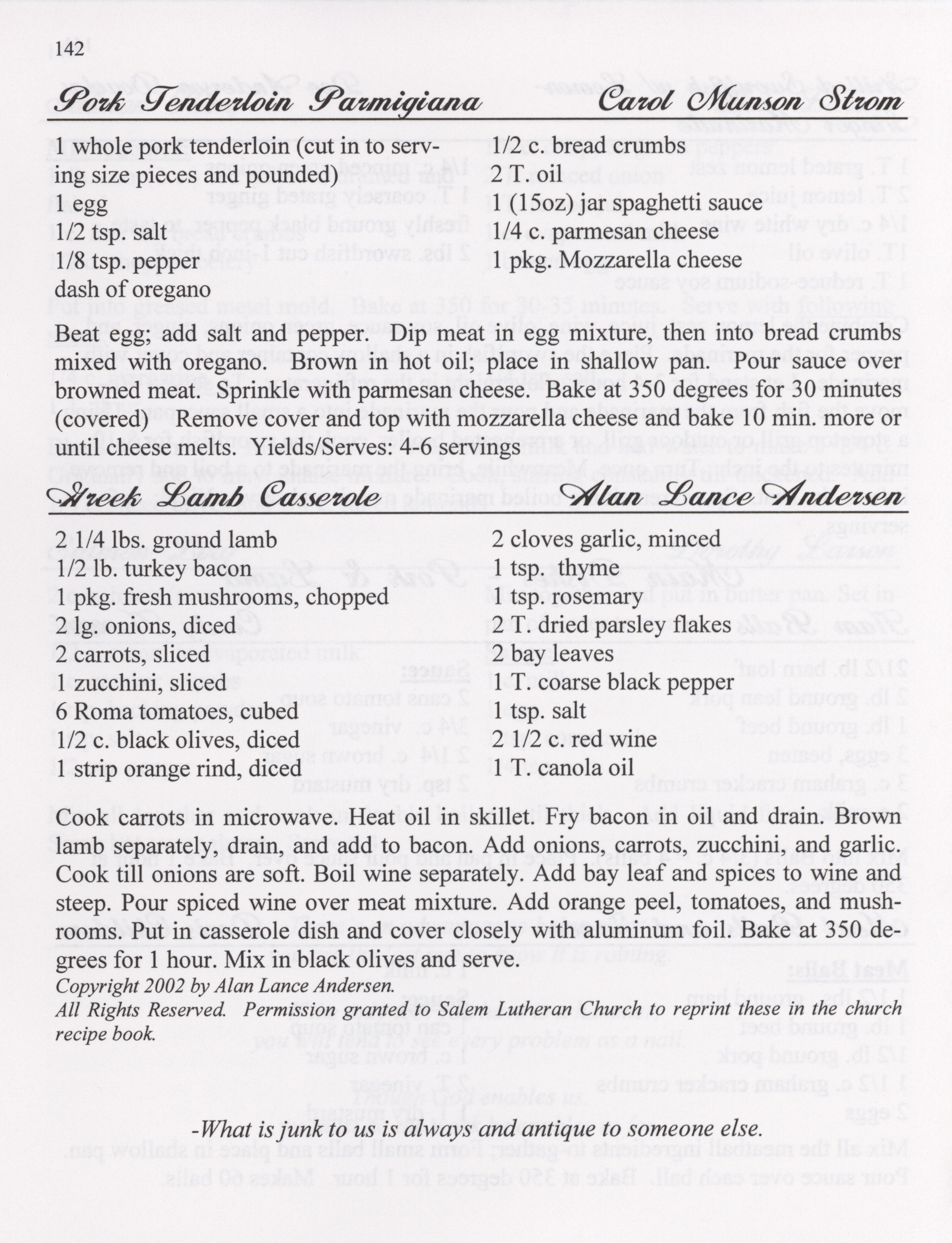 - This cookbook compiled by the Salem Lutheran Church includes a church history, photographs, quips, and household tips.