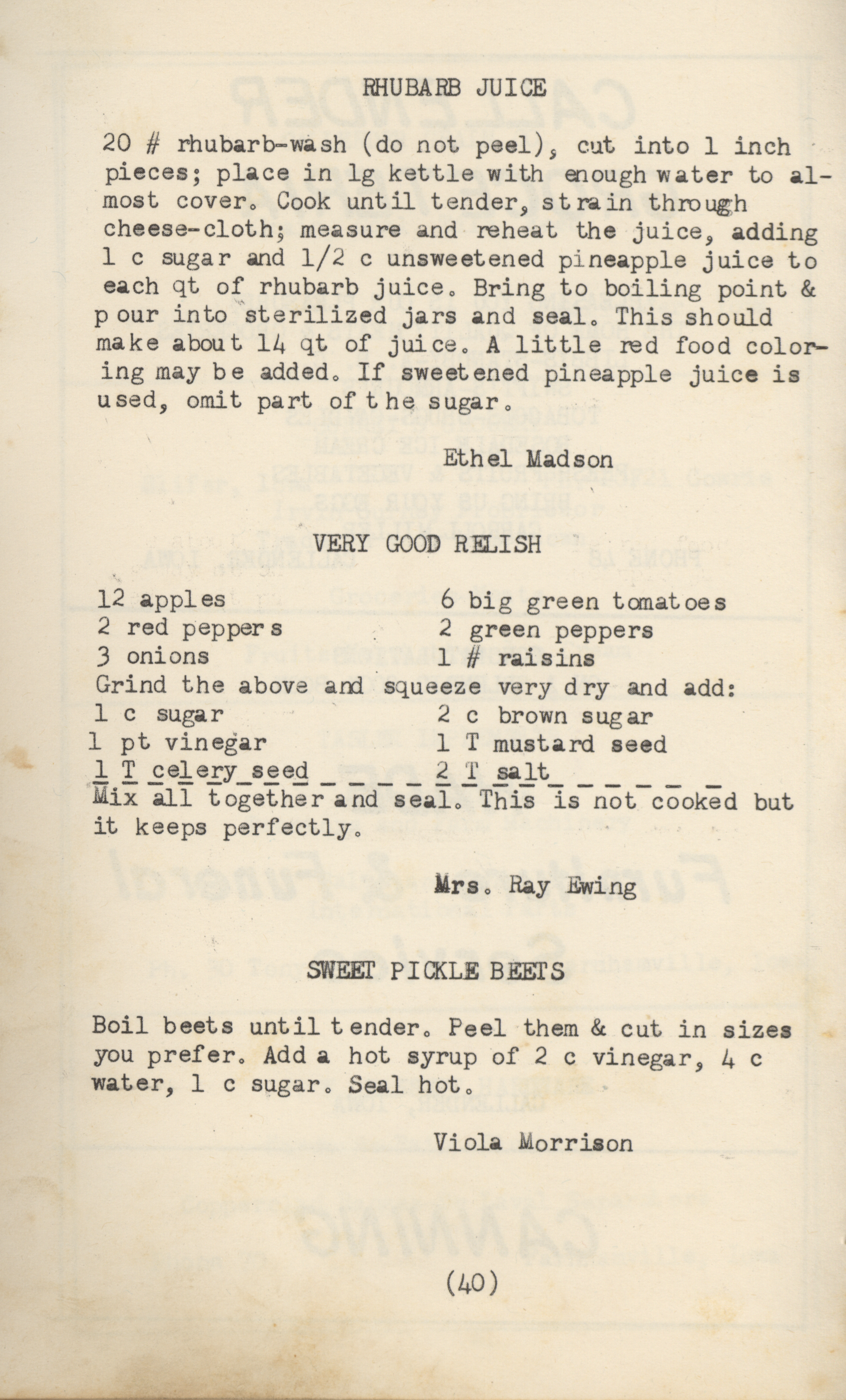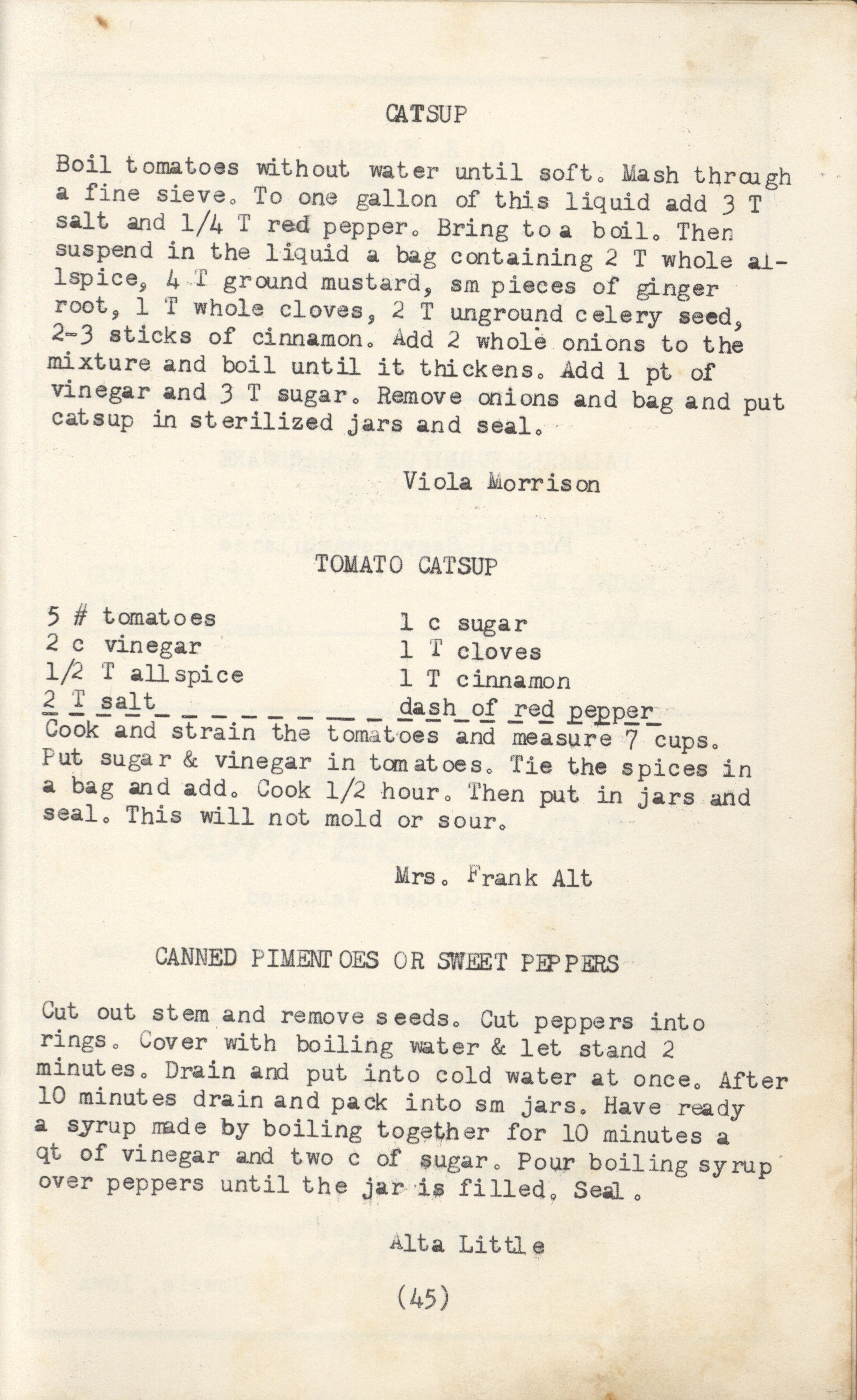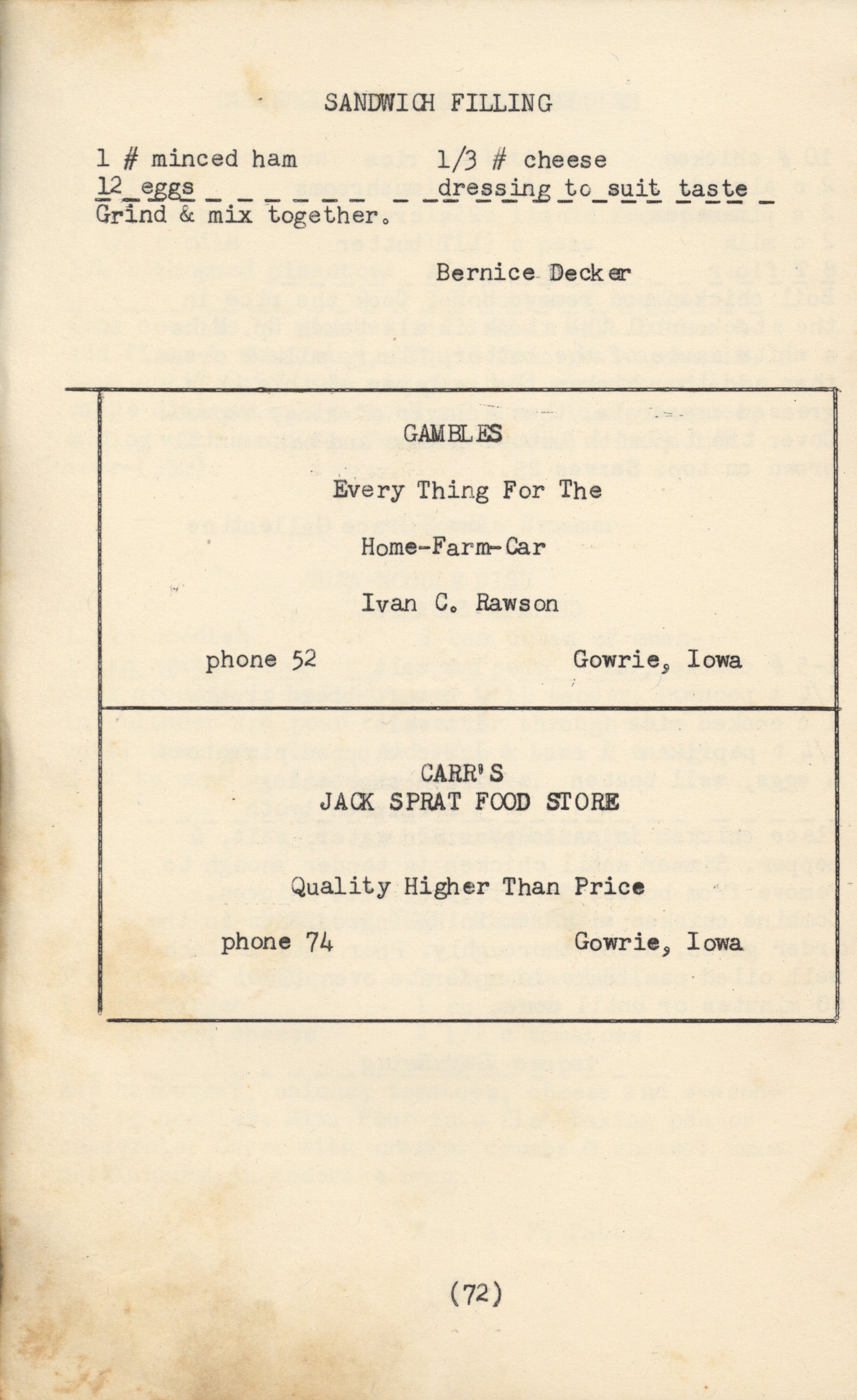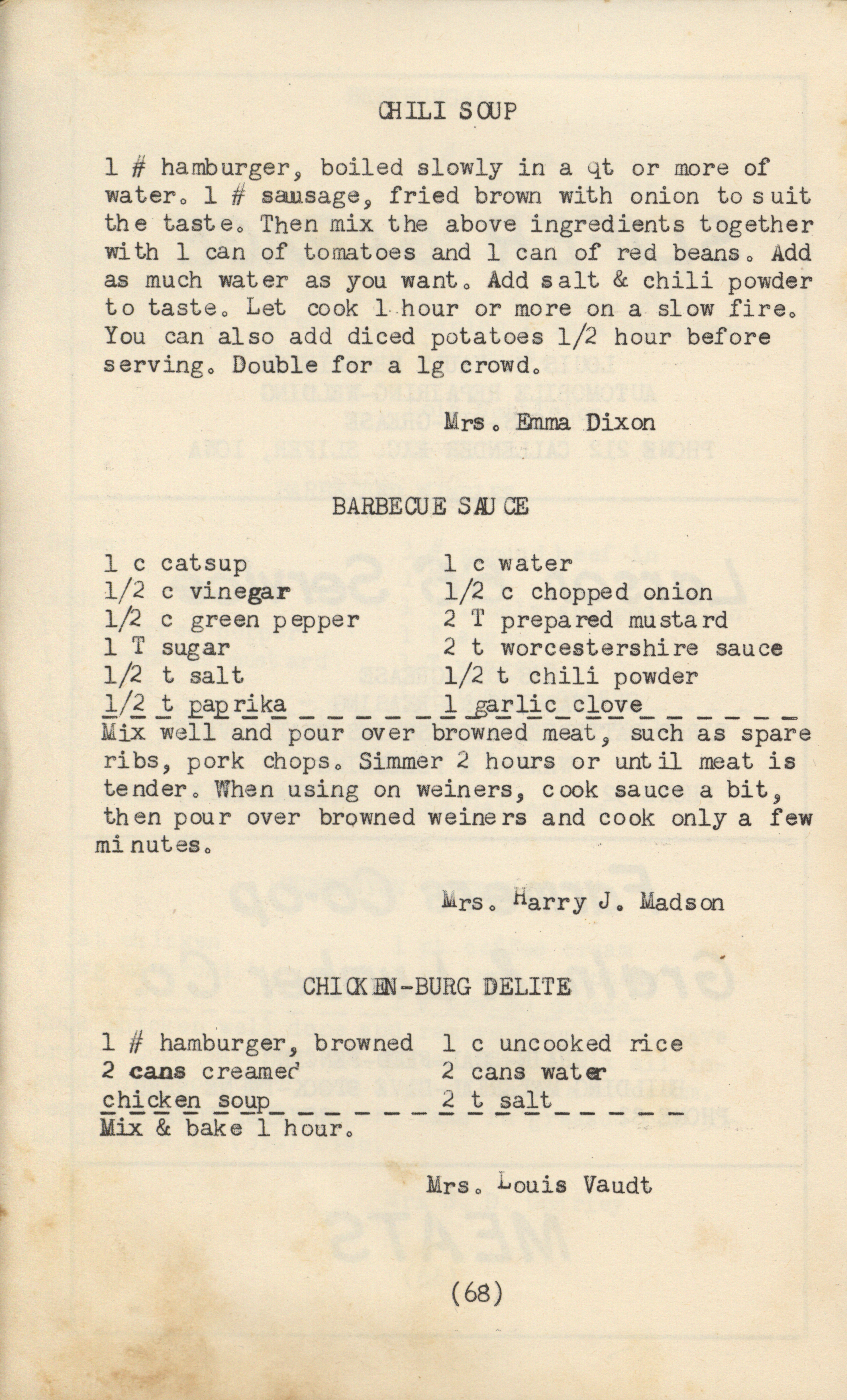 - A community cookbook compiled in 1950 by the Slifer Ladies’ Aid of the Church of the Brethren in Slifer, Iowa. Includes recipes contributed by local women and community advertisements.