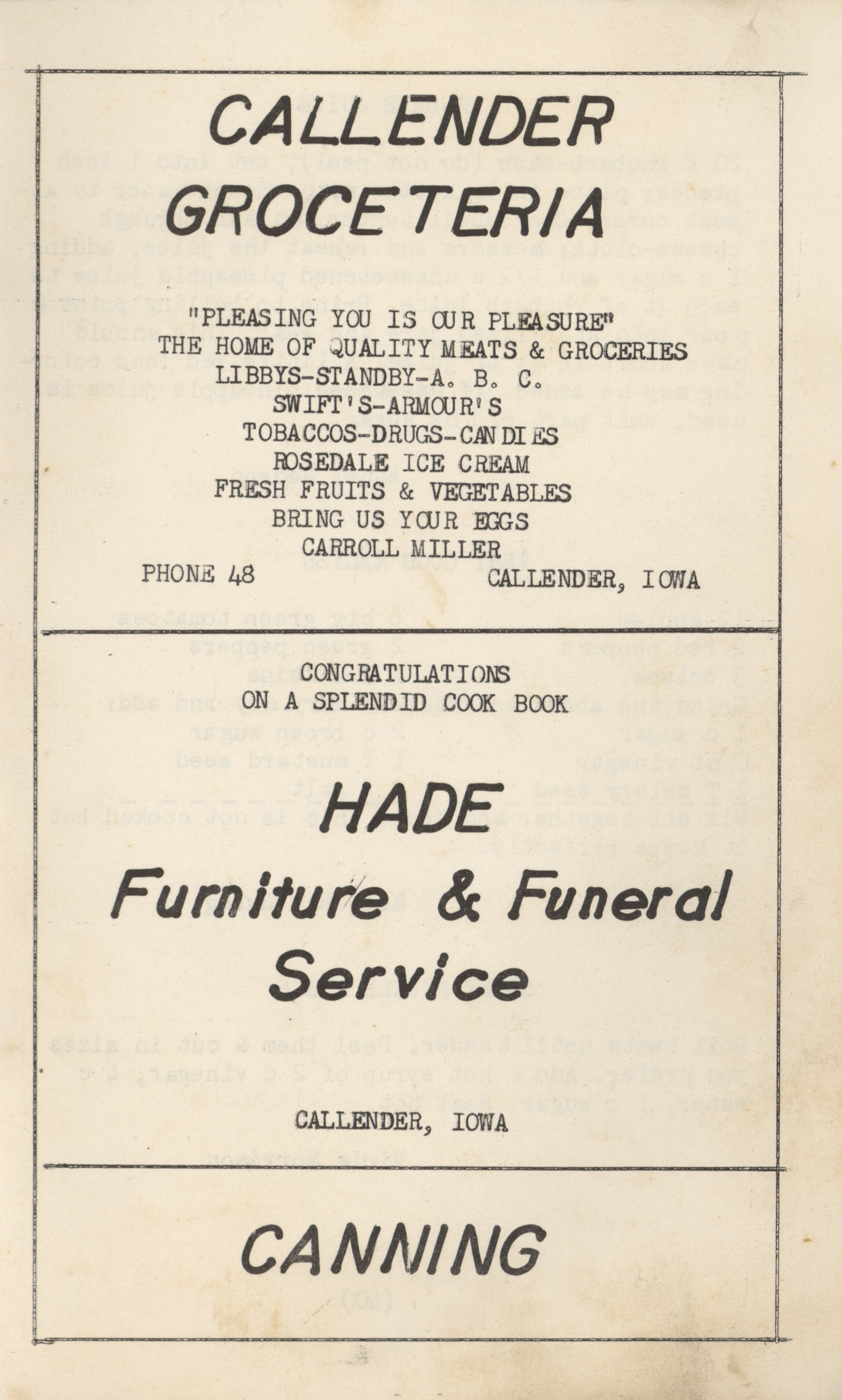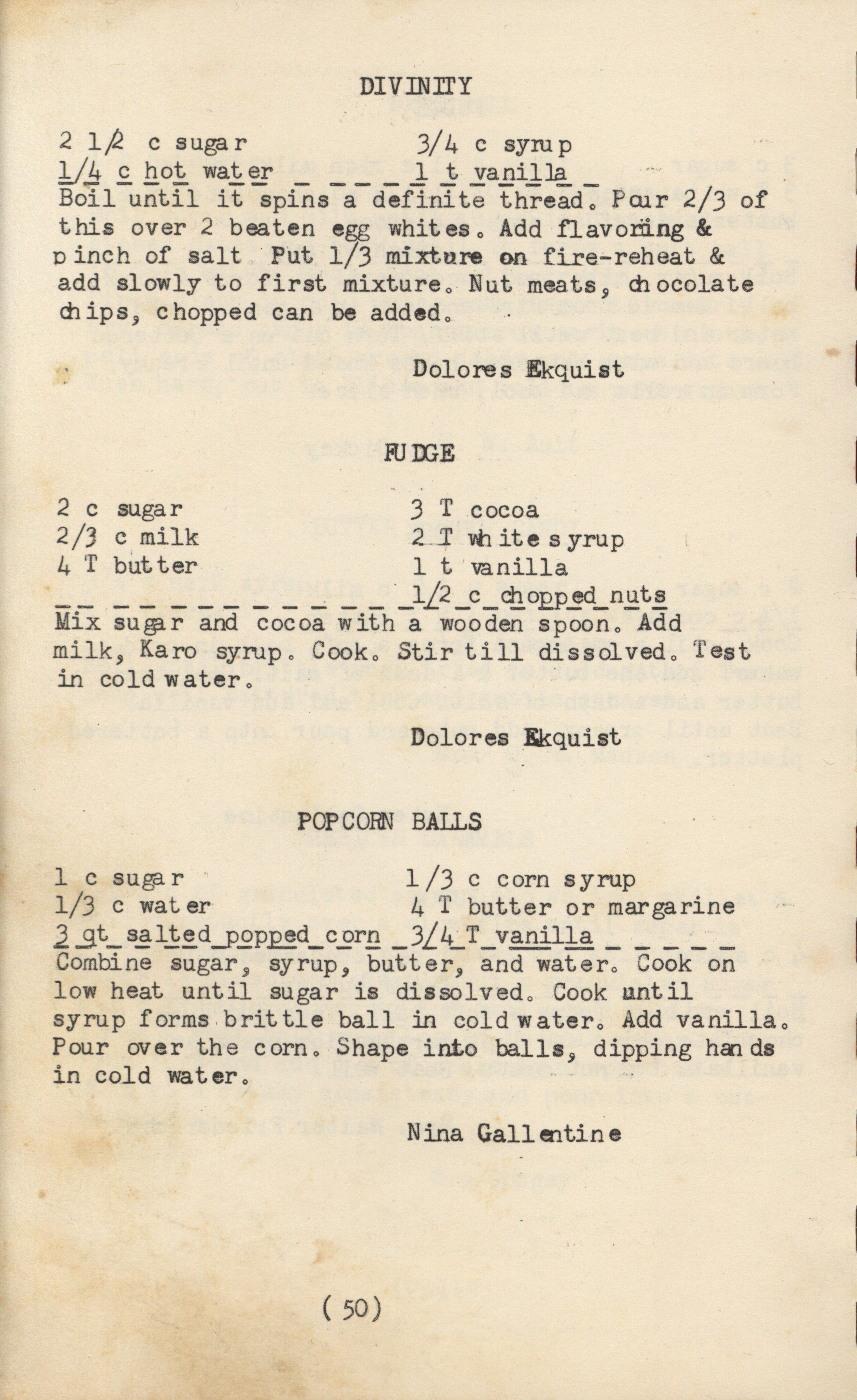 - "1950 cook book", Cookbook Collection, Iowa State University Library Digital Collections