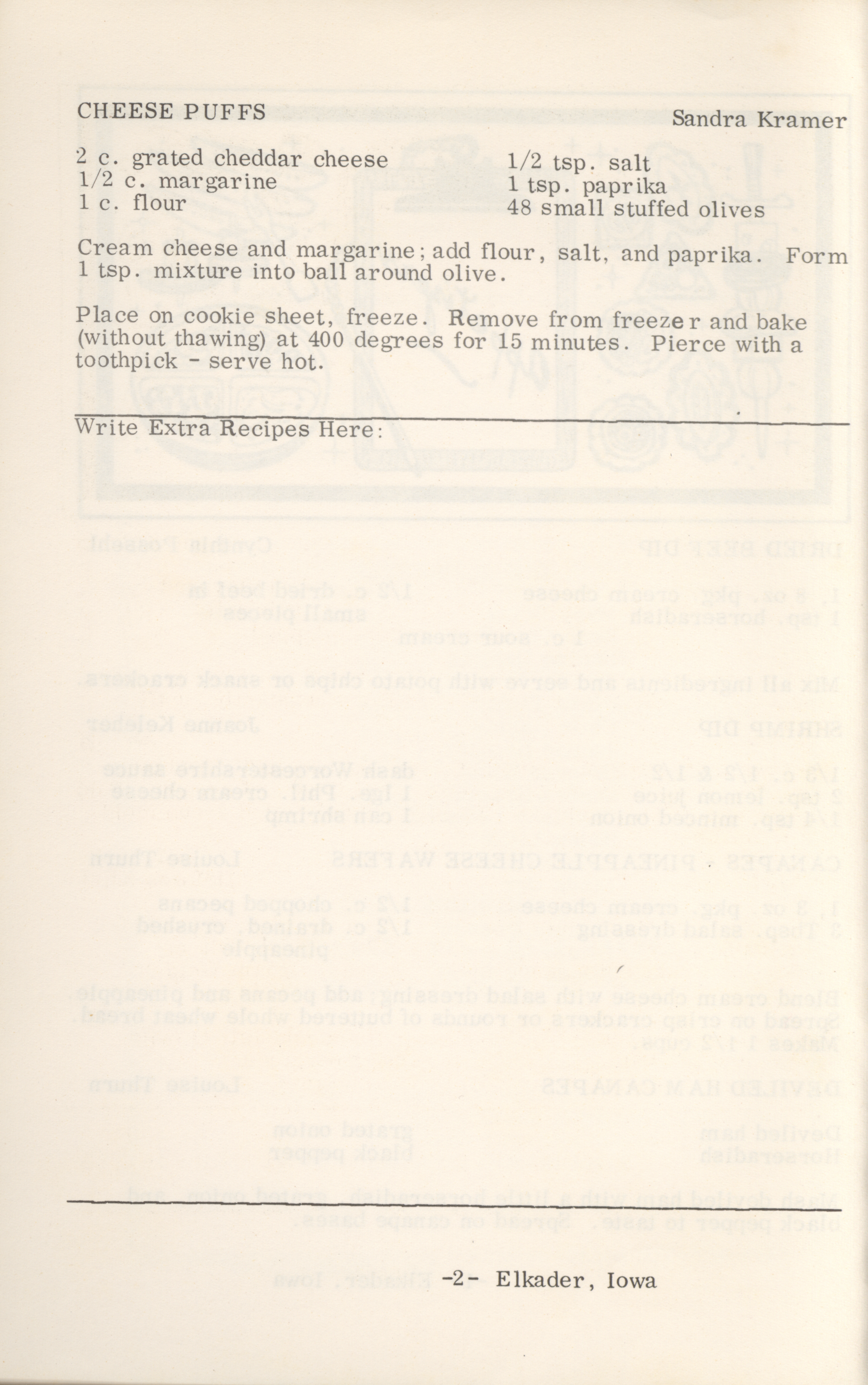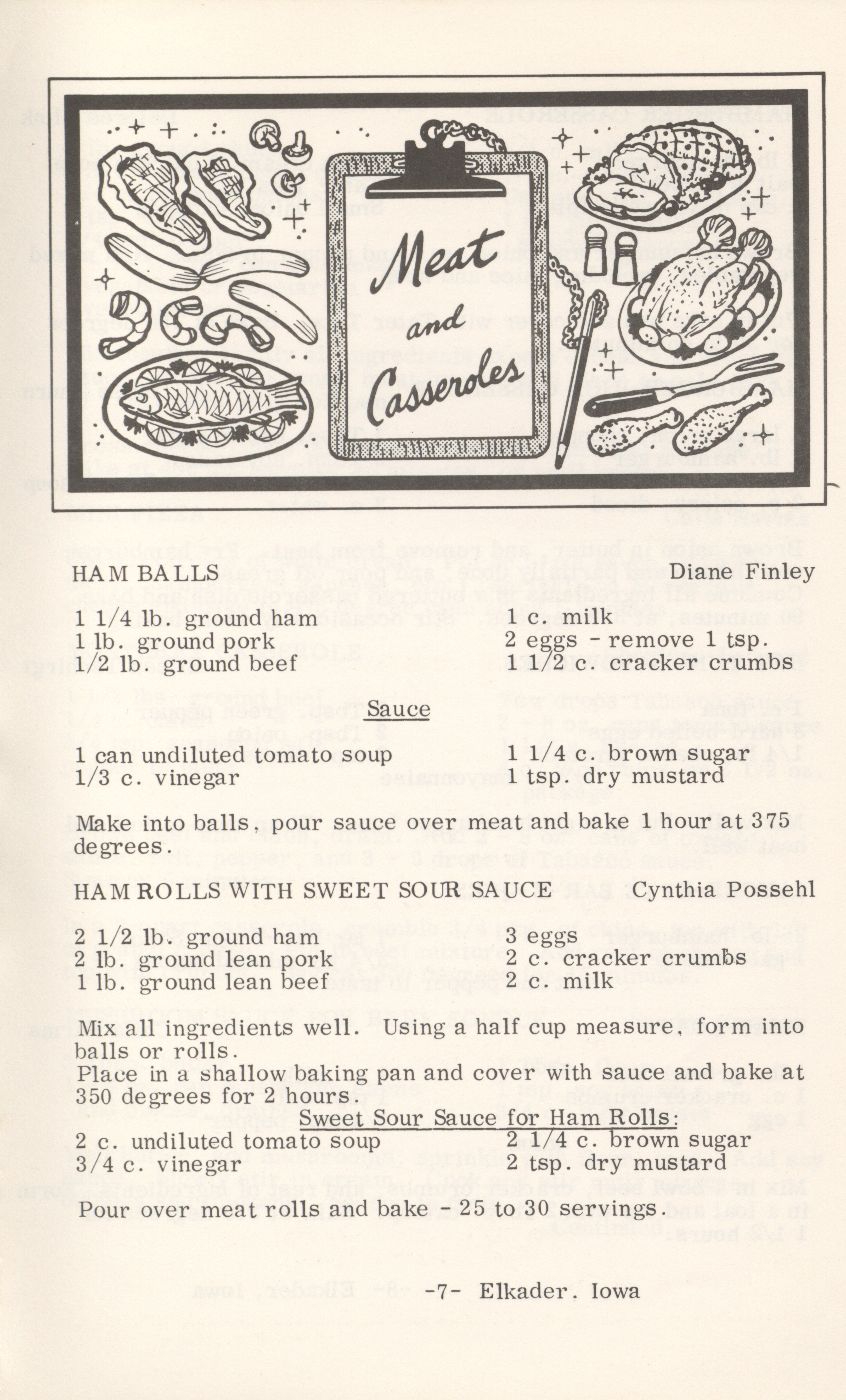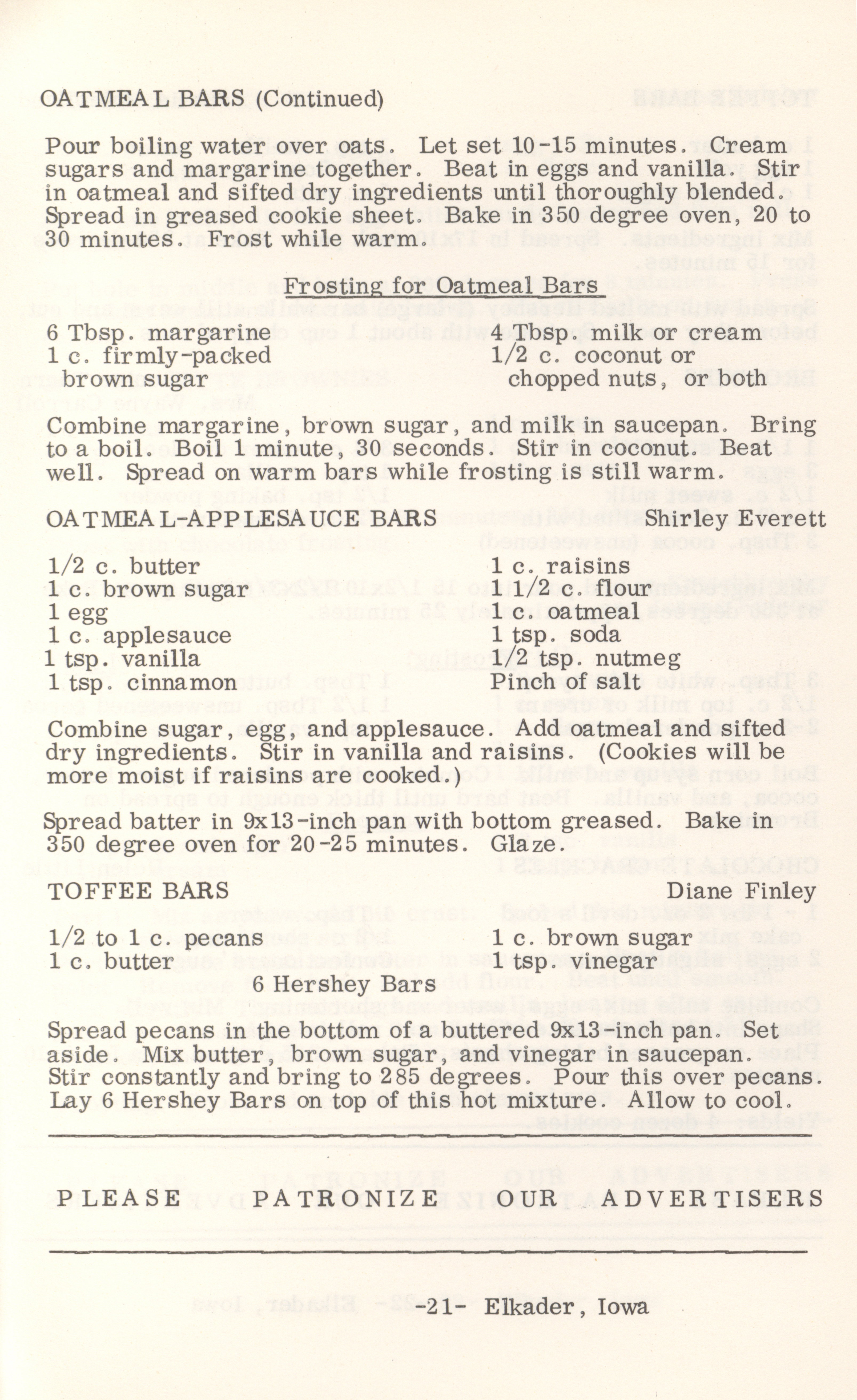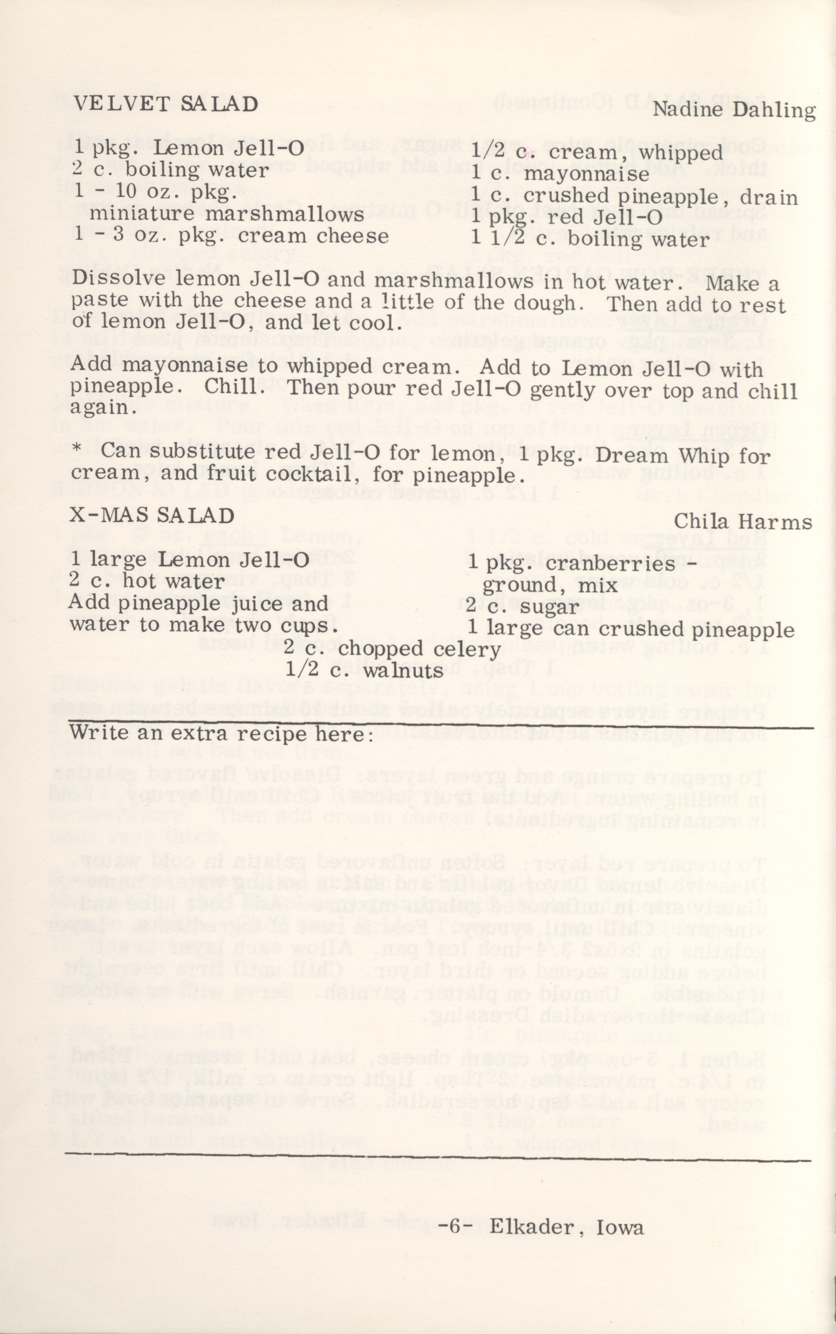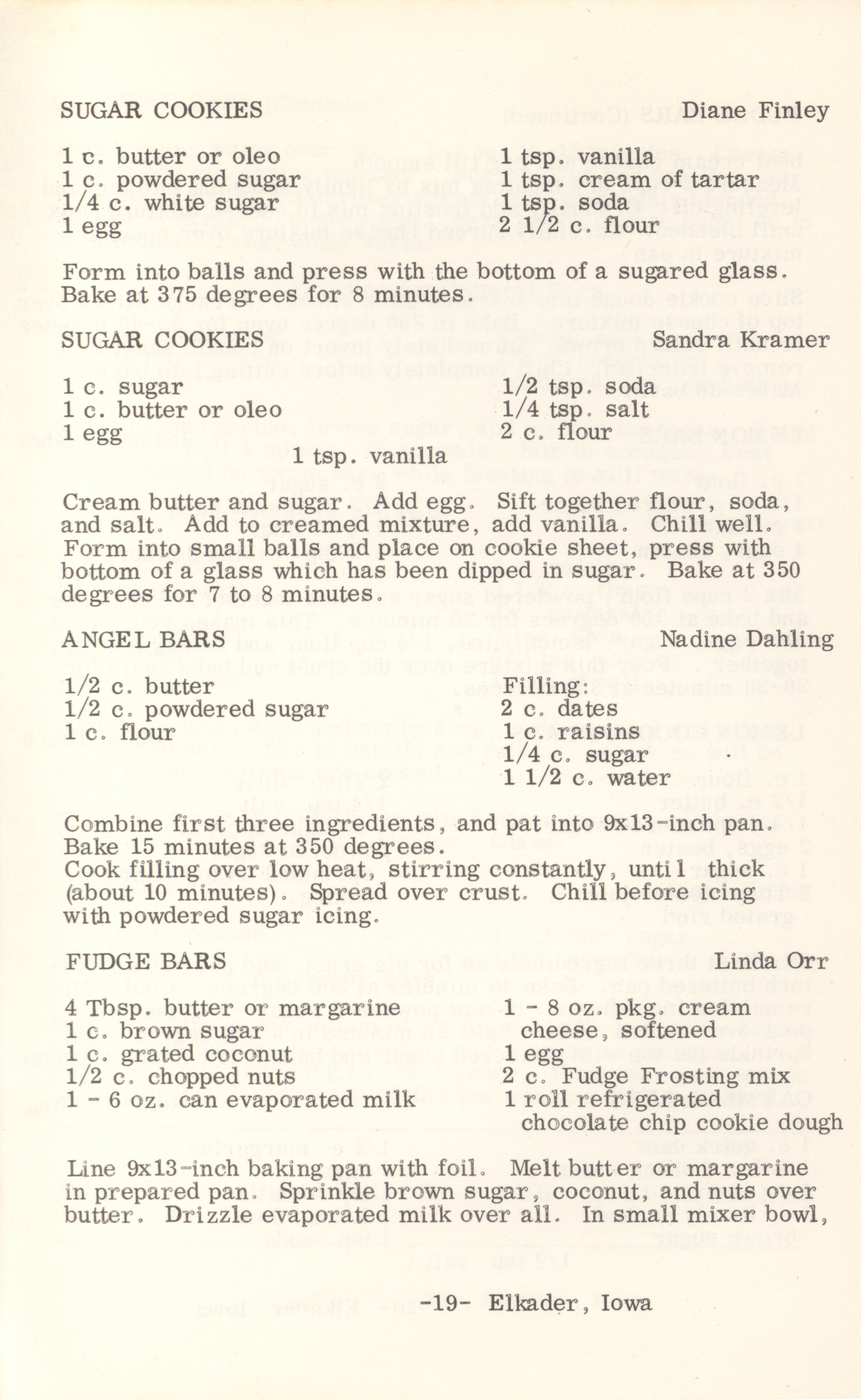 - This cookbook compiled by the Elkader Jaycee-ettes includes advertisements.
