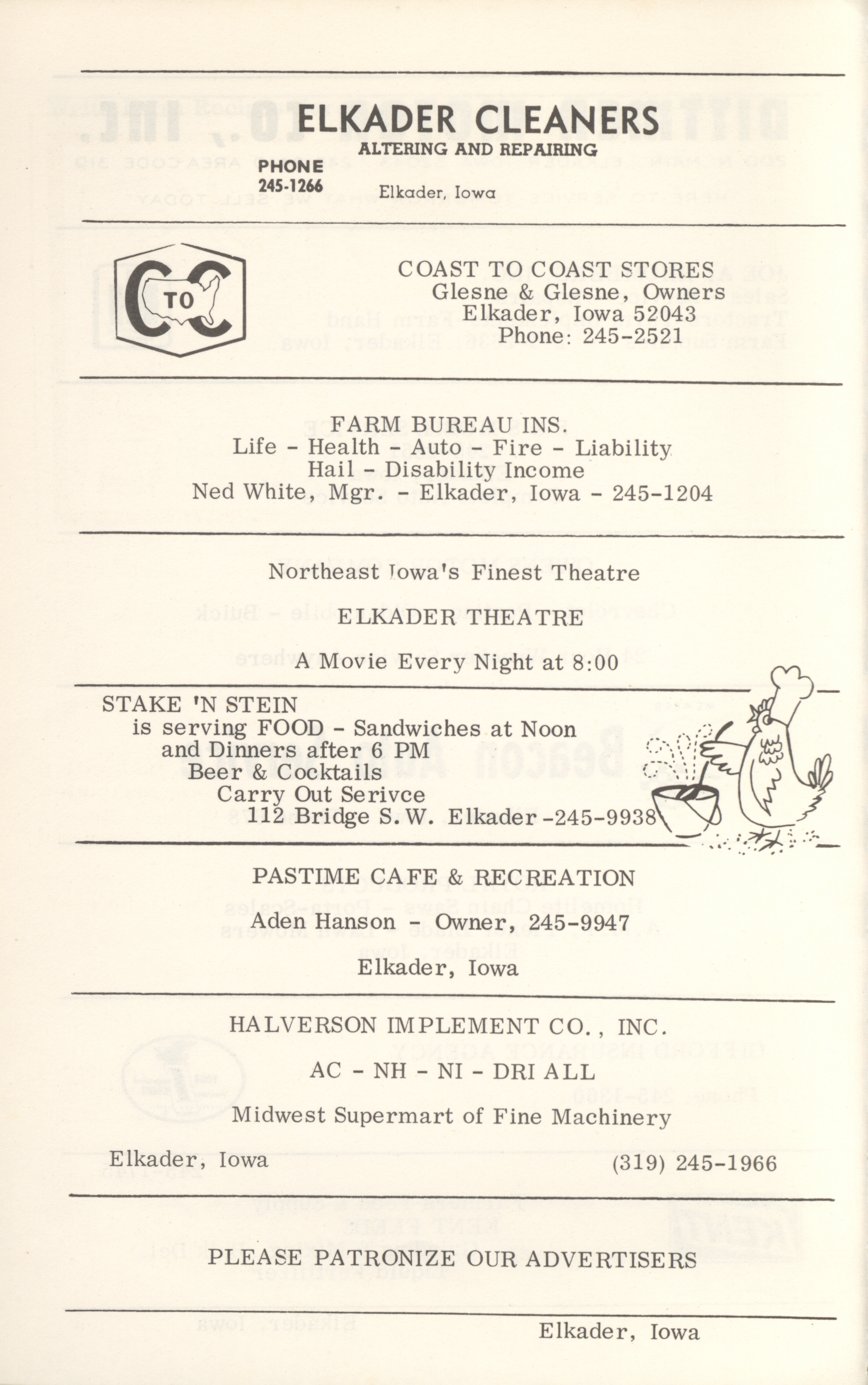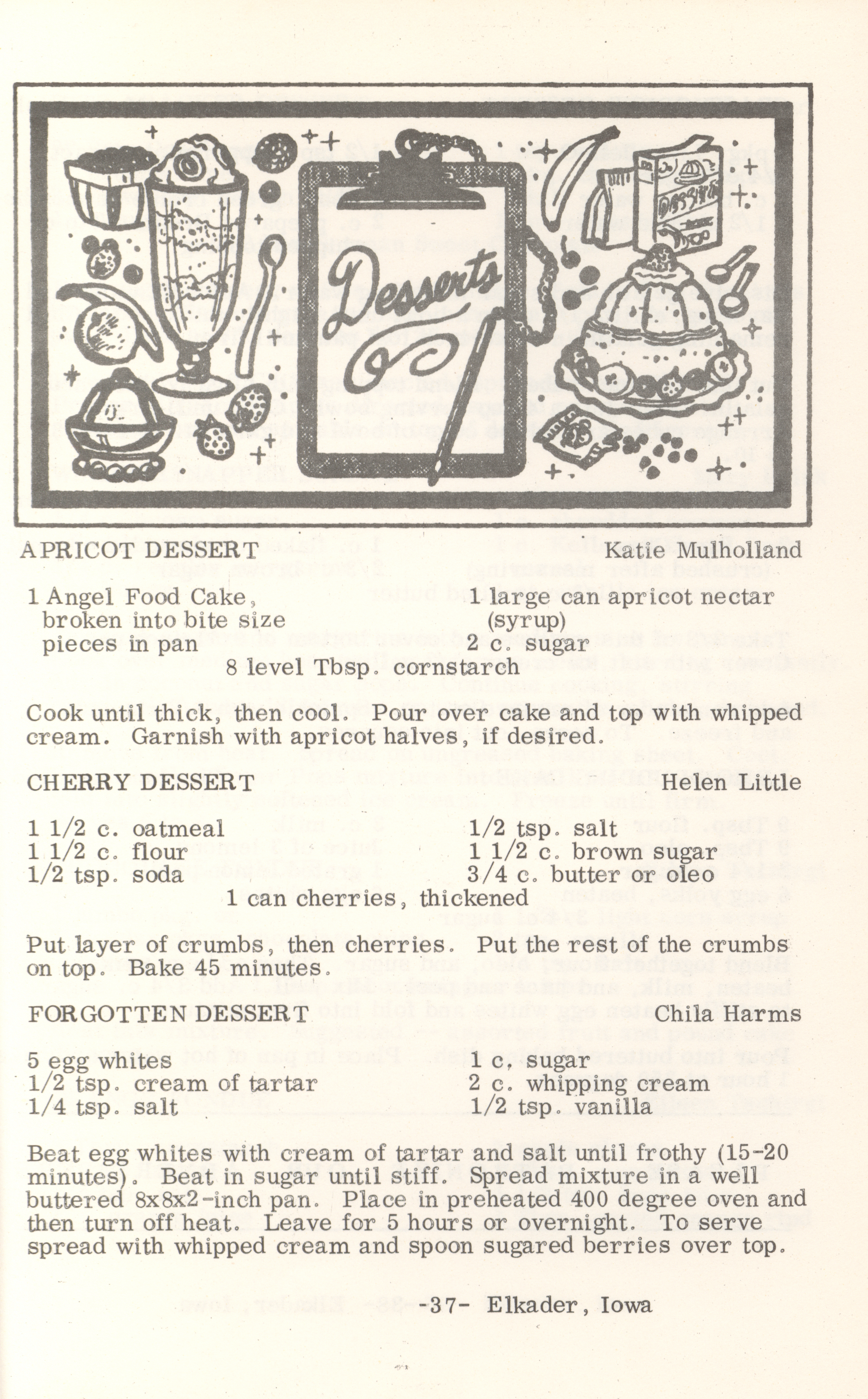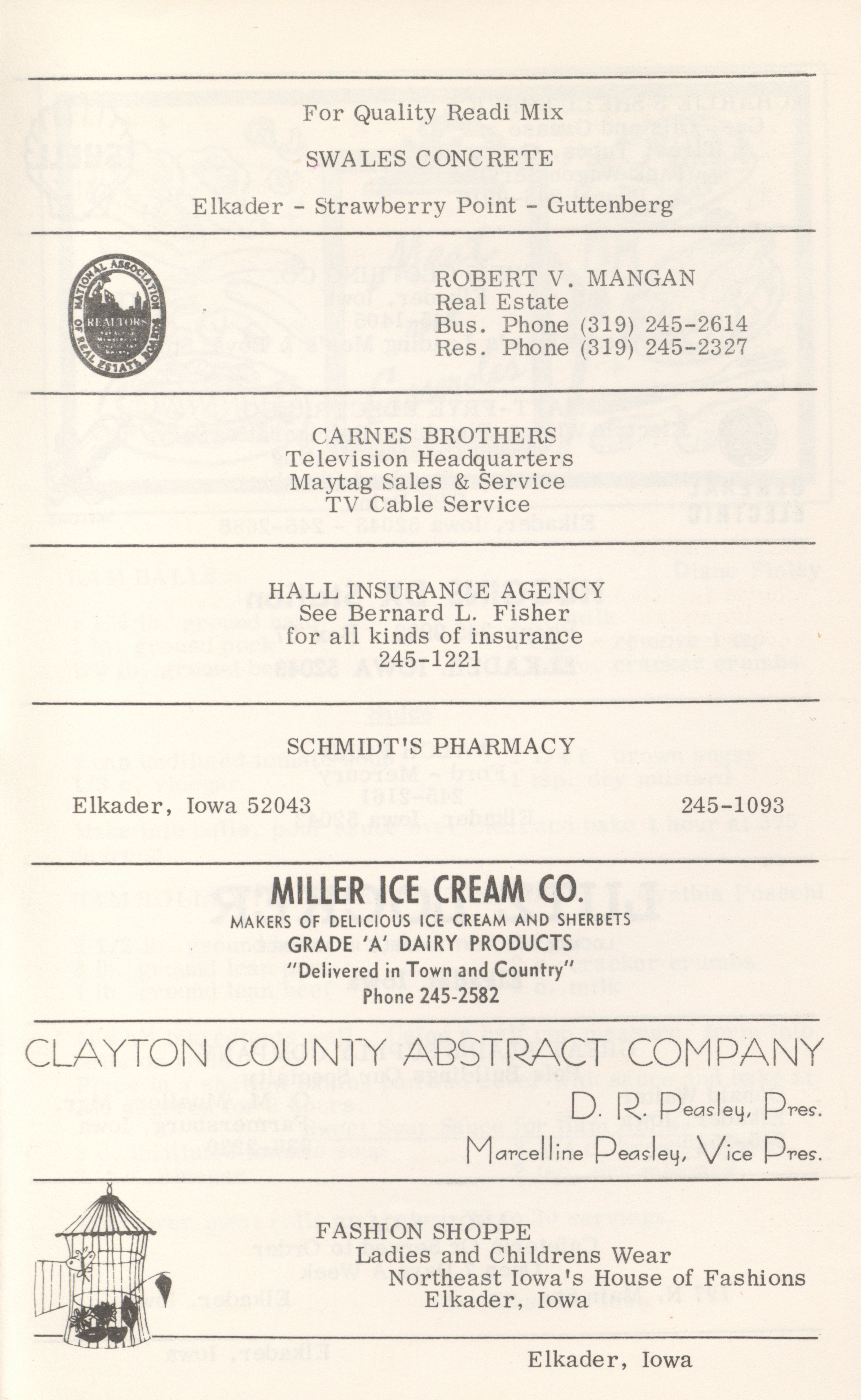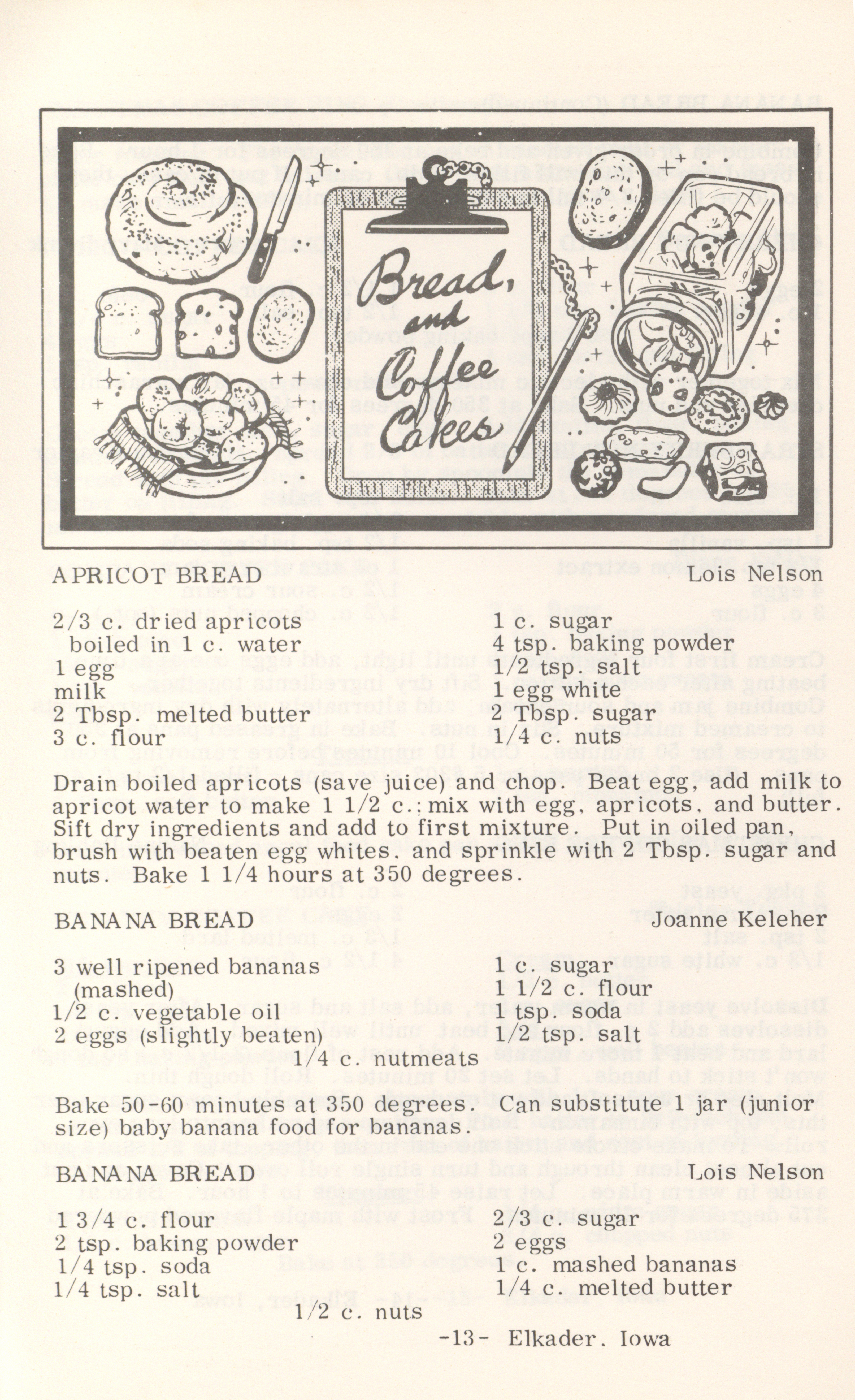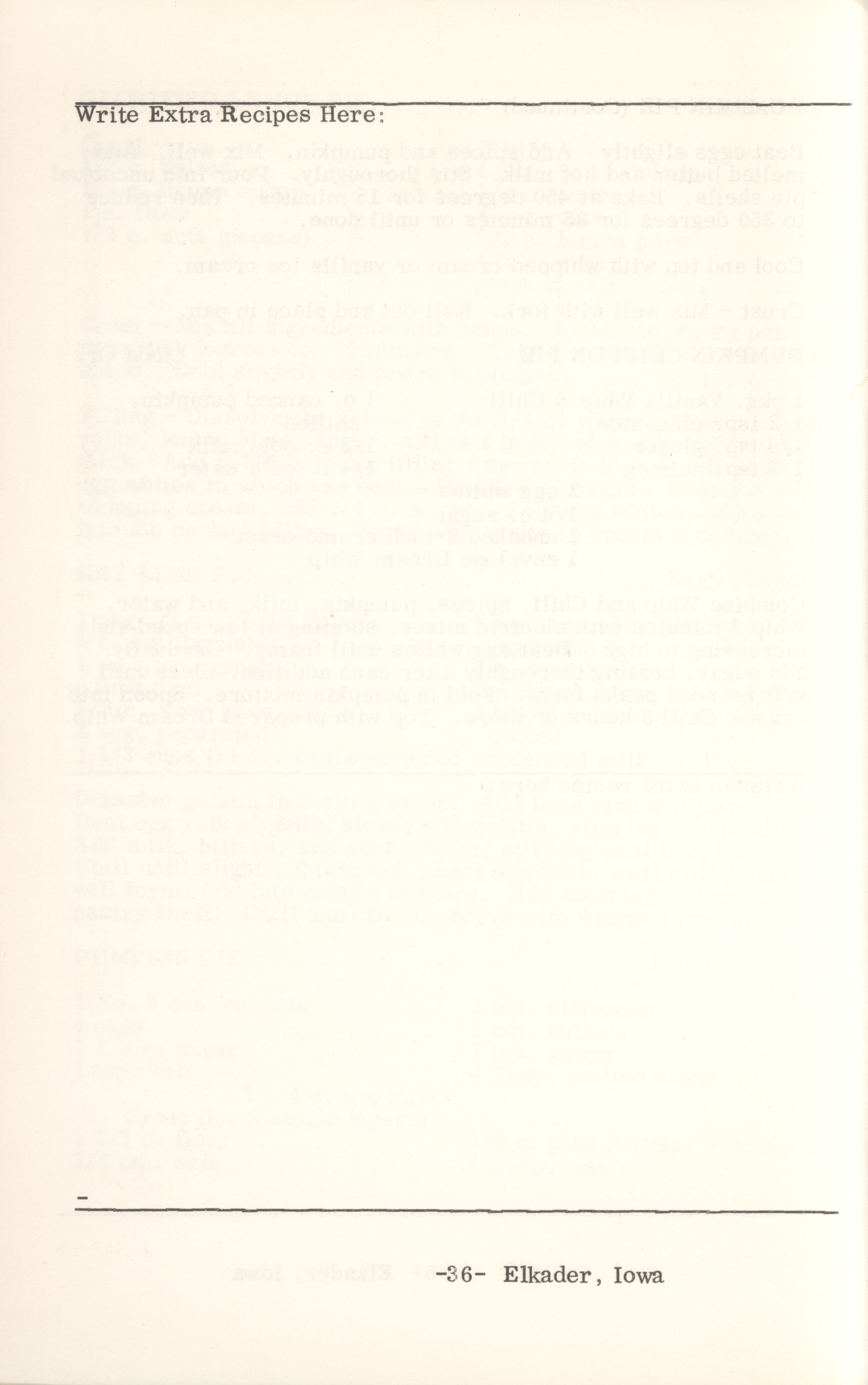 - This cookbook compiled by the Elkader Jaycee-ettes includes advertisements.