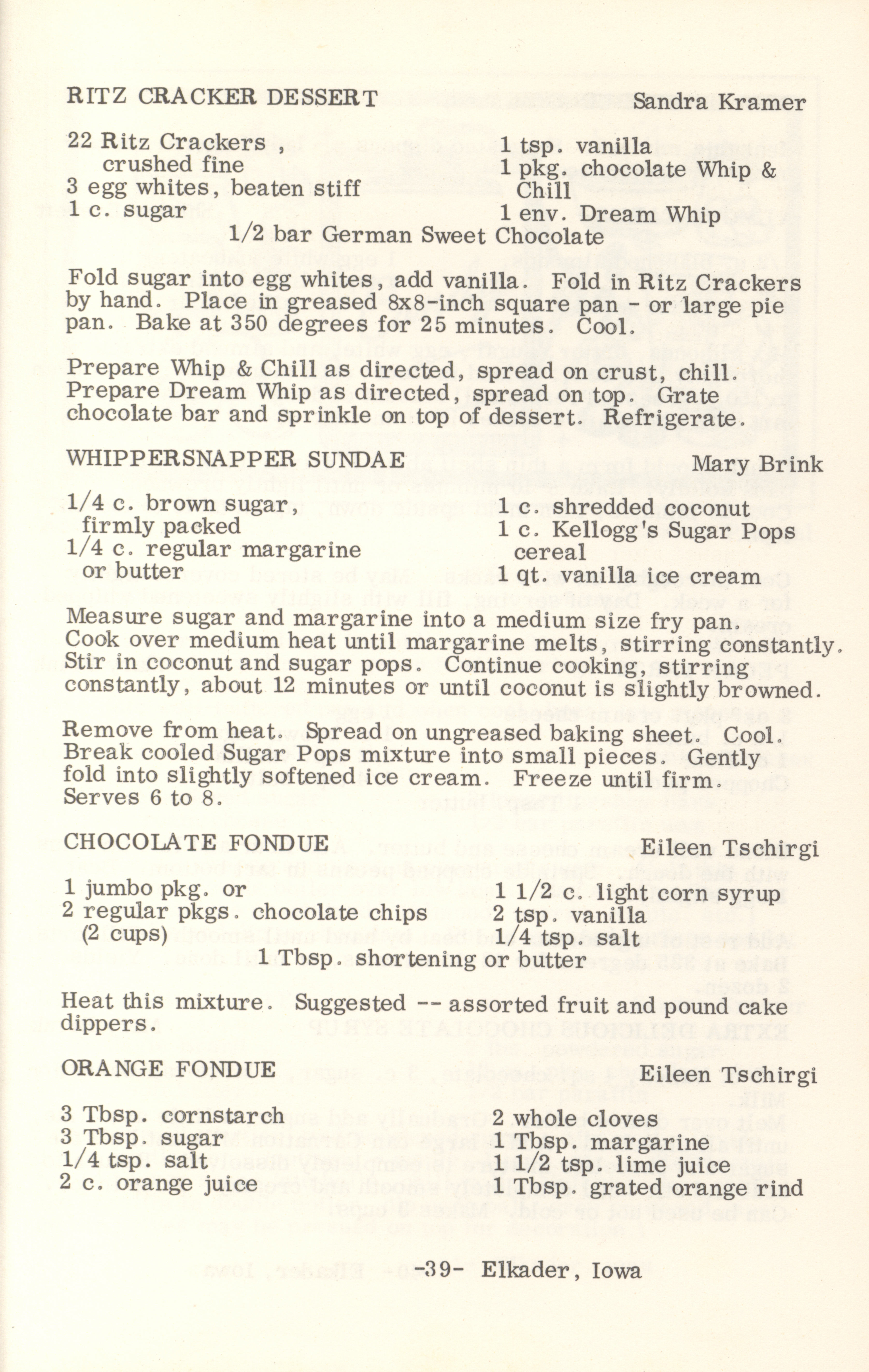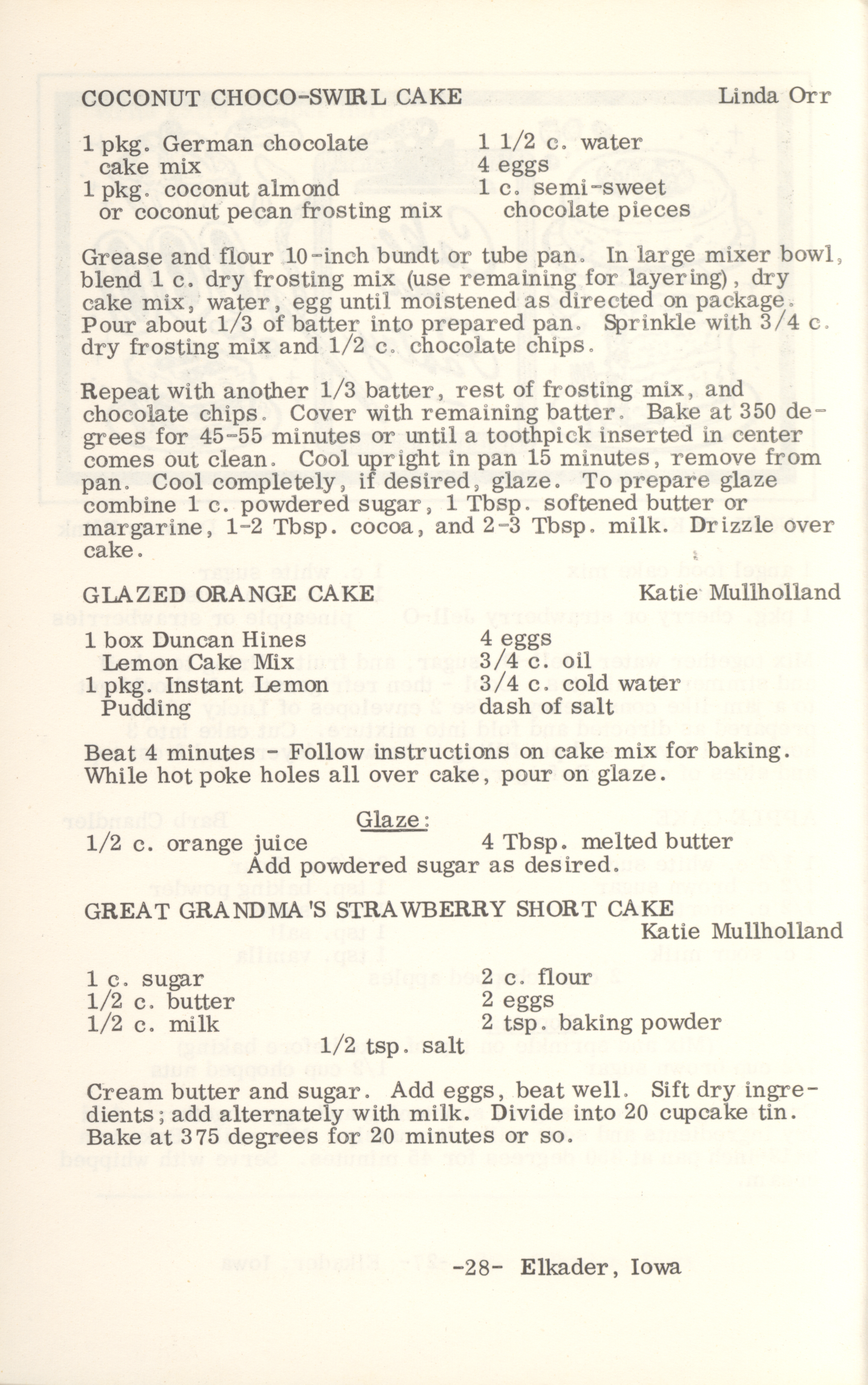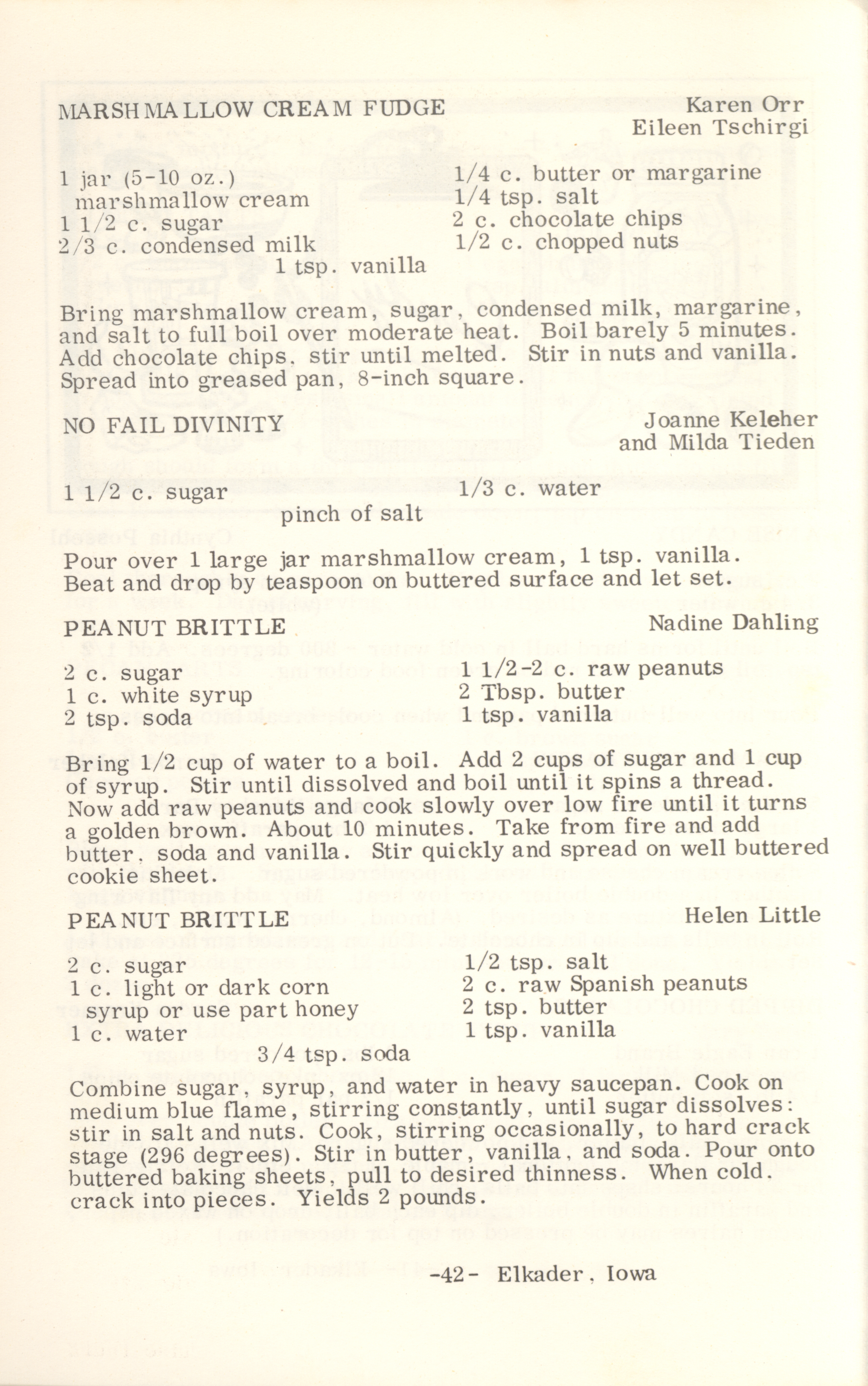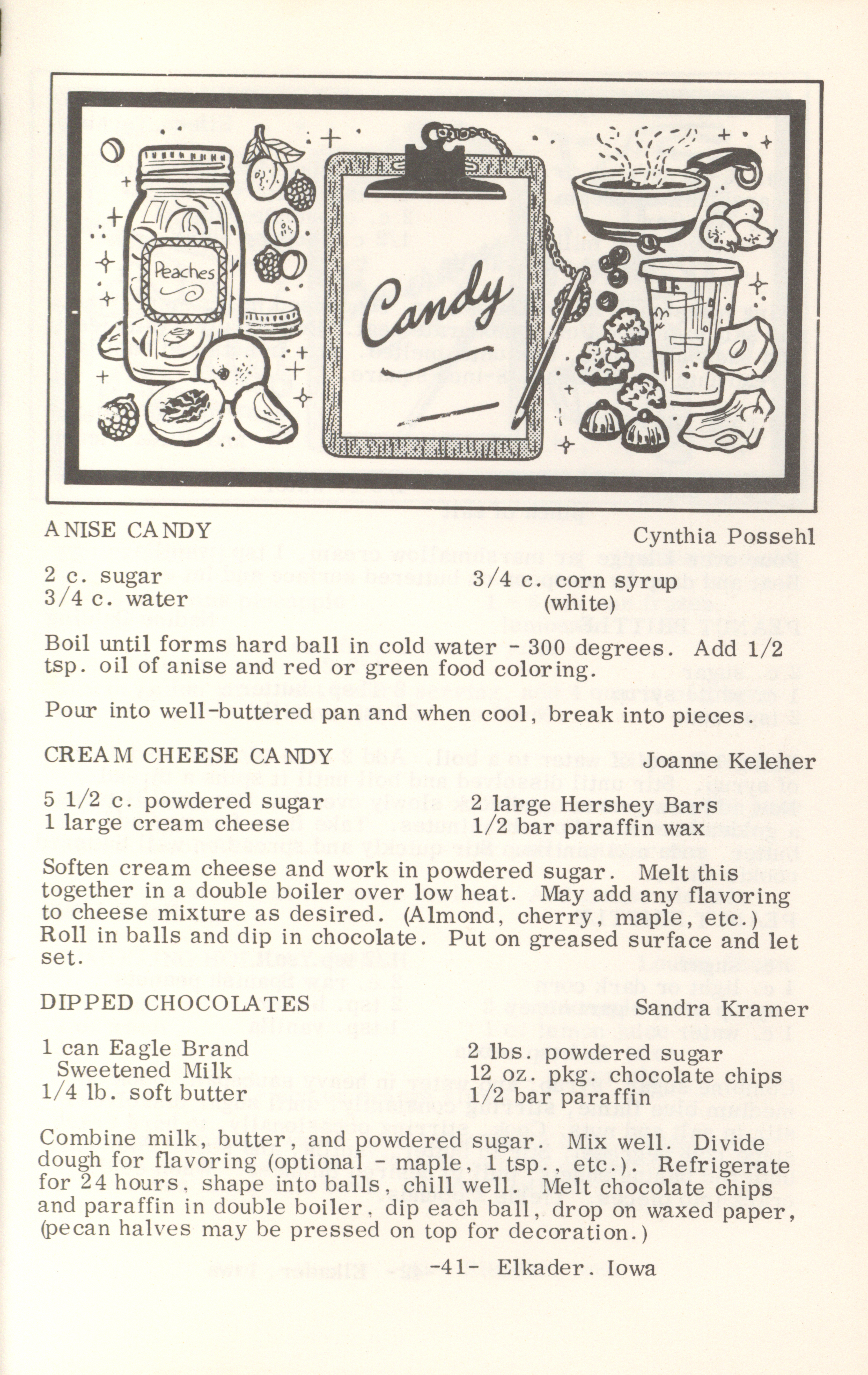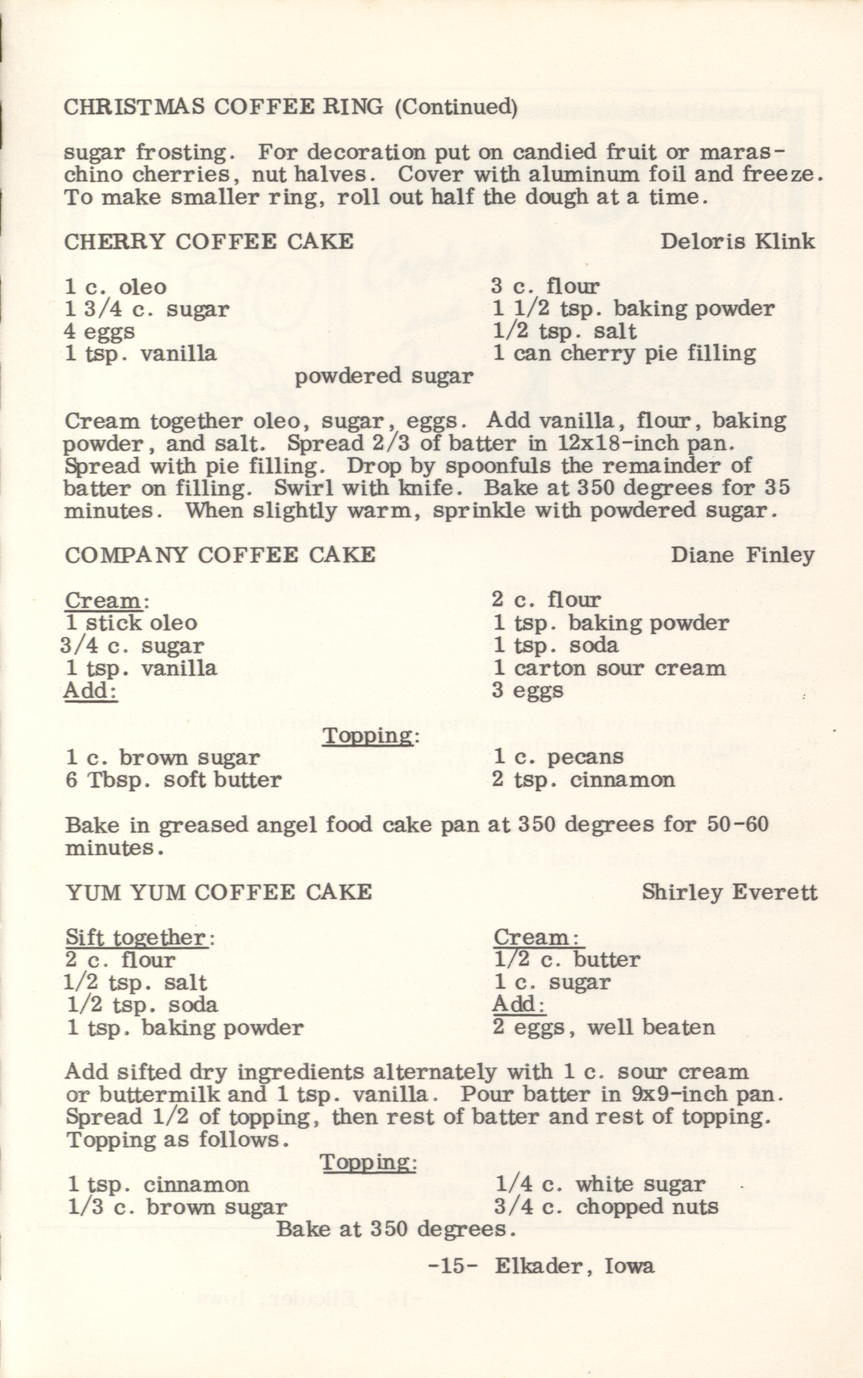 - This cookbook compiled by the Elkader Jaycee-ettes includes advertisements.
