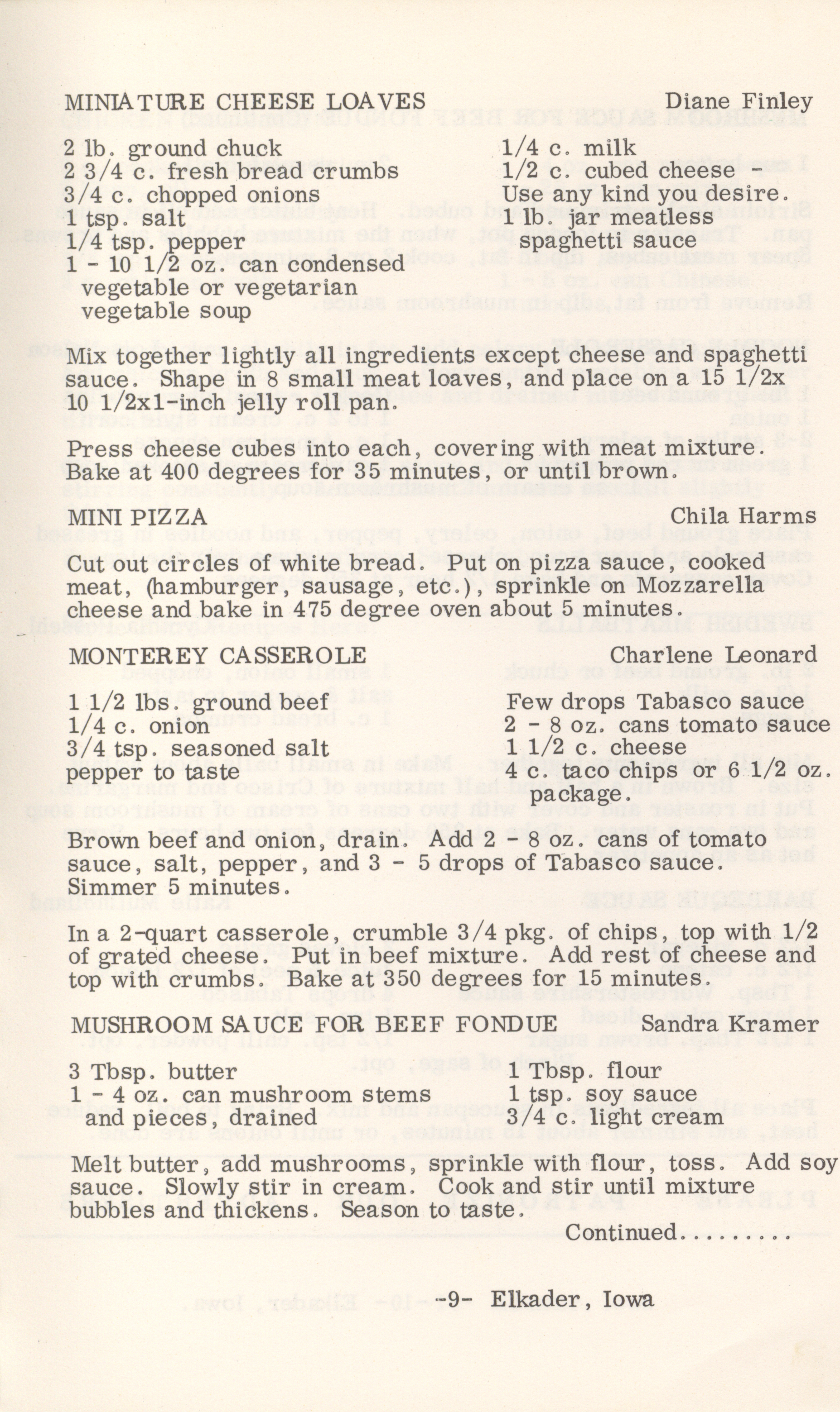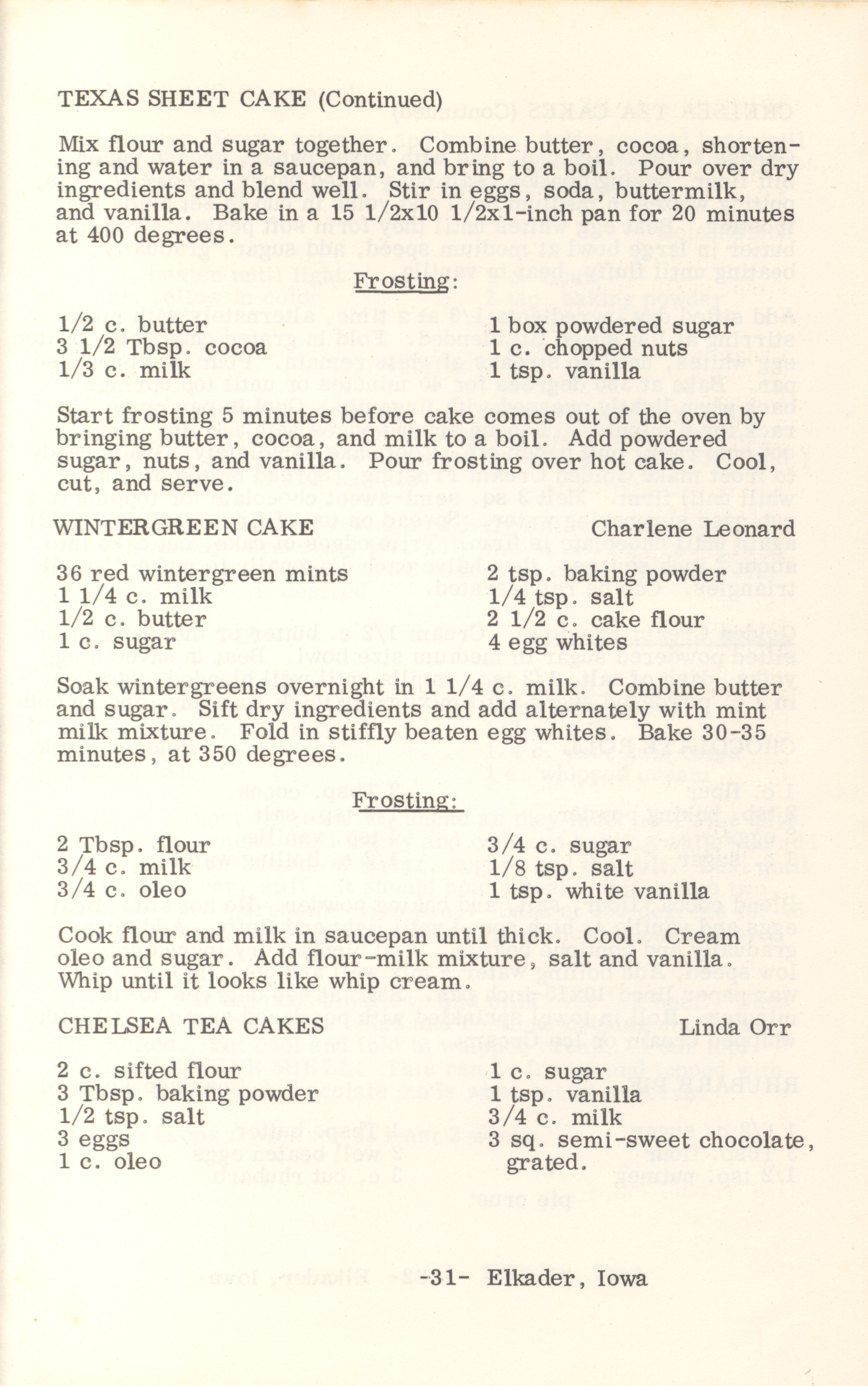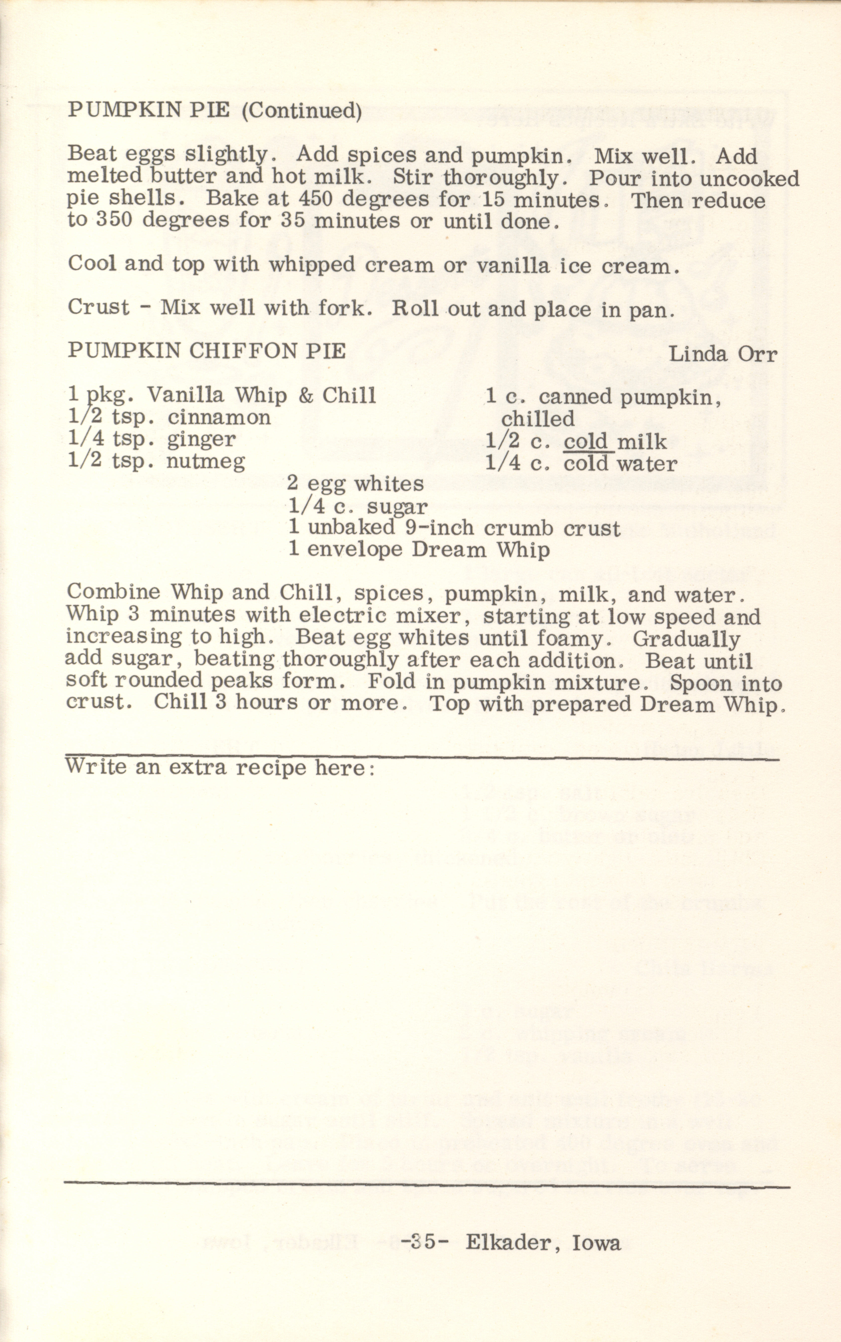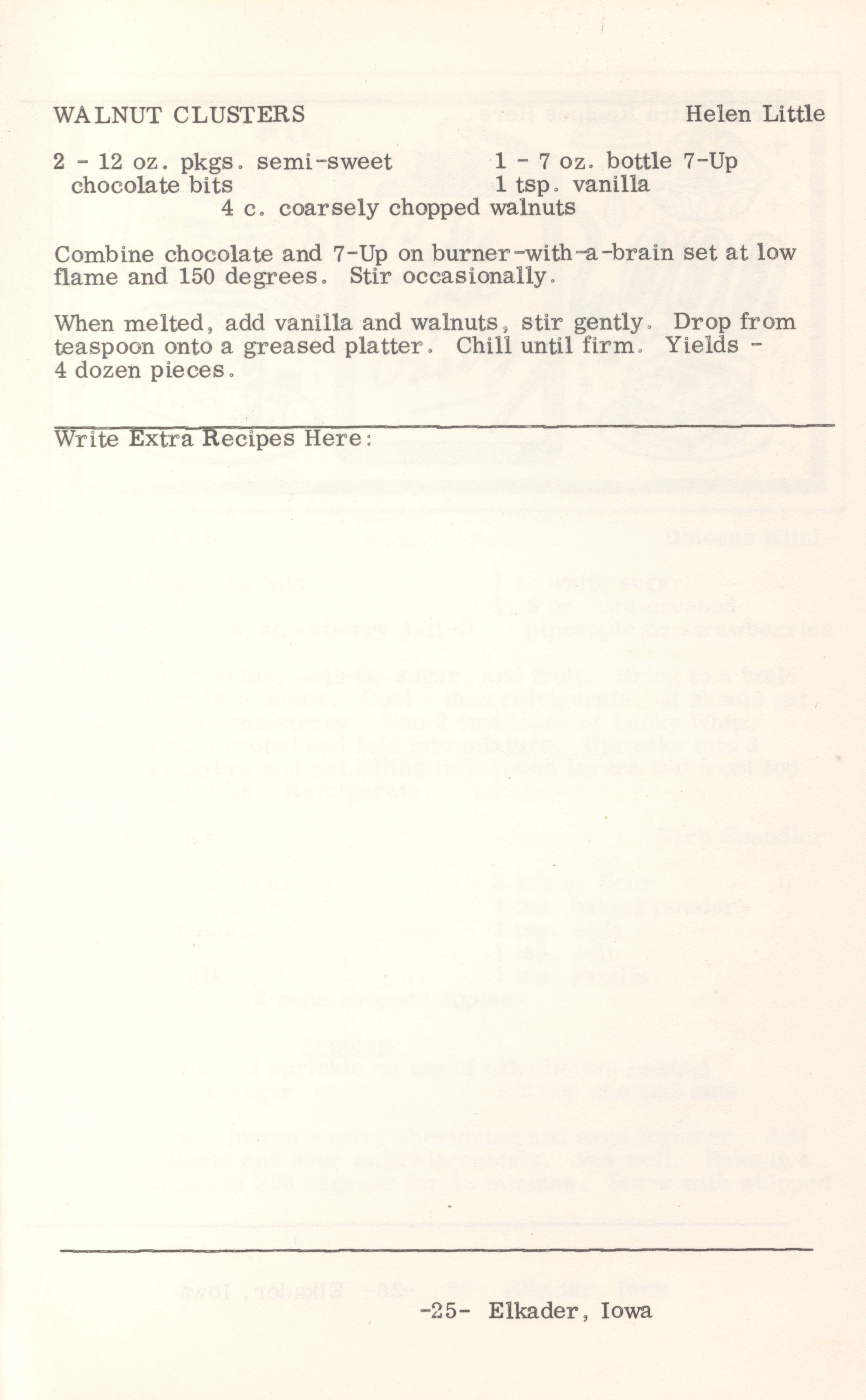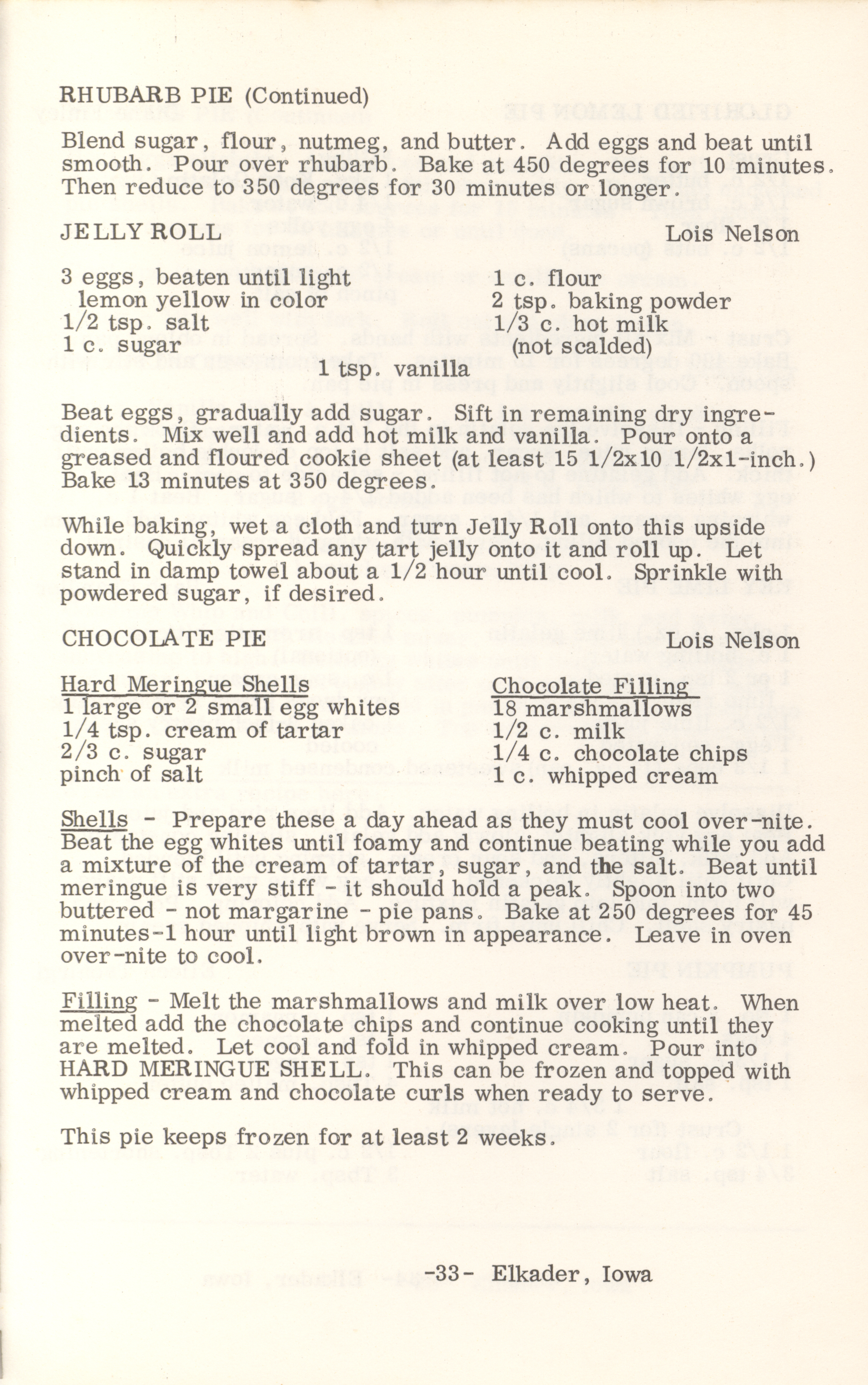 - This cookbook compiled by the Elkader Jaycee-ettes includes advertisements.