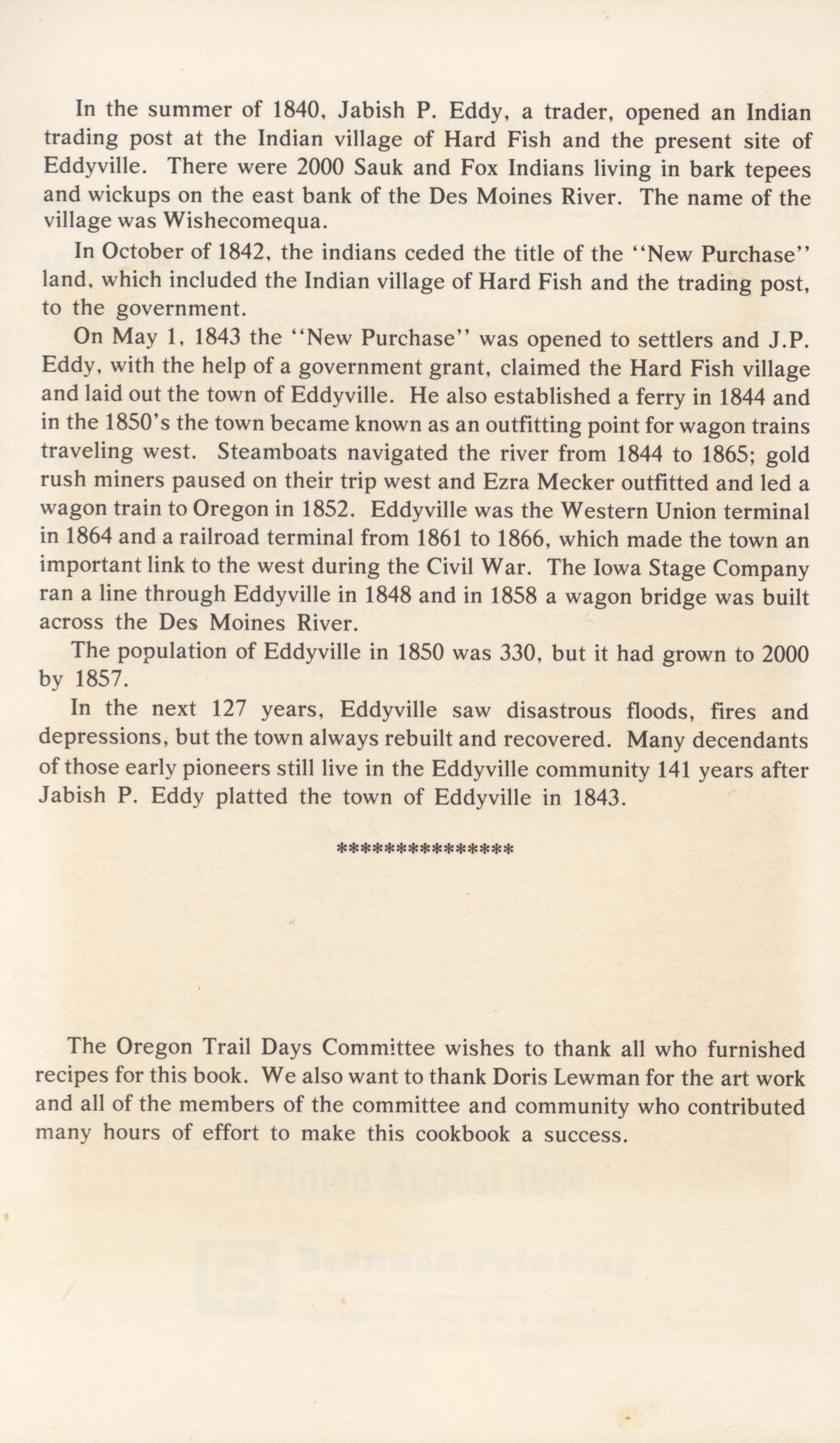 - "Oregon Trail Days cookbook", Cookbook Collection, Iowa State University Library Digital Collections