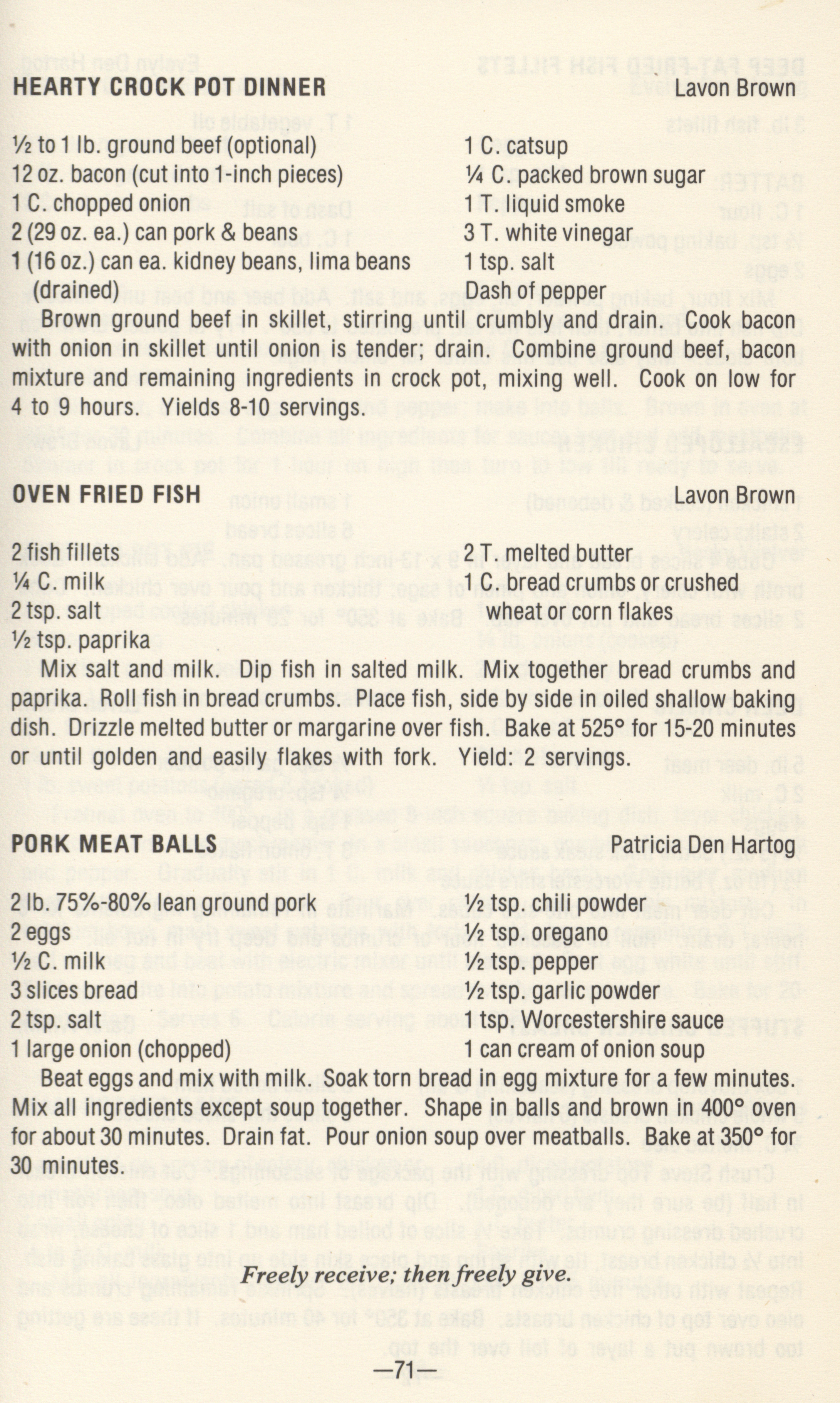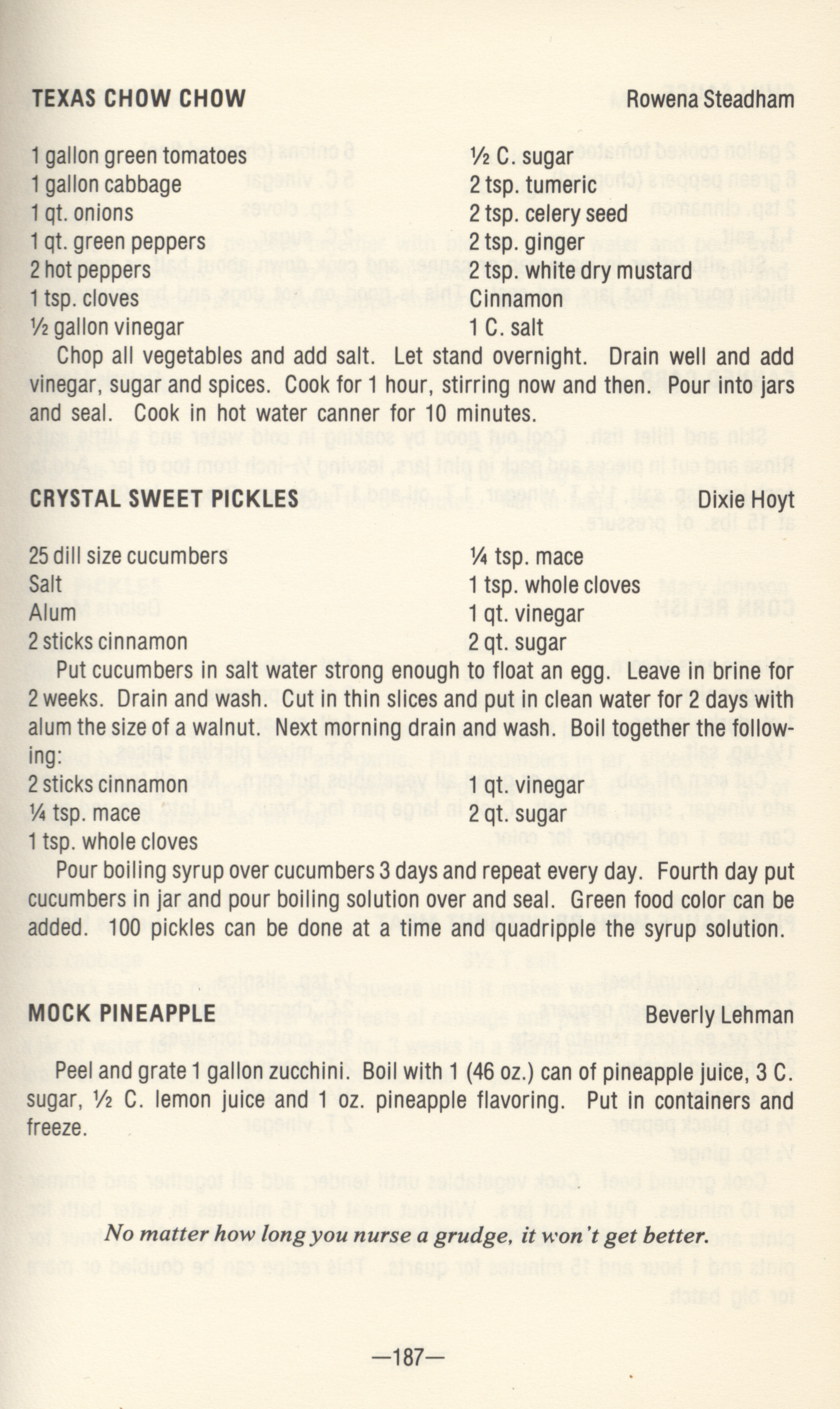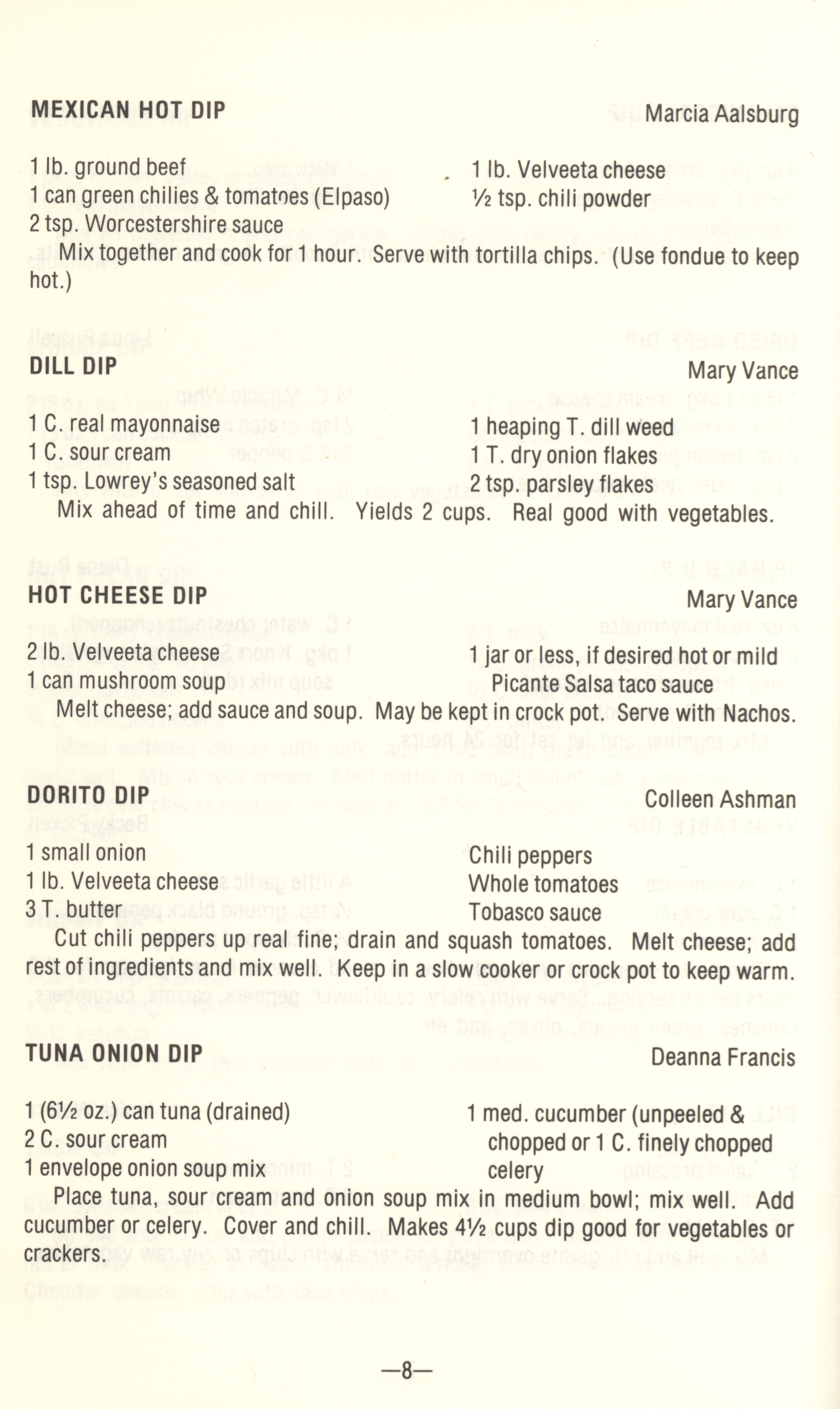 - Community cookbook compiled by residents of Eddyville, Iowa, including recipes for cheeseballs, pickles, desserts, and special diets.