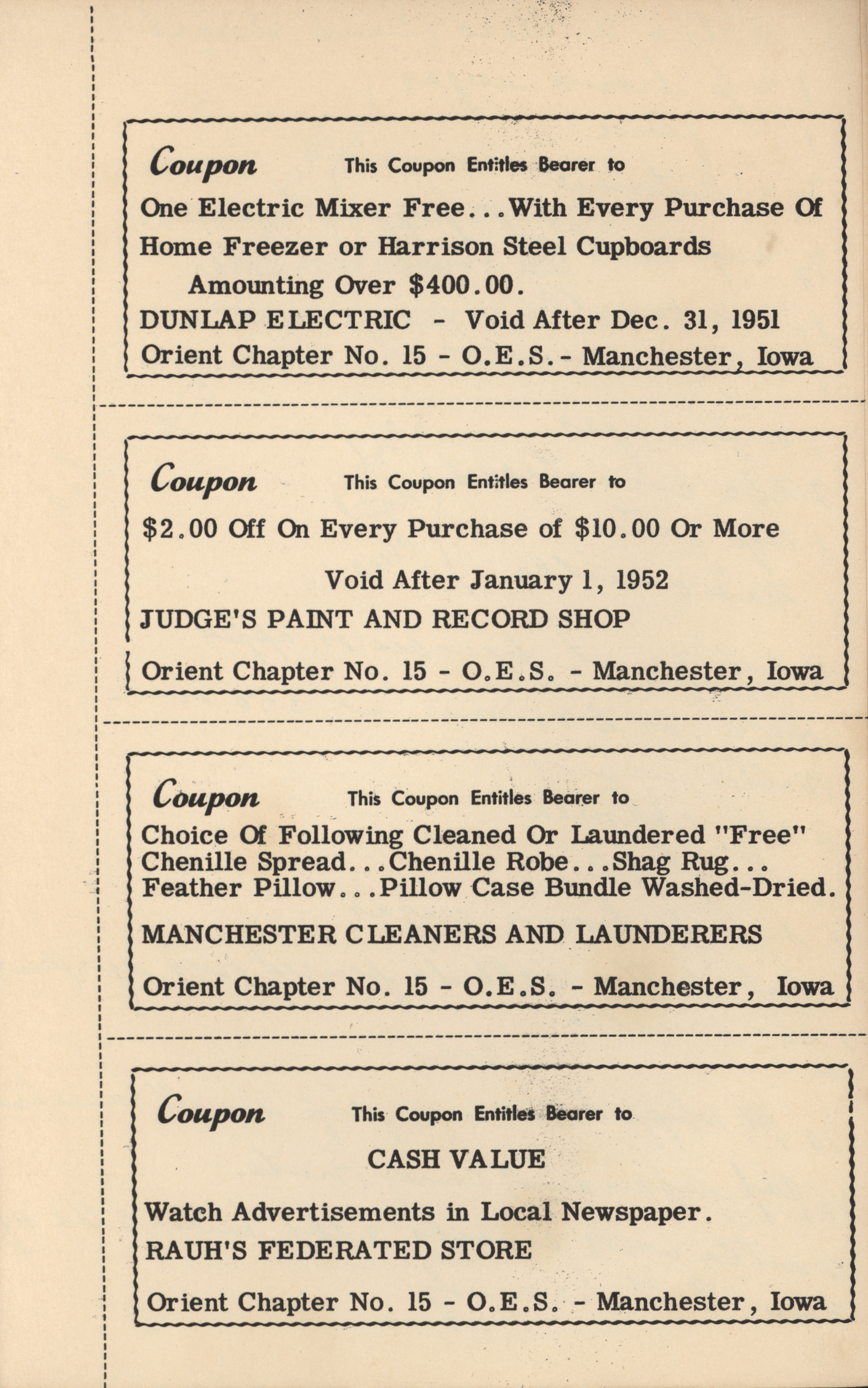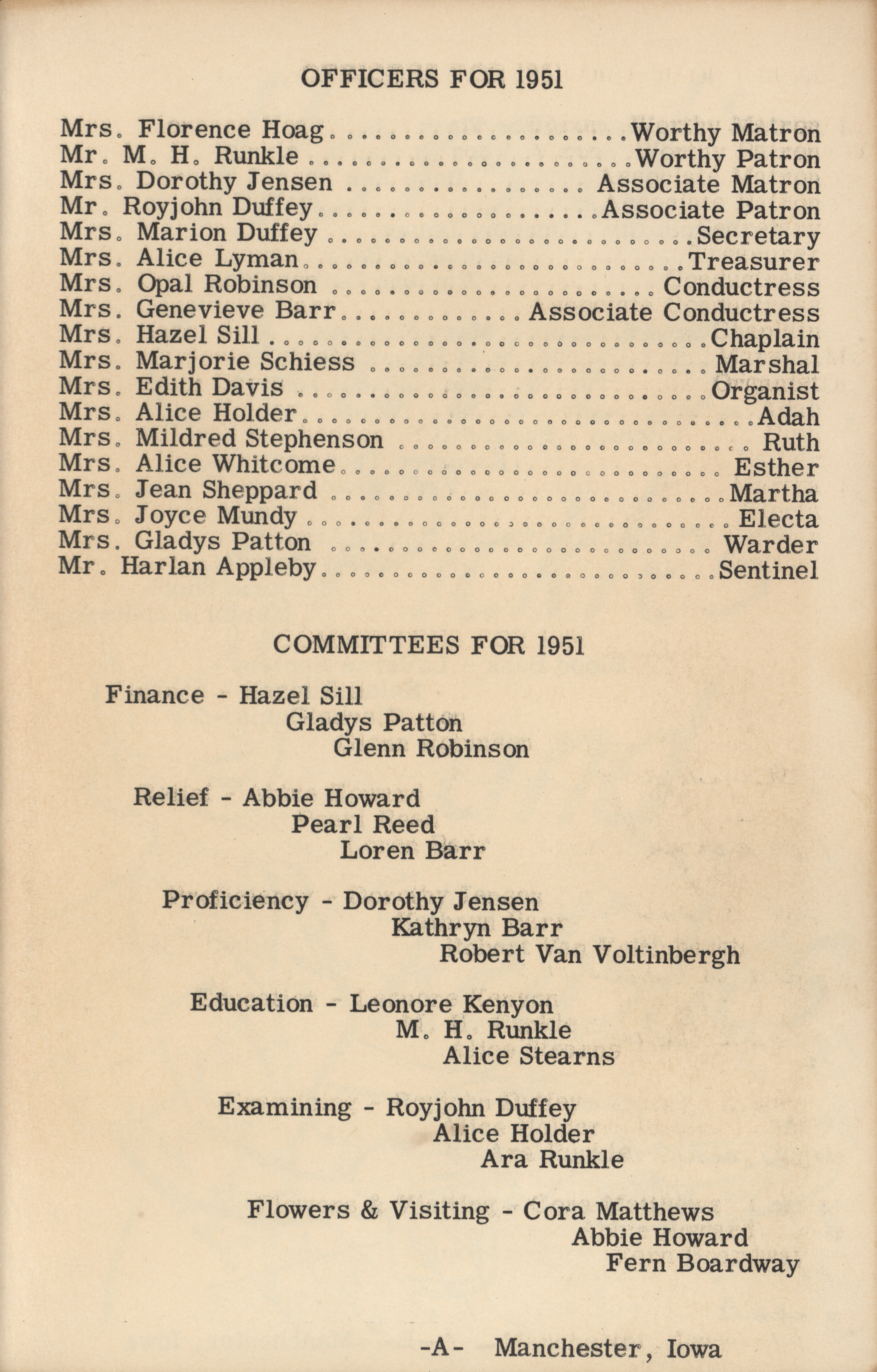 - Order of the Eastern Star. Orient Chapter No. 15 (Manchester, Iowa)