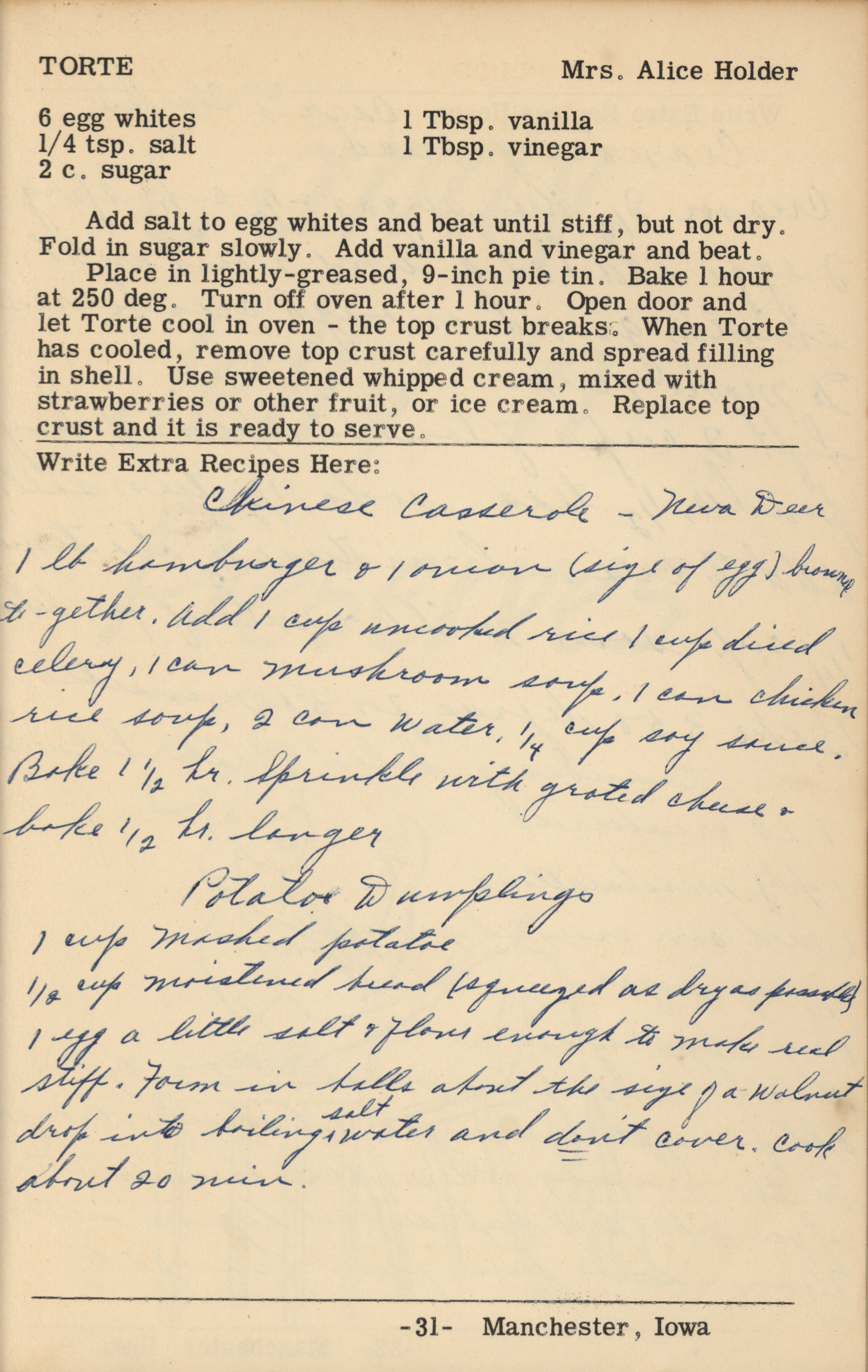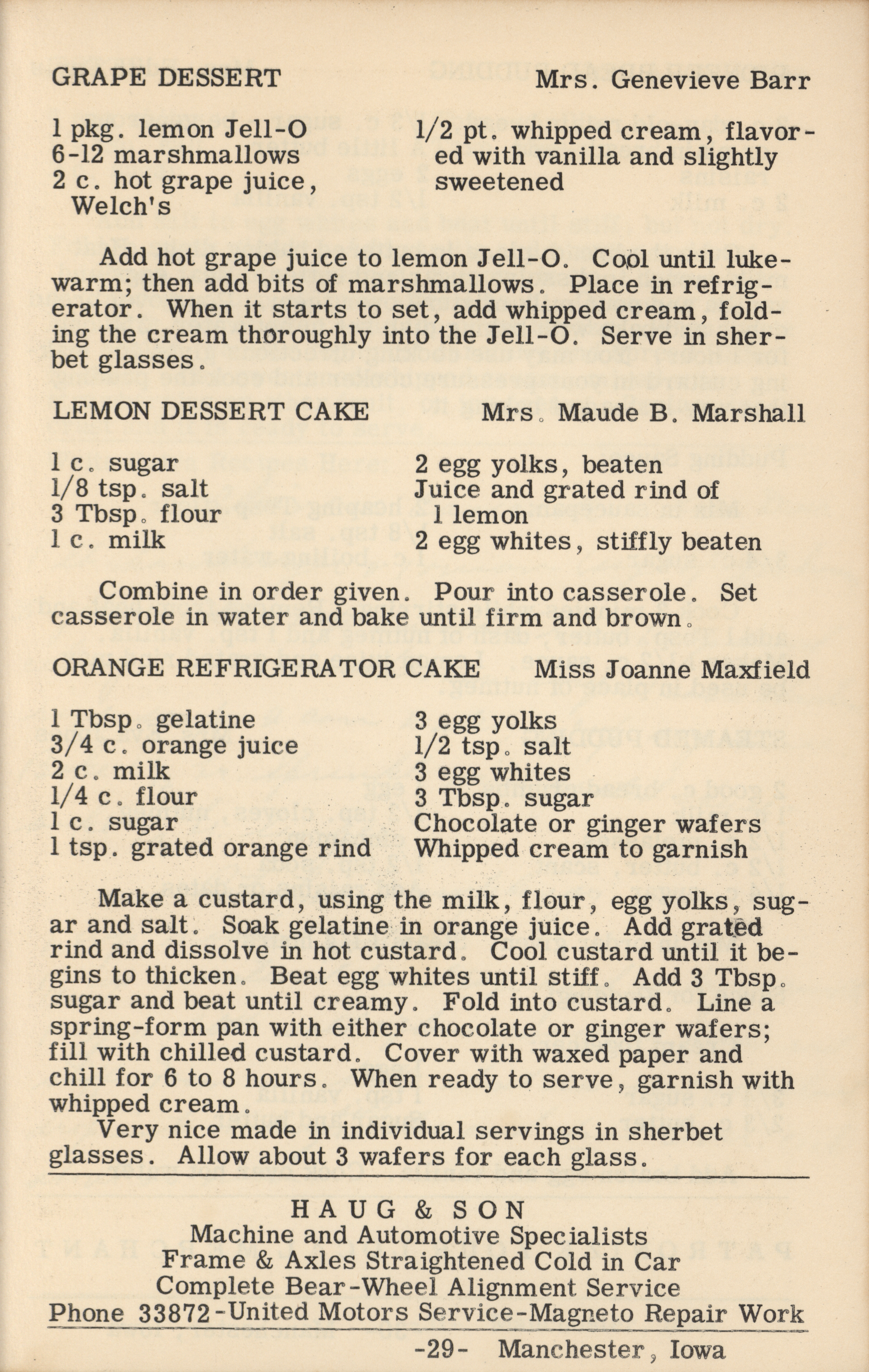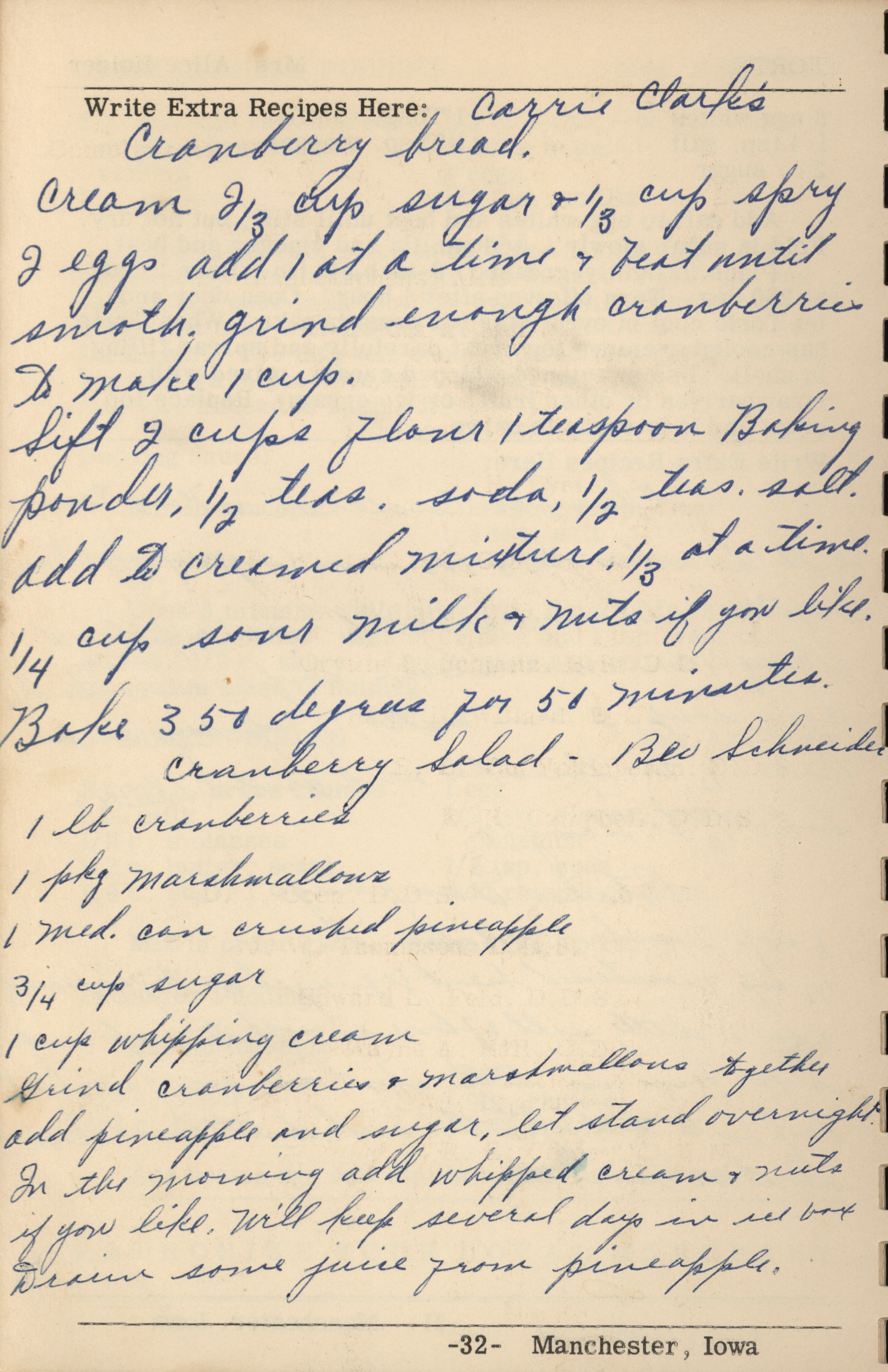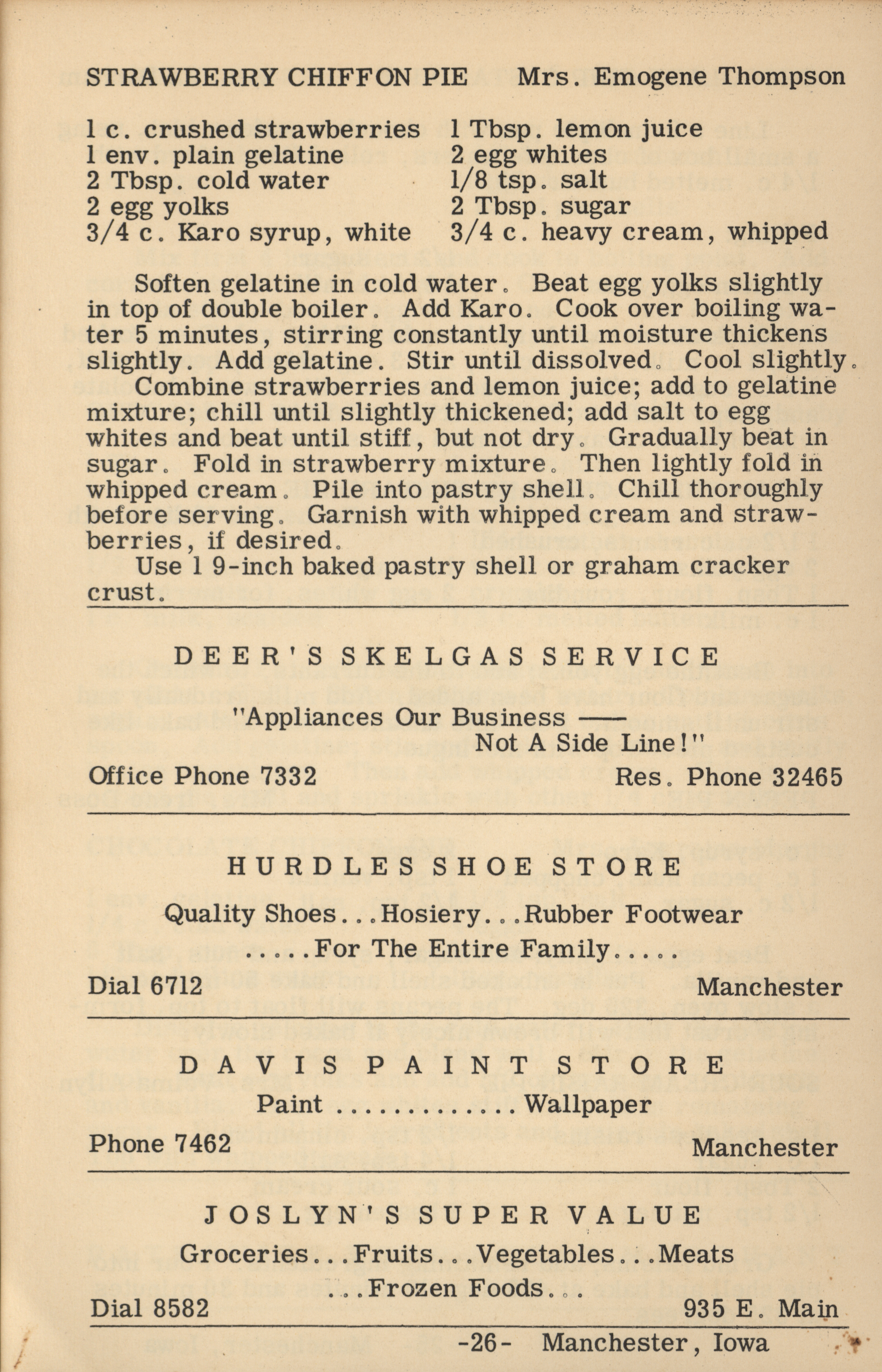 - A cookbook compiled by the Orient Chapter of the Order of the Eastern Star in Manchester, Iowa. Along with recipes, it includes sample menus for a variety of diets, a list of vegetable varieties that are good for freezing, hints on cooking frozen foods, and tips on cooking for large amounts of people. The book is also filled with handwritten and typed recipes that have been added by the owner, and a list of birthdays and Christmas card recipients.