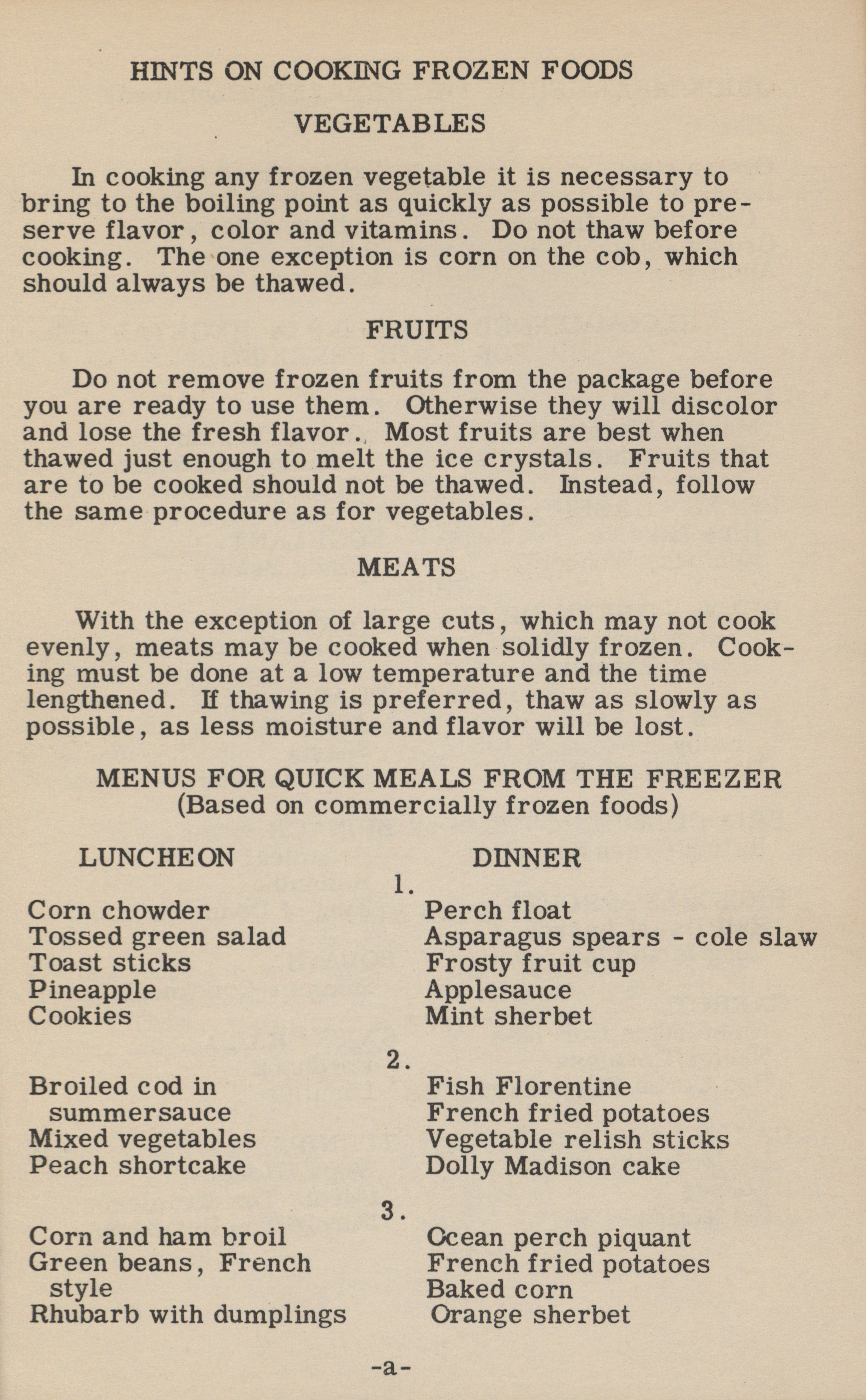 - Cooking, American--Midwestern style Advertising Home economics Canning and preserving Desserts Menus--Planning Frozen foods Fraternal organizations