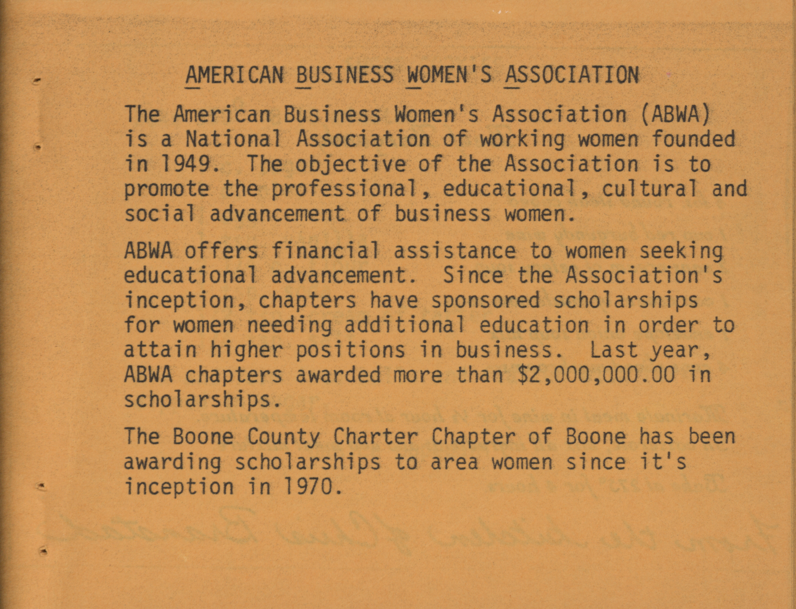 - American Business Women's Association. Boone County Charter Chapter