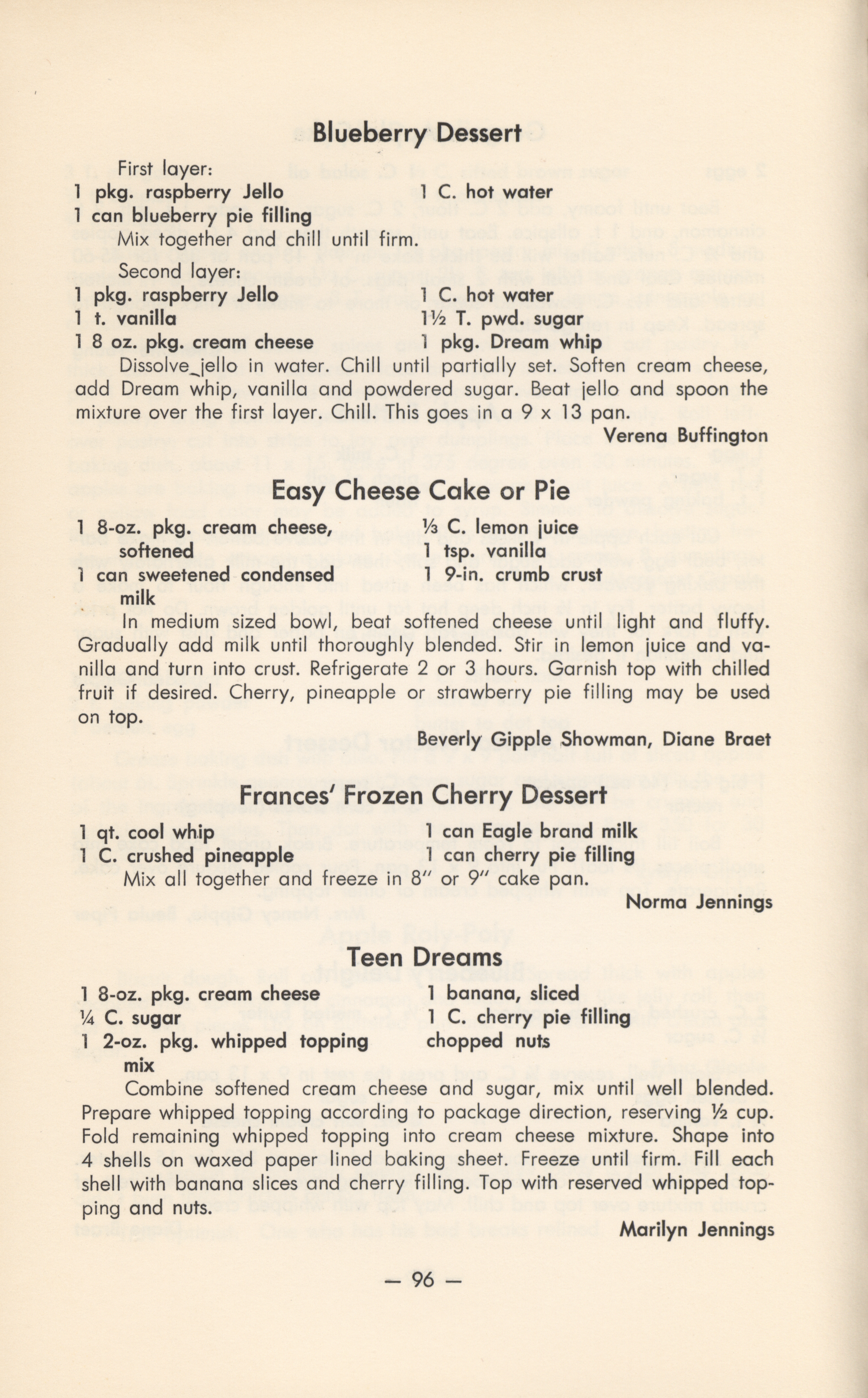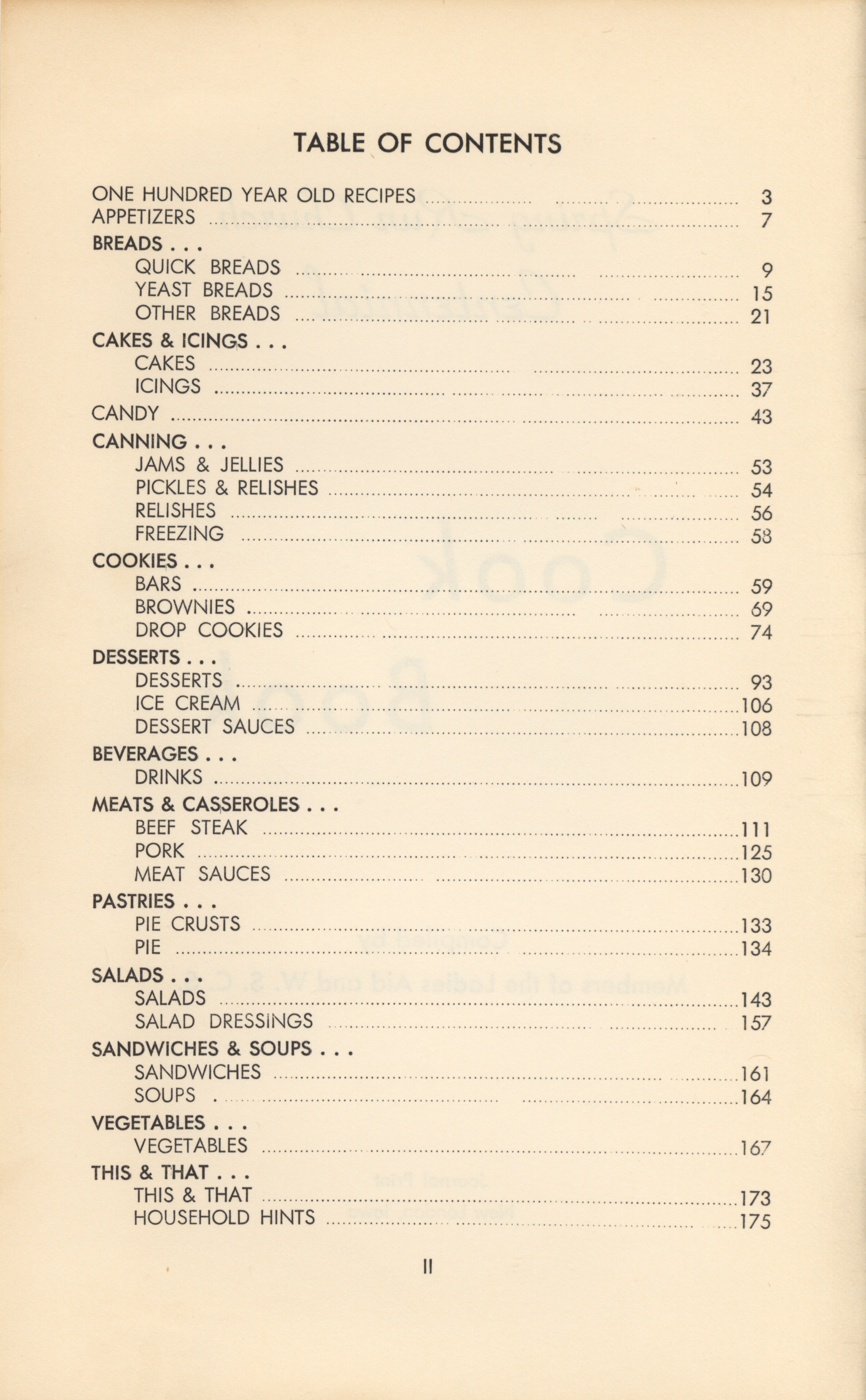 - Cooking, American--Midwestern style Appetizers Cooking (Bread) Cookies Desserts Salads Soups Casserole cooking Canning and preserving Home economics Church anniversaries