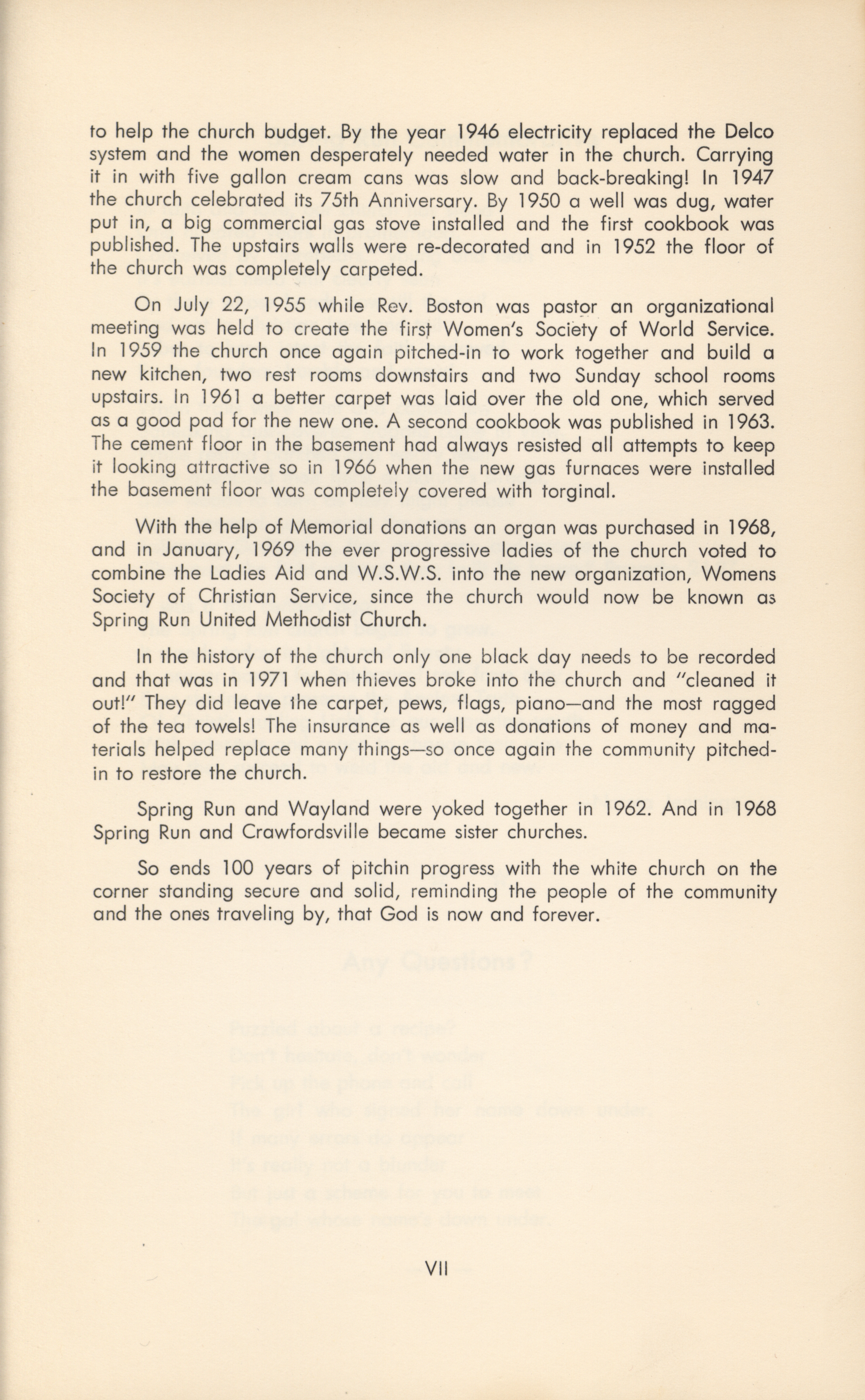 - Spring Run United Methodist Church (Columbus Junction, Iowa). Women's Society of Christian Service