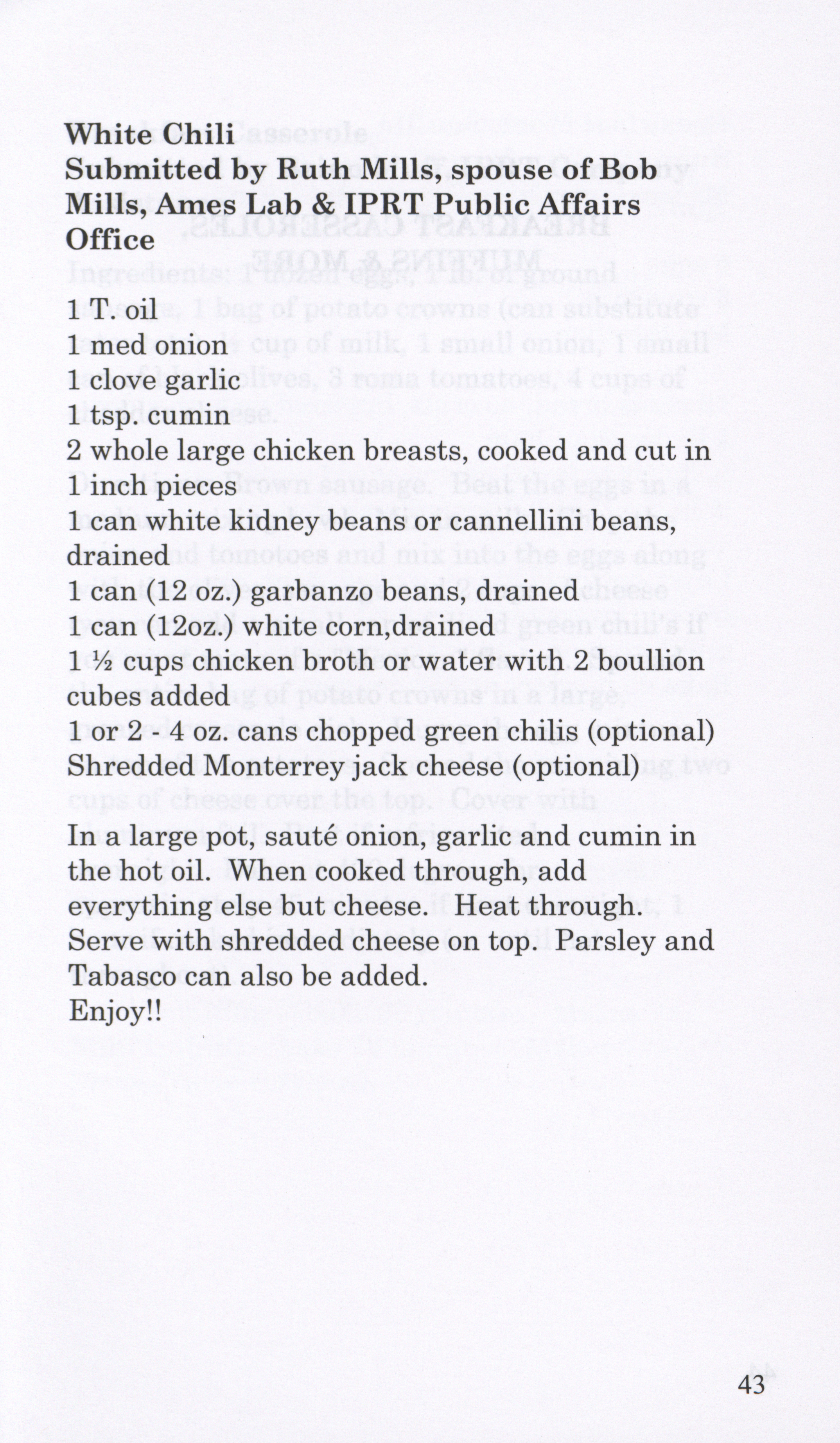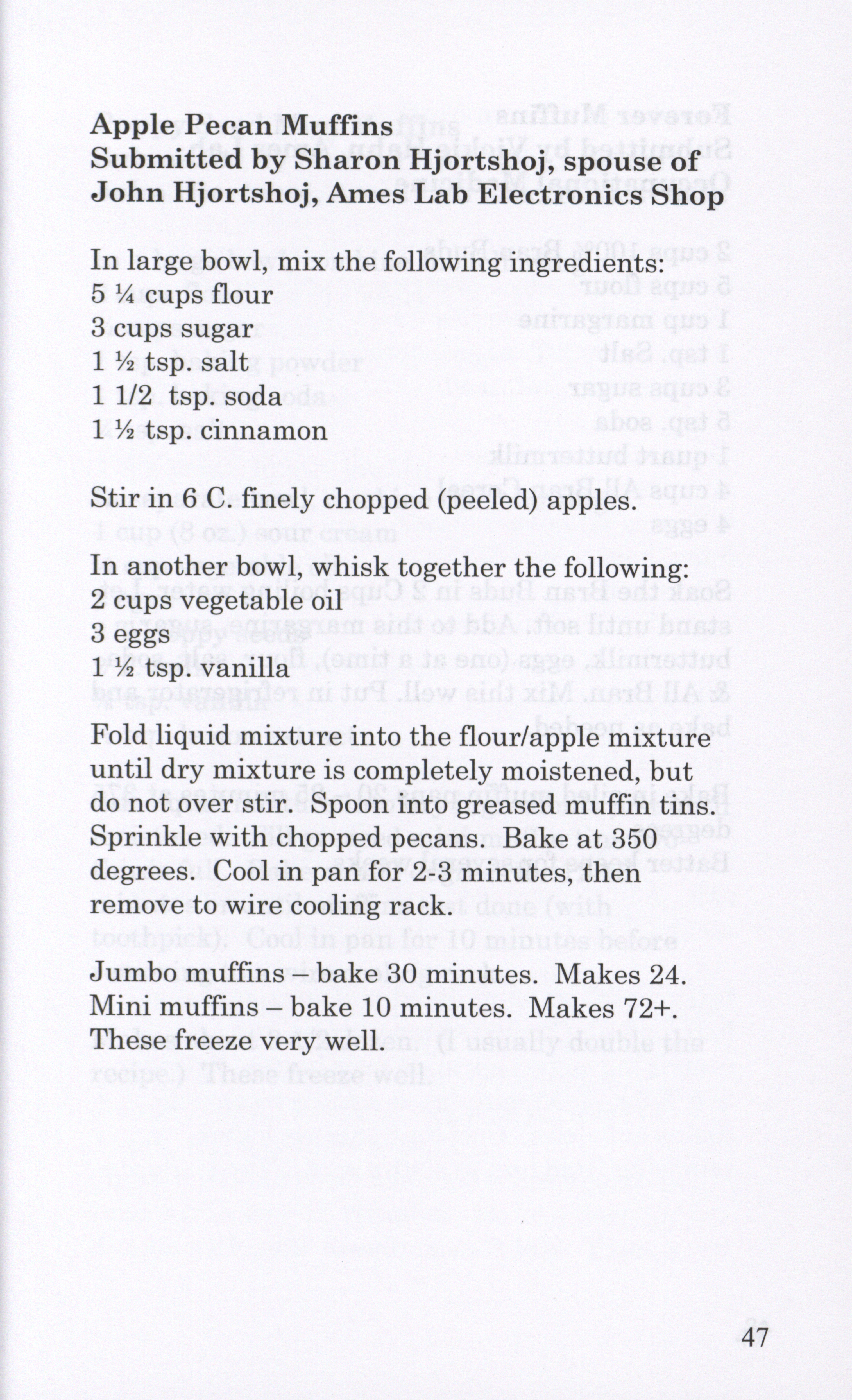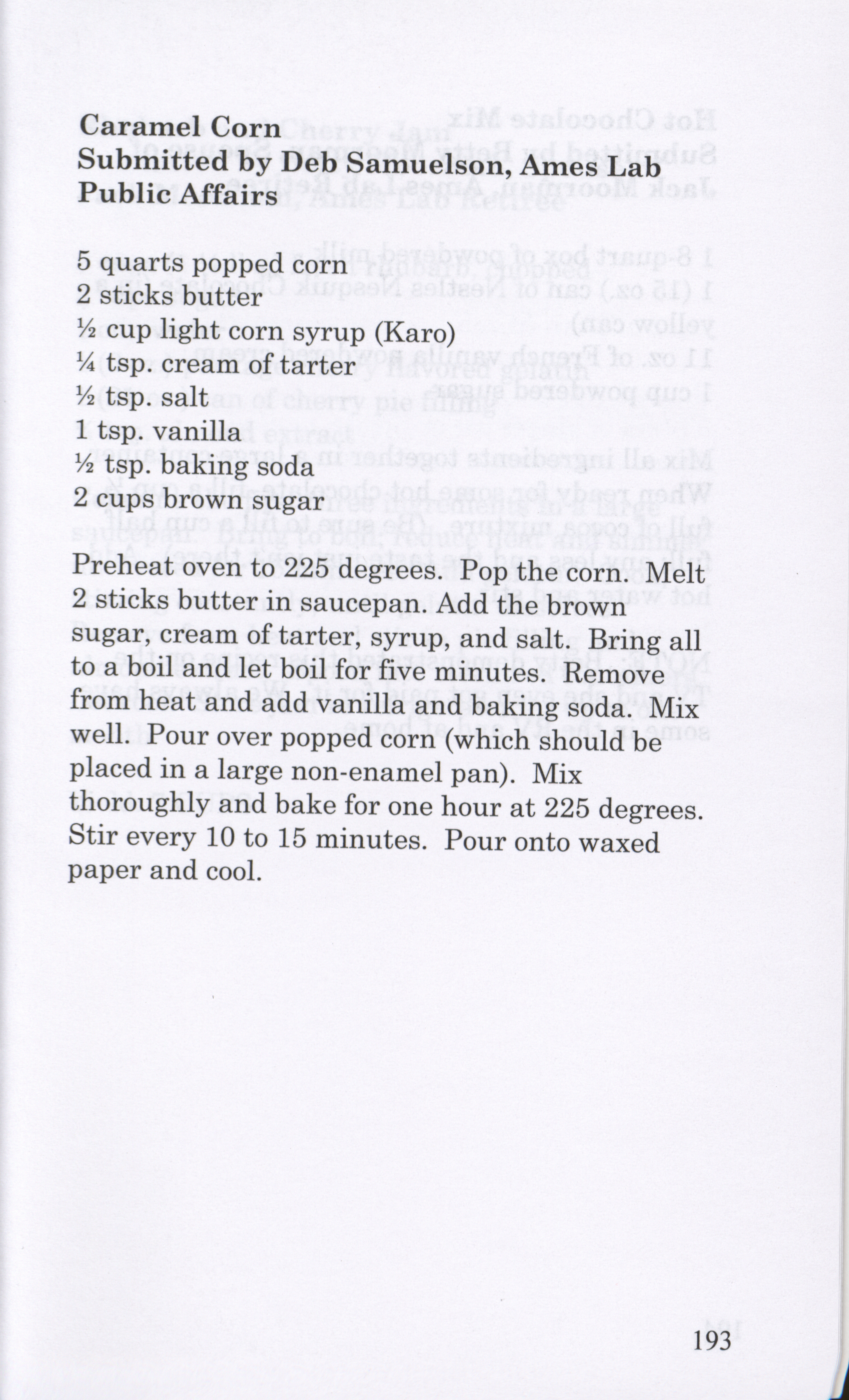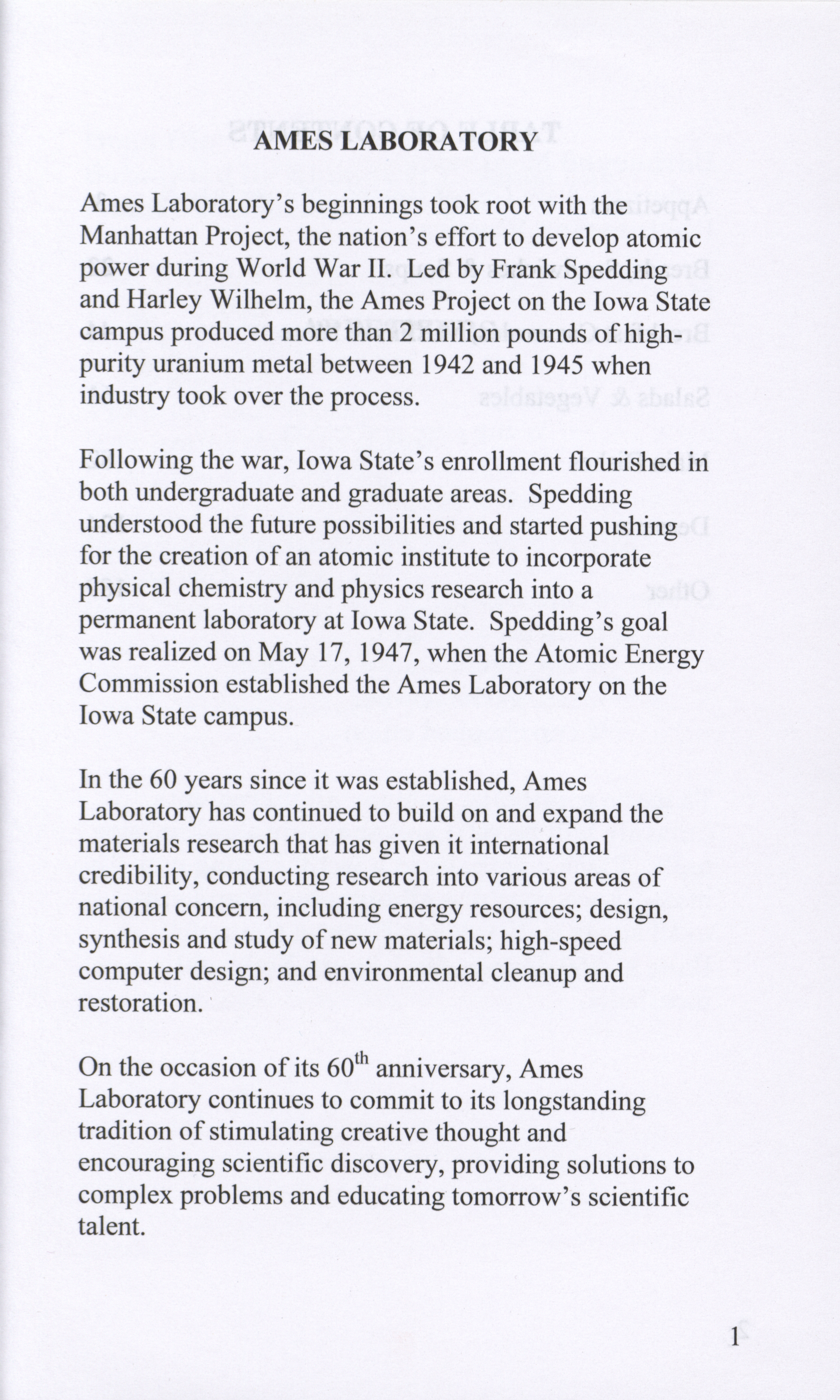 - "Ames Lab 60th anniversary commemorative cookbook", Cookbook Collection, Iowa State University Library Digital Collections