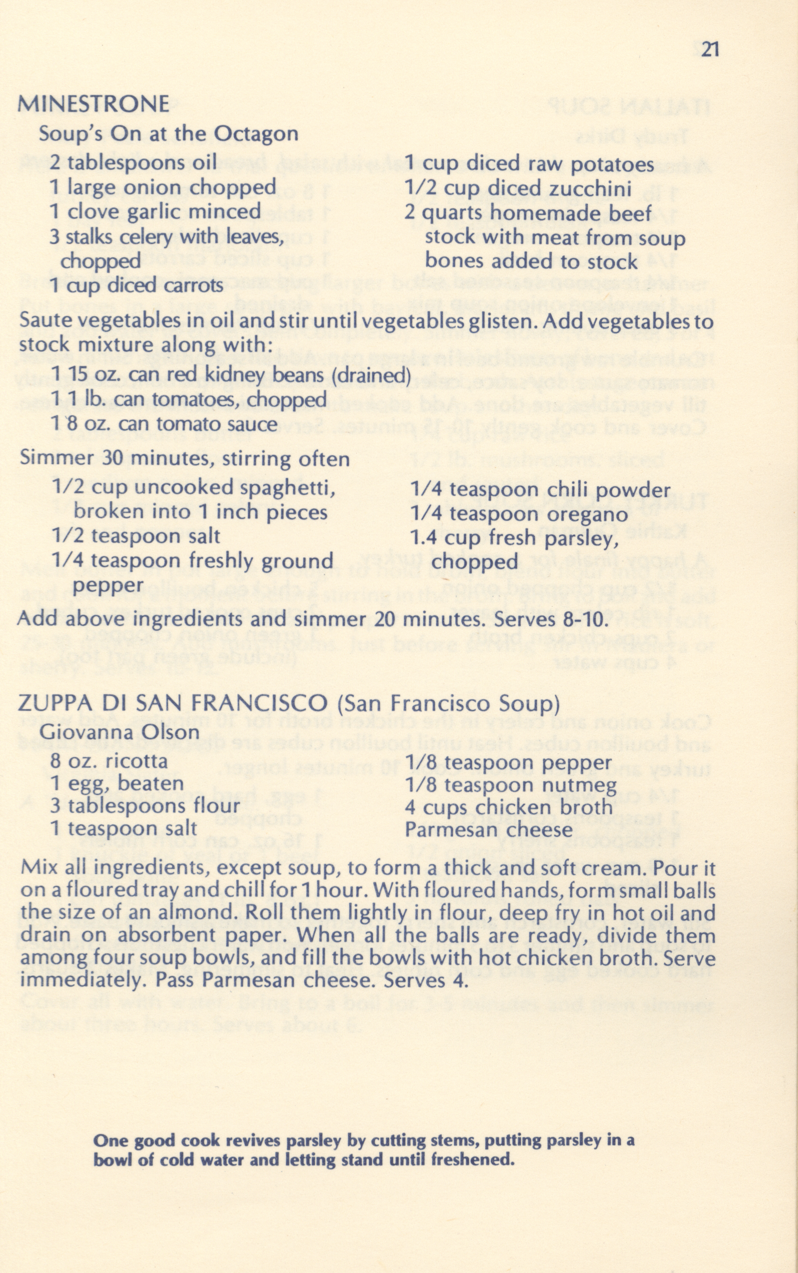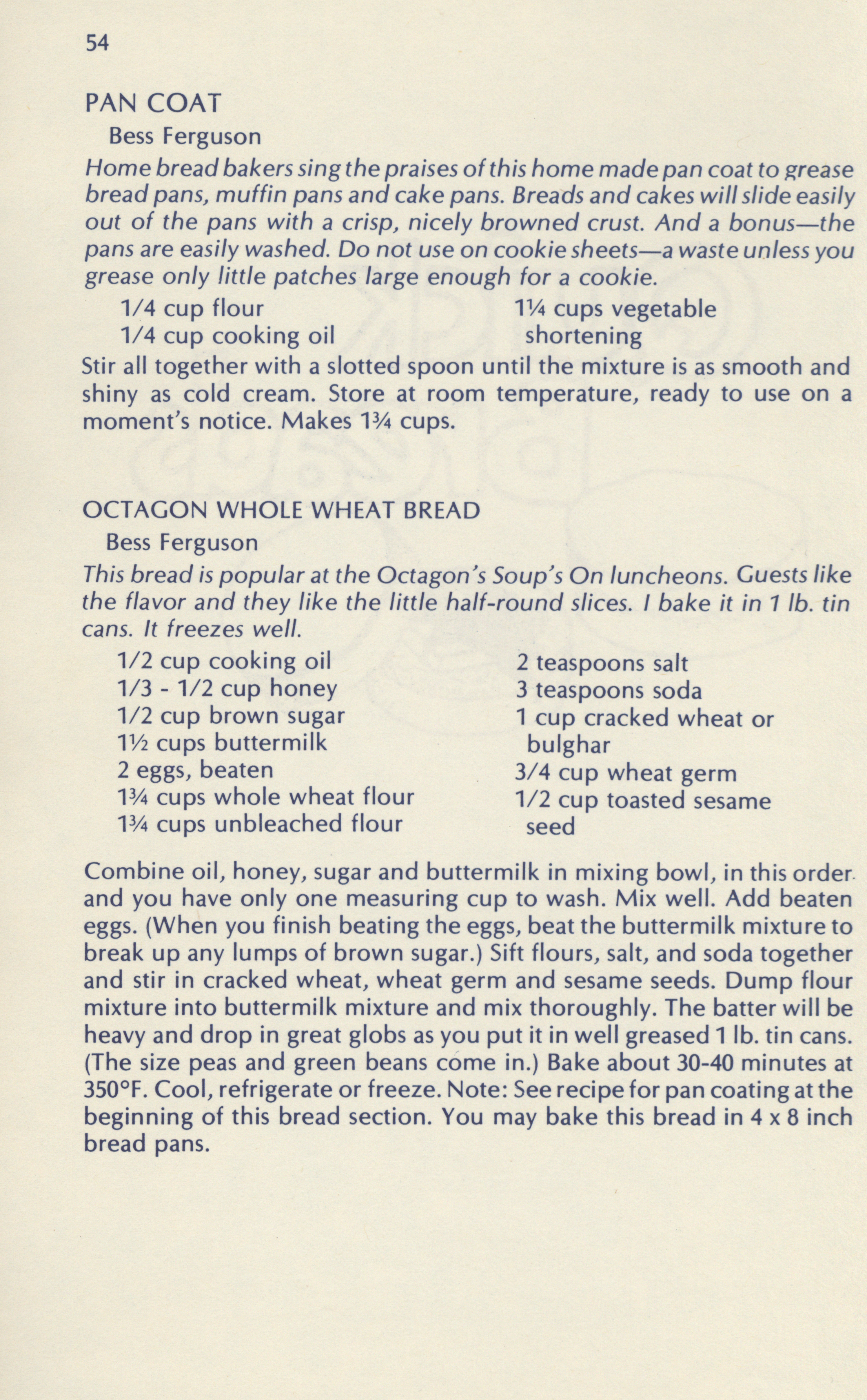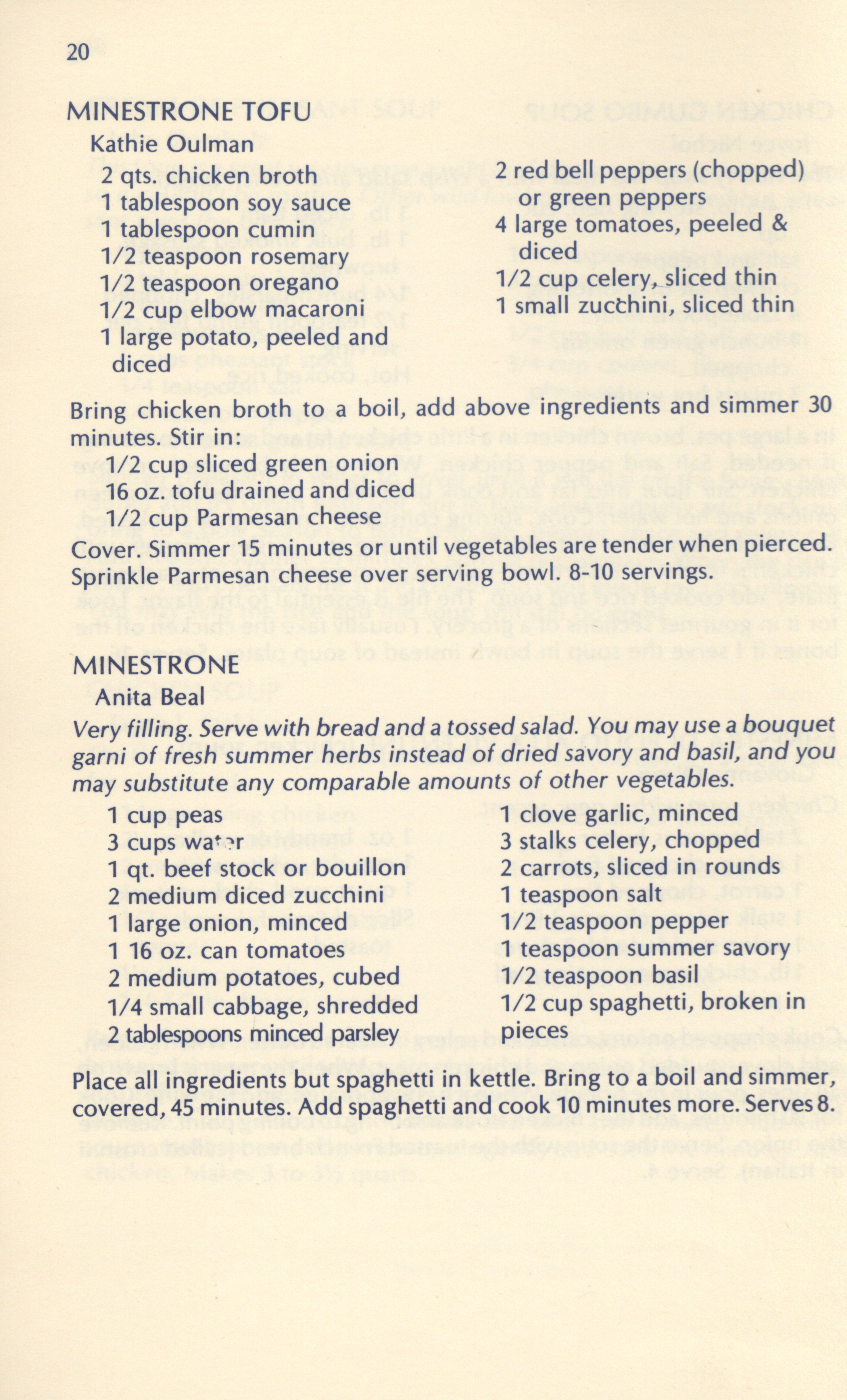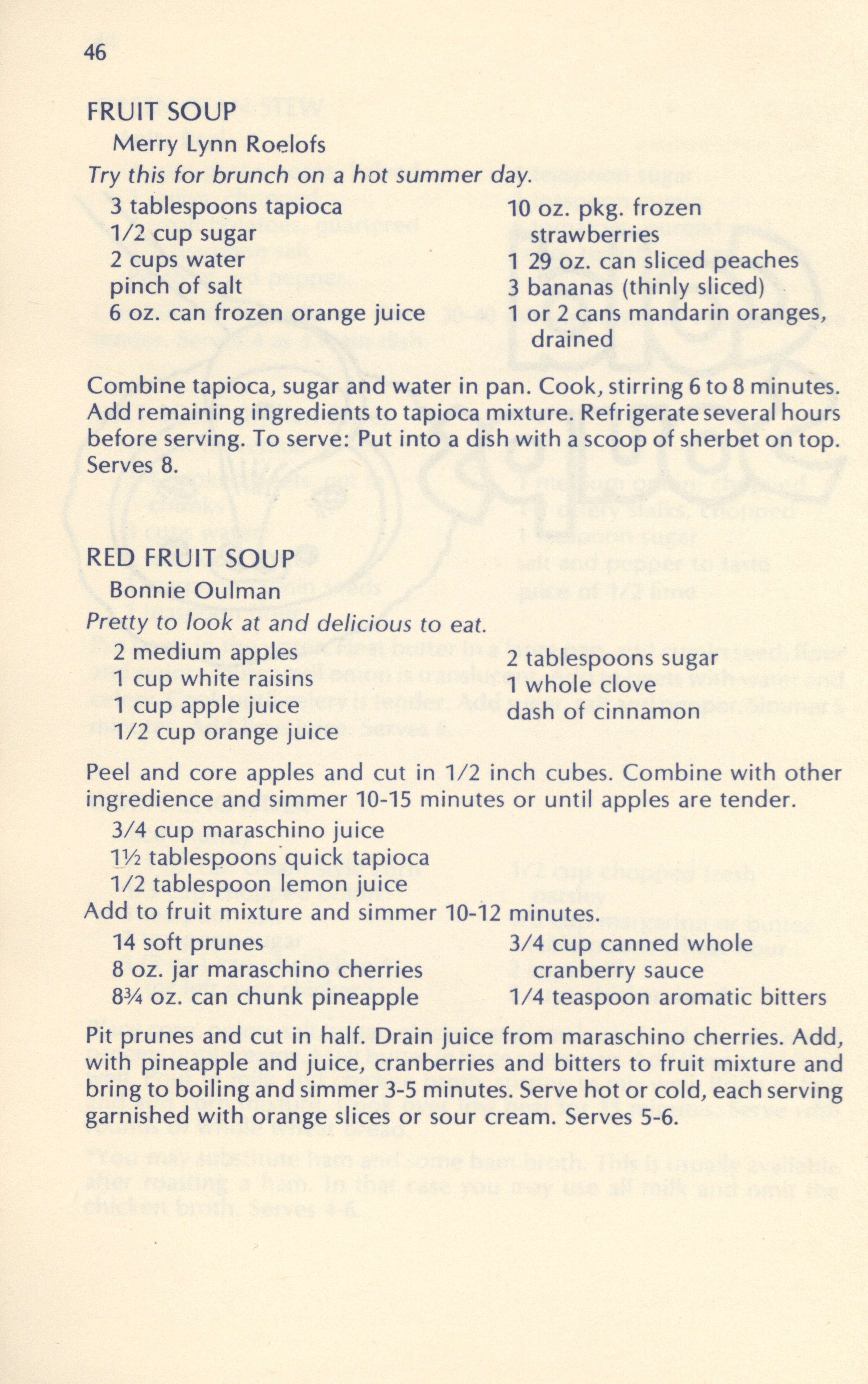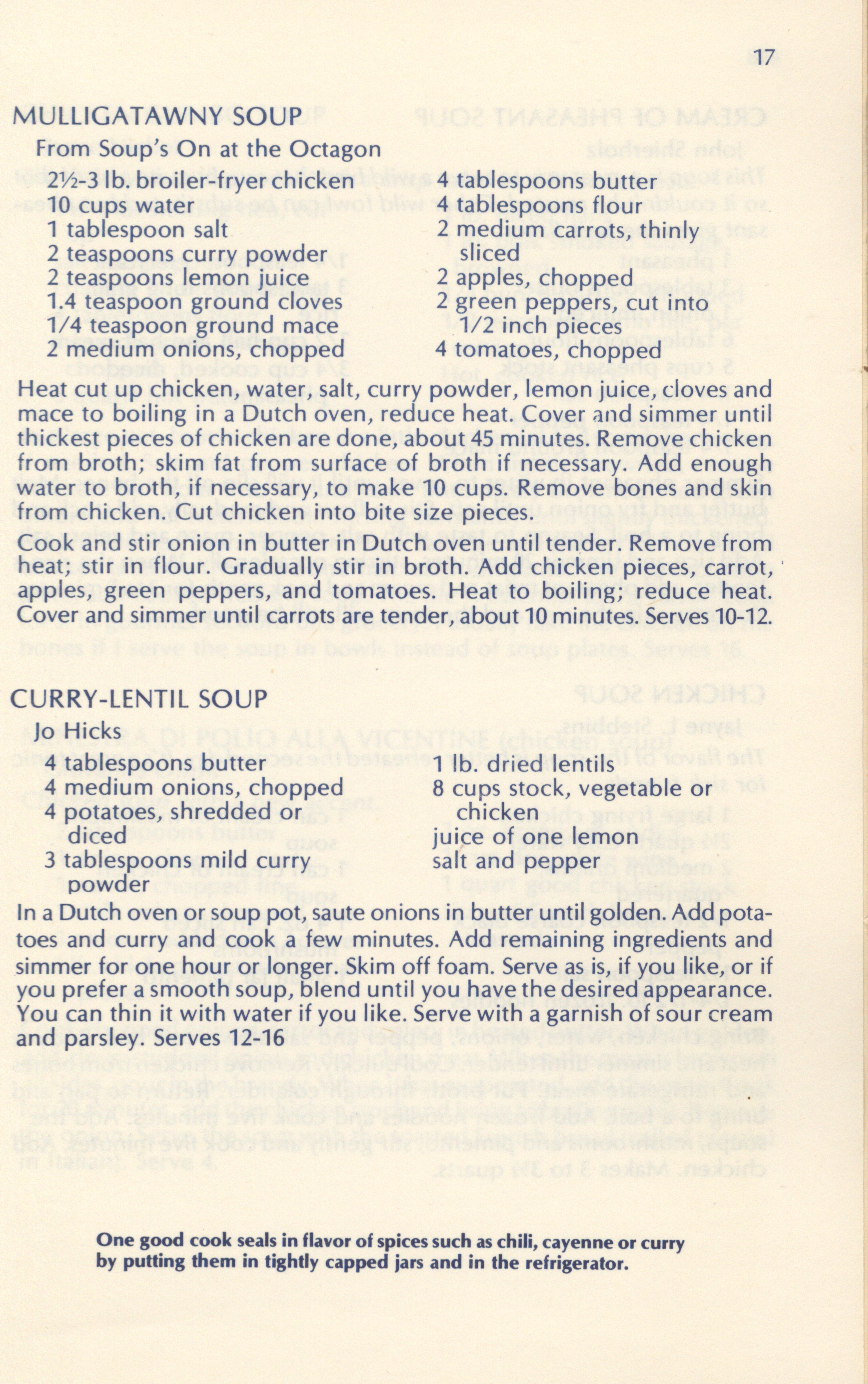 - "Soups breads and spreads: a collection of recipes from Friends of the Octagon and their friends", Cookbook Collection, Iowa State University Library Digital Collections