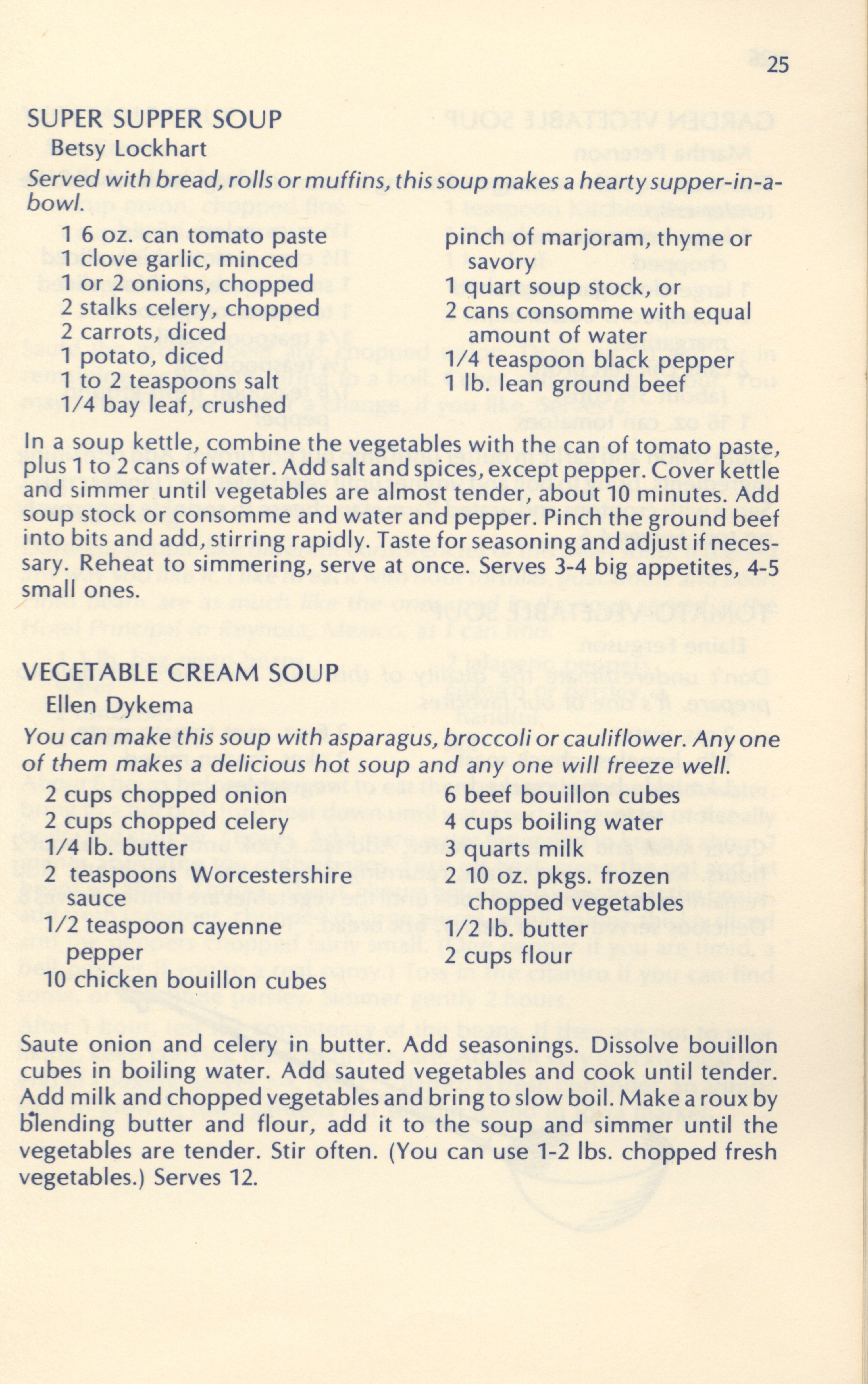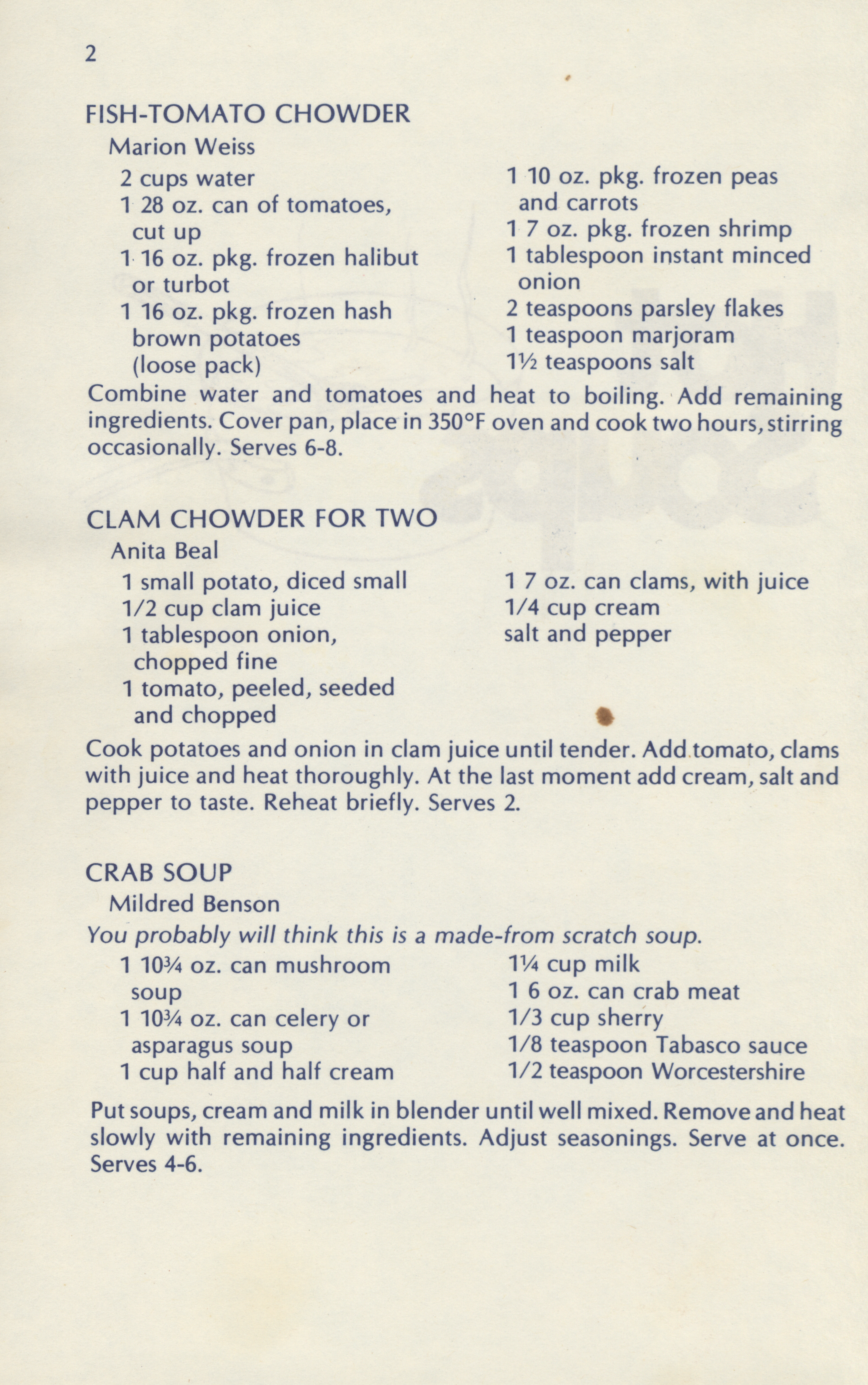 - Cooking, American--Midwestern style Fund raising Soups Cooking (Bread) Snack foods