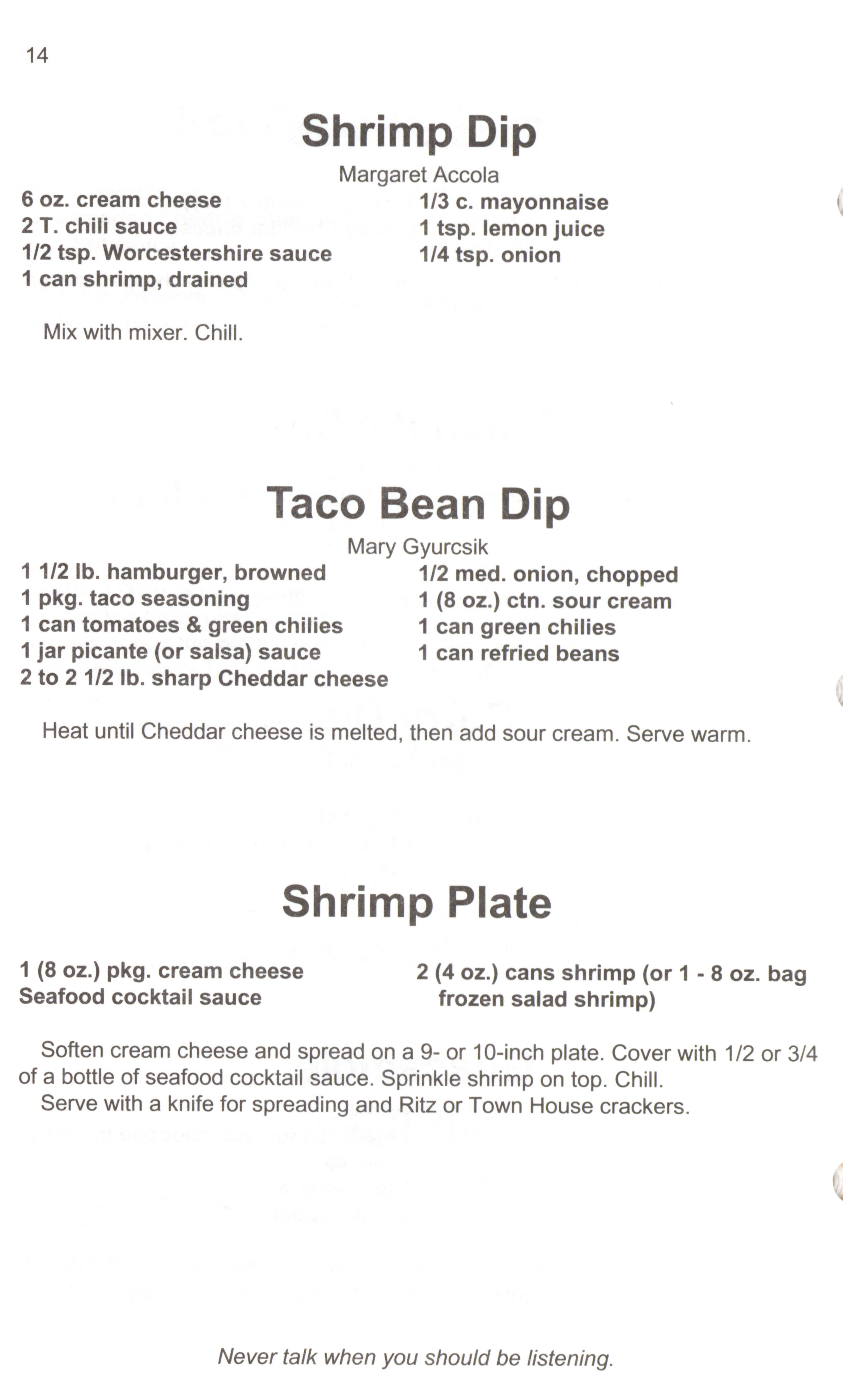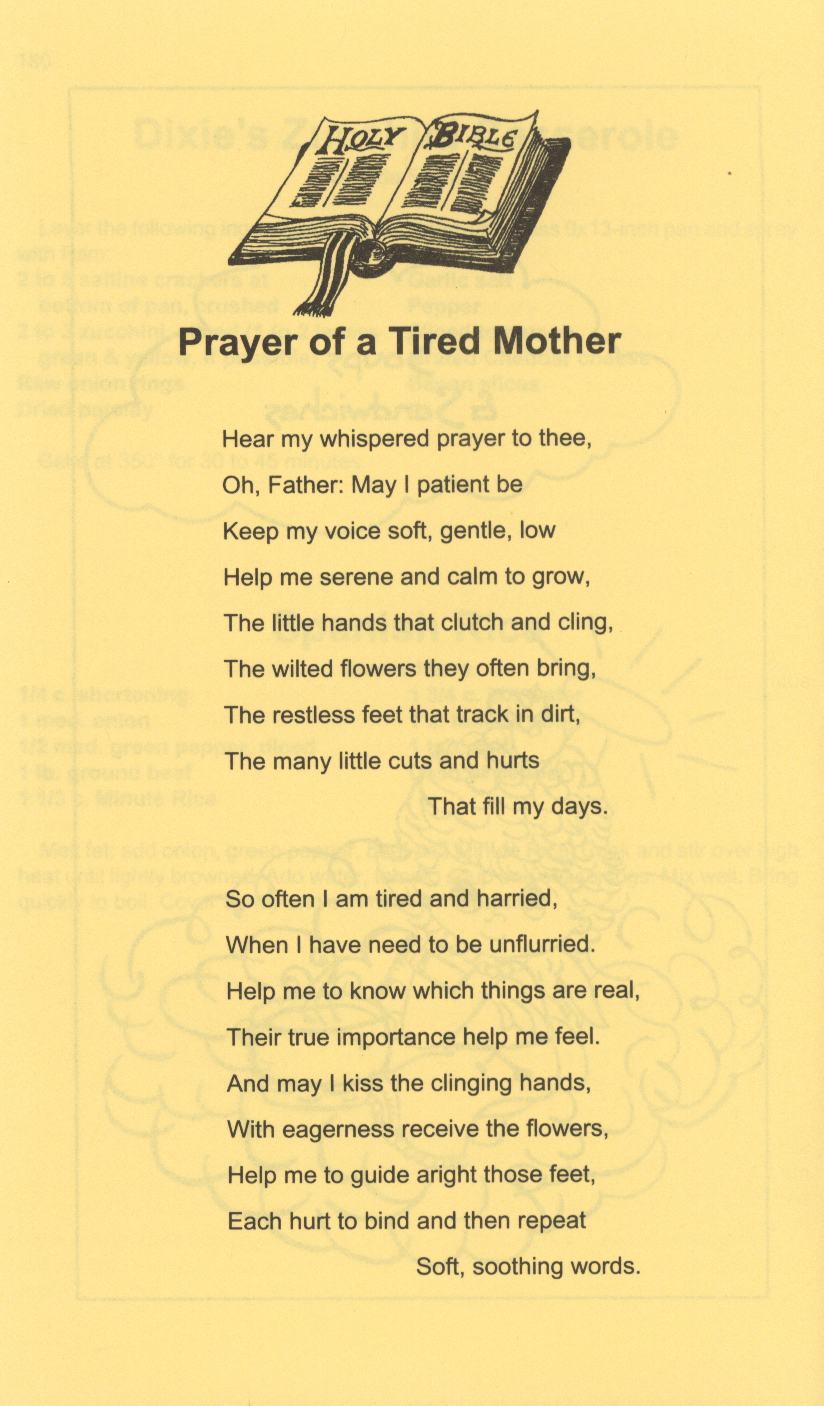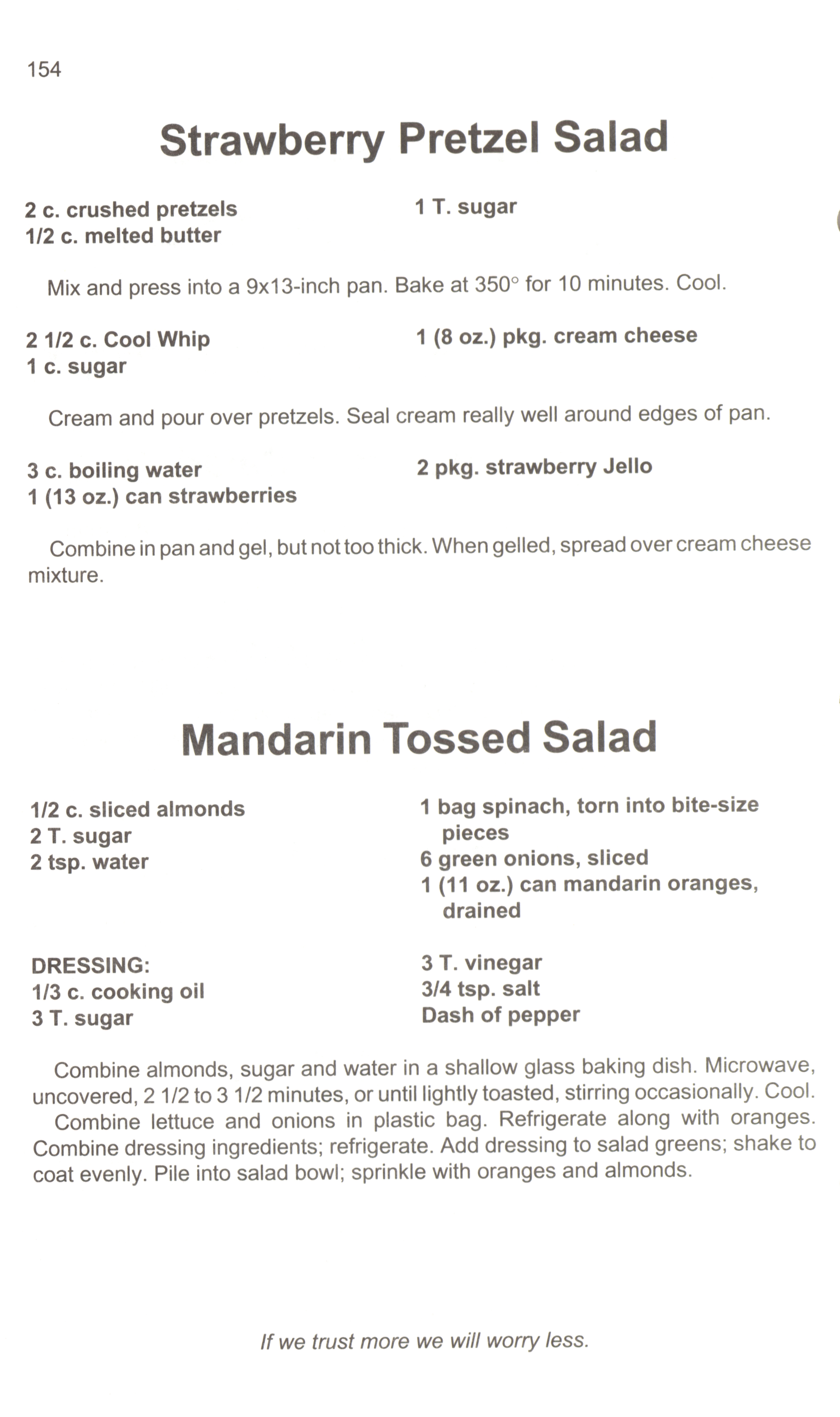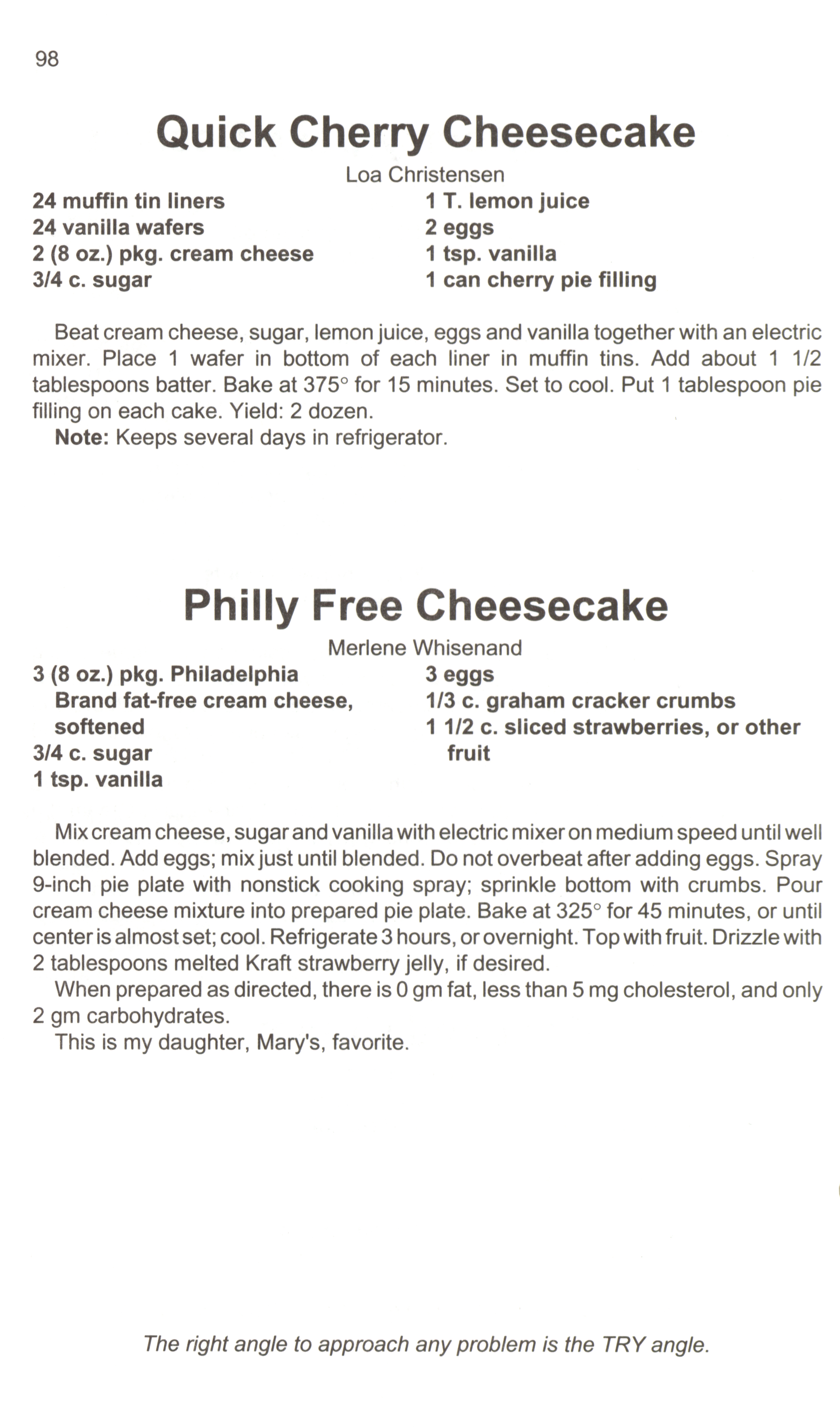 - This cookbook was compiled for the 25th anniversary of the Trinity United Methodist Church. It includes "heritage recipes," appetizers, breads, cakes, desserts, main dishes, salads, soups, and sandwiches. It also has a section with recipes for children.