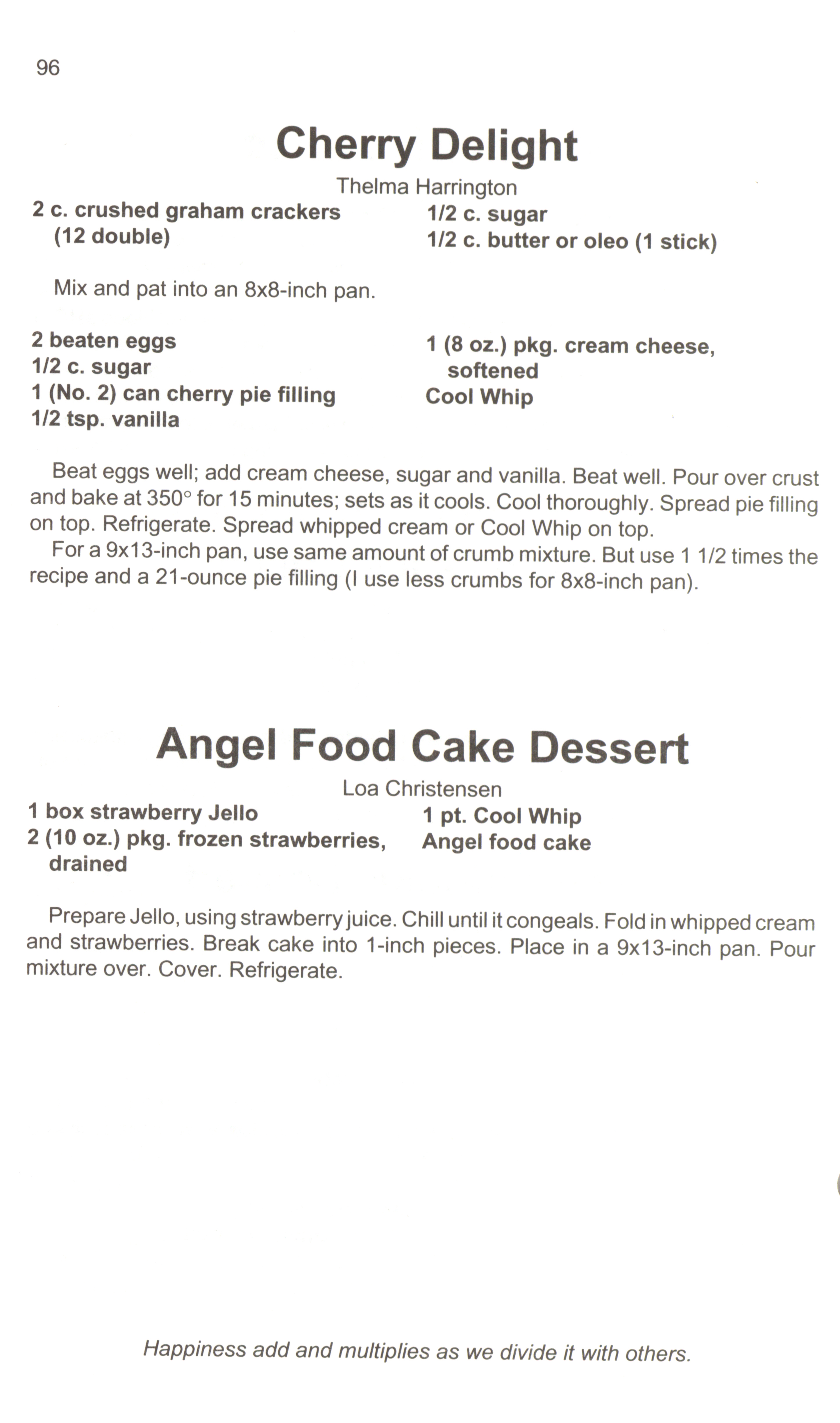 - "A taste of heaven: Trinity United Methodist Women cookbook", Cookbook Collection, Iowa State University Library Digital Collections