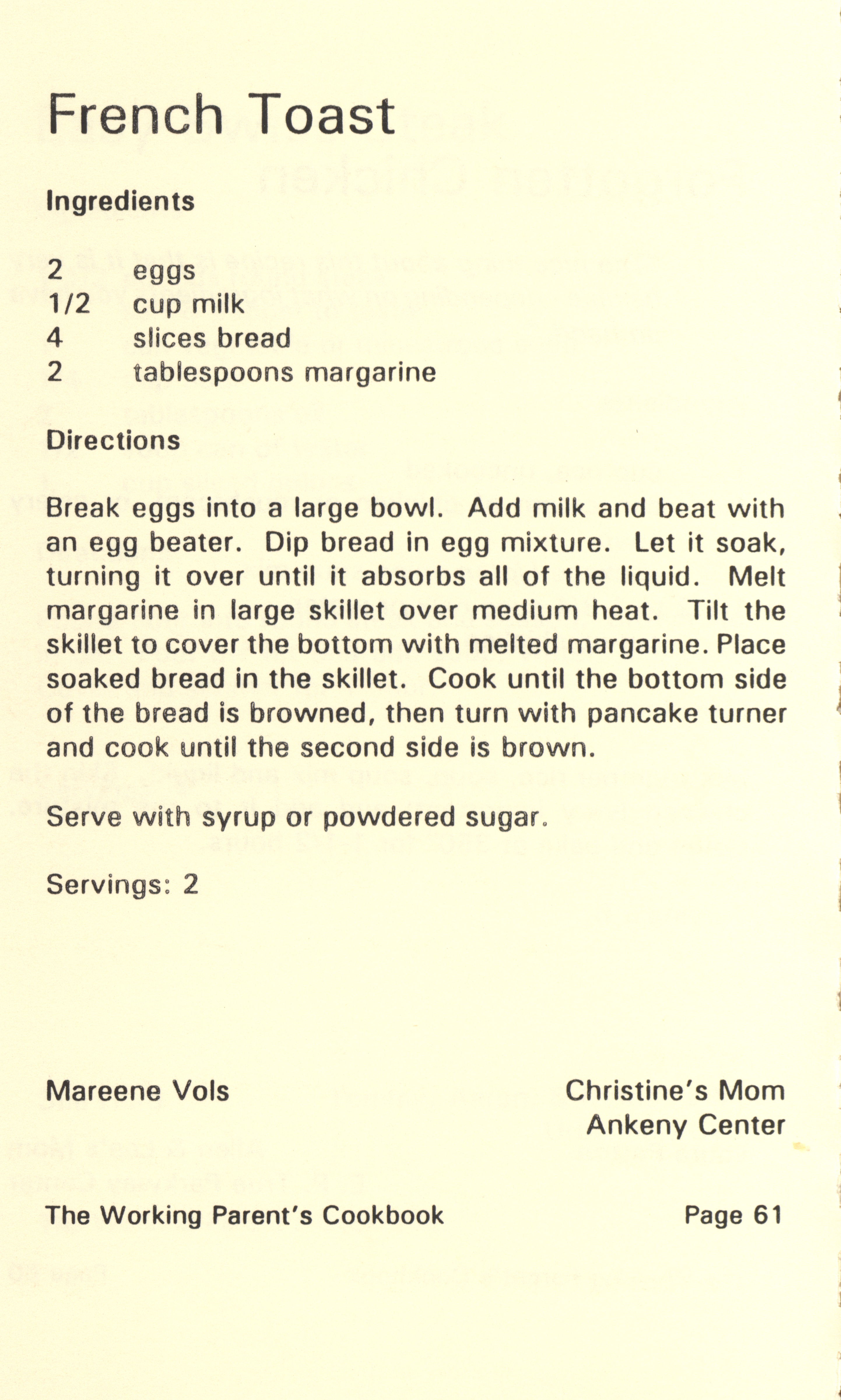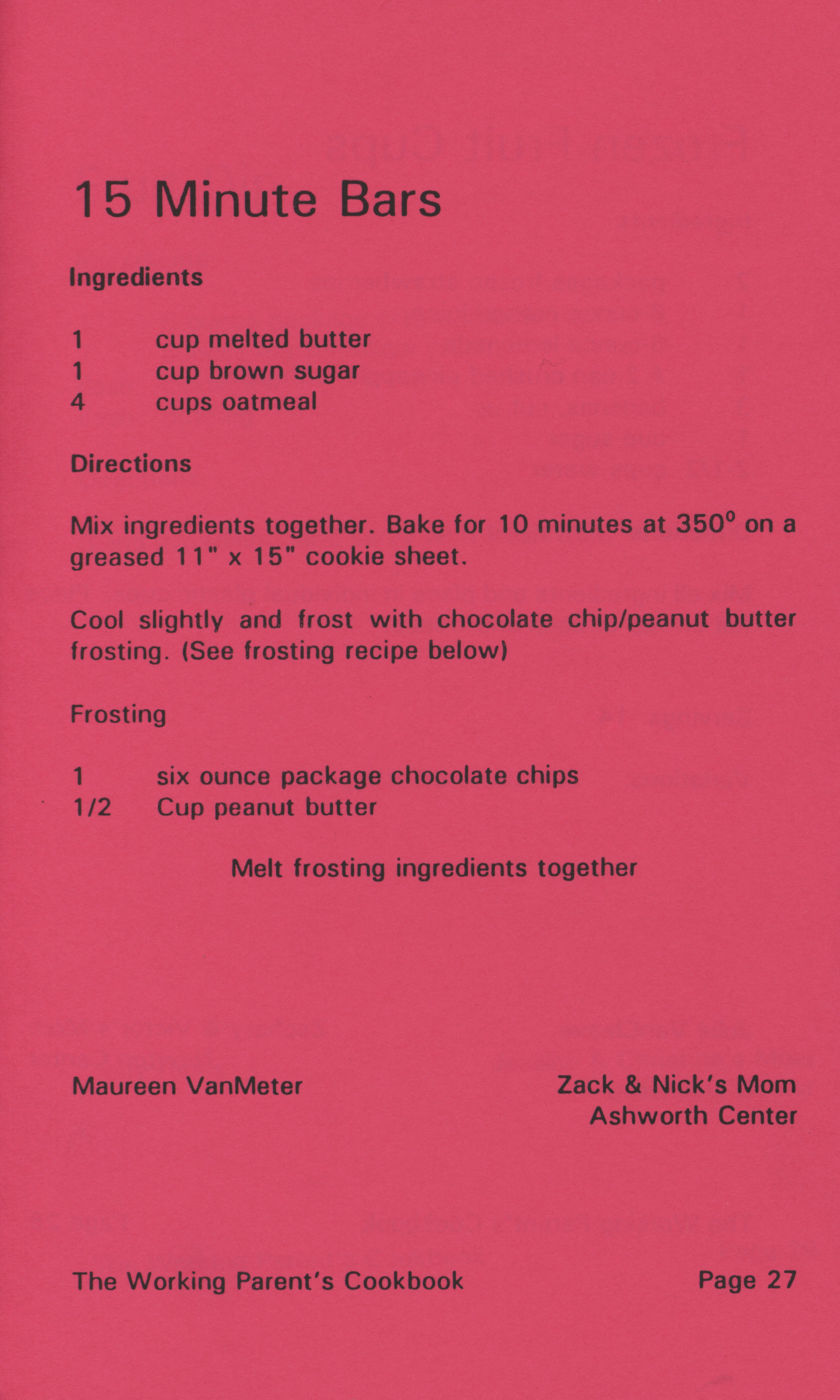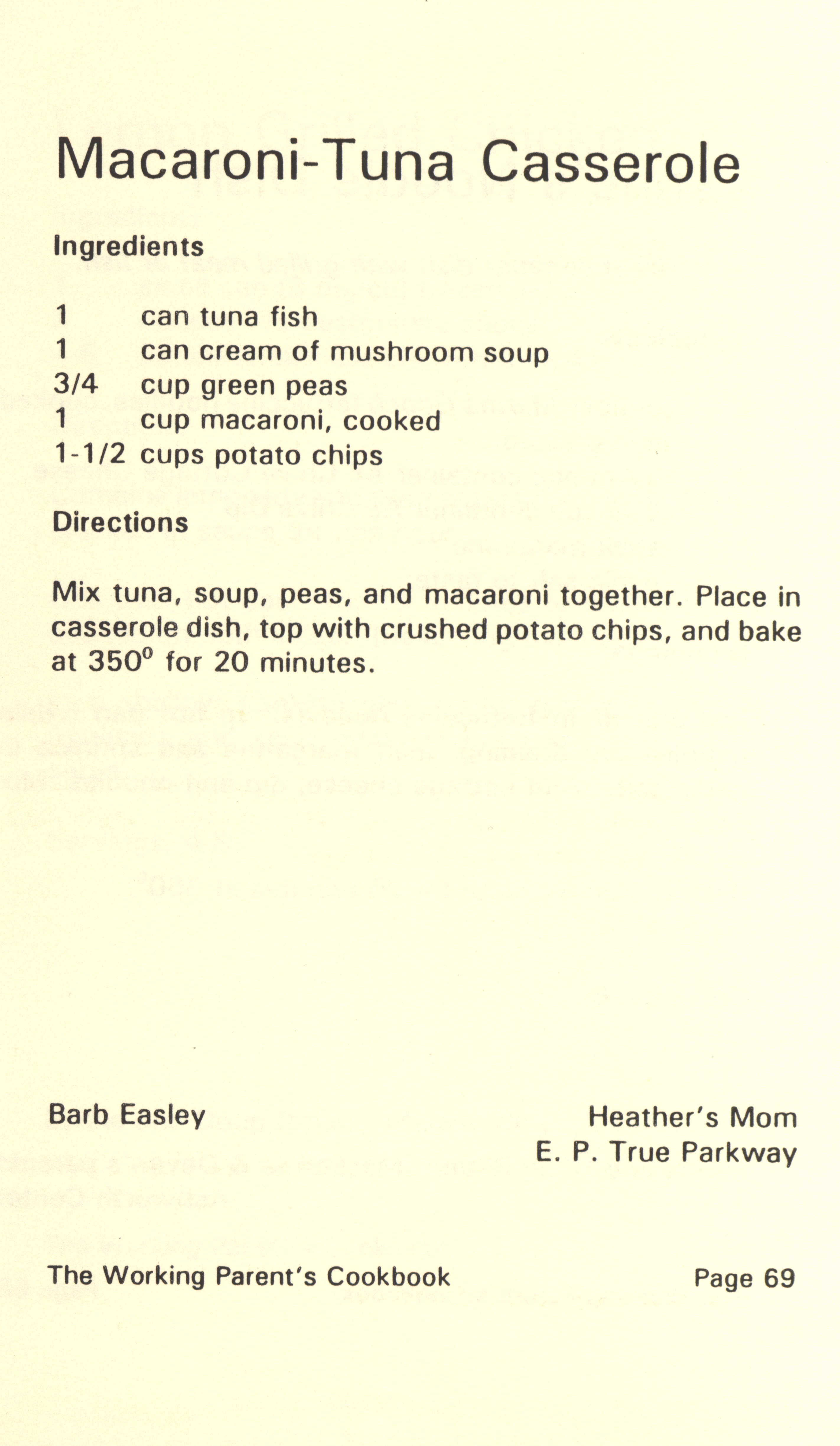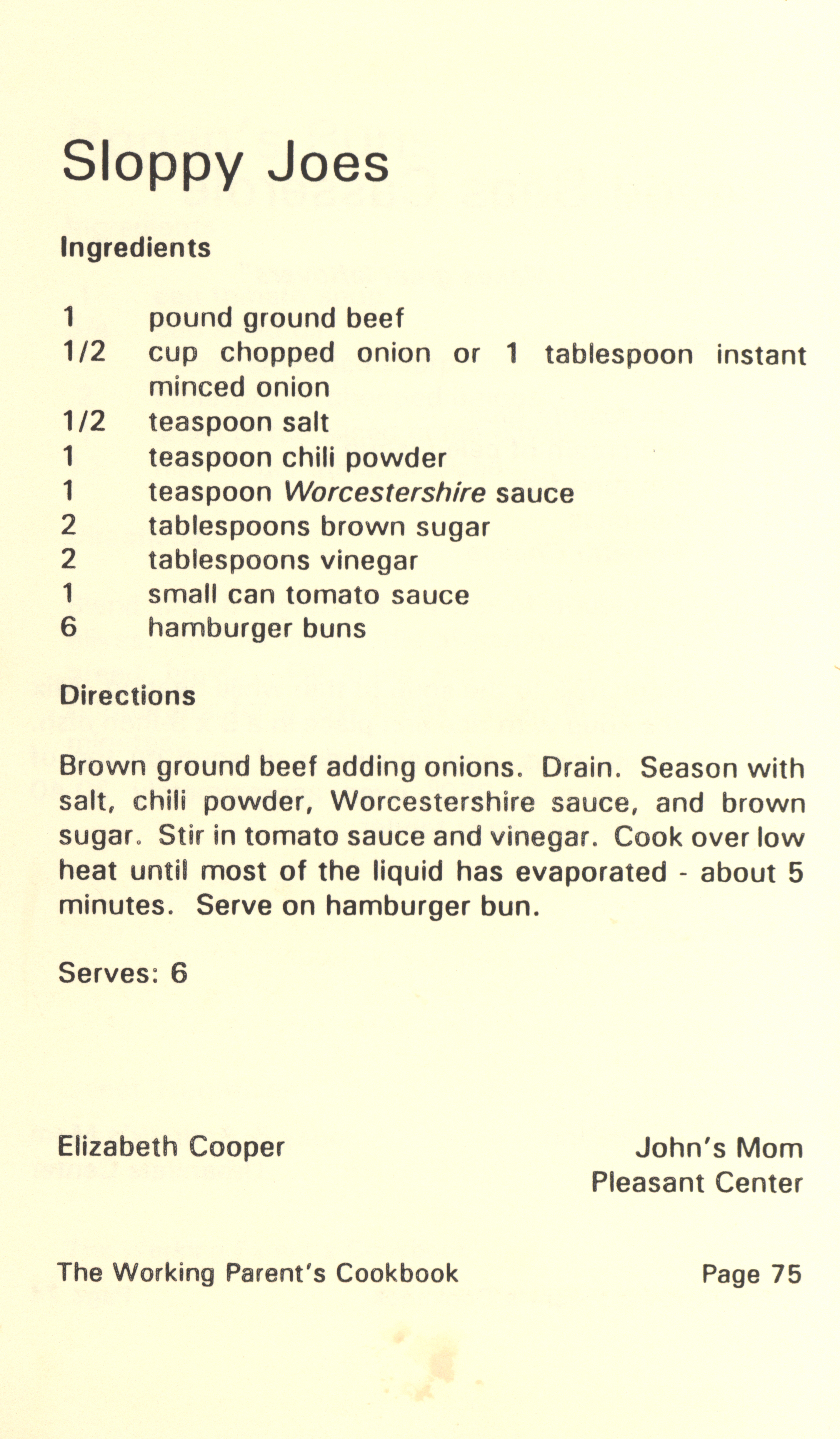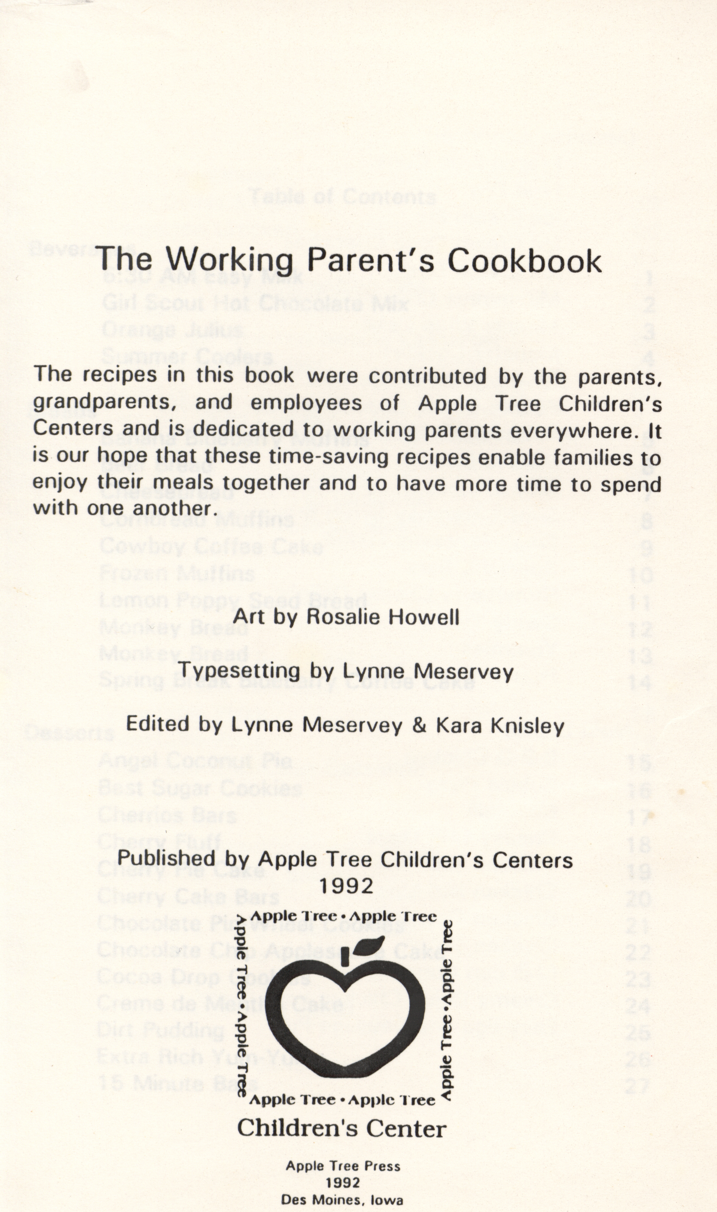 - "Working parent's cookbook: over 100 quick & easy family tested recipes", Cookbook Collection, Iowa State University Library Digital Collections