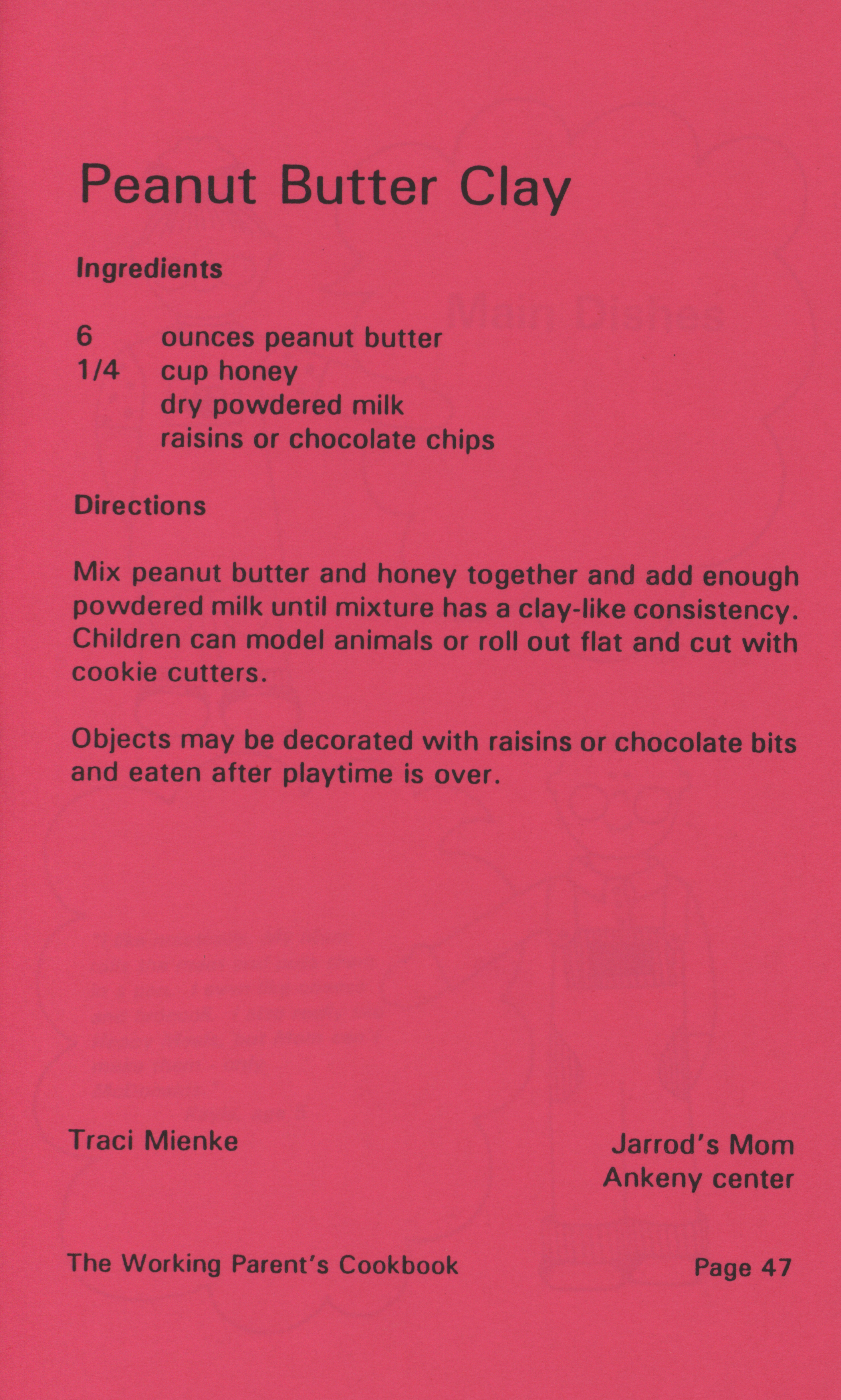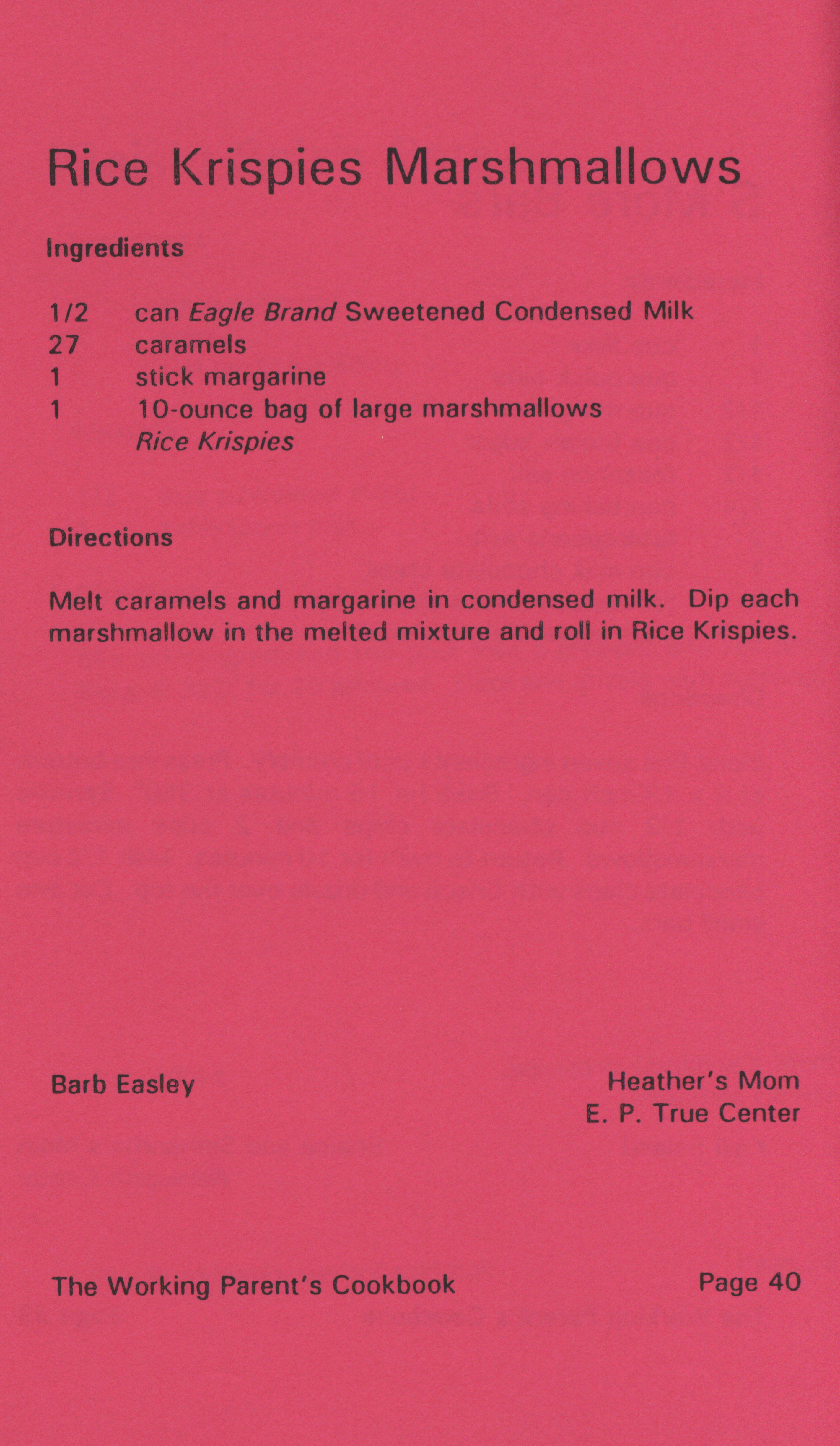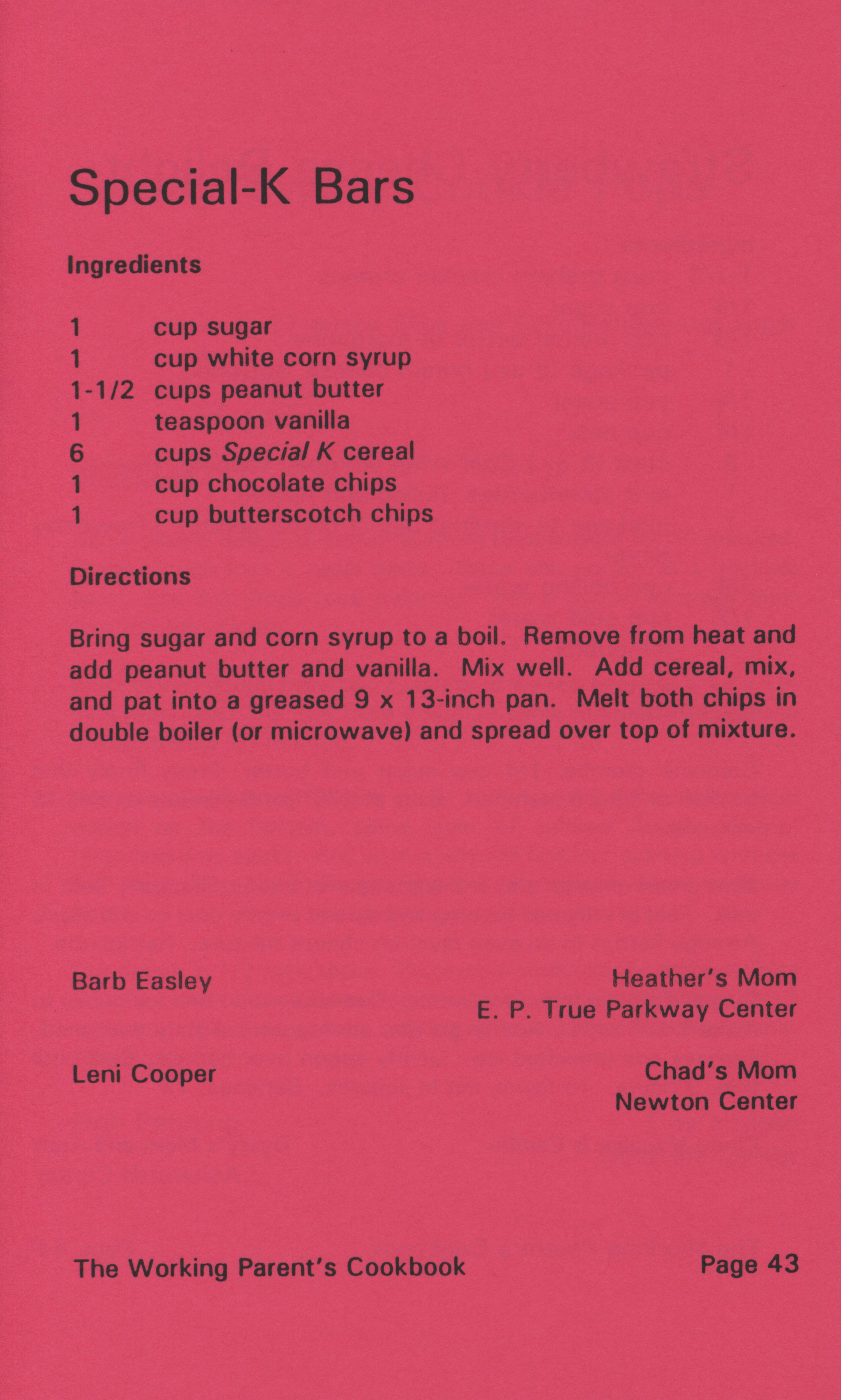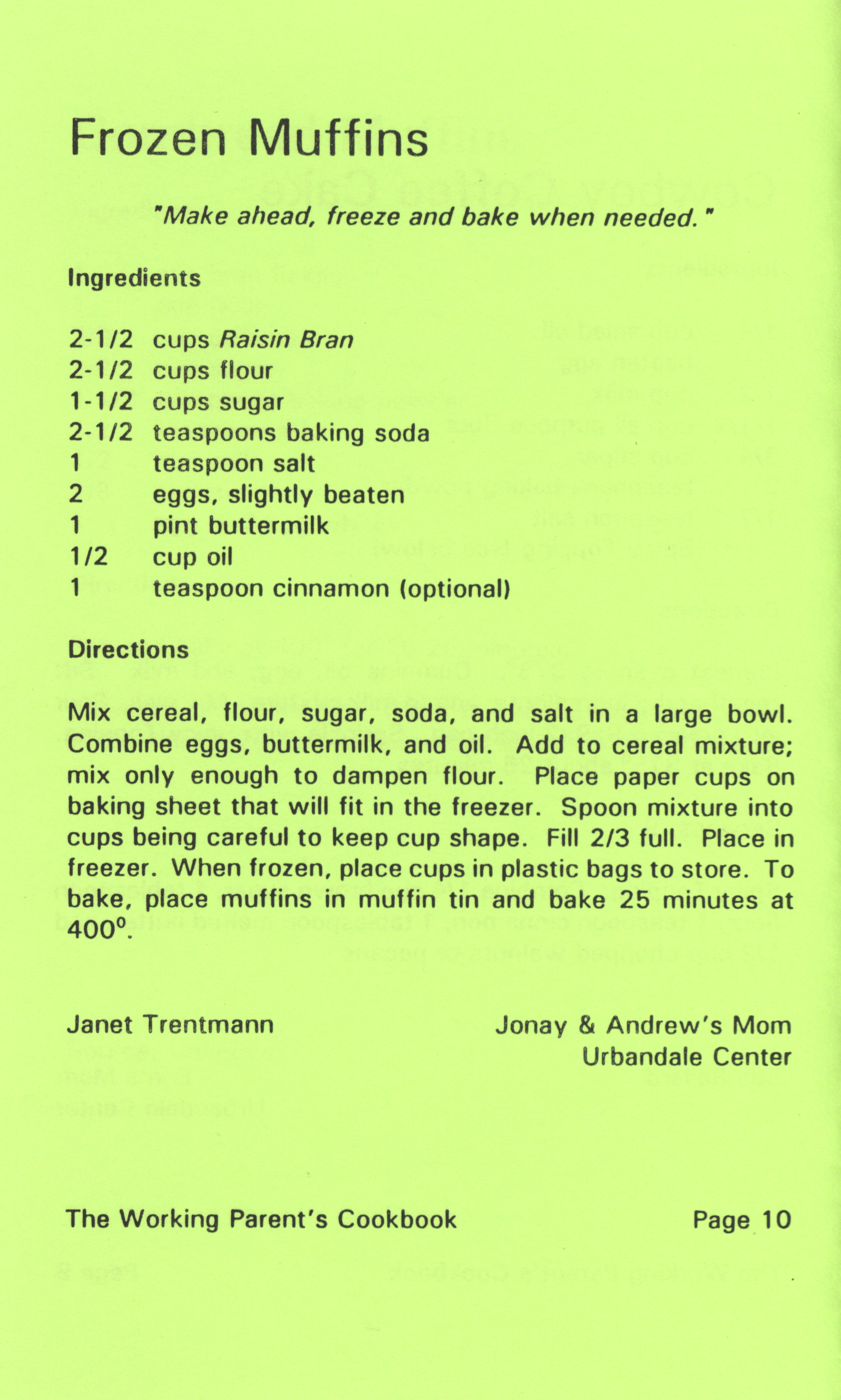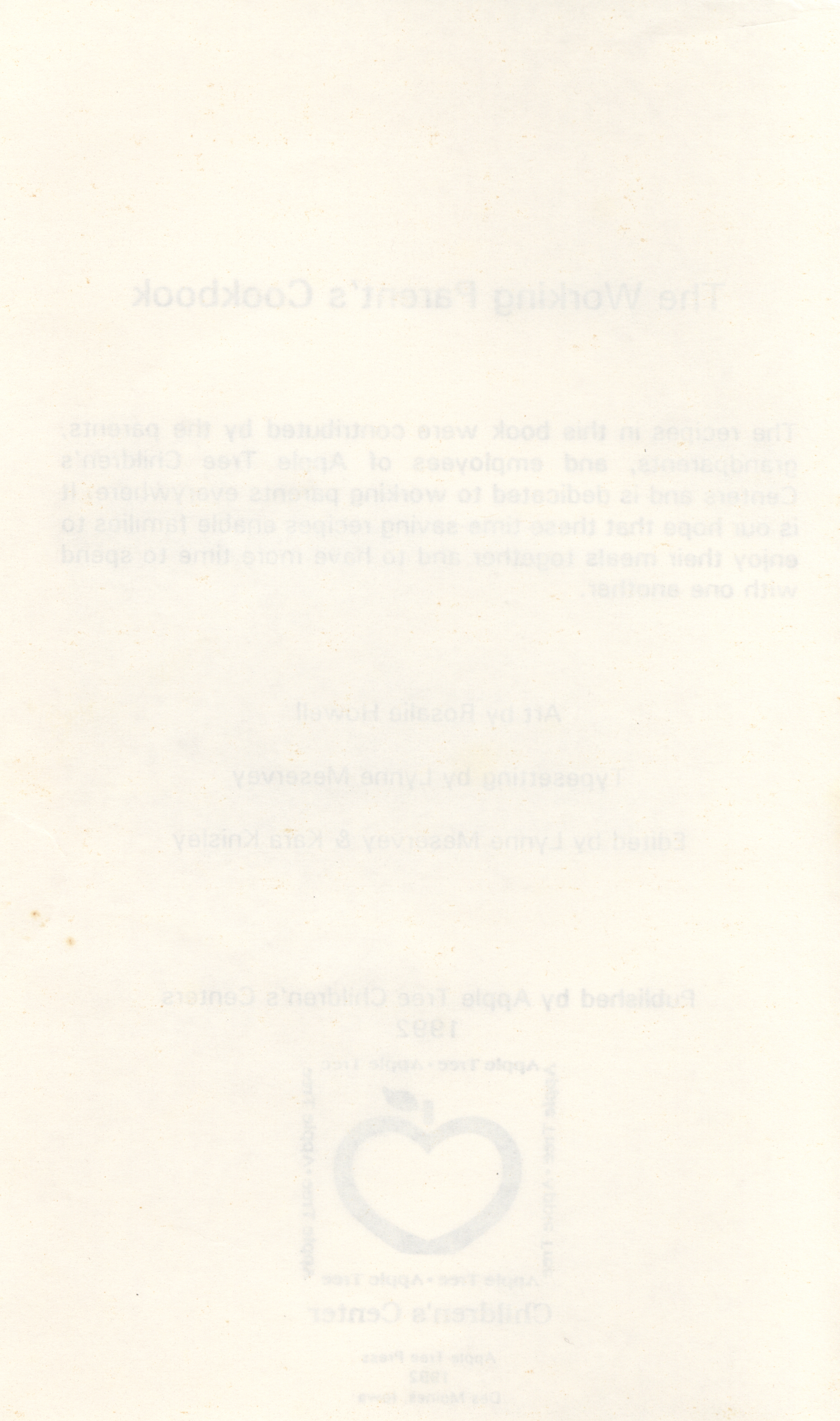 - "Working parent's cookbook: over 100 quick & easy family tested recipes", Cookbook Collection, Iowa State University Library Digital Collections