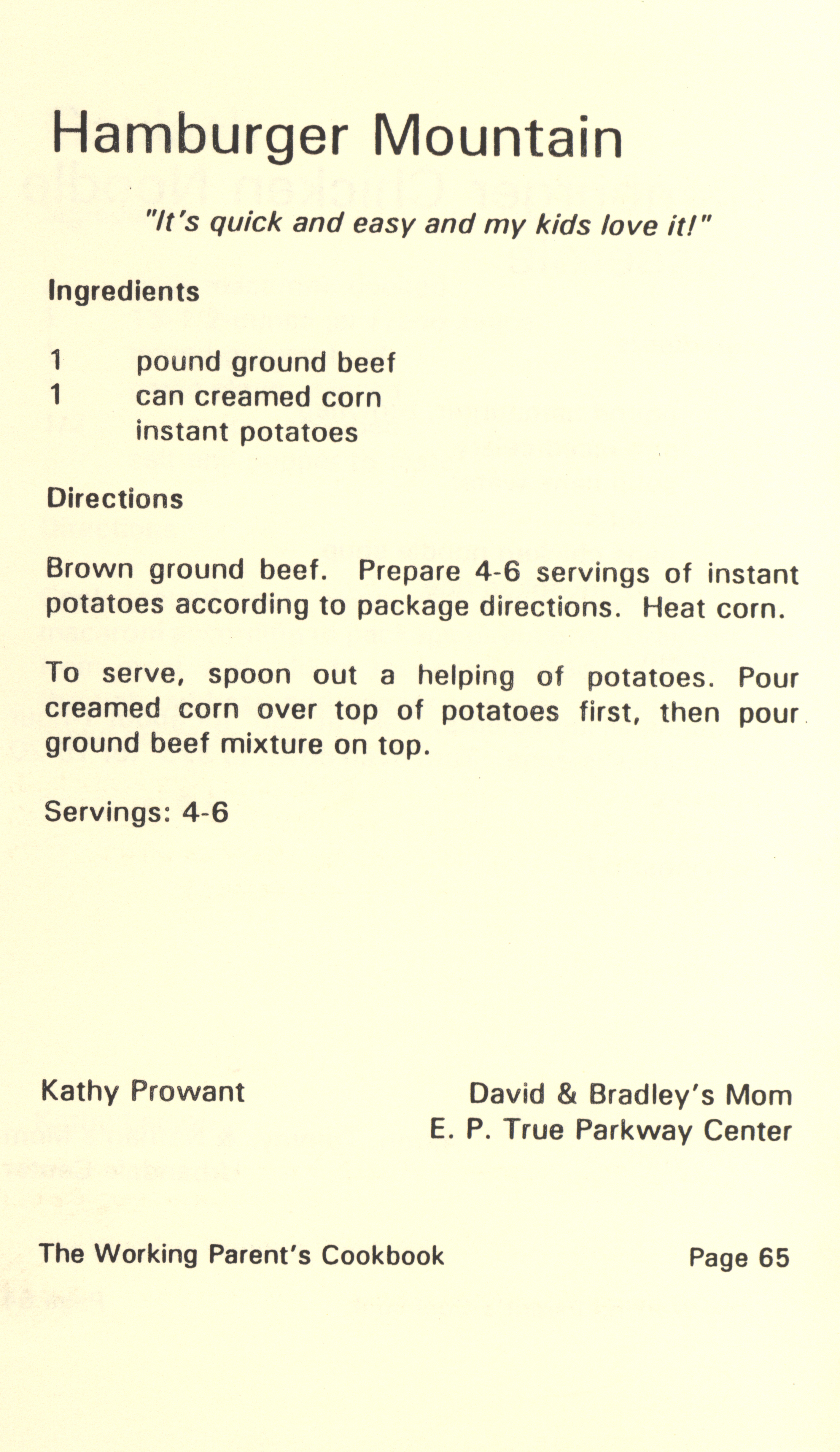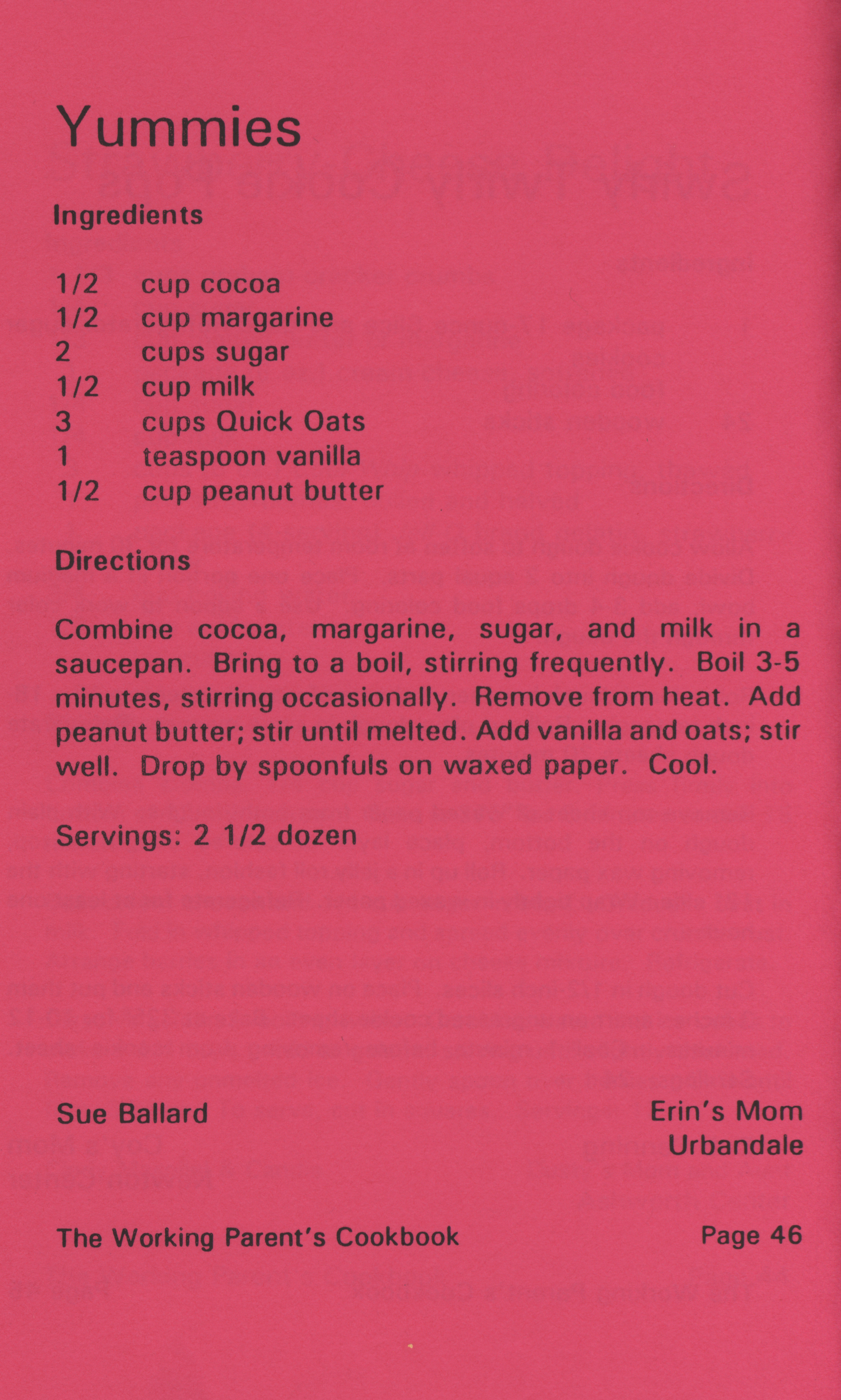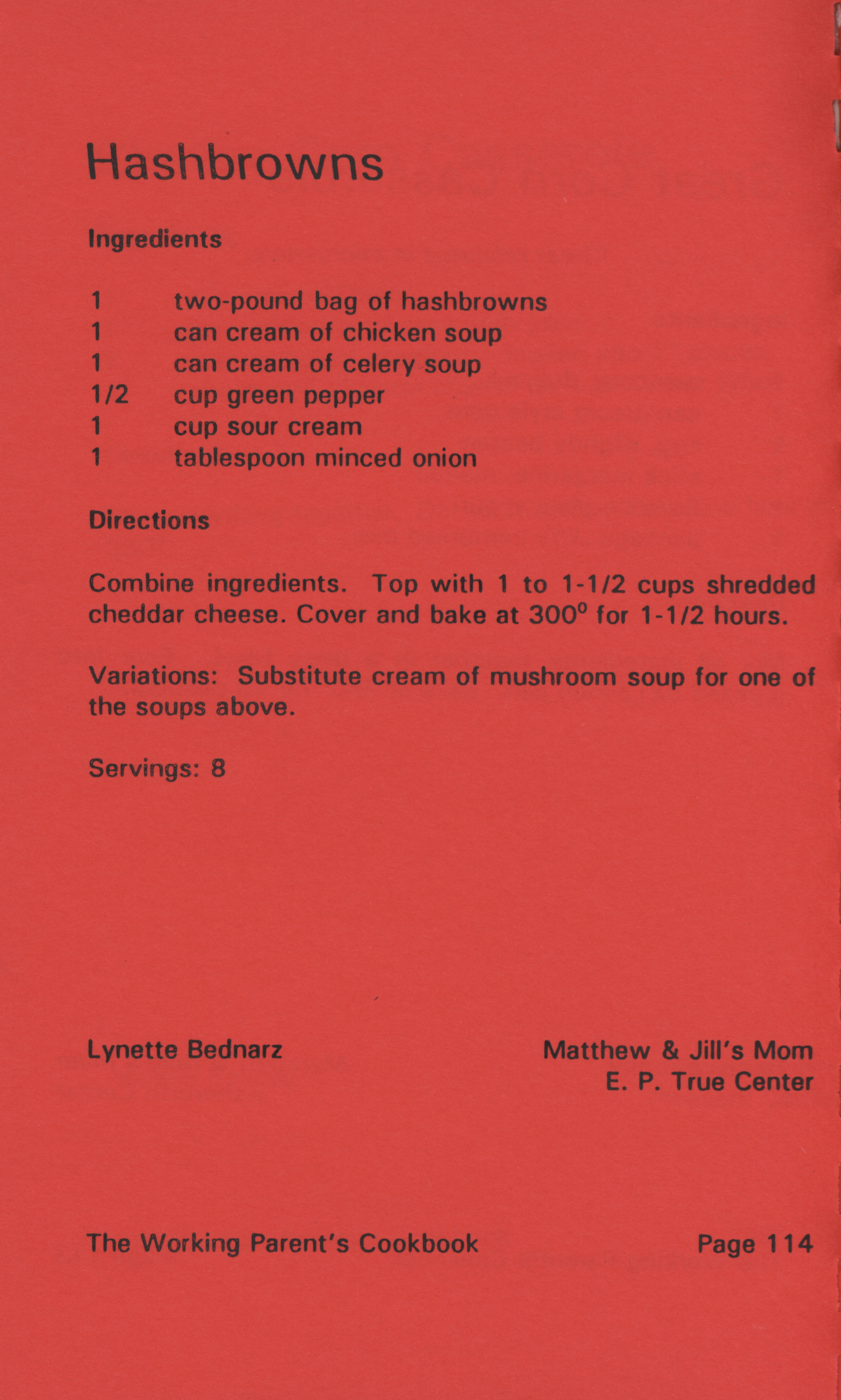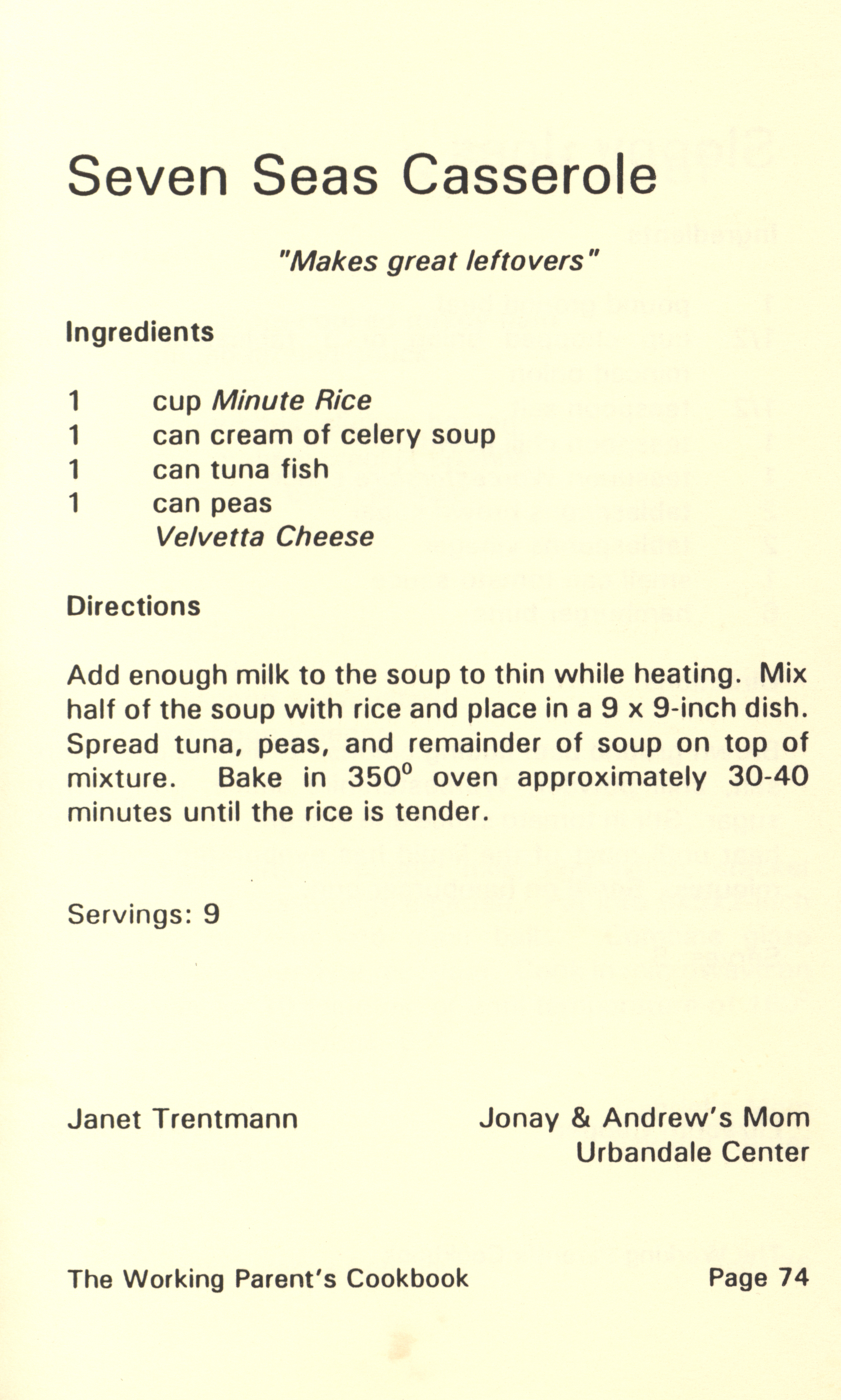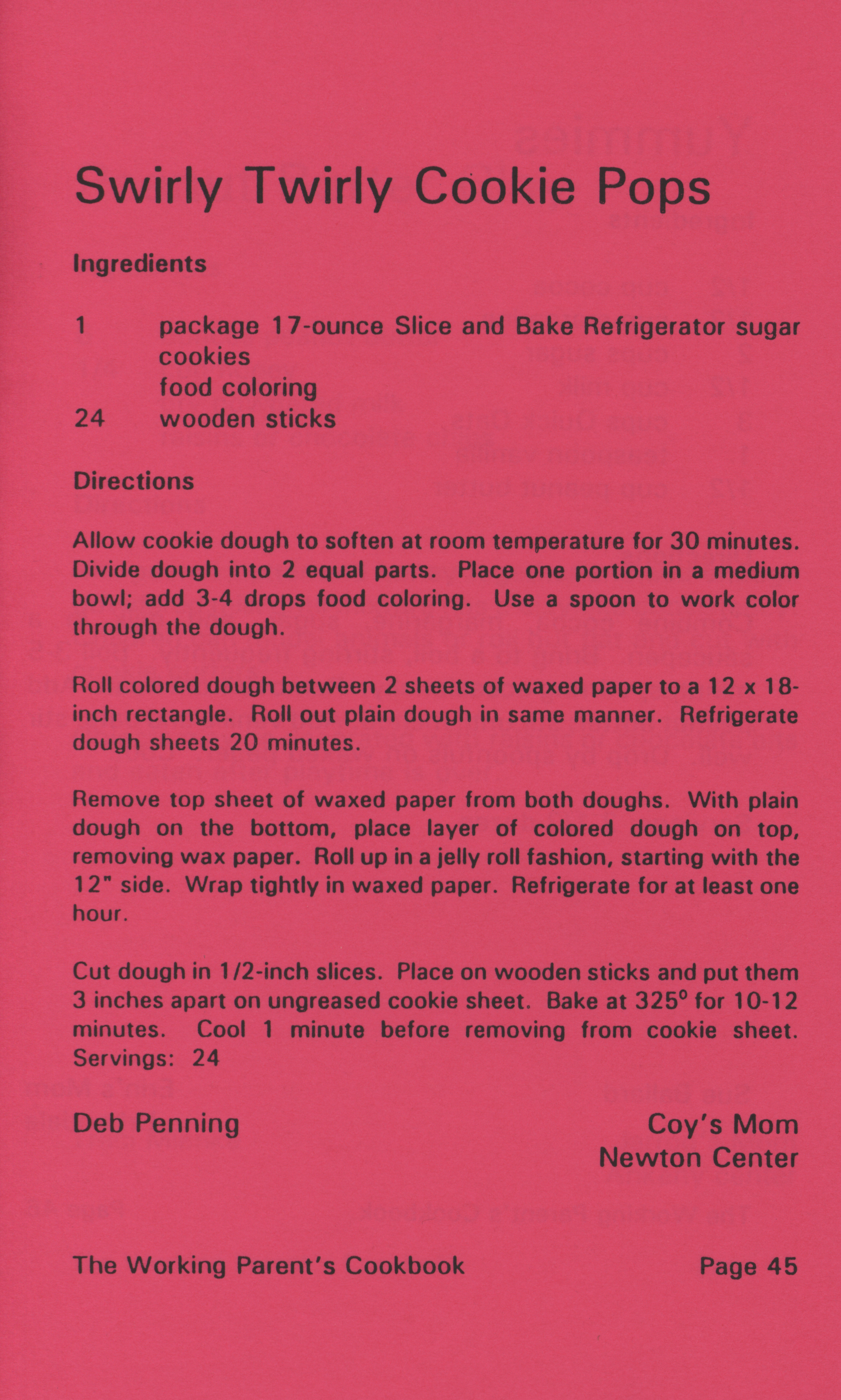 - "Working parent's cookbook: over 100 quick & easy family tested recipes", Cookbook Collection, Iowa State University Library Digital Collections