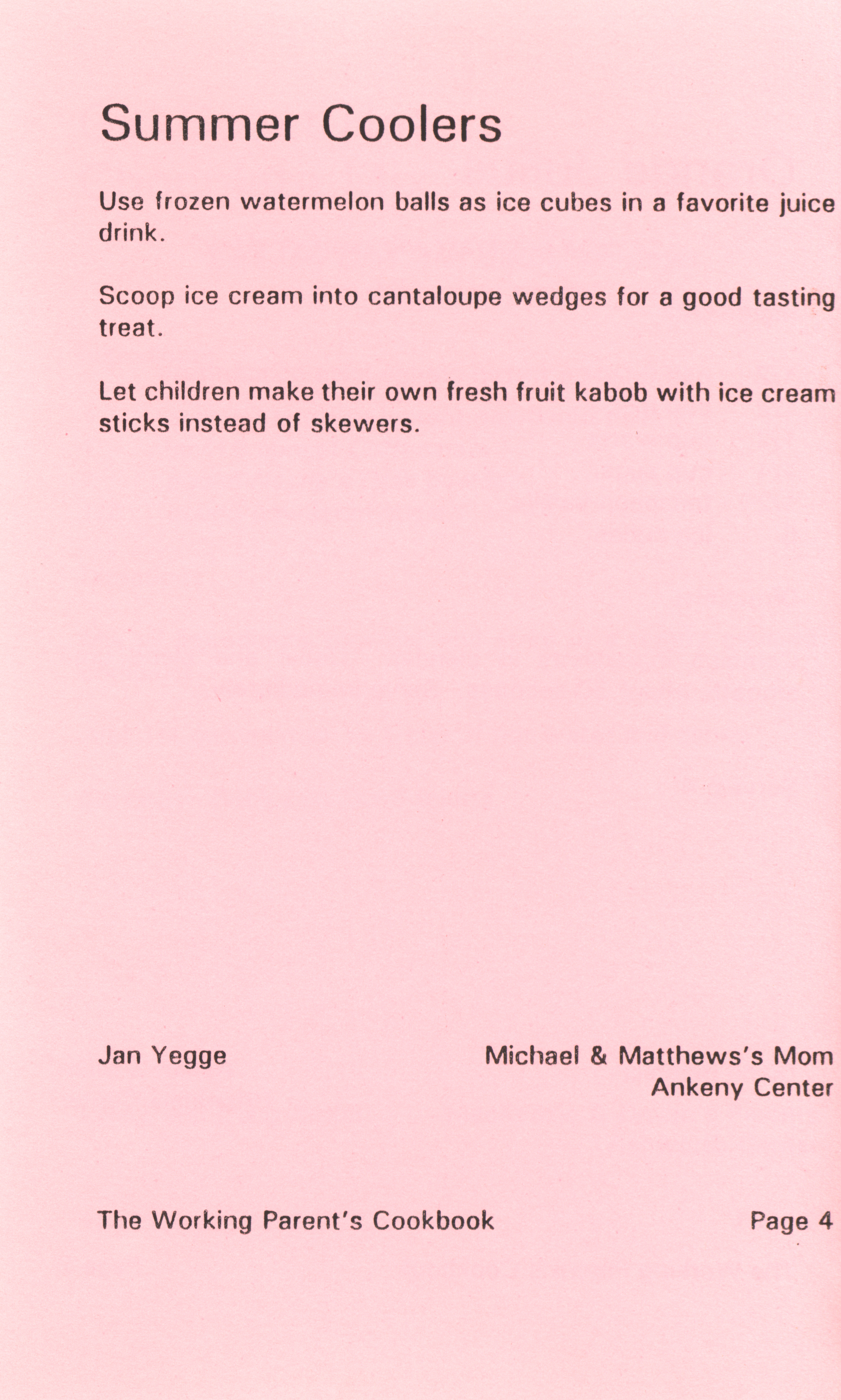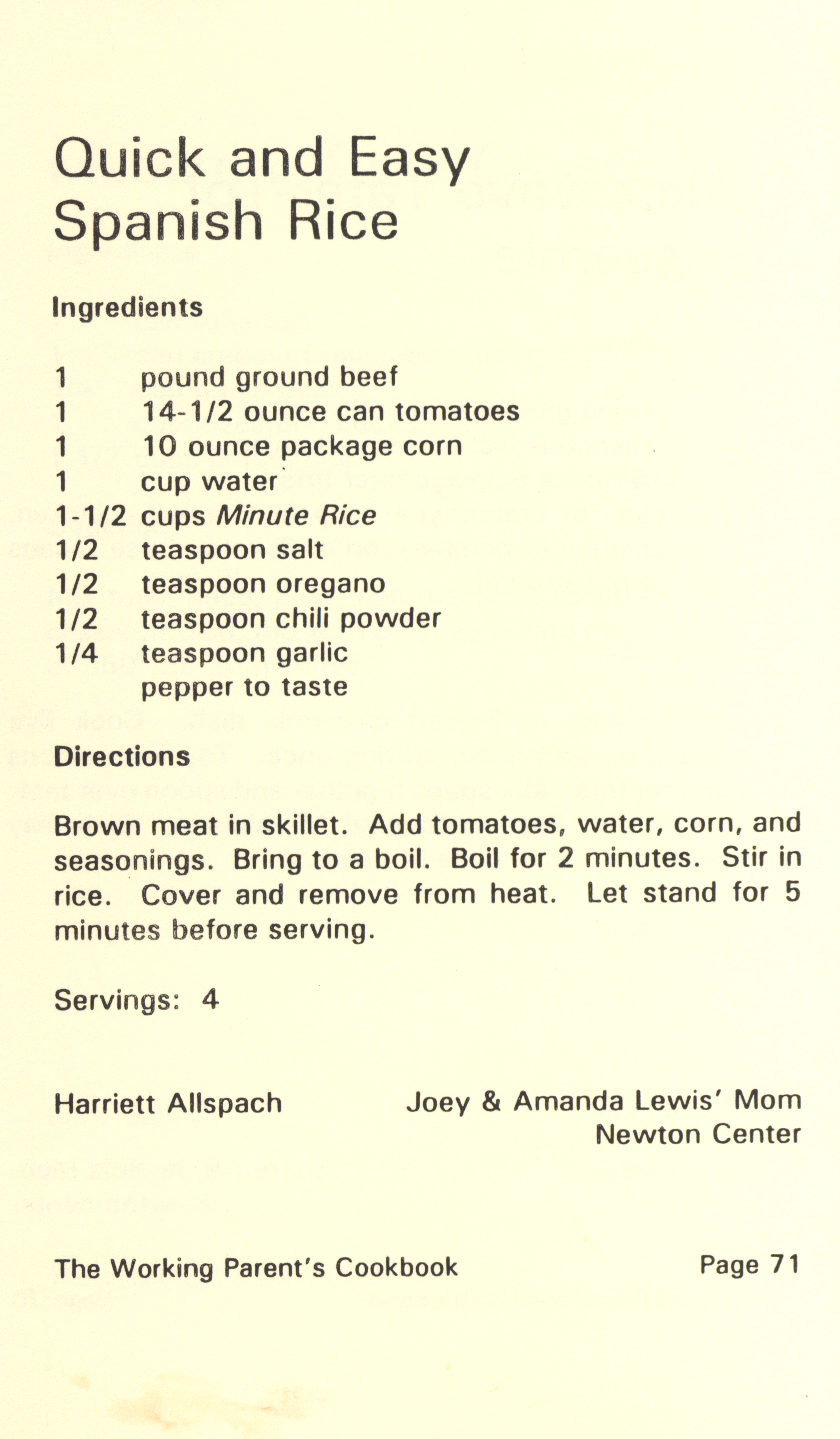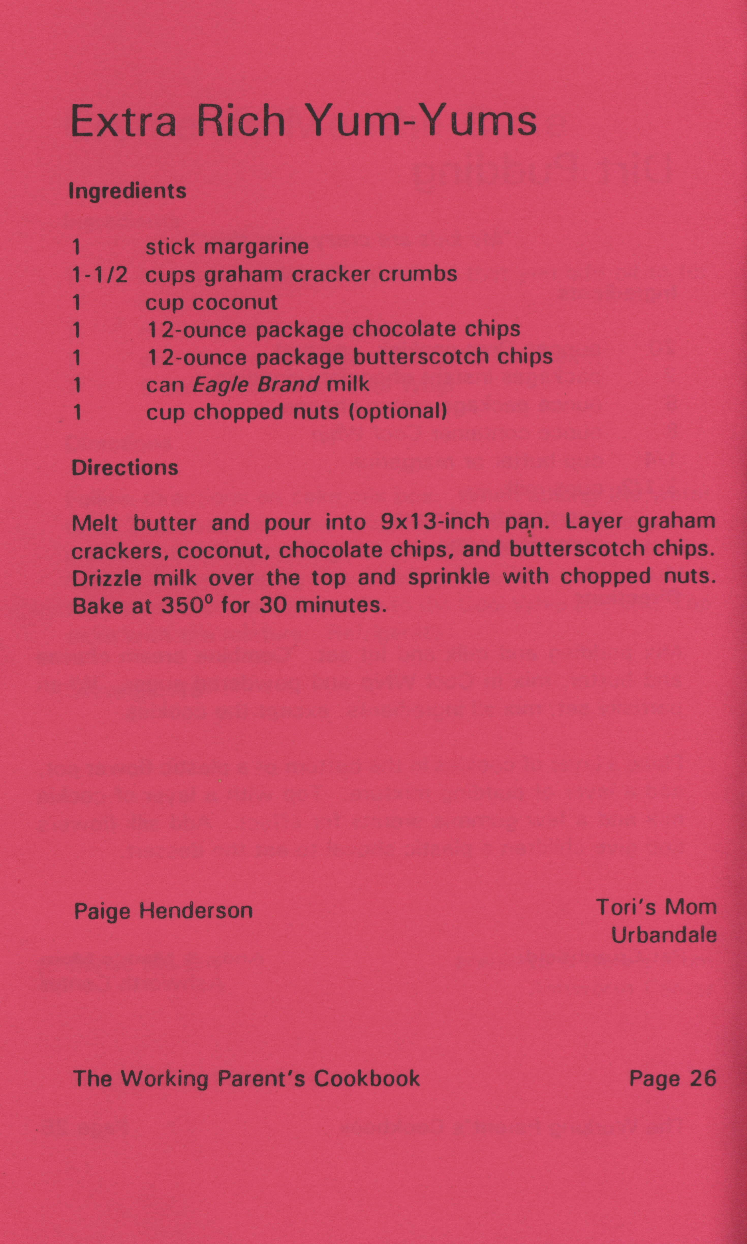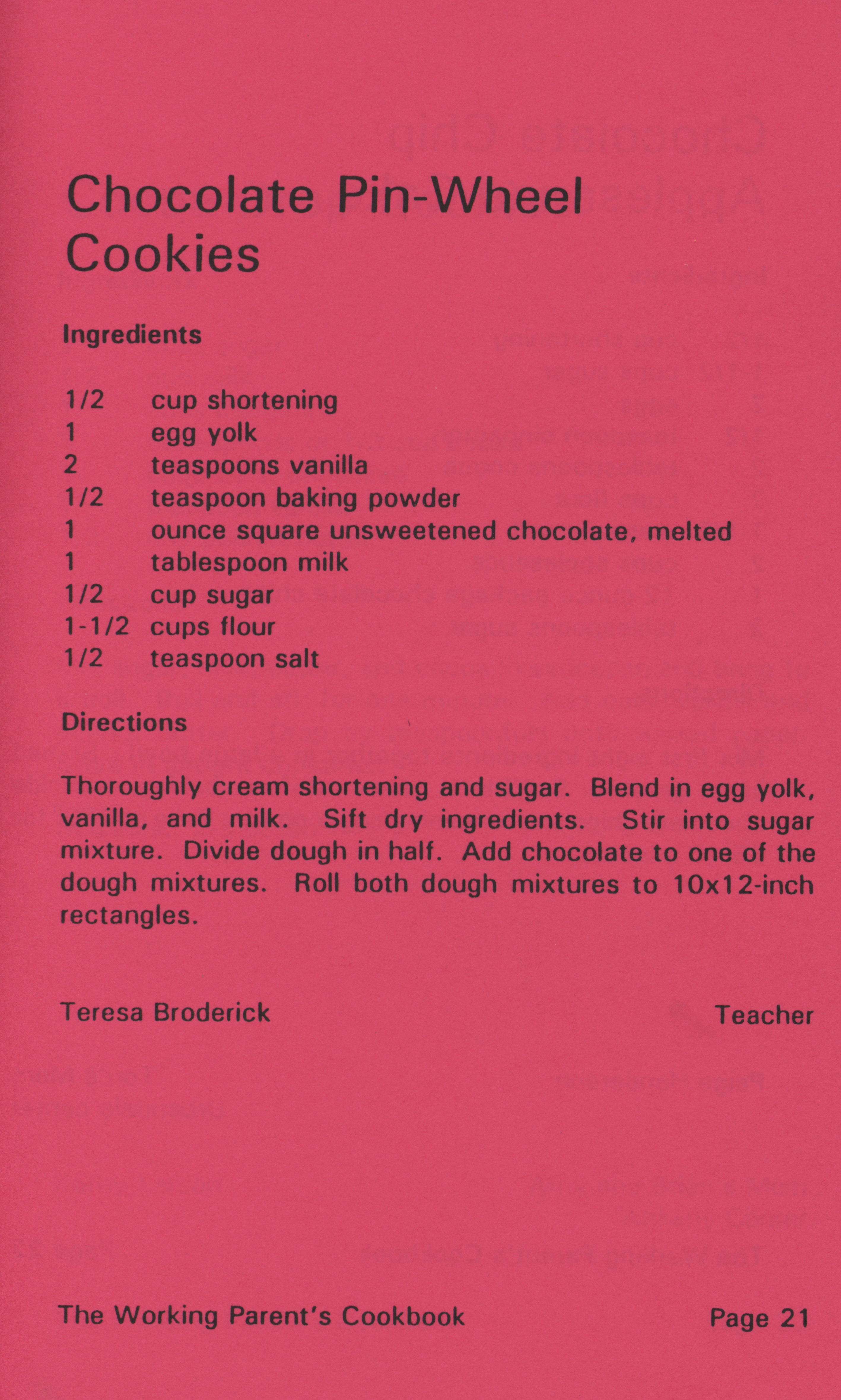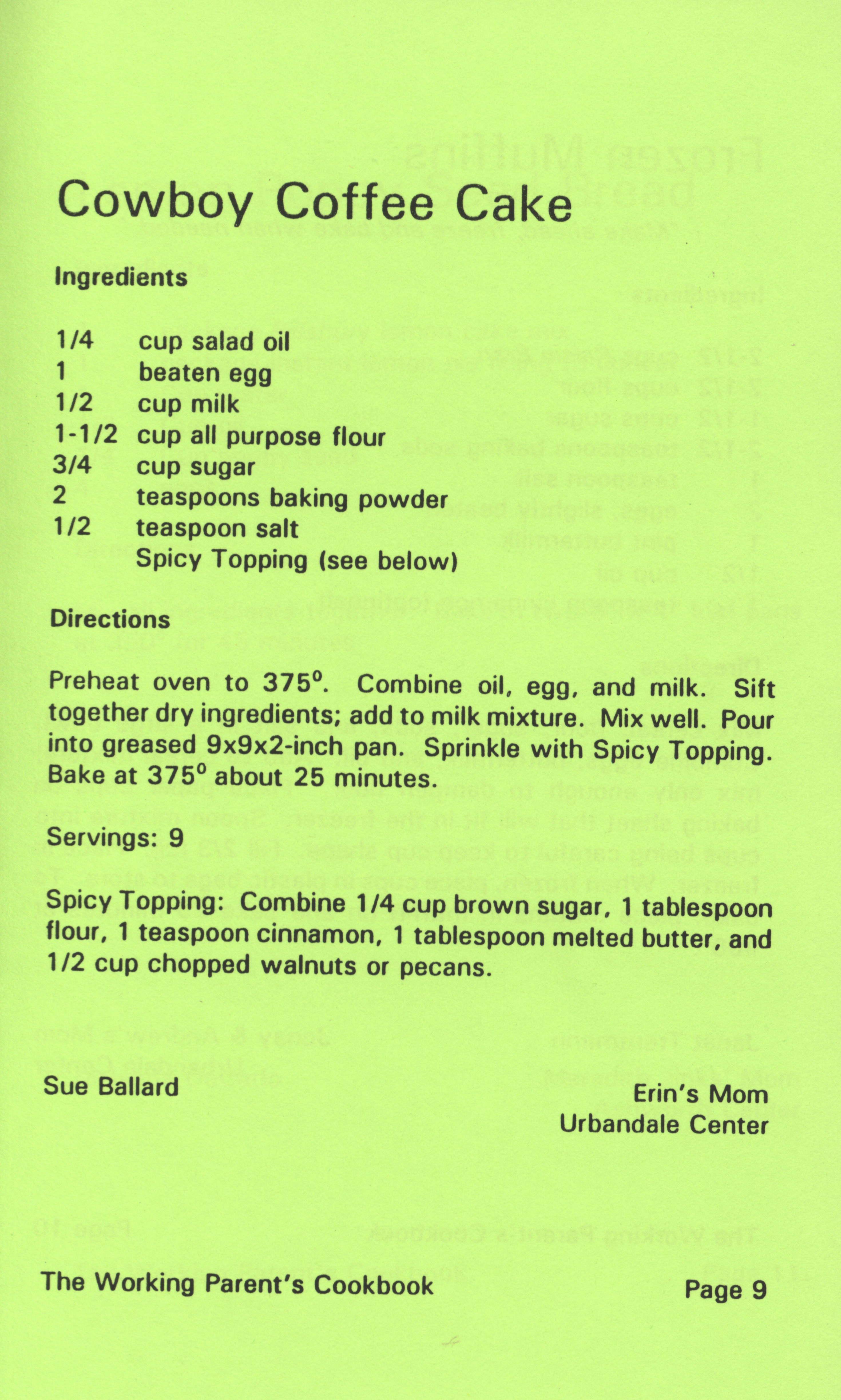 - "Working parent's cookbook: over 100 quick & easy family tested recipes", Cookbook Collection, Iowa State University Library Digital Collections