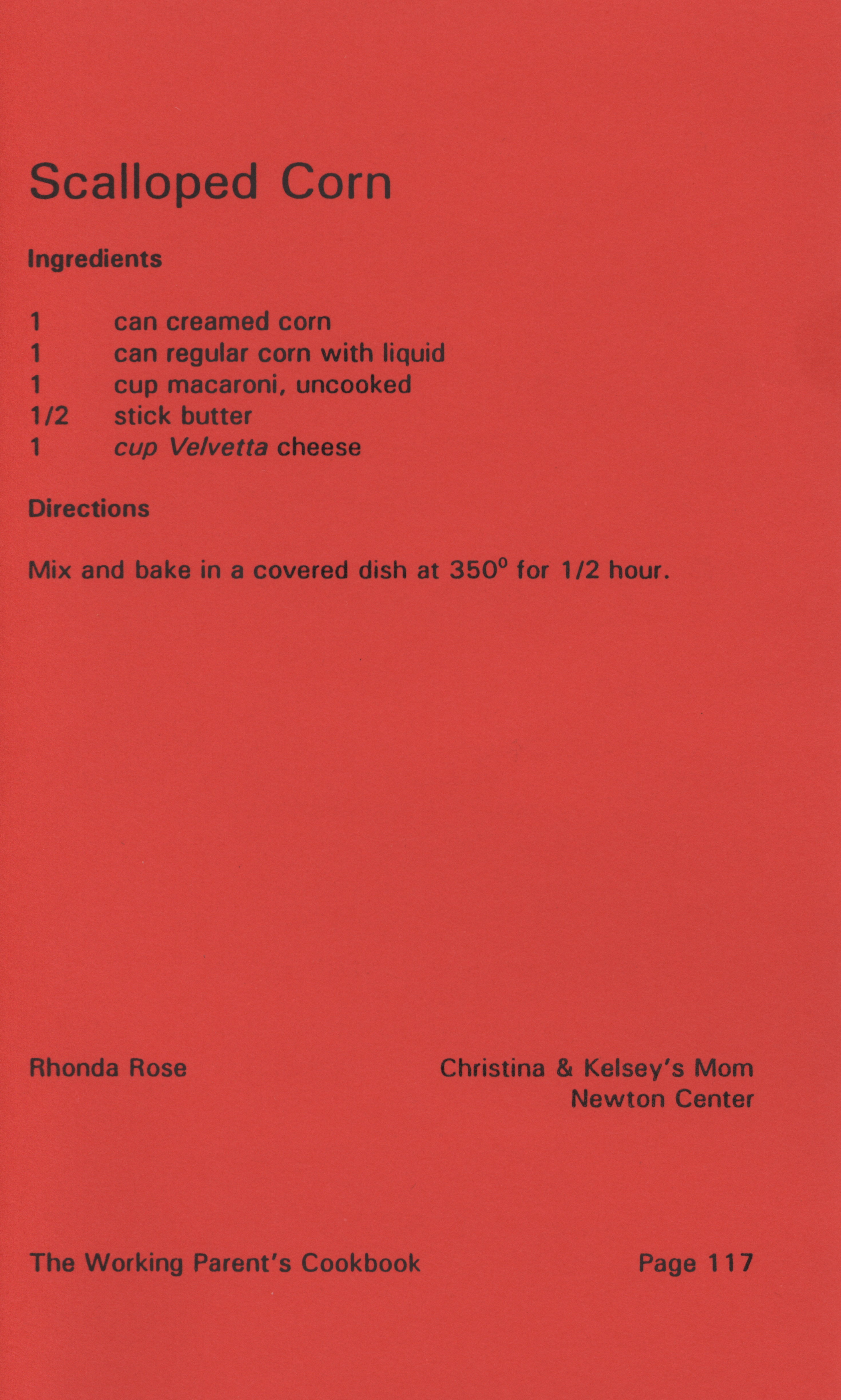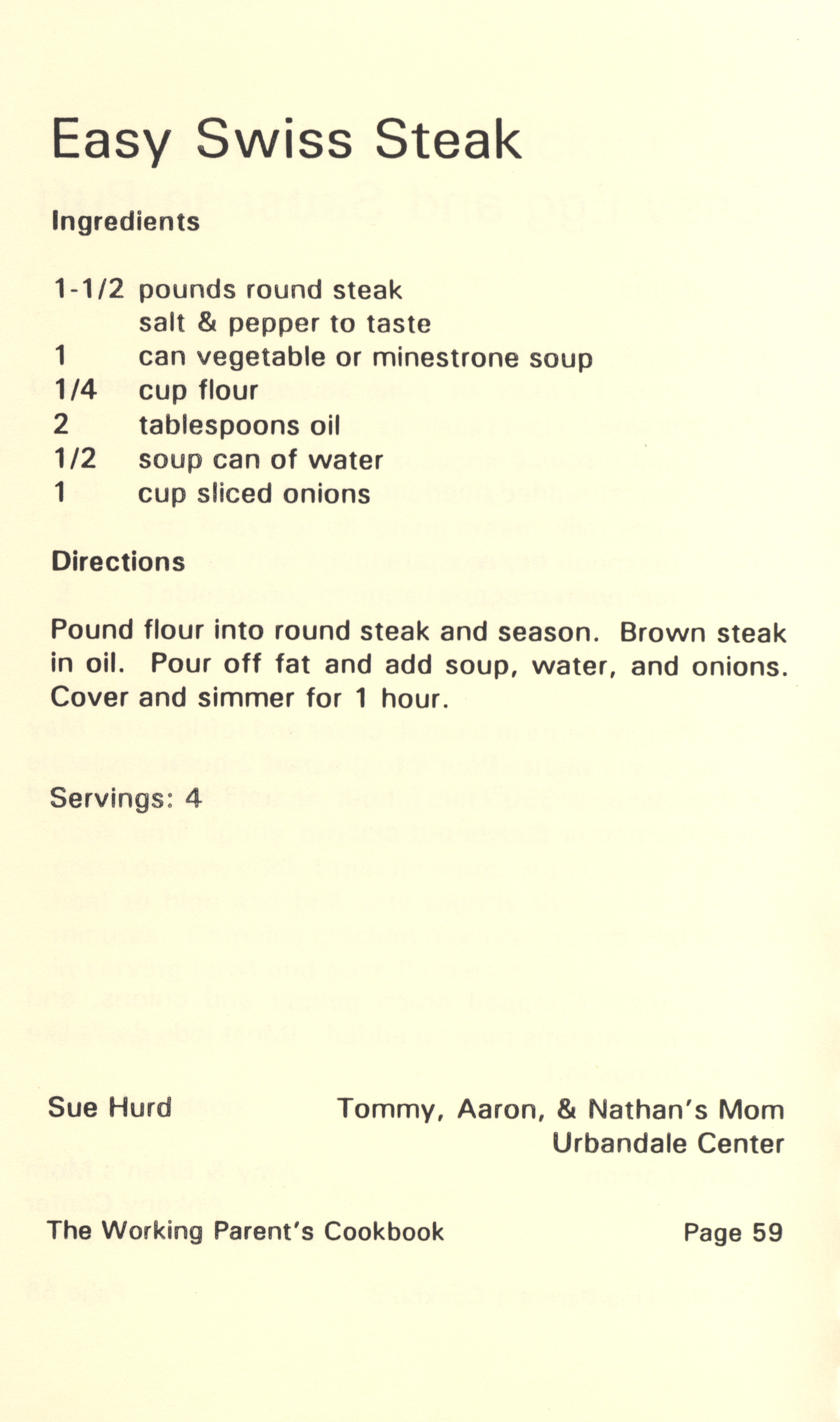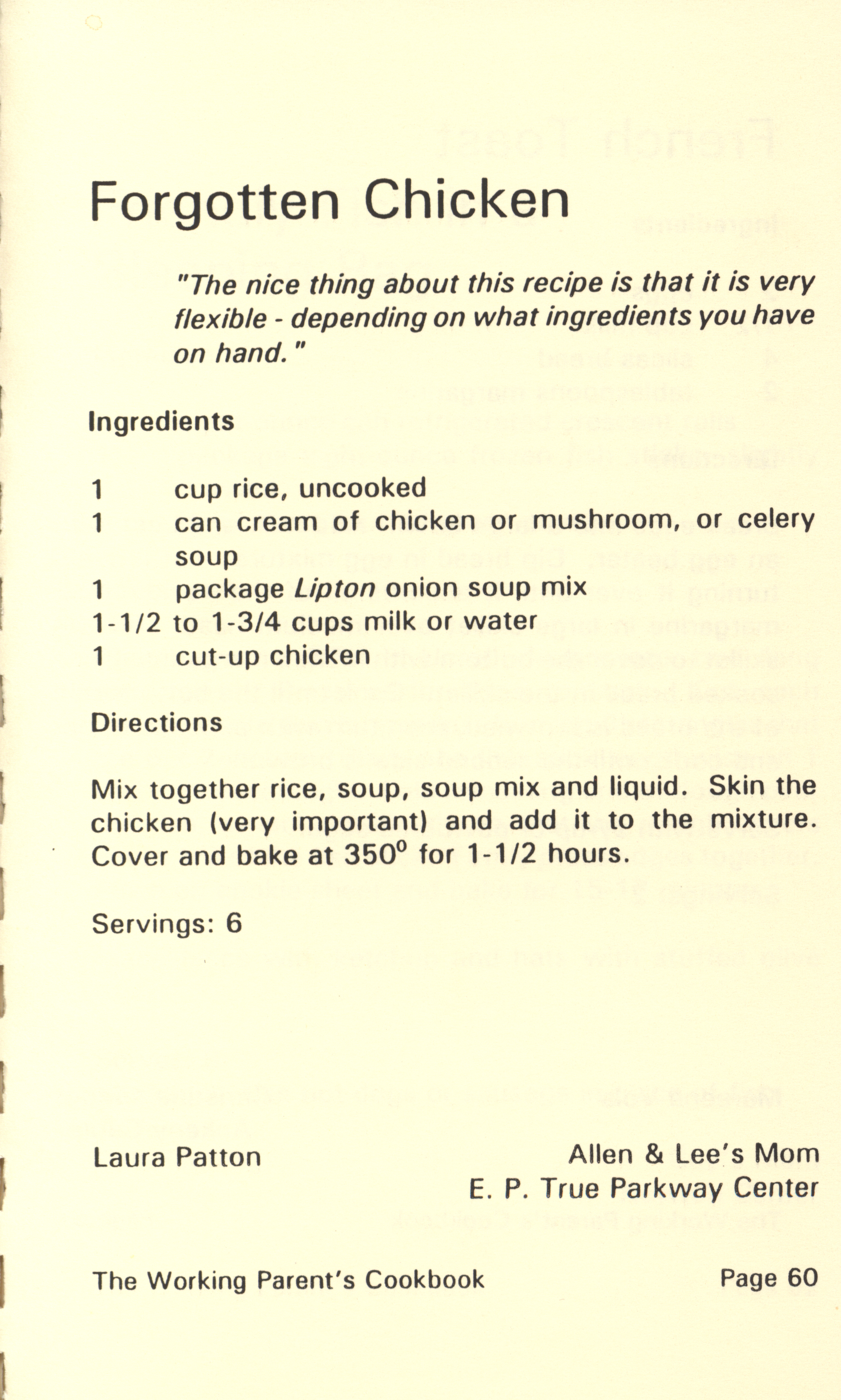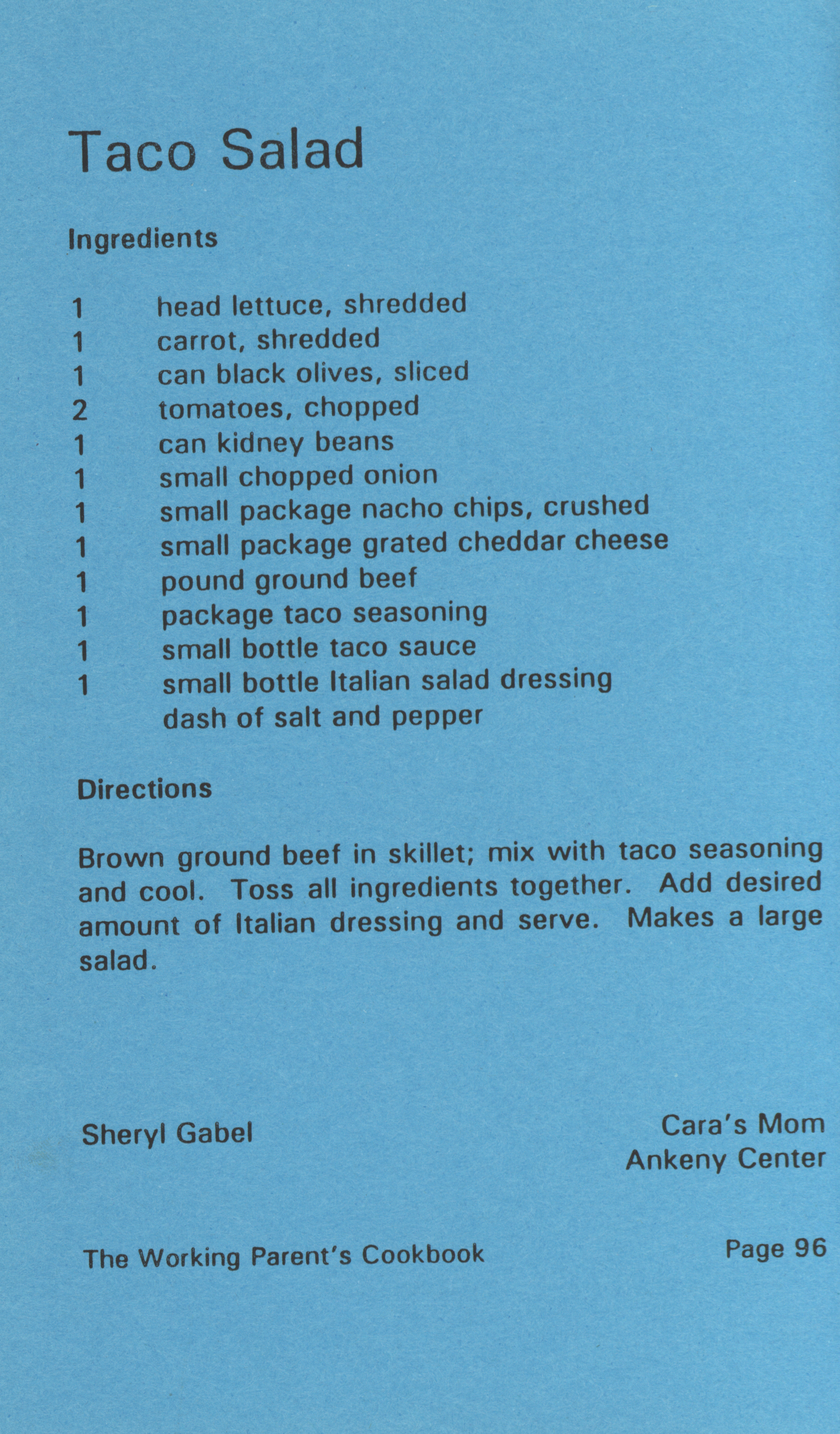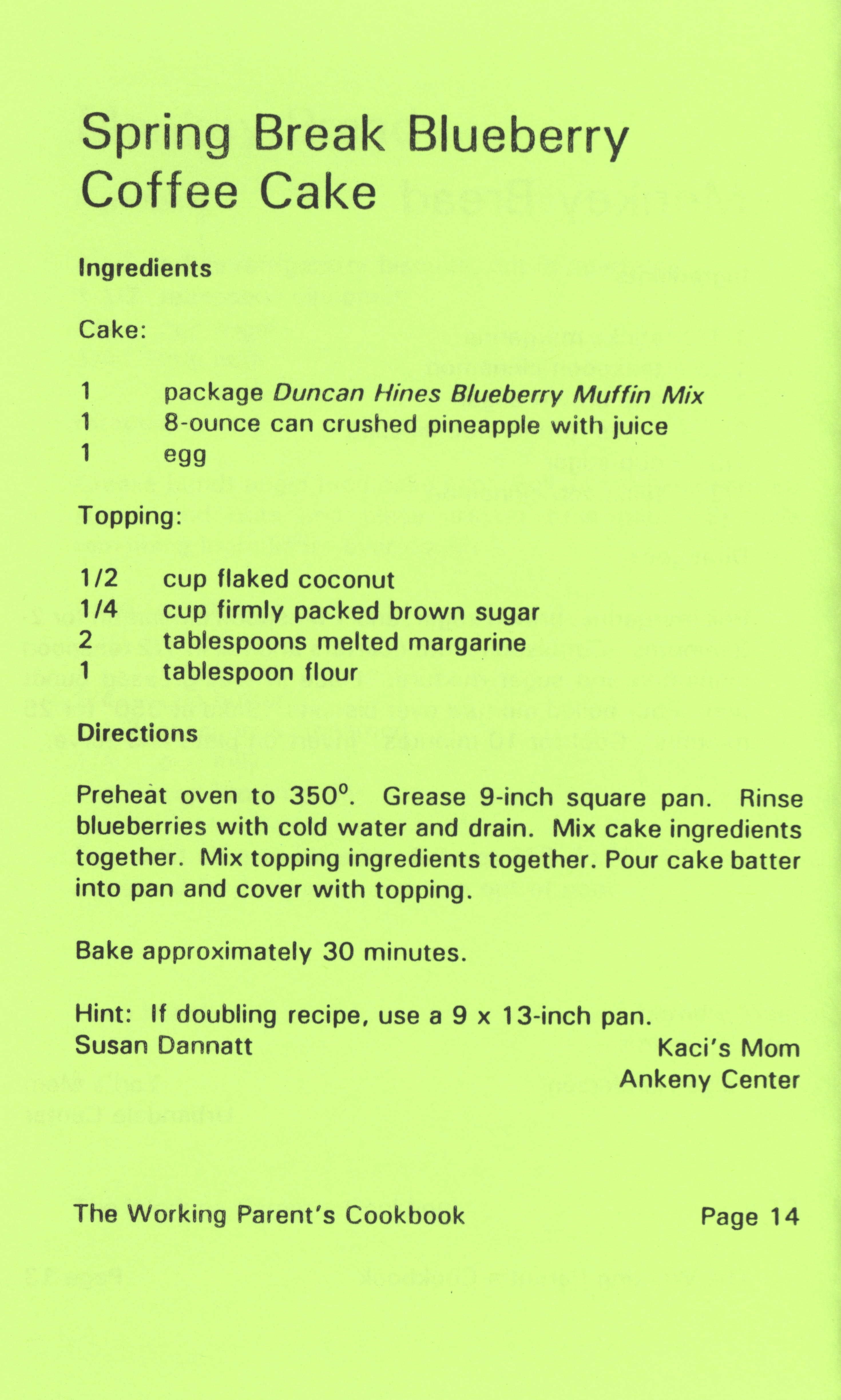 - "Working parent's cookbook: over 100 quick & easy family tested recipes", Cookbook Collection, Iowa State University Library Digital Collections